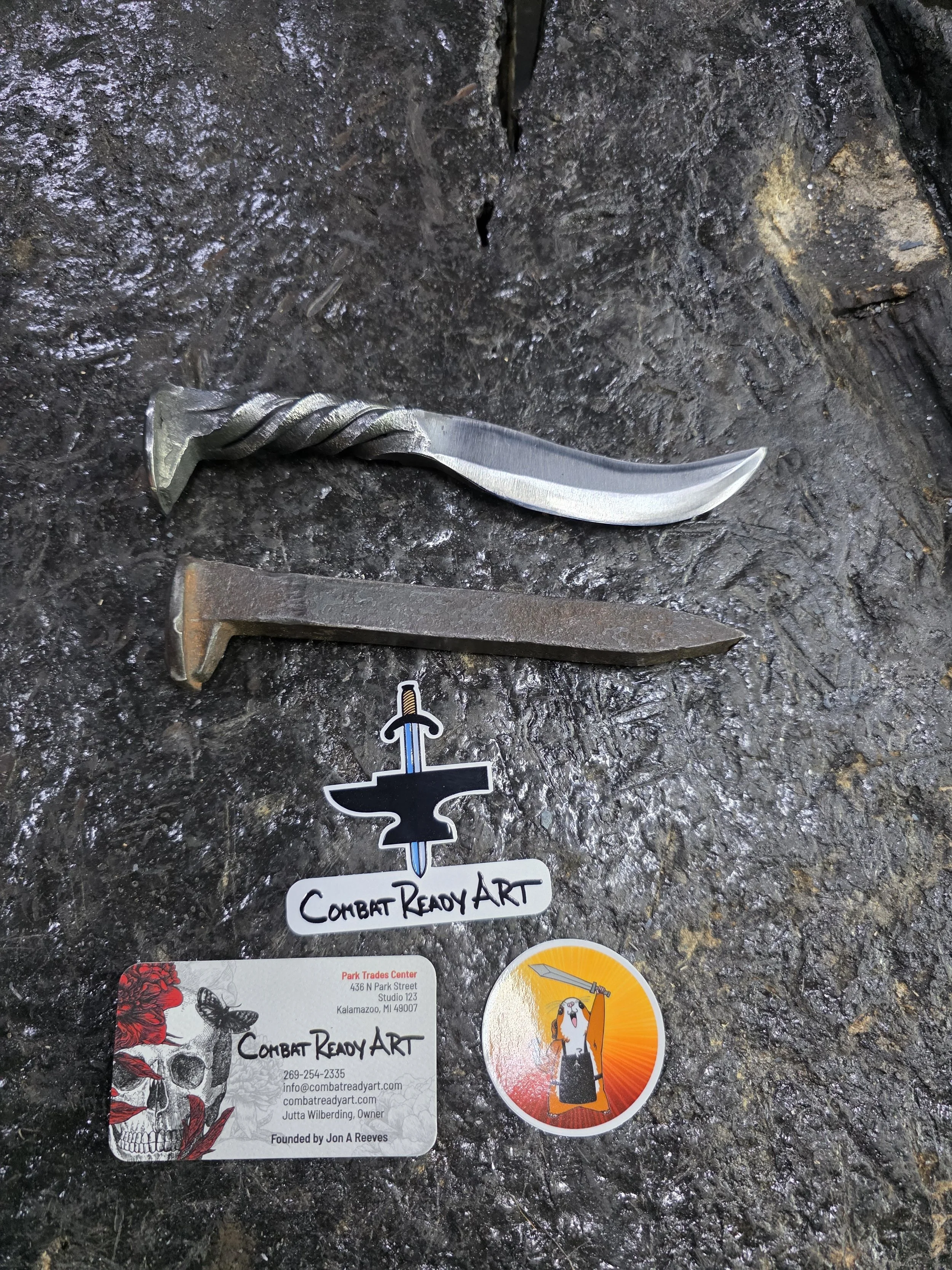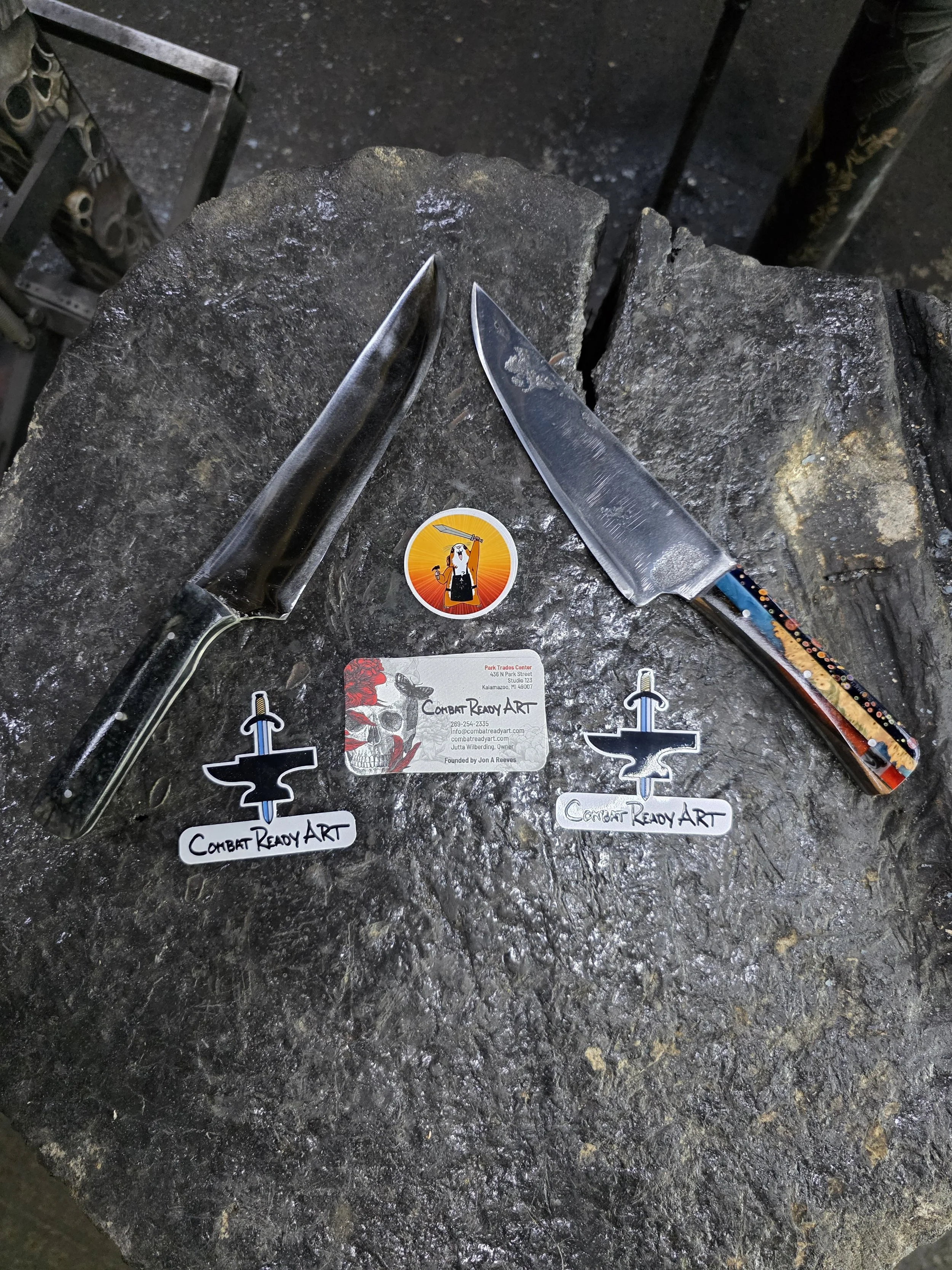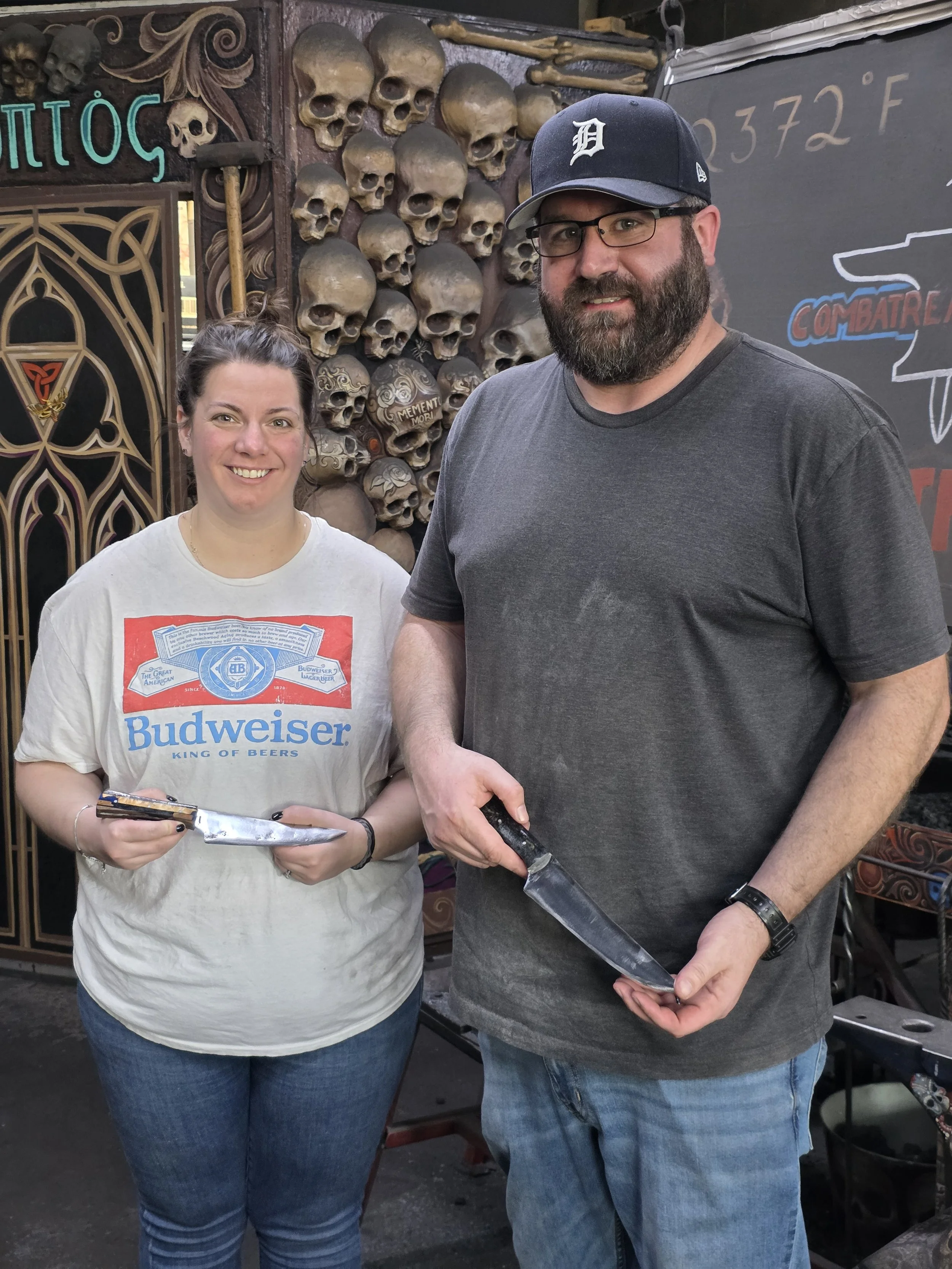 Great day with Megan and Robert! They came from the Detroit area to forge their first knives. They both made beautiful chef's knives!
