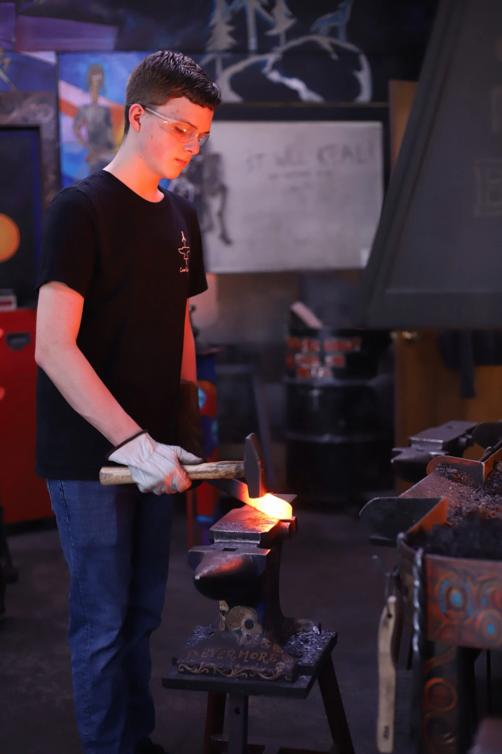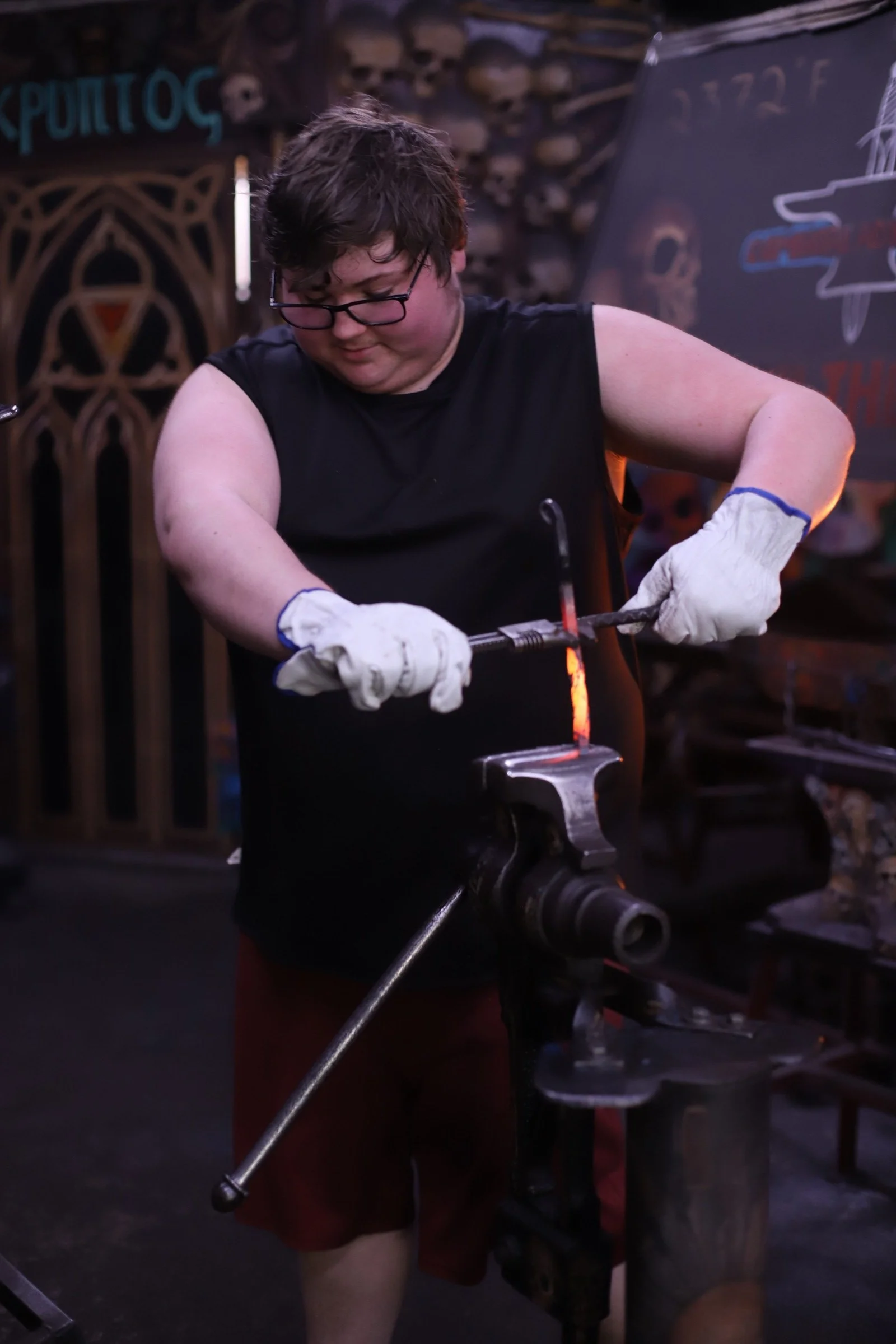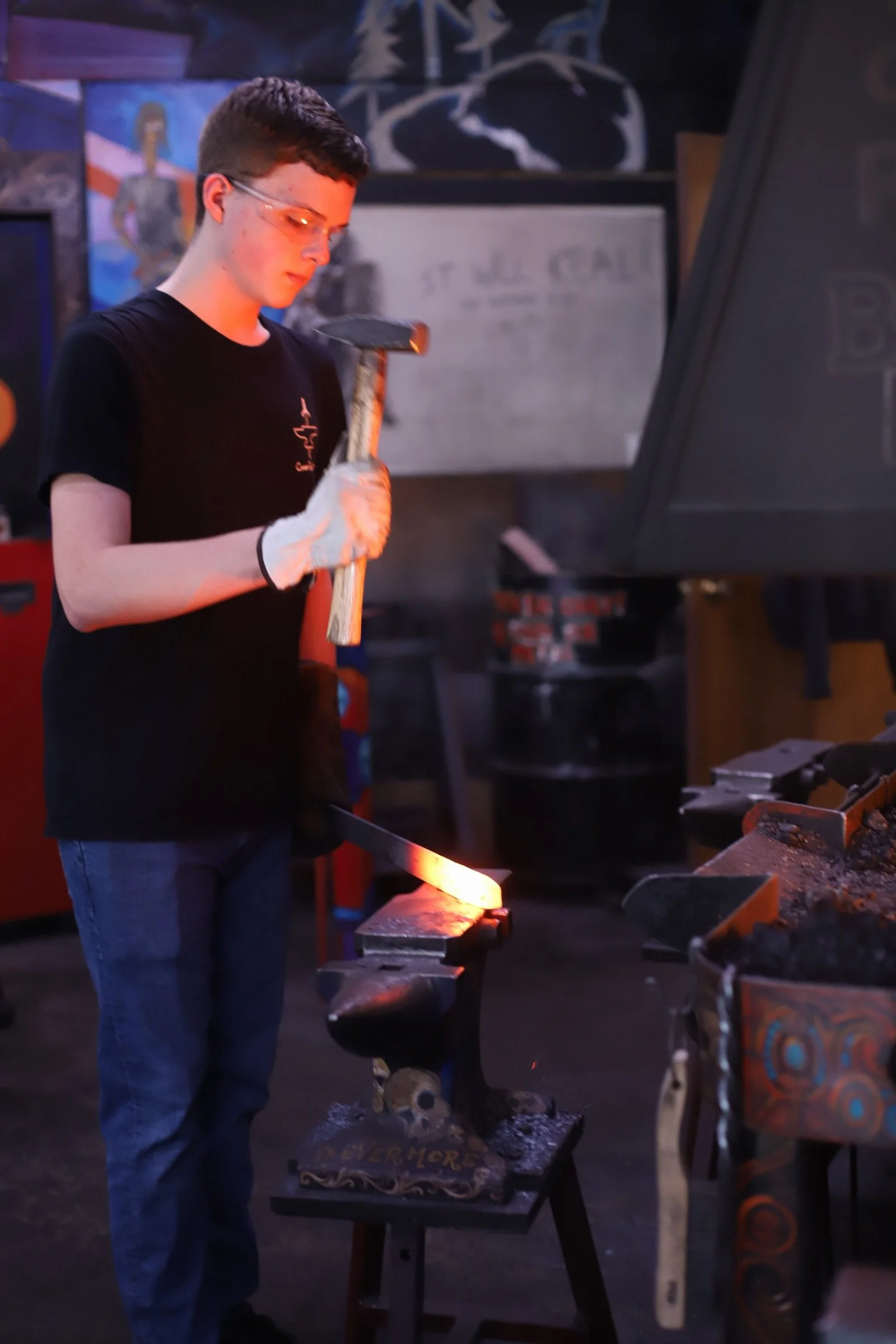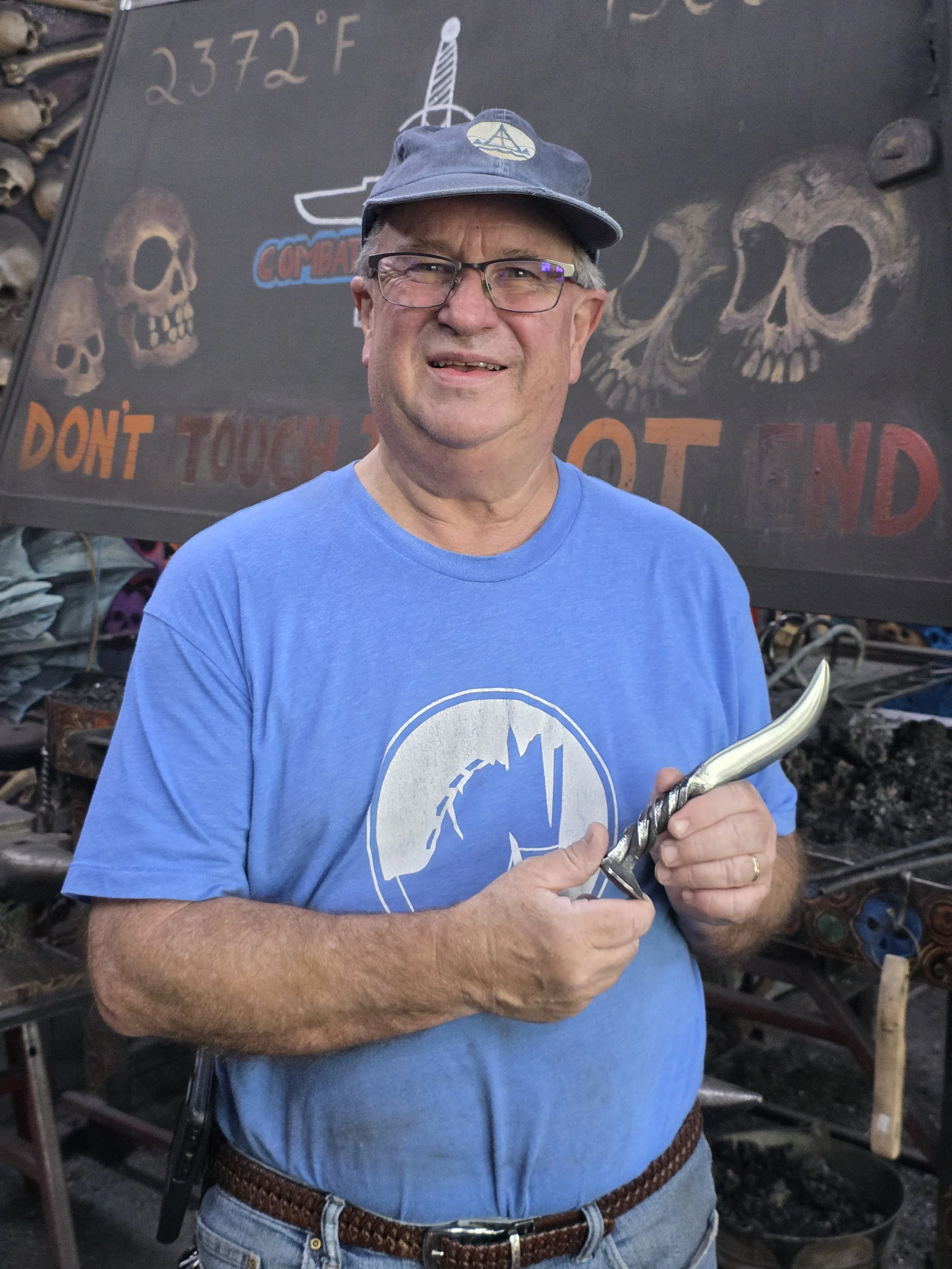 Kalten did a fantastic with his first time blacksmithing! He forged an "S" hook so fast, so he made a steel snake too!