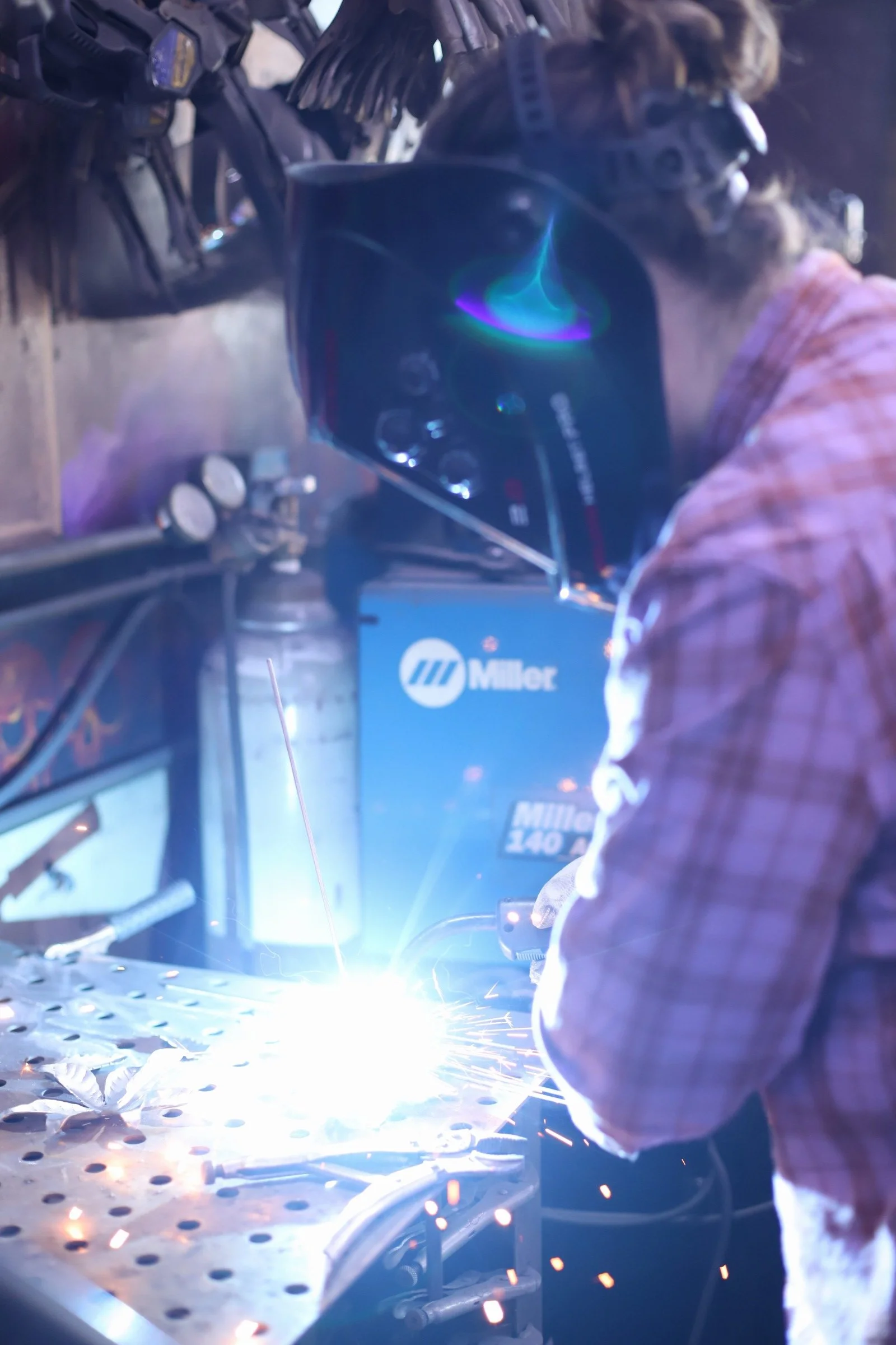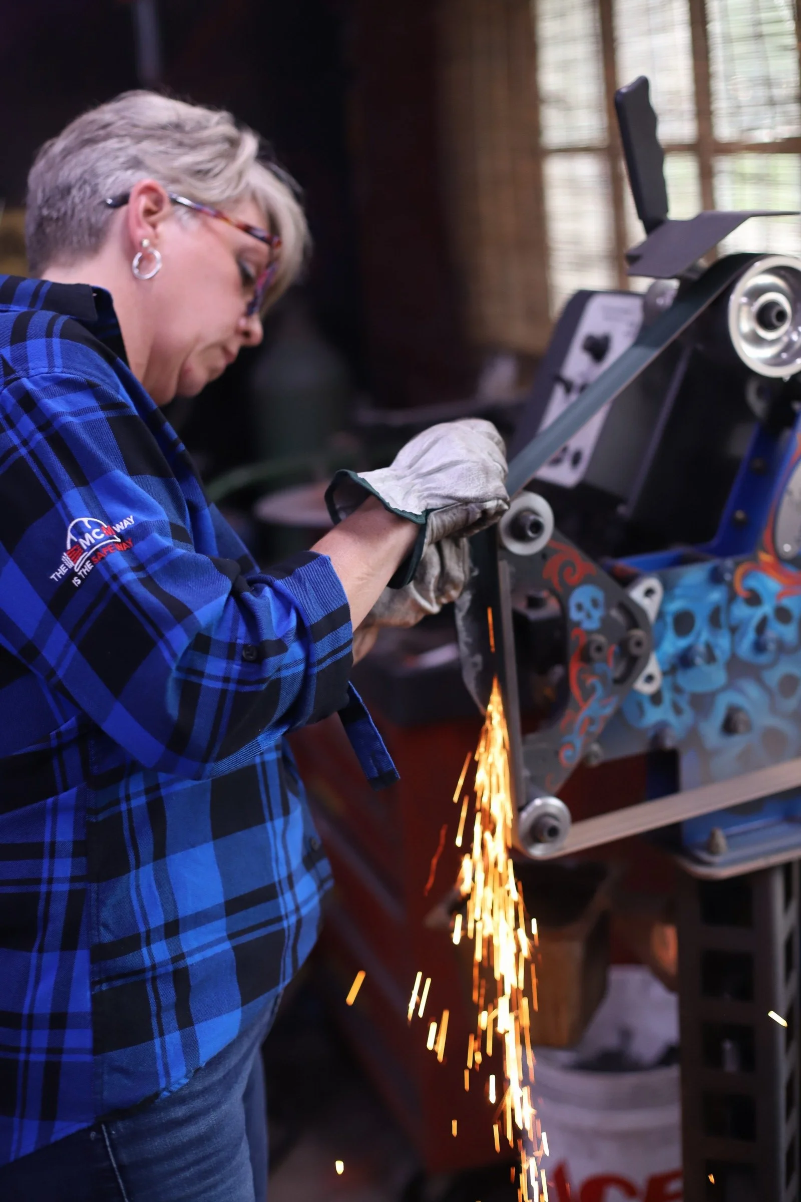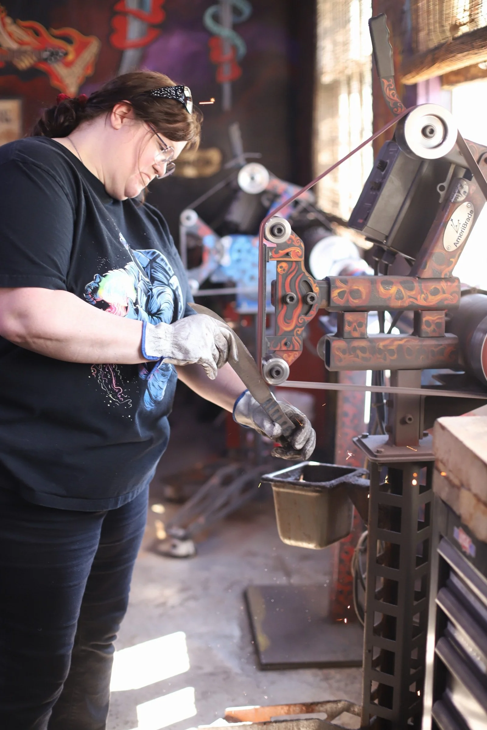 Stephanie and Neal were back this morning to continue working on their damascus knives. Lots of work done!