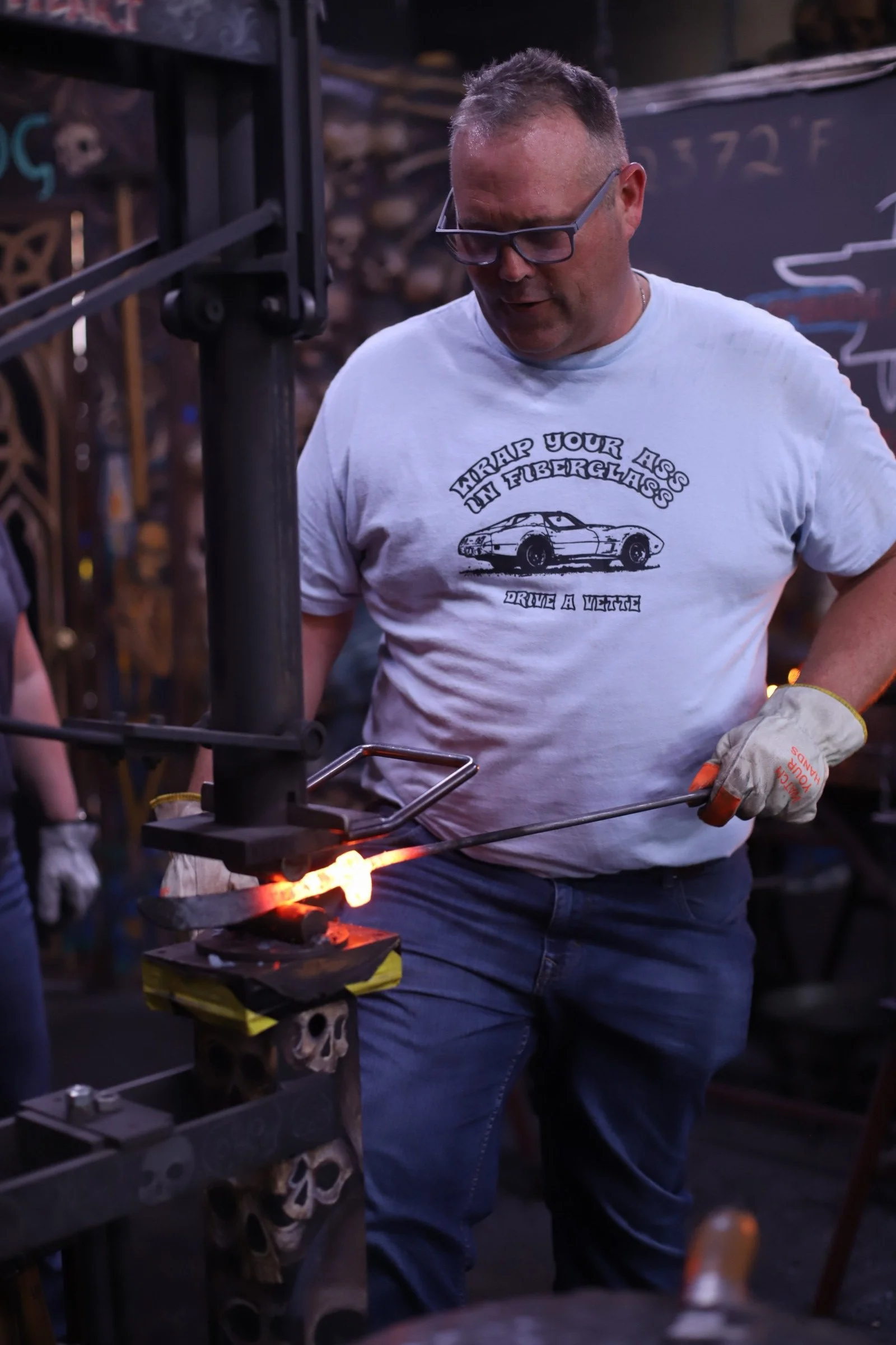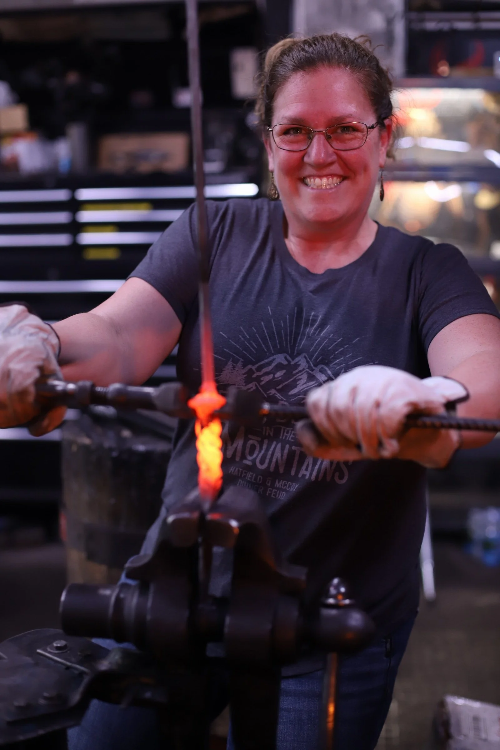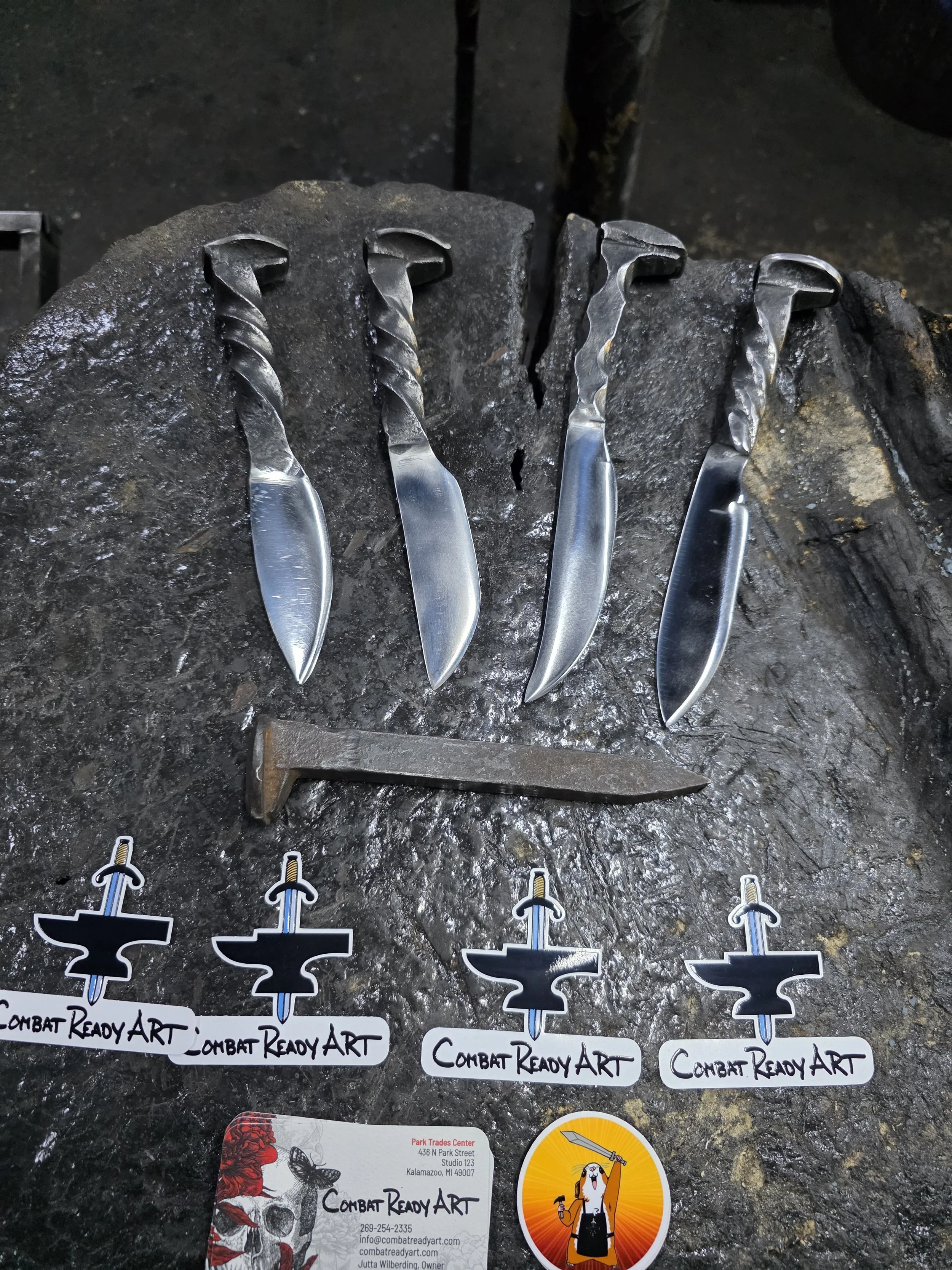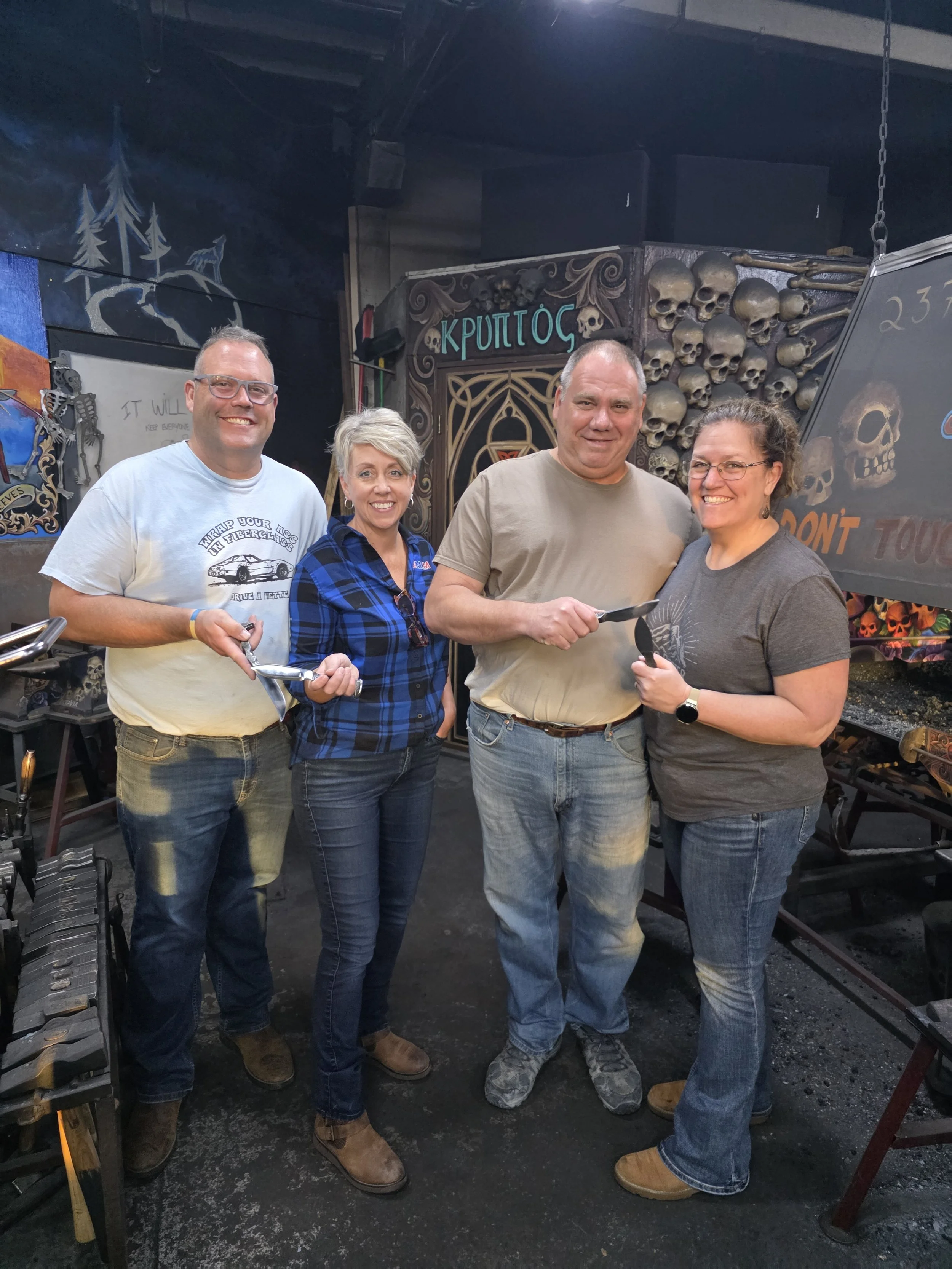 Lots of fun with these two couple tonight! They all did such a great job forging their first knives!