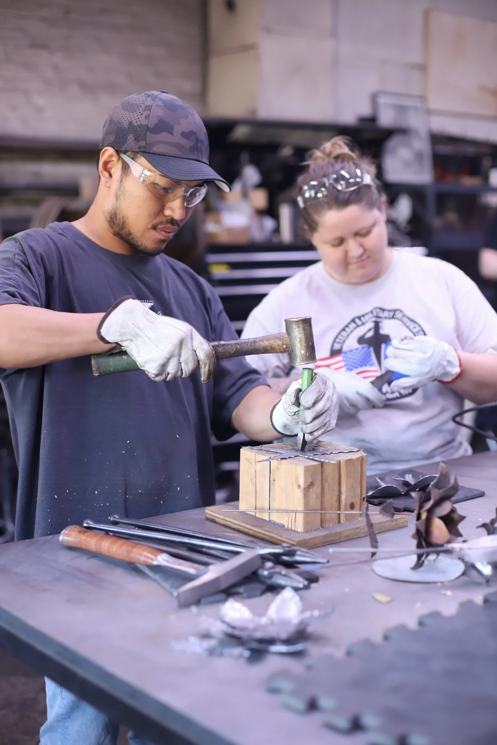 Wounded Warrior Project will always have a special place in my heart and in the forge. This morning they brought another great group of veterans from around Michigan to make Steel Flowers! Lots of fun, beautiful flowers, and always a good time with them!