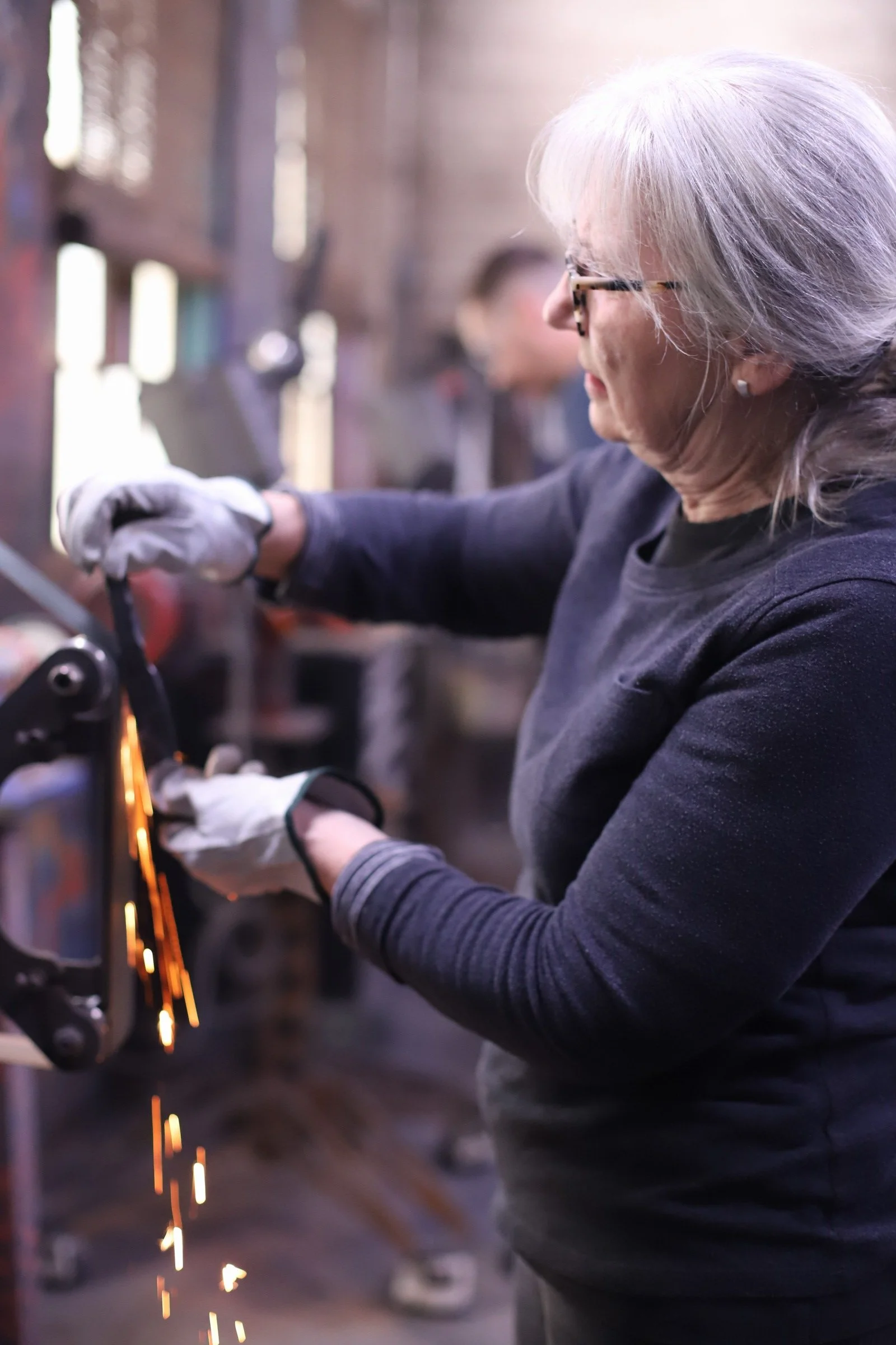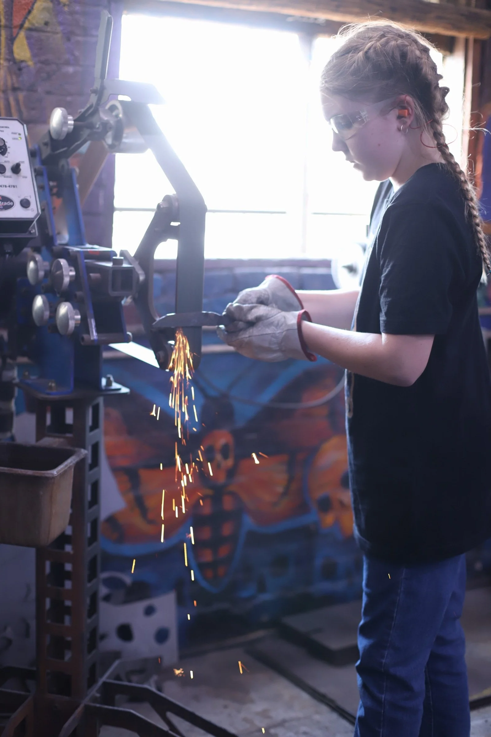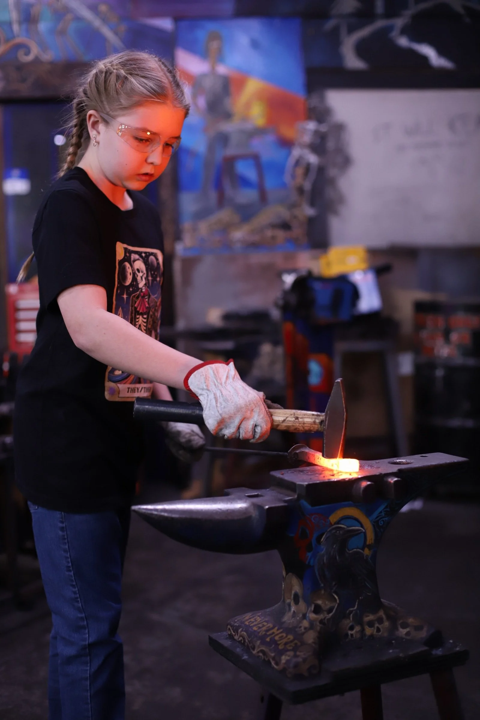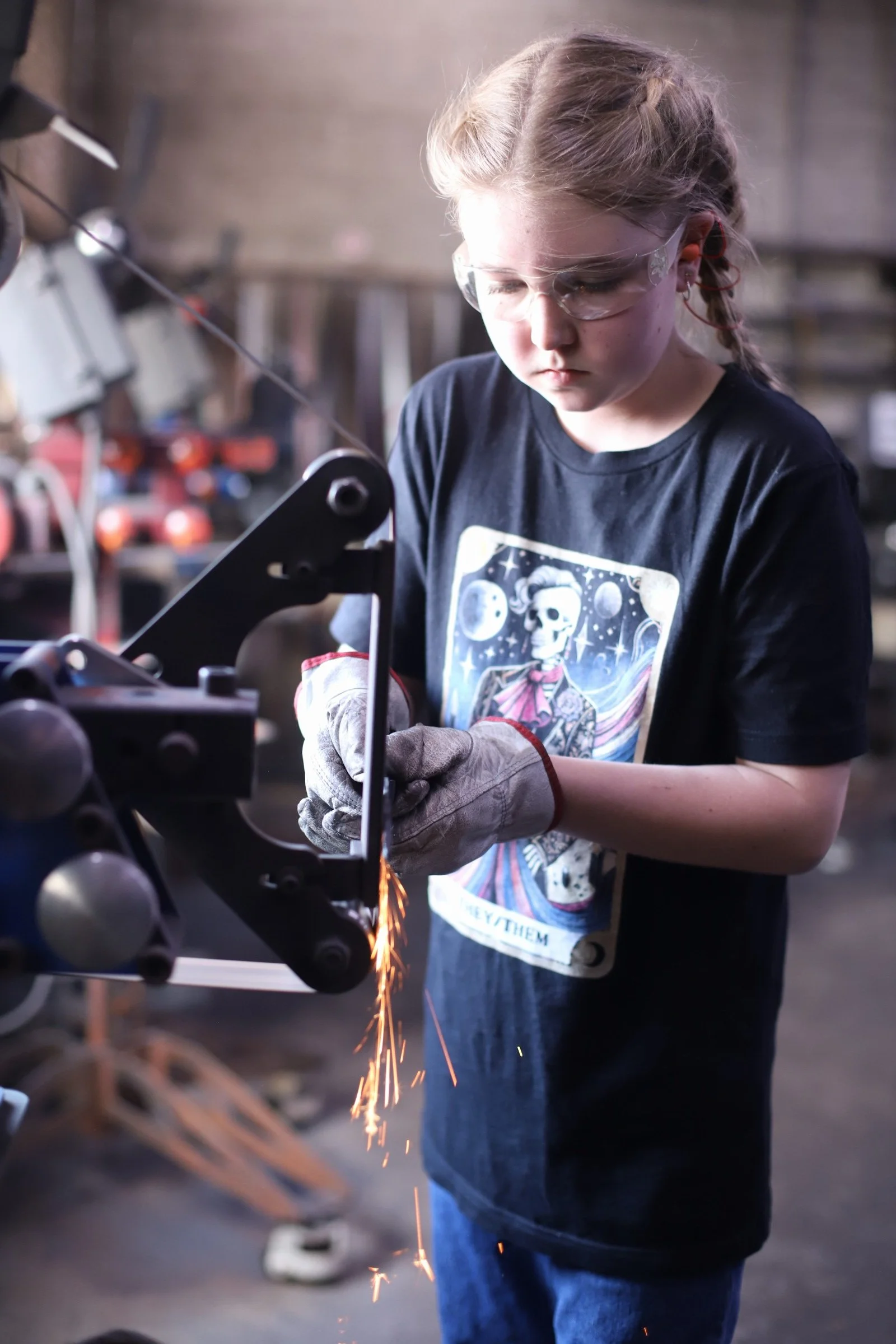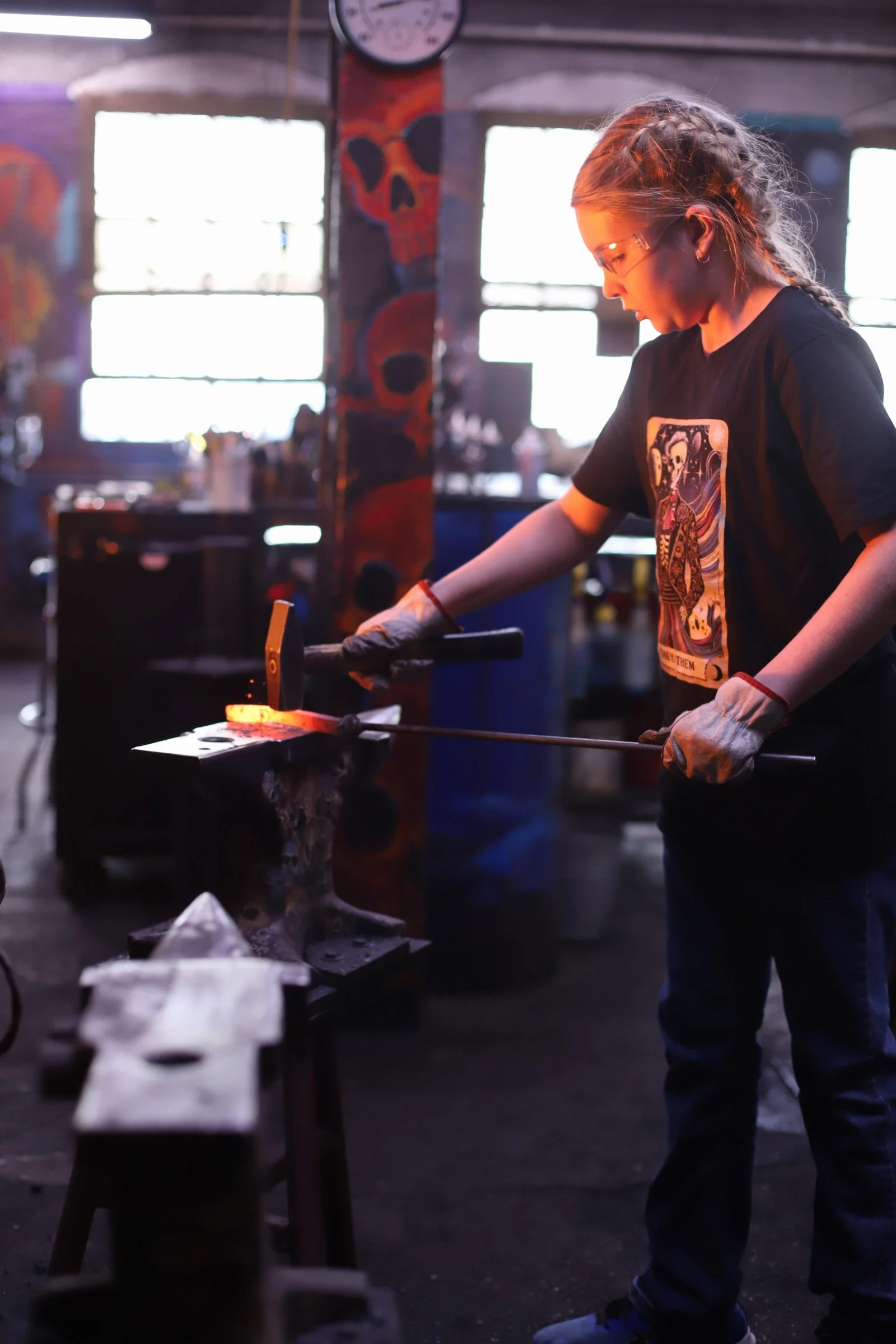 Gussy made a super shiny Railroad Spike Knife today in the forge! They're very interested in metalwork, but it was their first time blacksmithing. They did a fantastic job!
