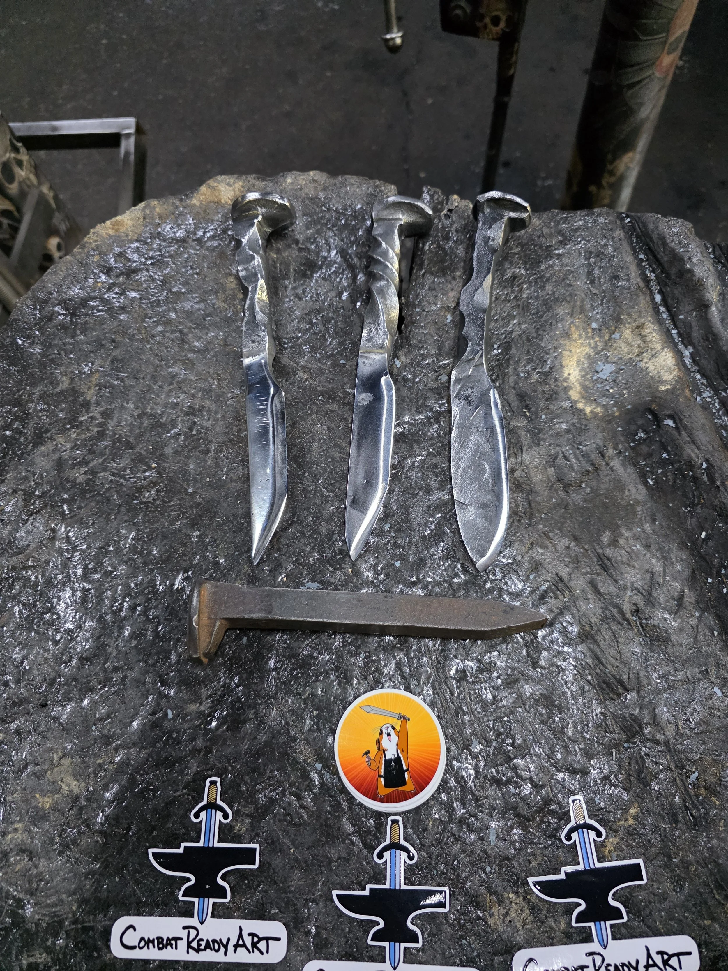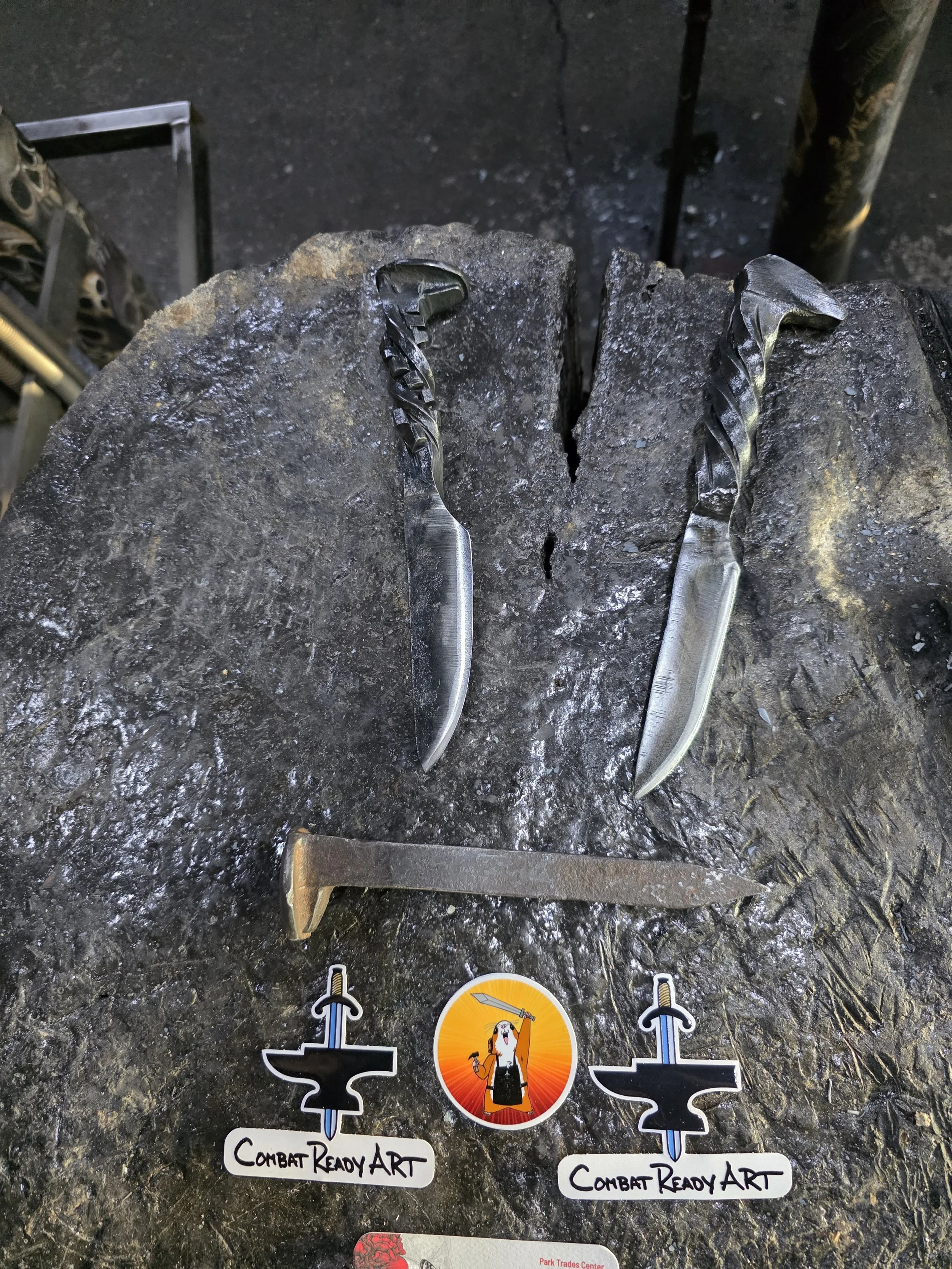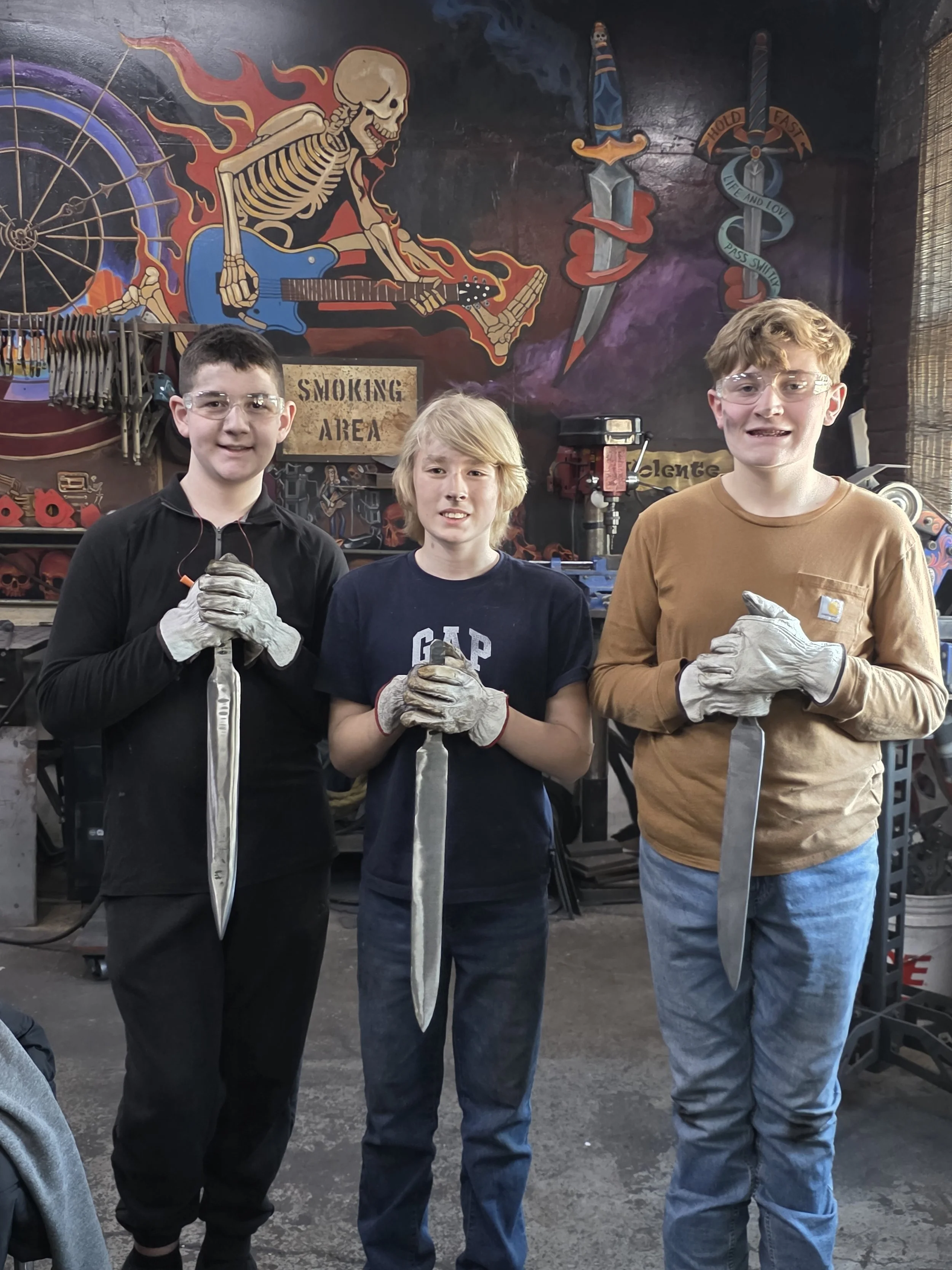 John brought his son and nephew to the forge today. They all made great Railroad Spike Knives!