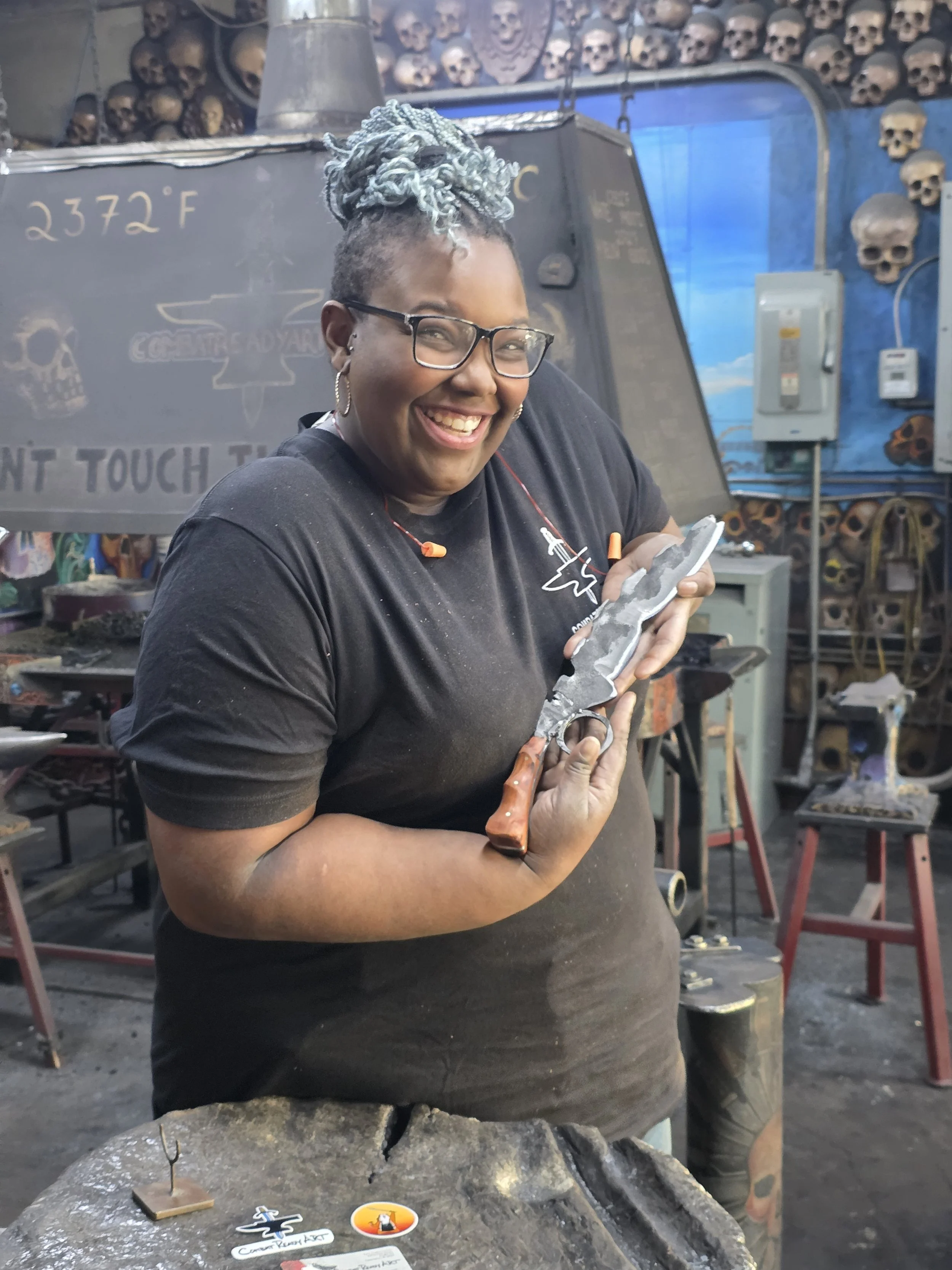 Breanna finished her Apocalypse Knife today! Apocalypse knives have no rules. They can be any shape, have pieces welded on, be as rough as you want. Breanna's is fantastic!