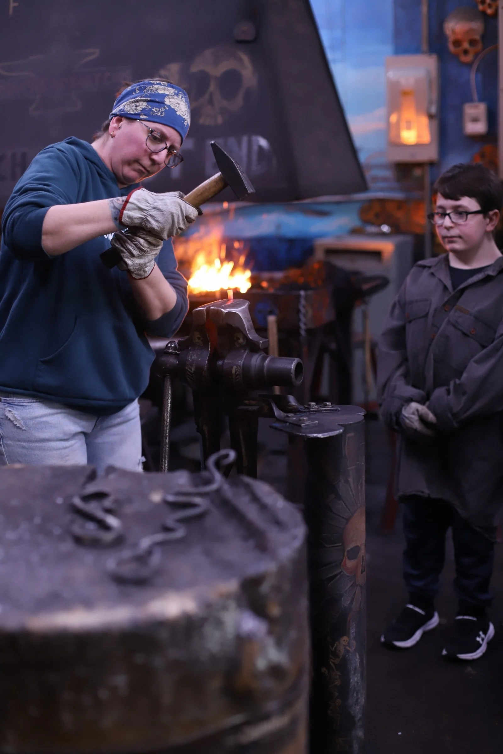 Mother-Son Blacksmithing! What a fun class with these two!