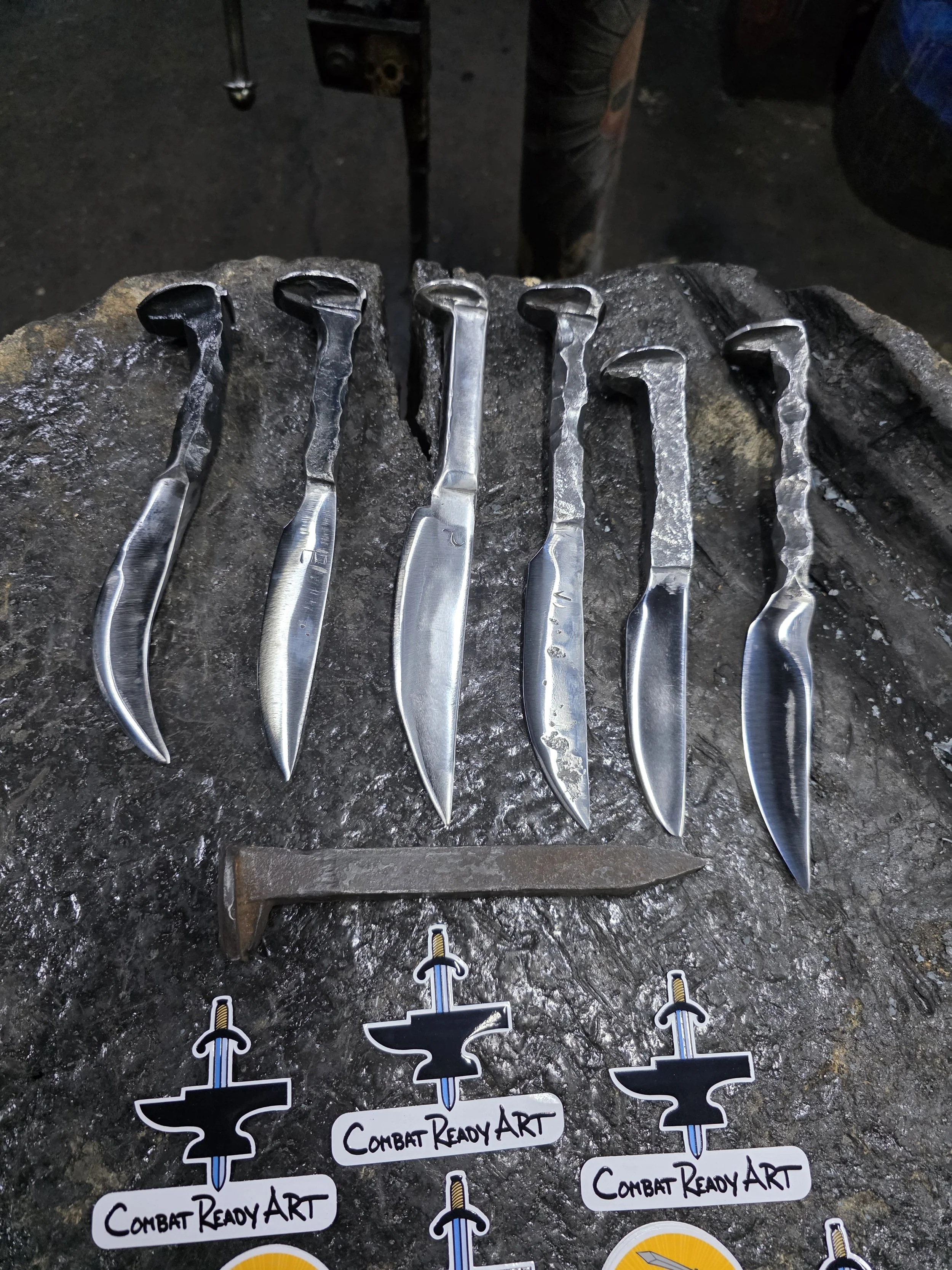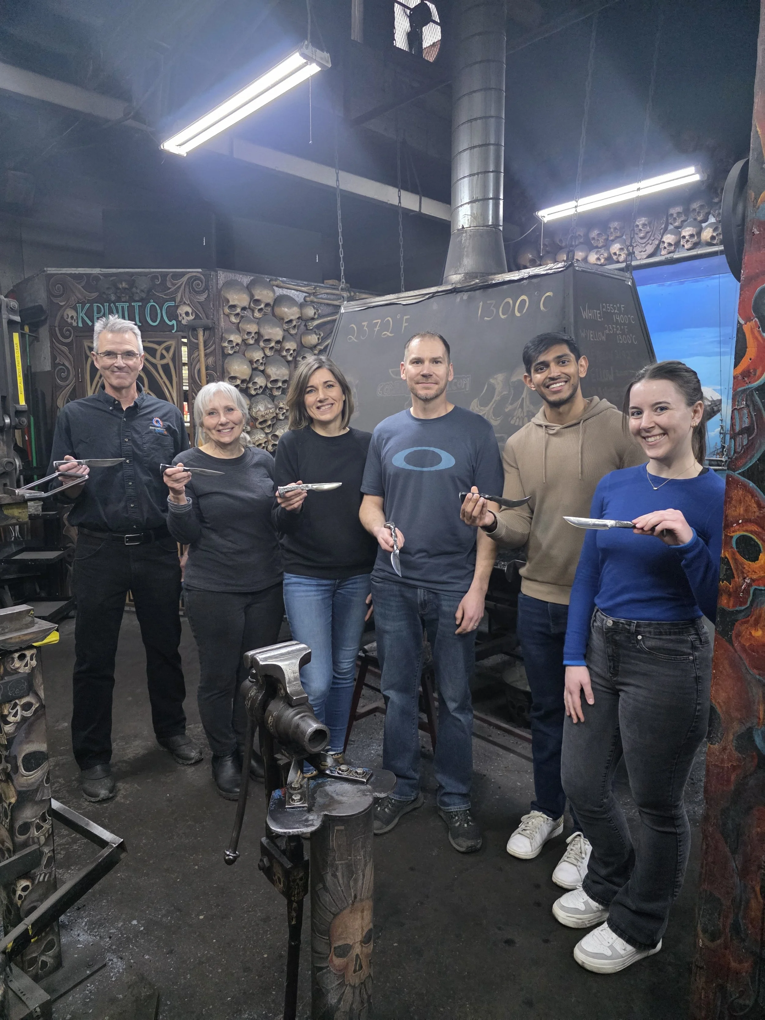 Great family in the forge today. They made some of the sharpest Railroad Spike Knives I've seen! (Plus they're German and knew how to pronounce my name). Lots fun of with them!