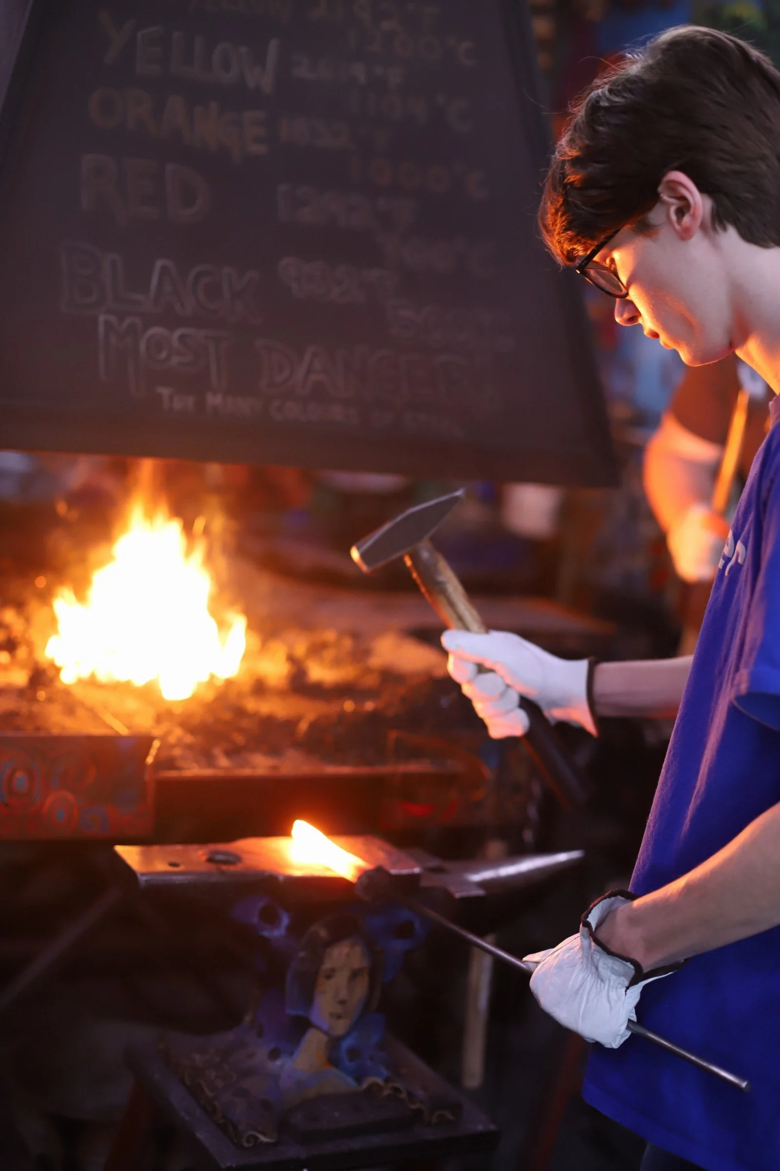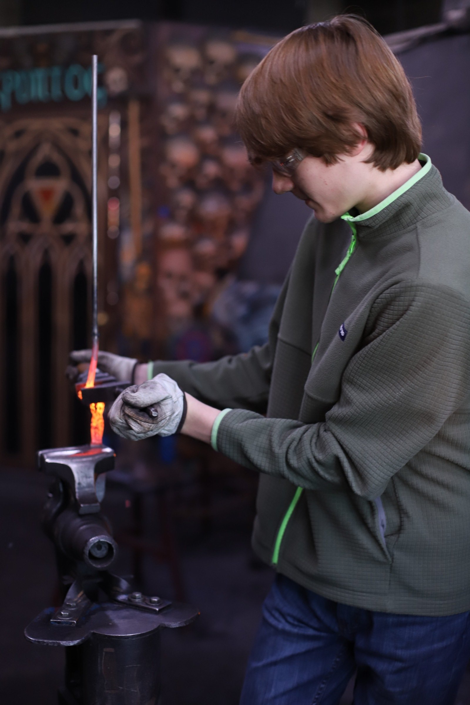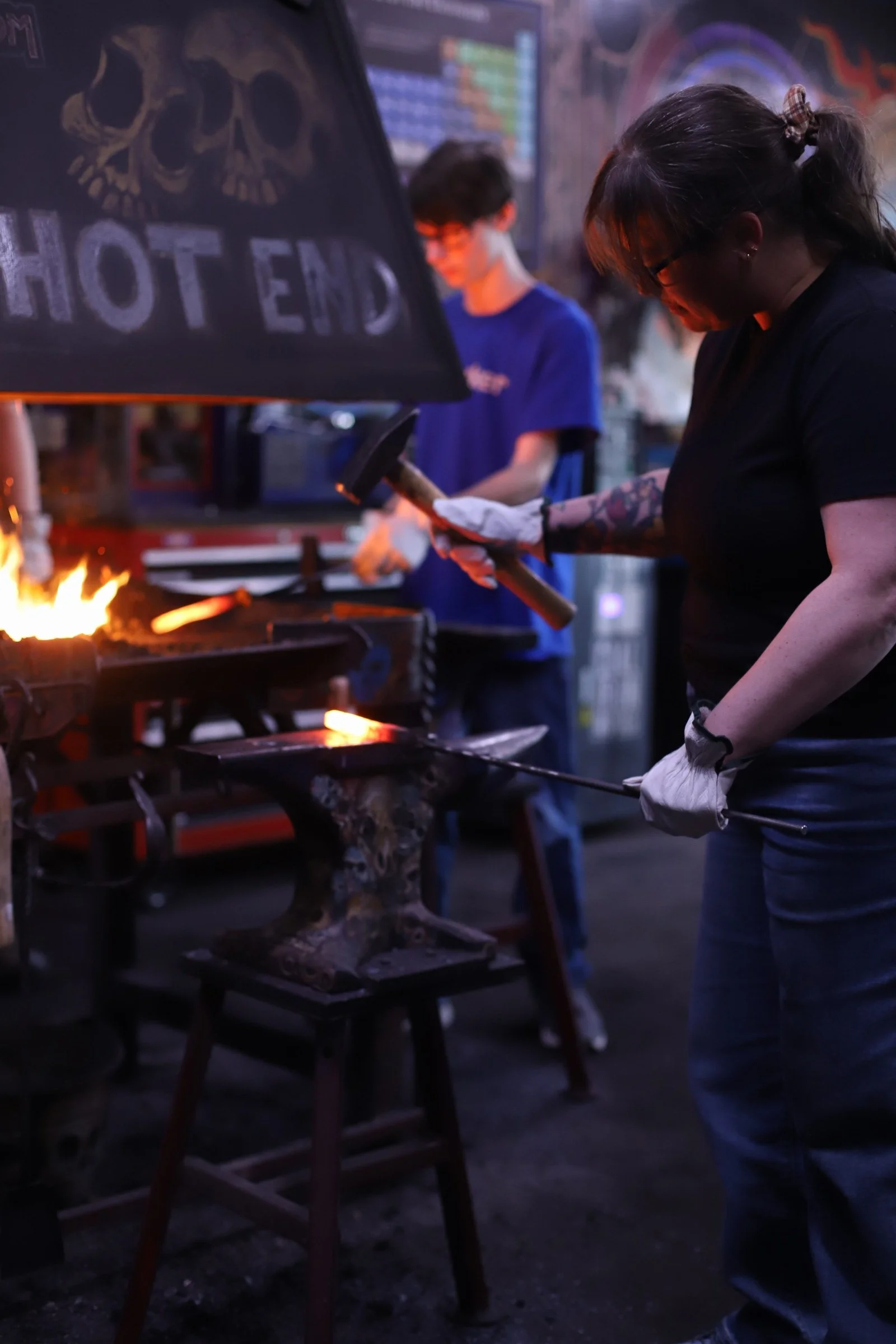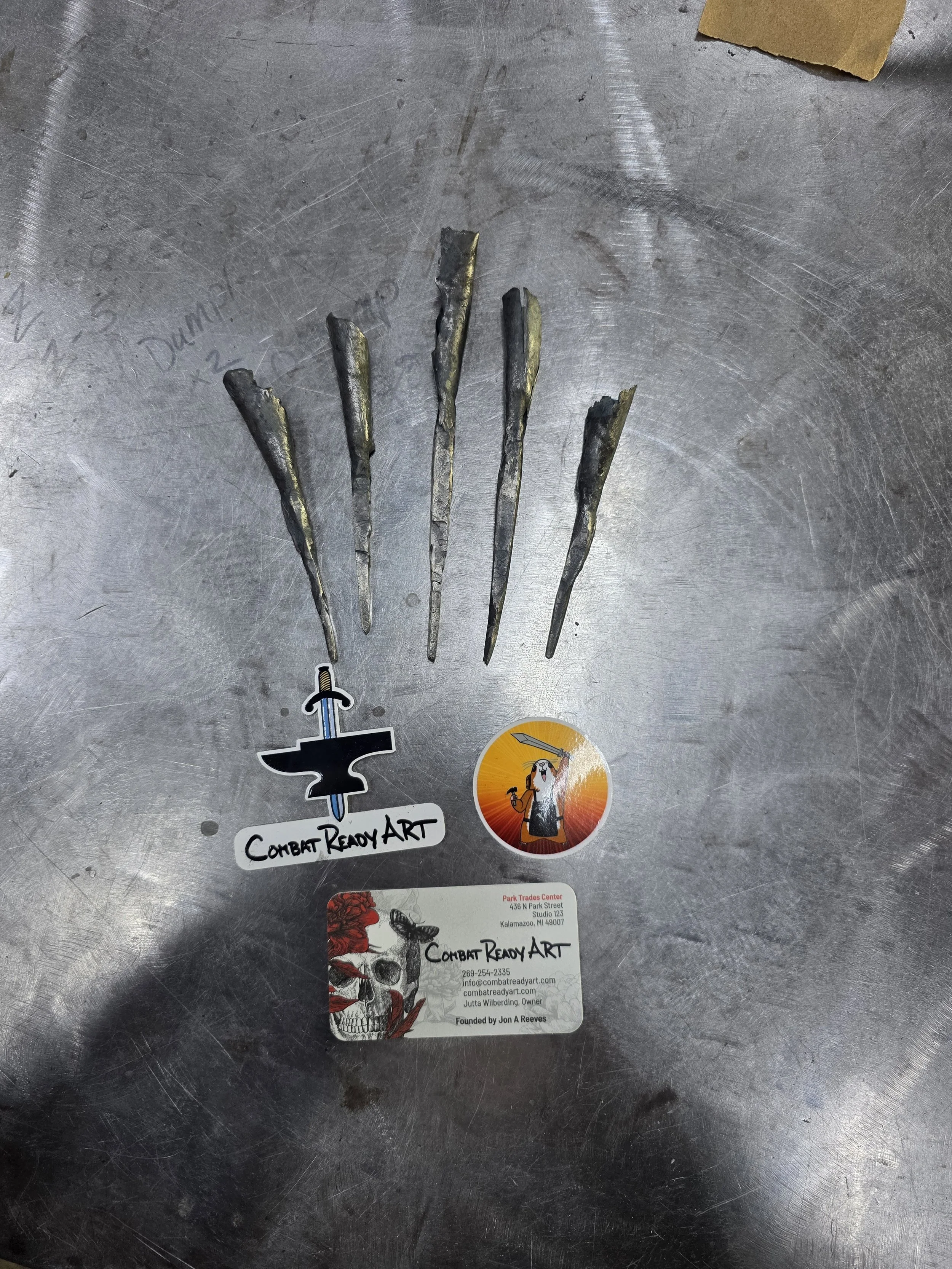 New member of the Guinea Pig Club! Stu's son arranged a class for him for Christmas to make bodkin arrowheads. Coincidentally, bodkins are the current speciality of the shop squire (aka my youngest). Students did great with his first time blacksmithing! And its always fun to have a new project in the forge.