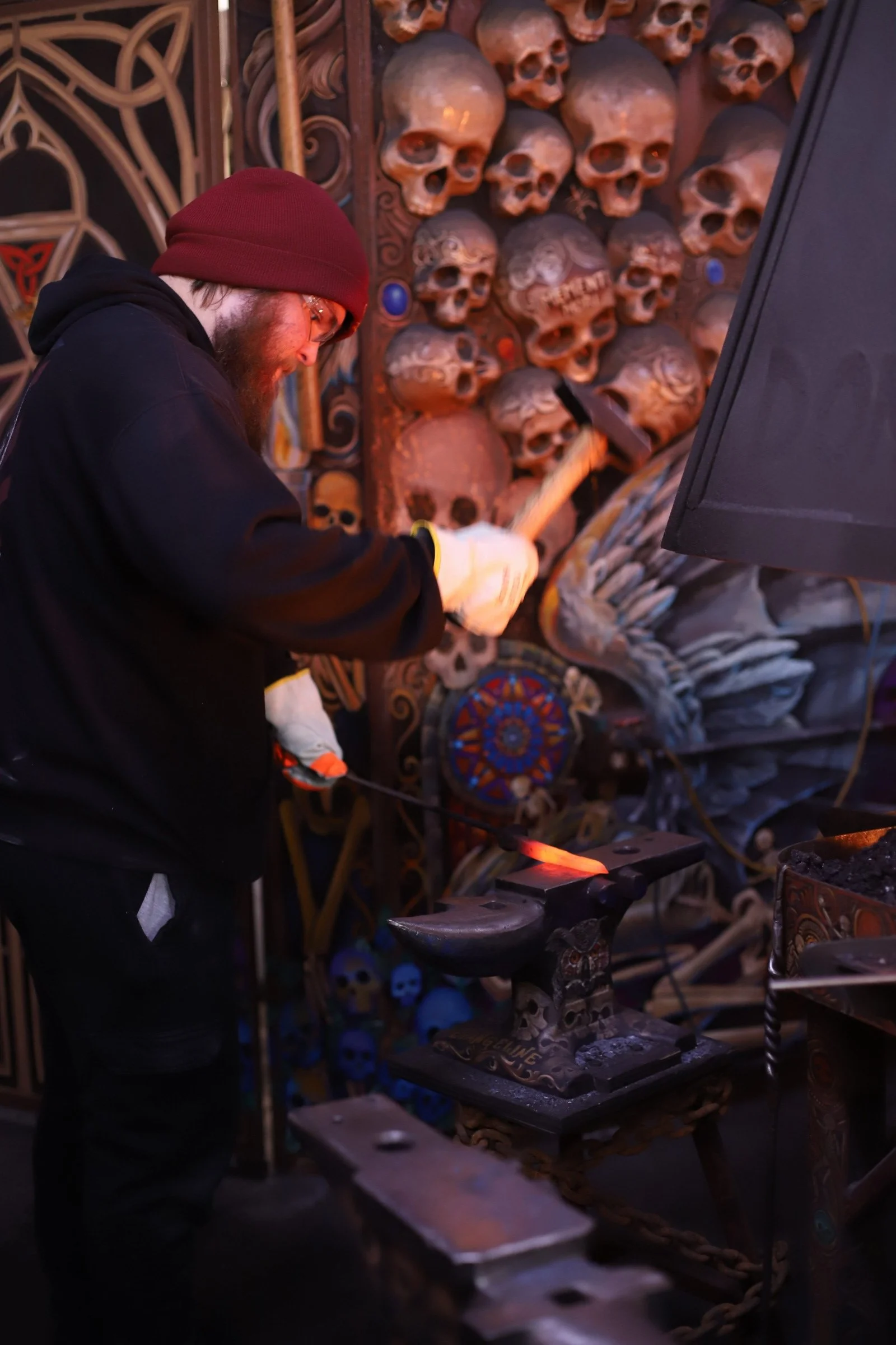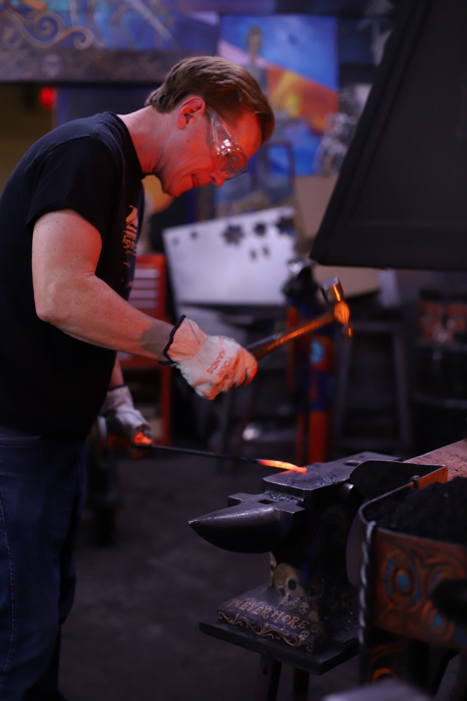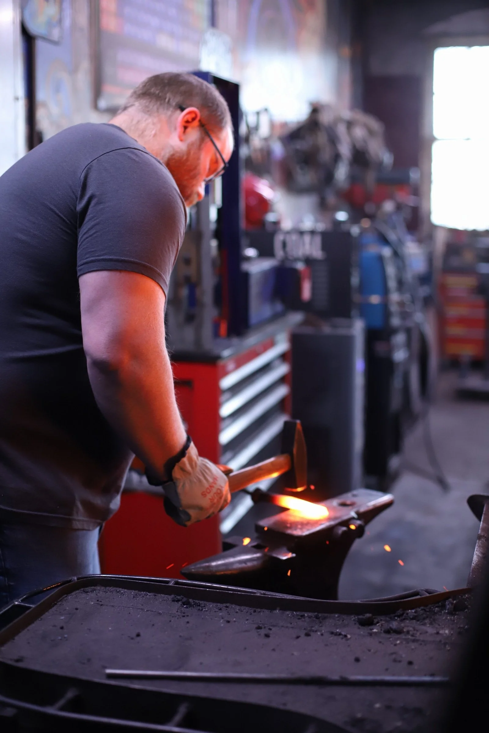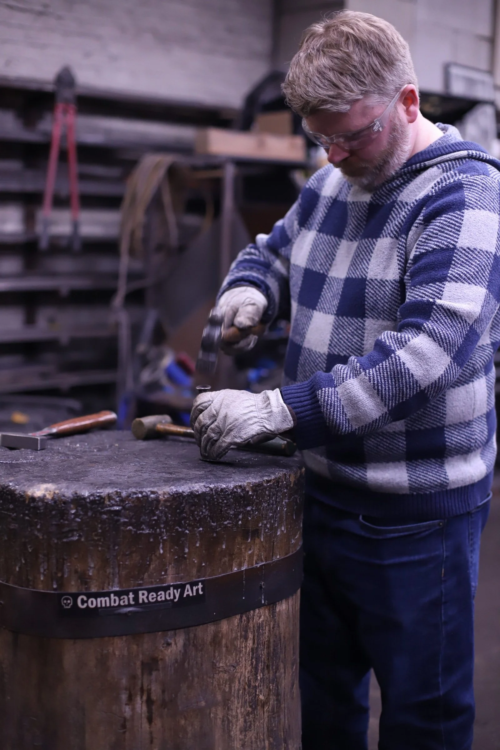 New member of the Guinea Pig Club! Stu's son arranged a class for him for Christmas to make bodkin arrowheads. Coincidentally, bodkins are the current speciality of the shop squire (aka my youngest). Students did great with his first time blacksmithing! And its always fun to have a new project in the forge.