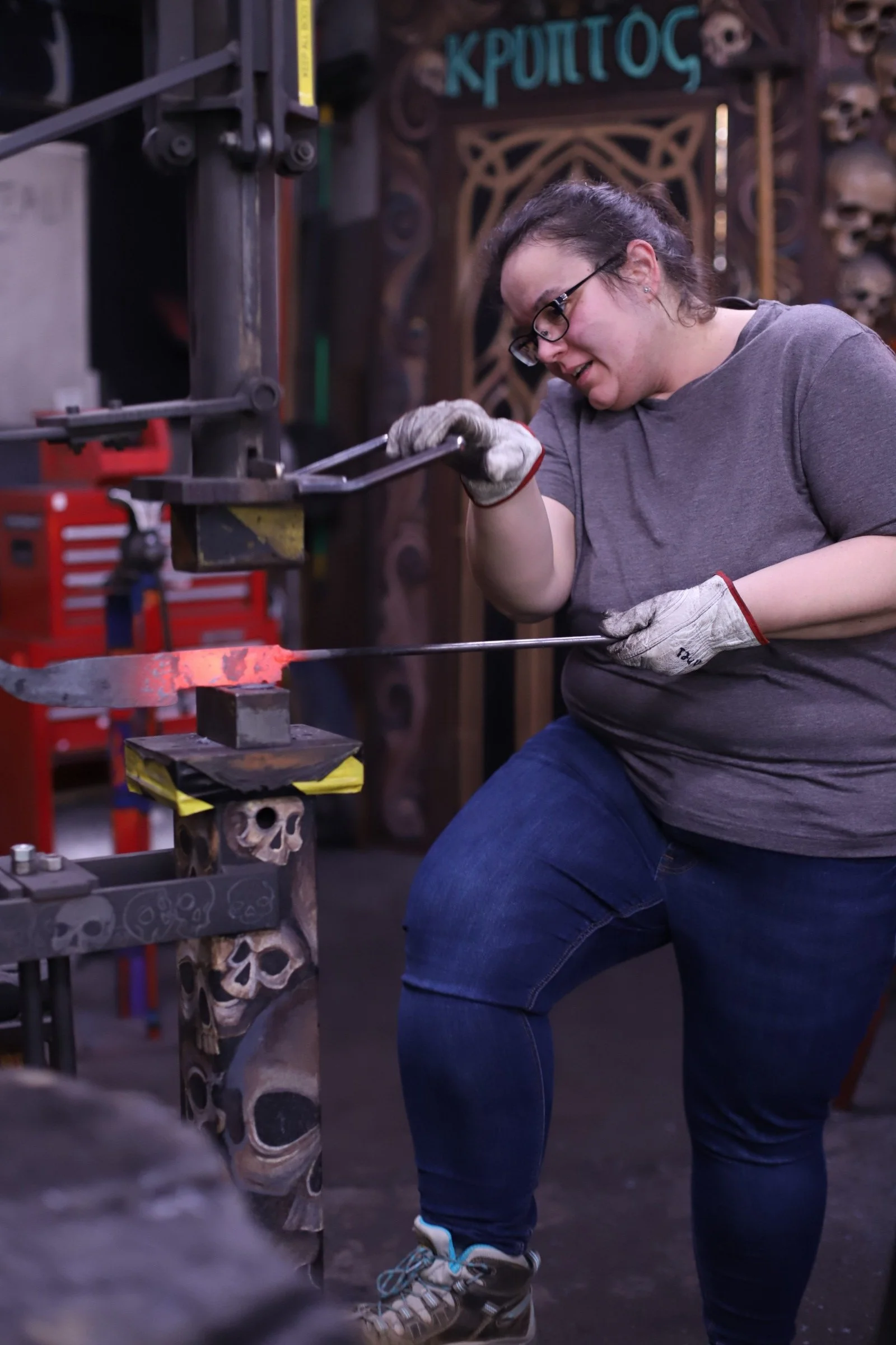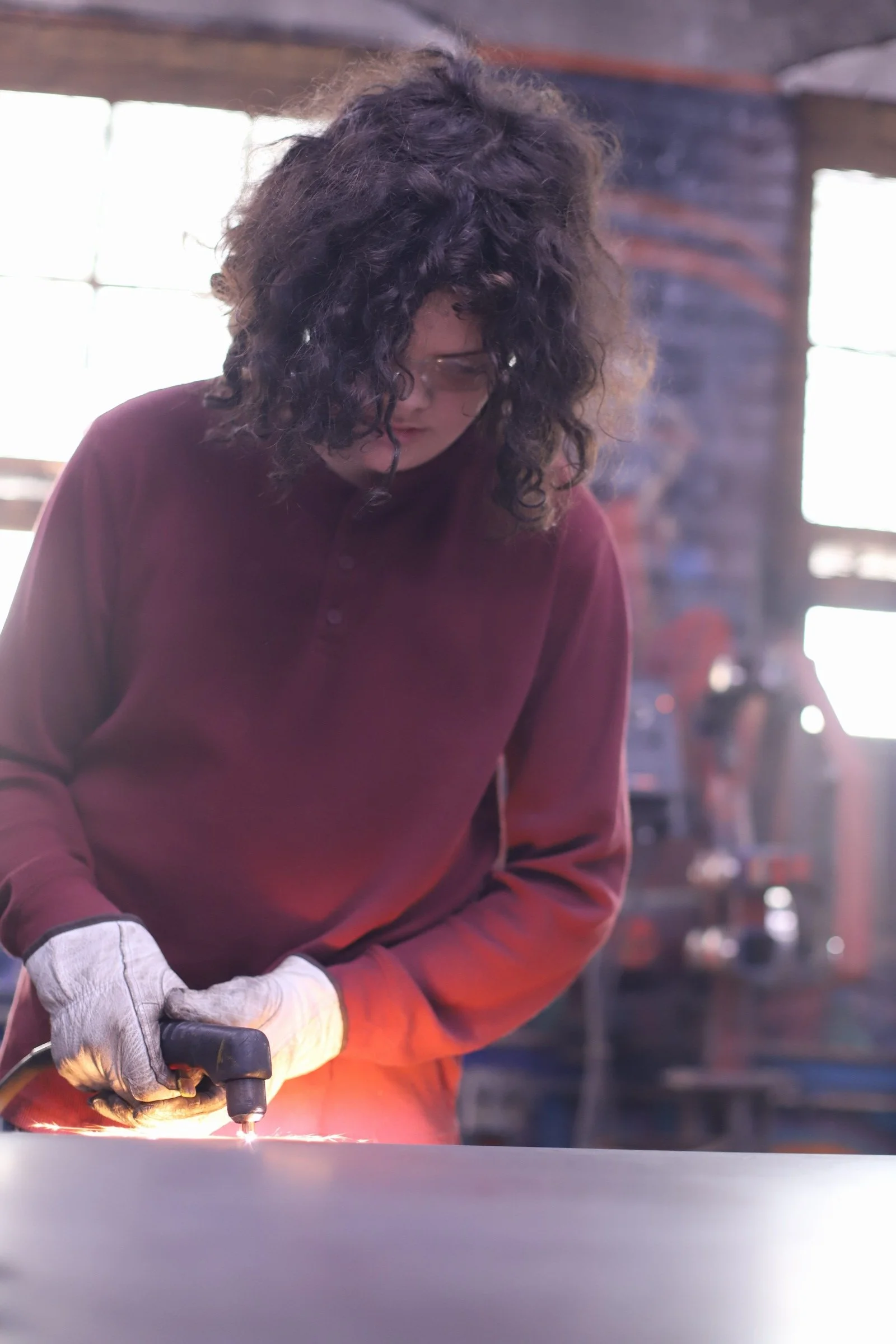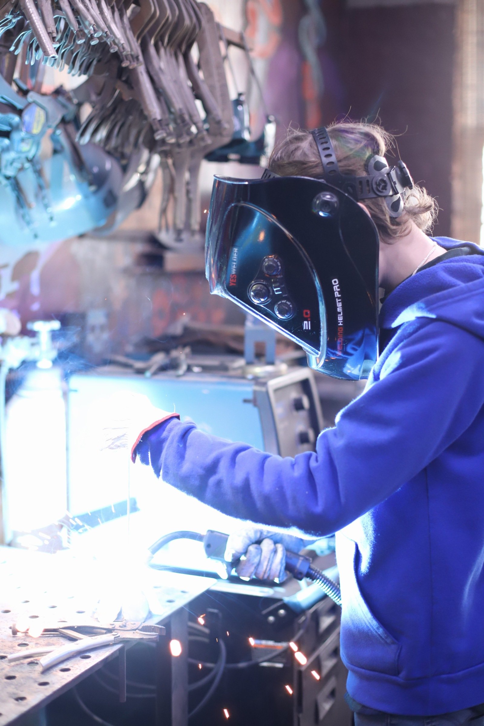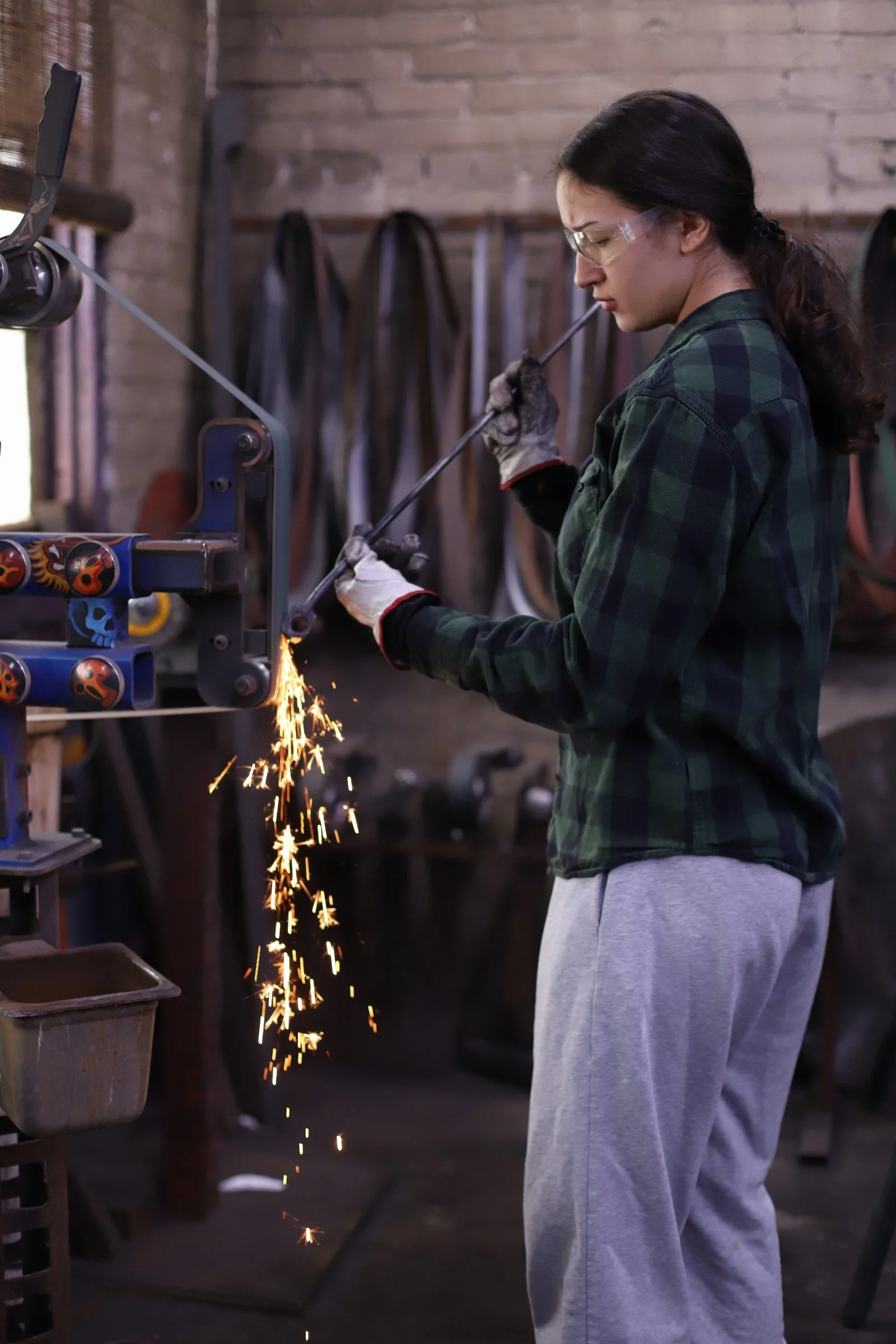 She said she had no experience at all but said she was an "incredibly hard worker, determined, and a fast learner." She was not wrong! She learned every part of making the damascus, even welding the billet.