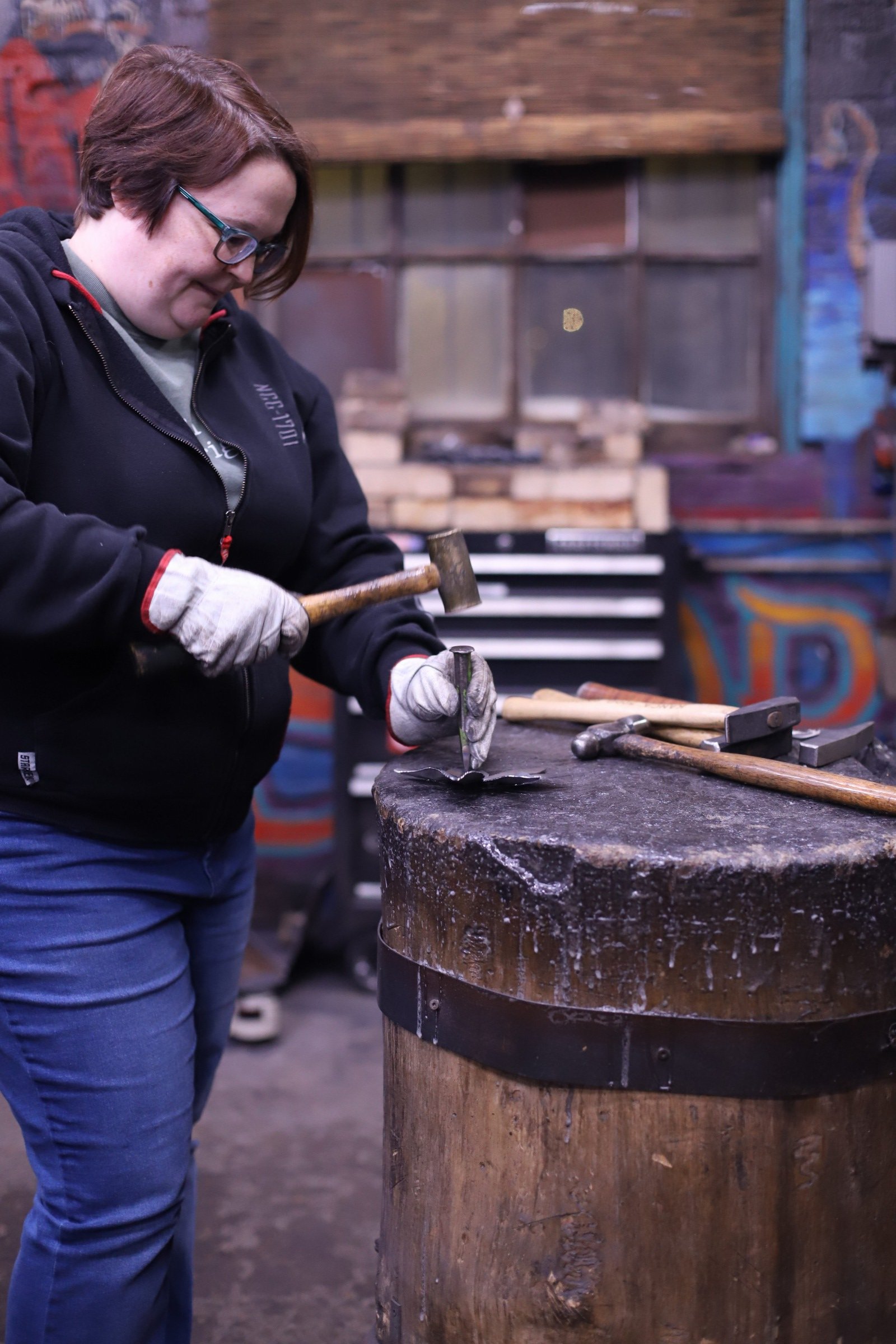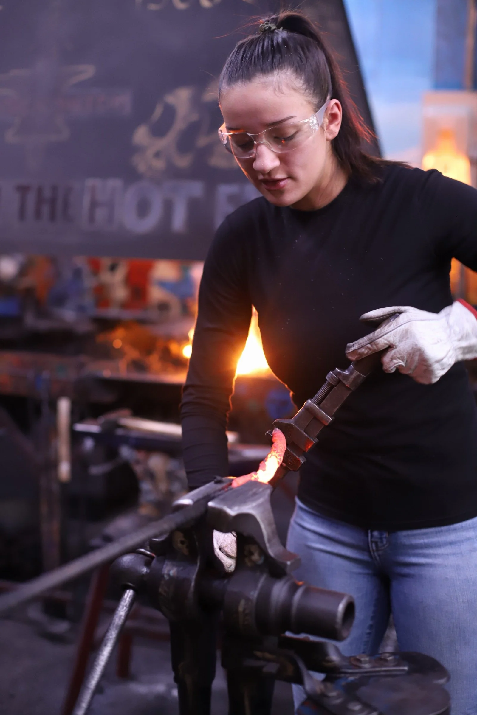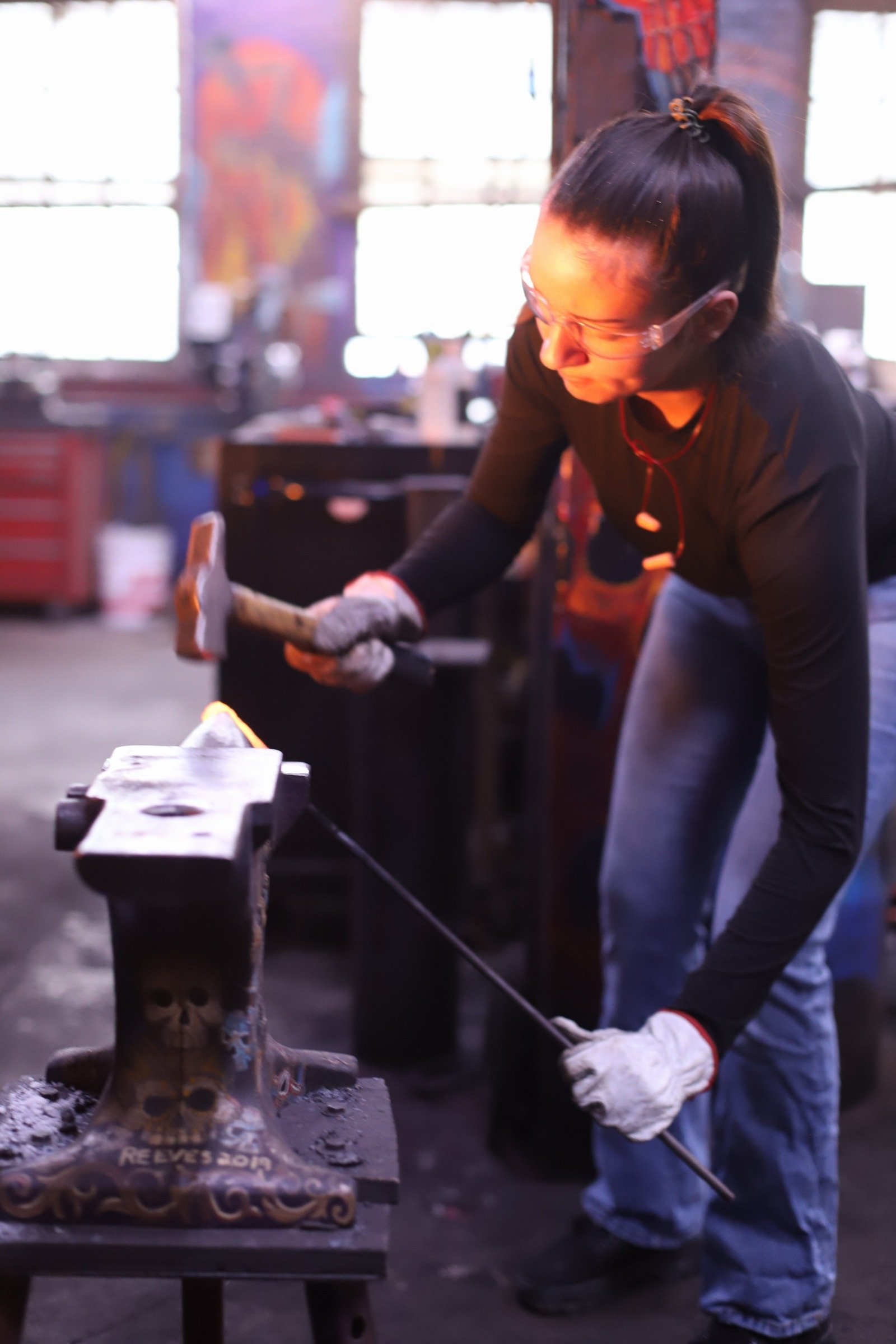 She said she had no experience at all but said she was an "incredibly hard worker, determined, and a fast learner." She was not wrong! She learned every part of making the damascus, even welding the billet.