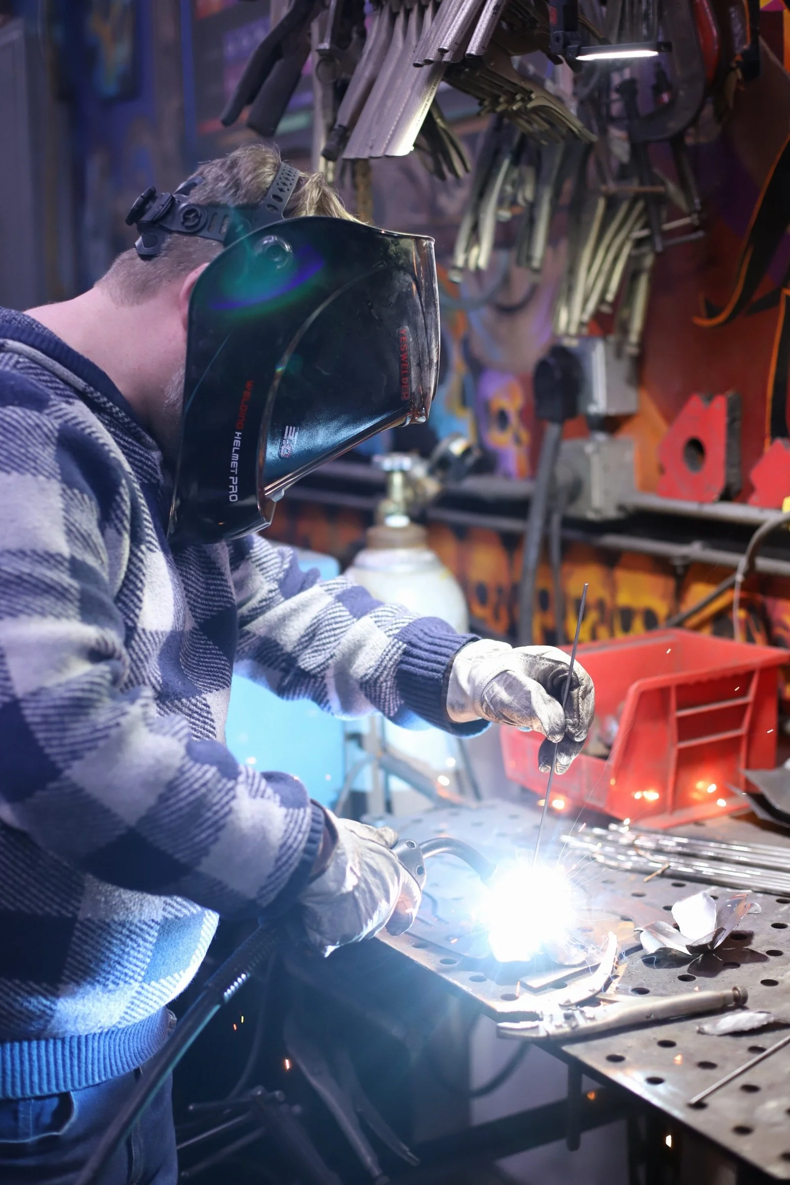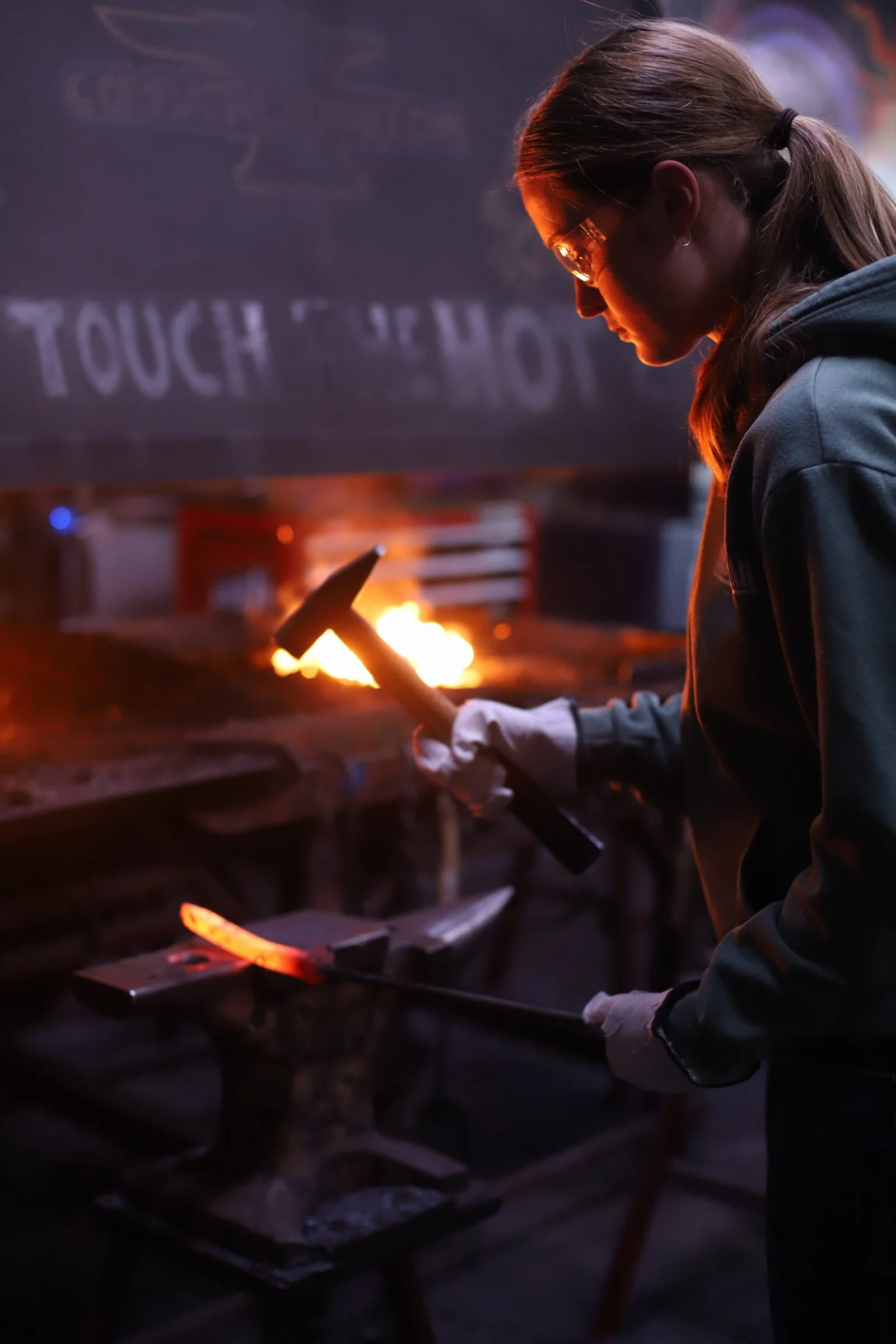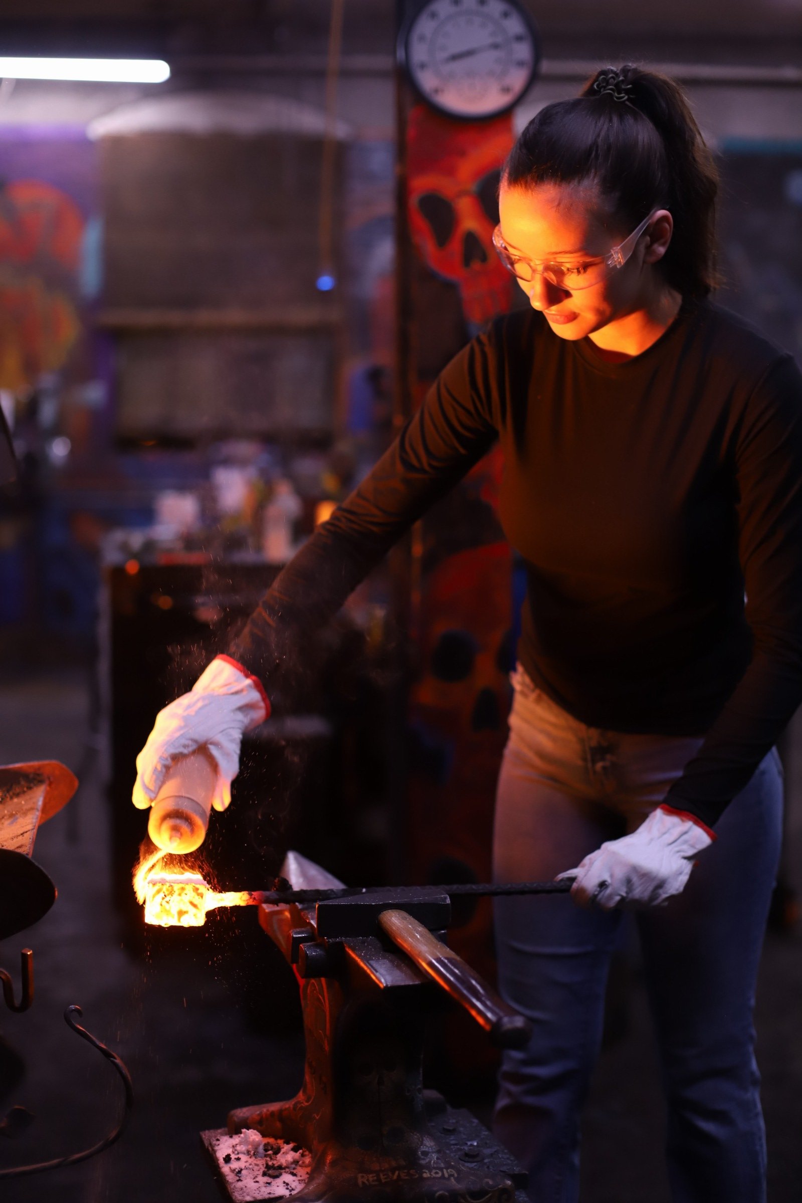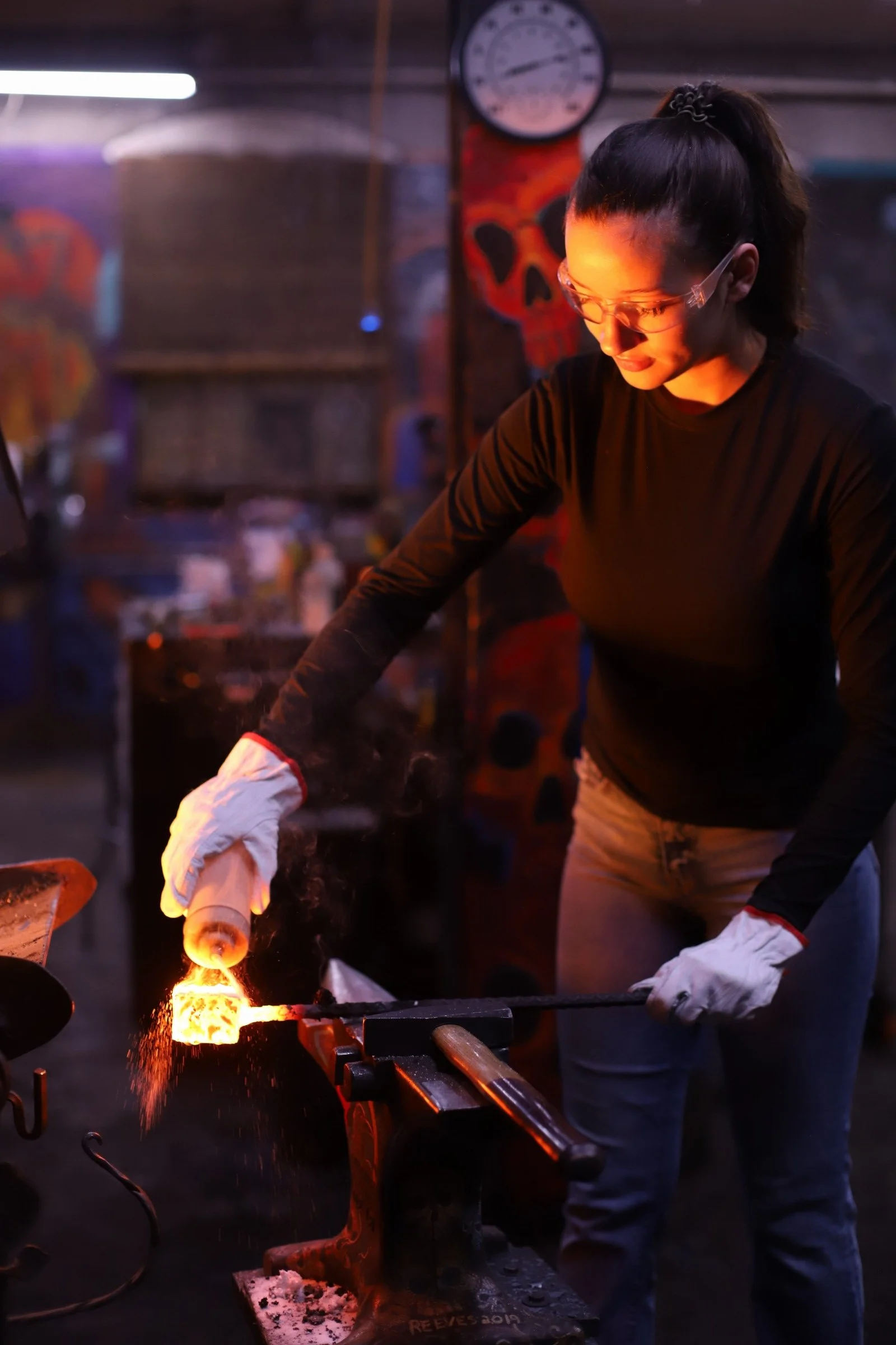 She said she had no experience at all but said she was an "incredibly hard worker, determined, and a fast learner." She was not wrong! She learned every part of making the damascus, even welding the billet.