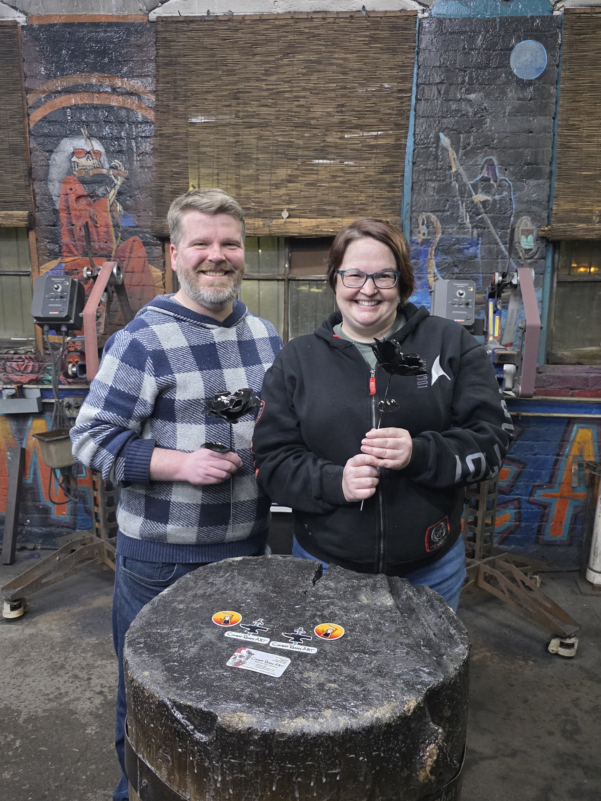 Coty and Kevin were back tonight to make steel flowers! Beautiful work!