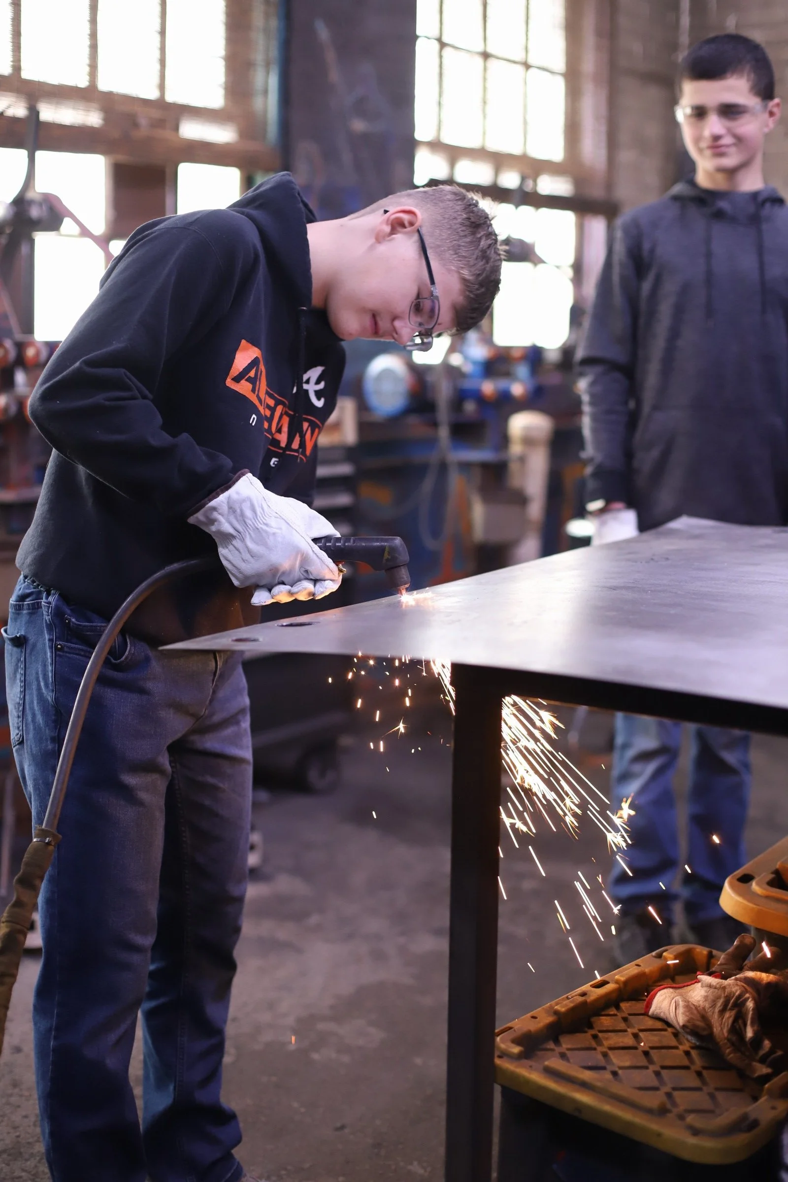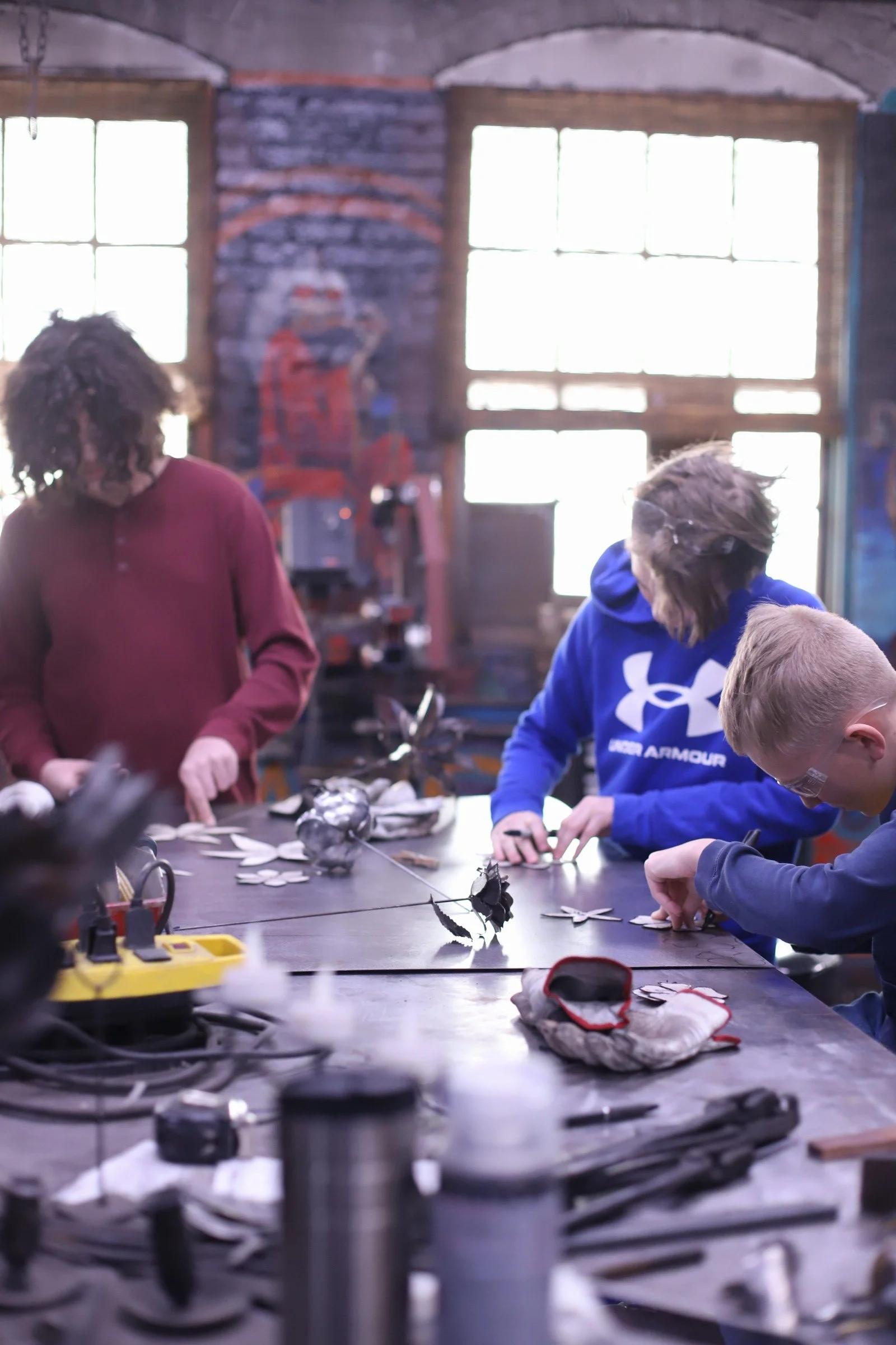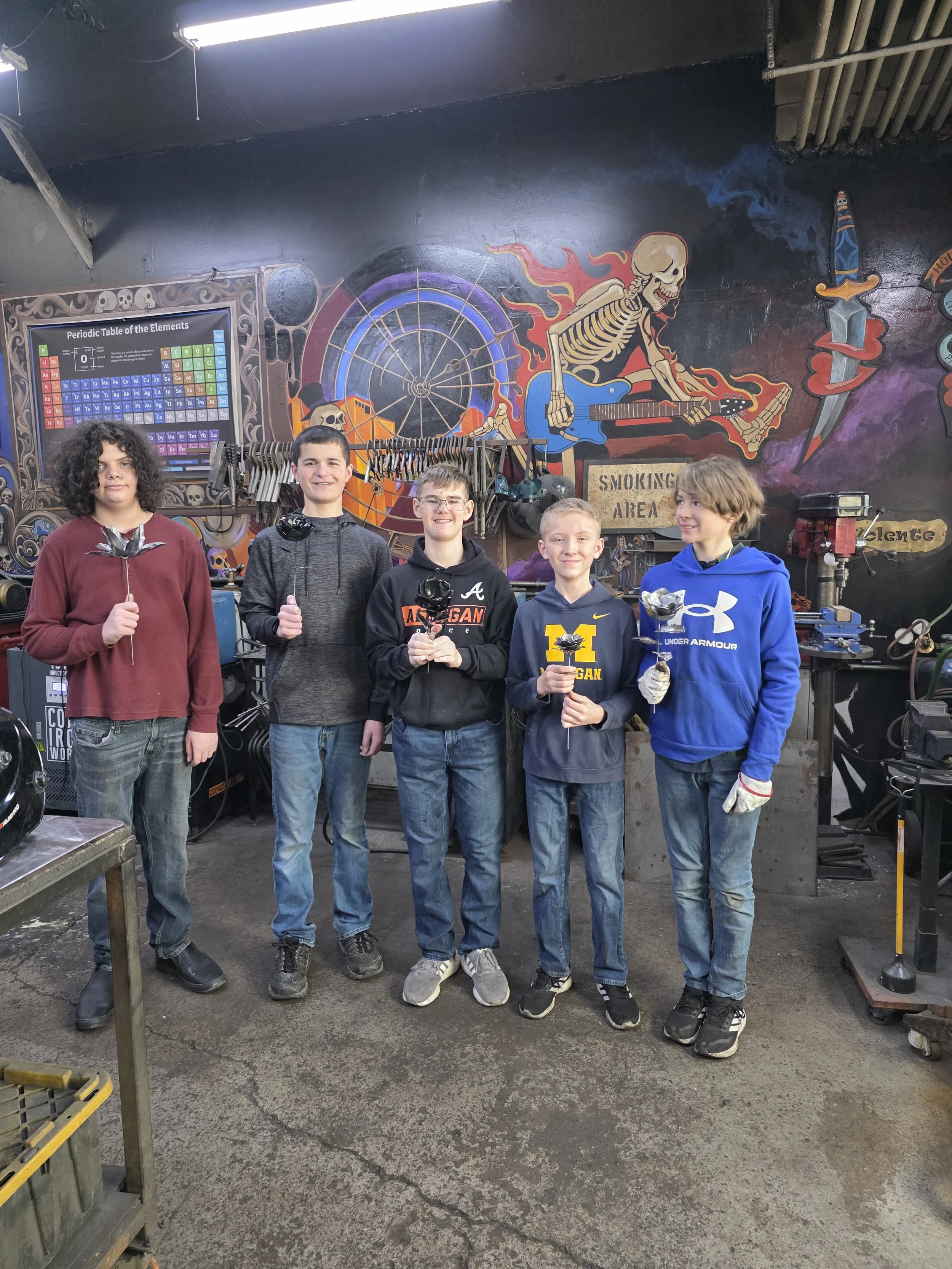 Steel Flower month for the Level 1 homeschoolers! The first group did a great job with plasma cutting, cold shaping steel, and welding!