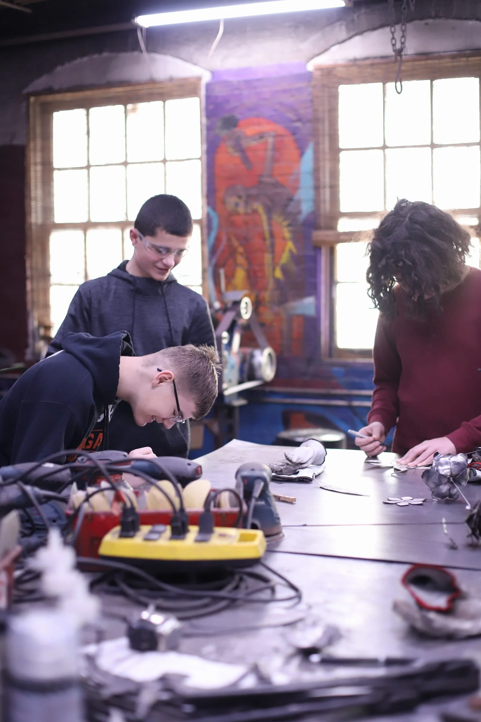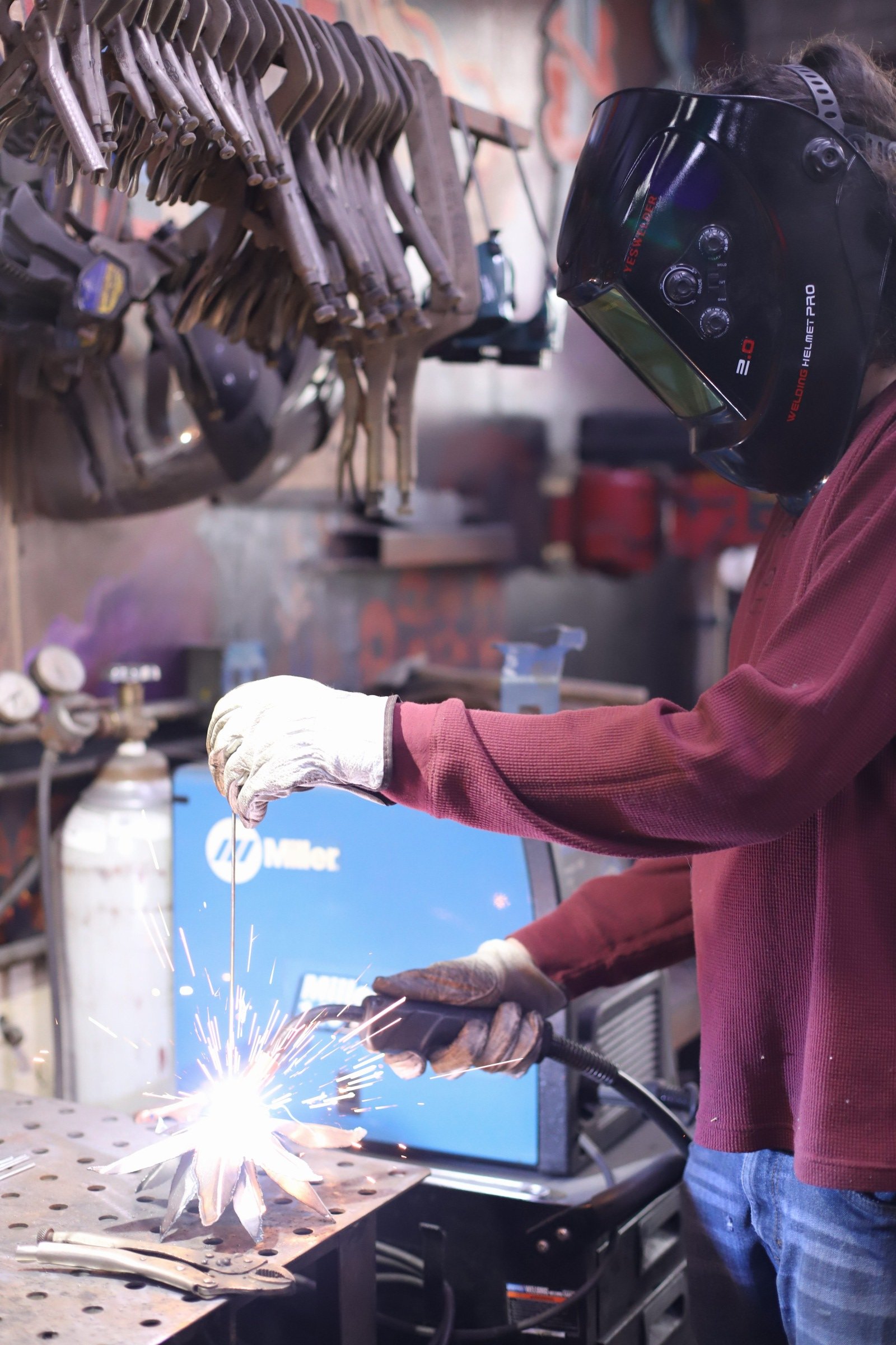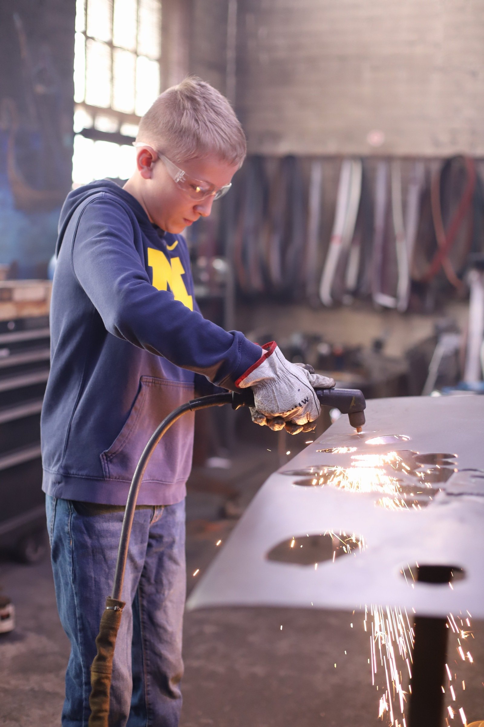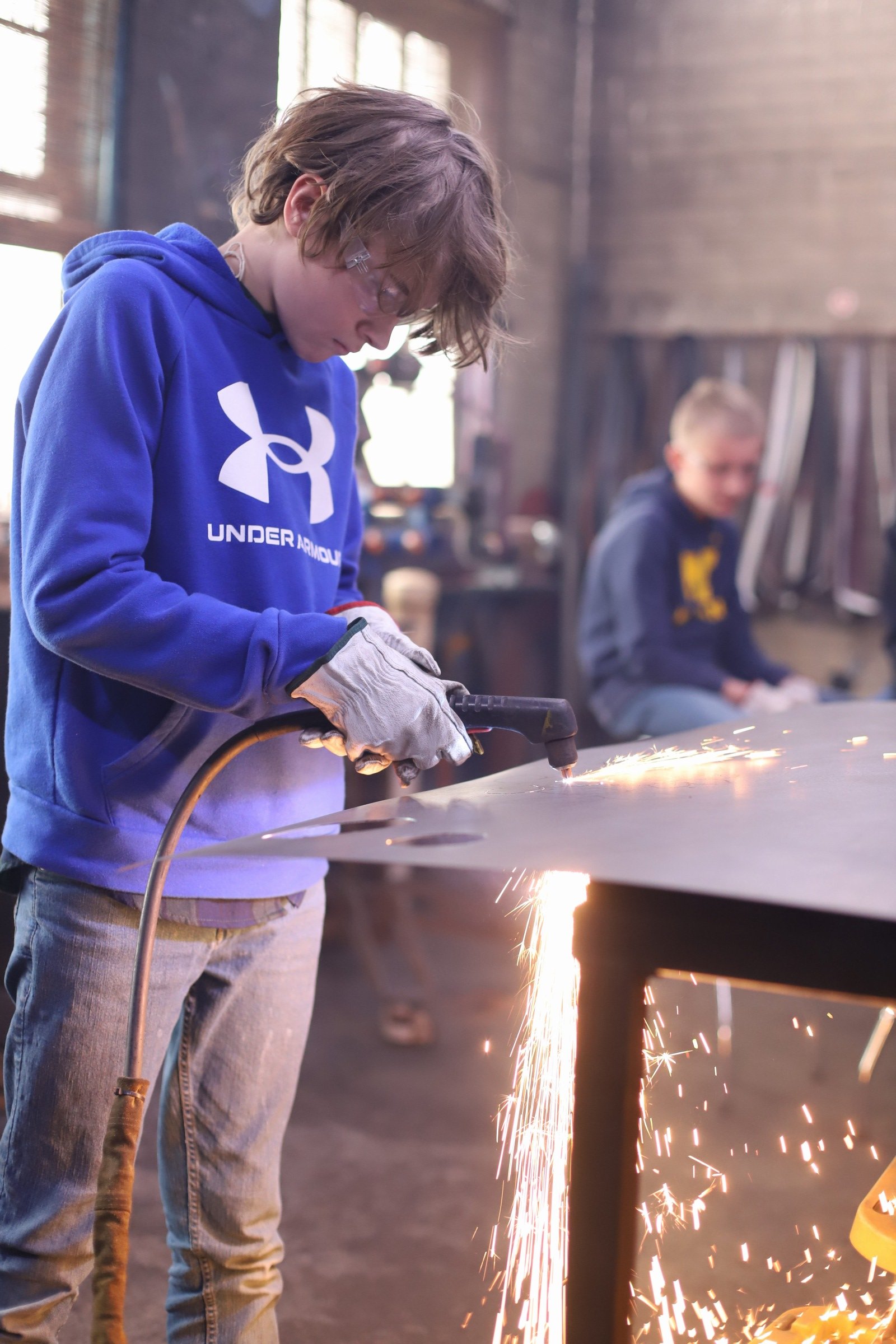 Steel Flower month for the Level 1 homeschoolers! The first group did a great job with plasma cutting, cold shaping steel, and welding!