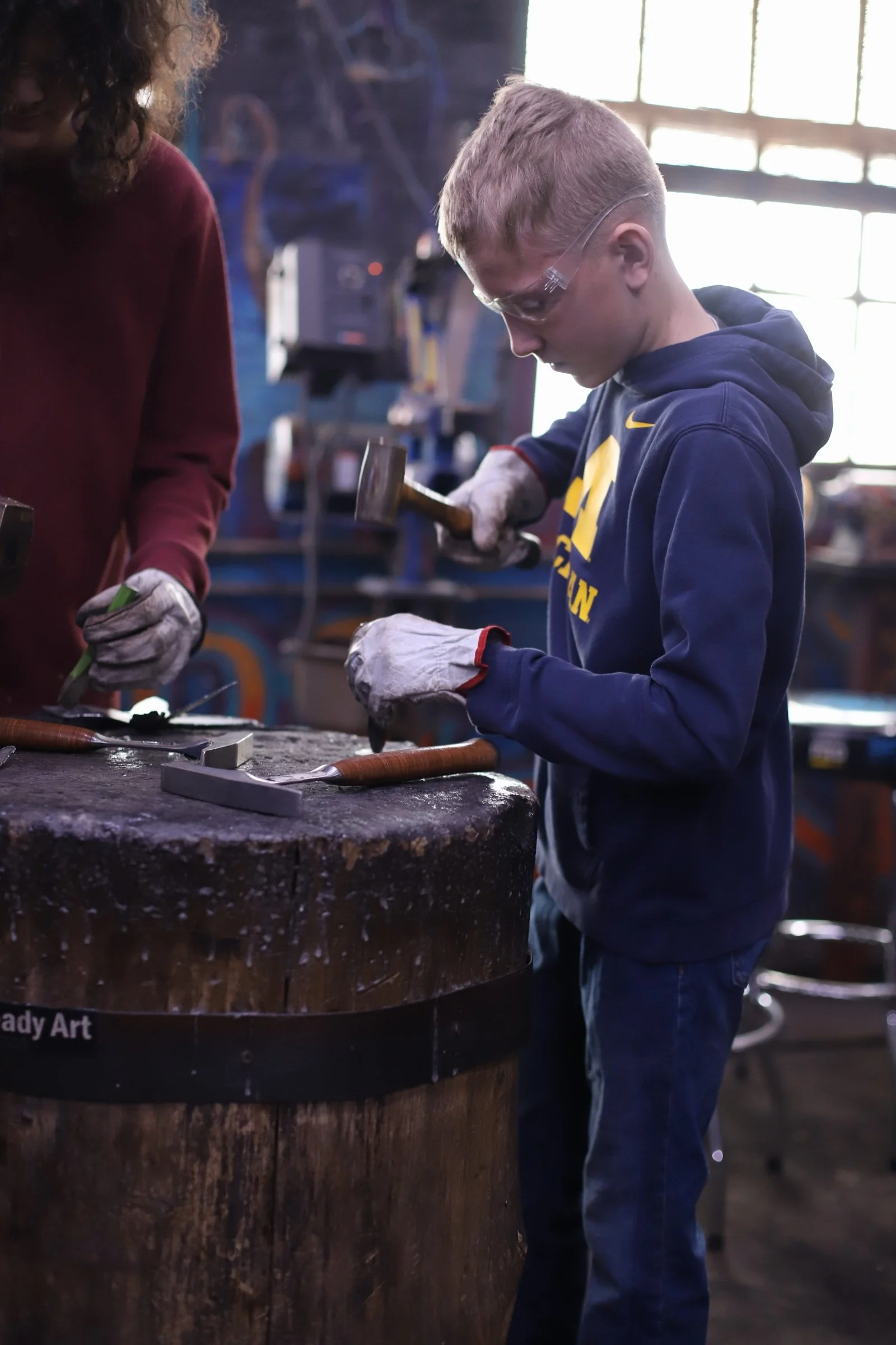 Birthday Knifemaking! Jacob's parents brought him to the forge for his birthday! They made great Railroad Spike Knives, and are already planning their swords!