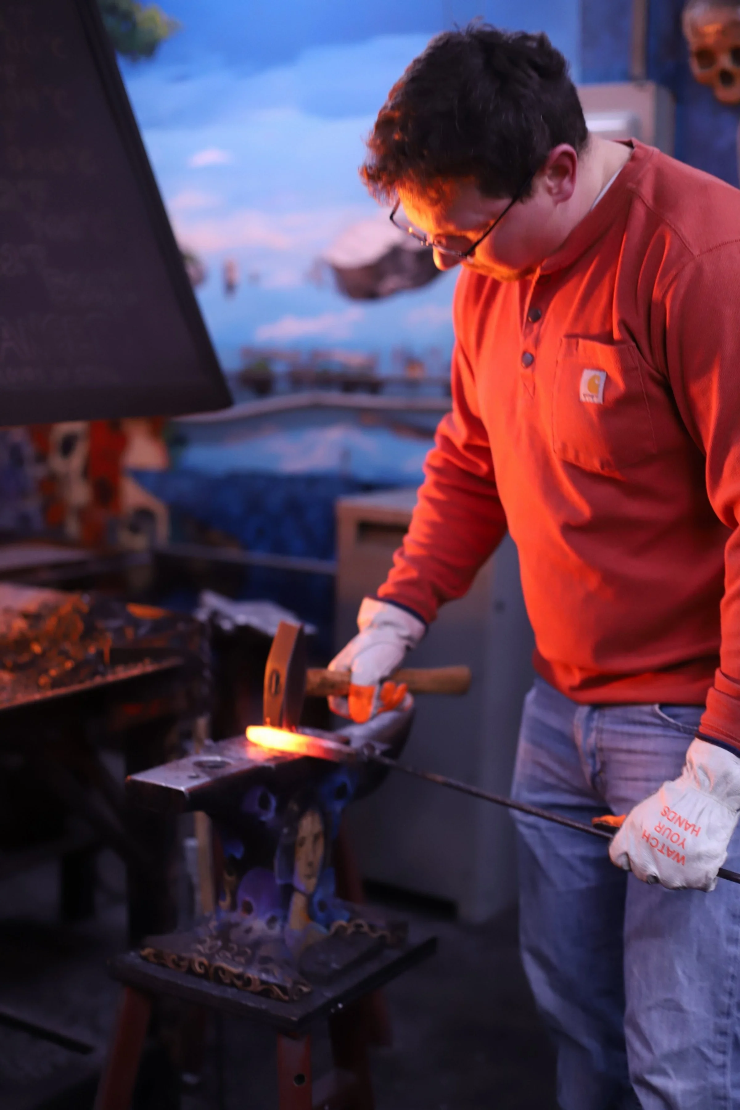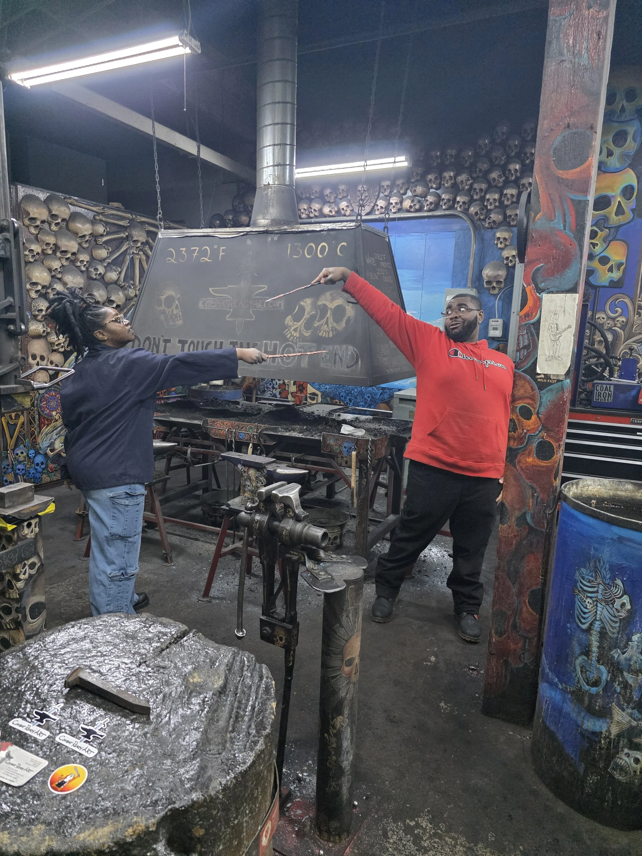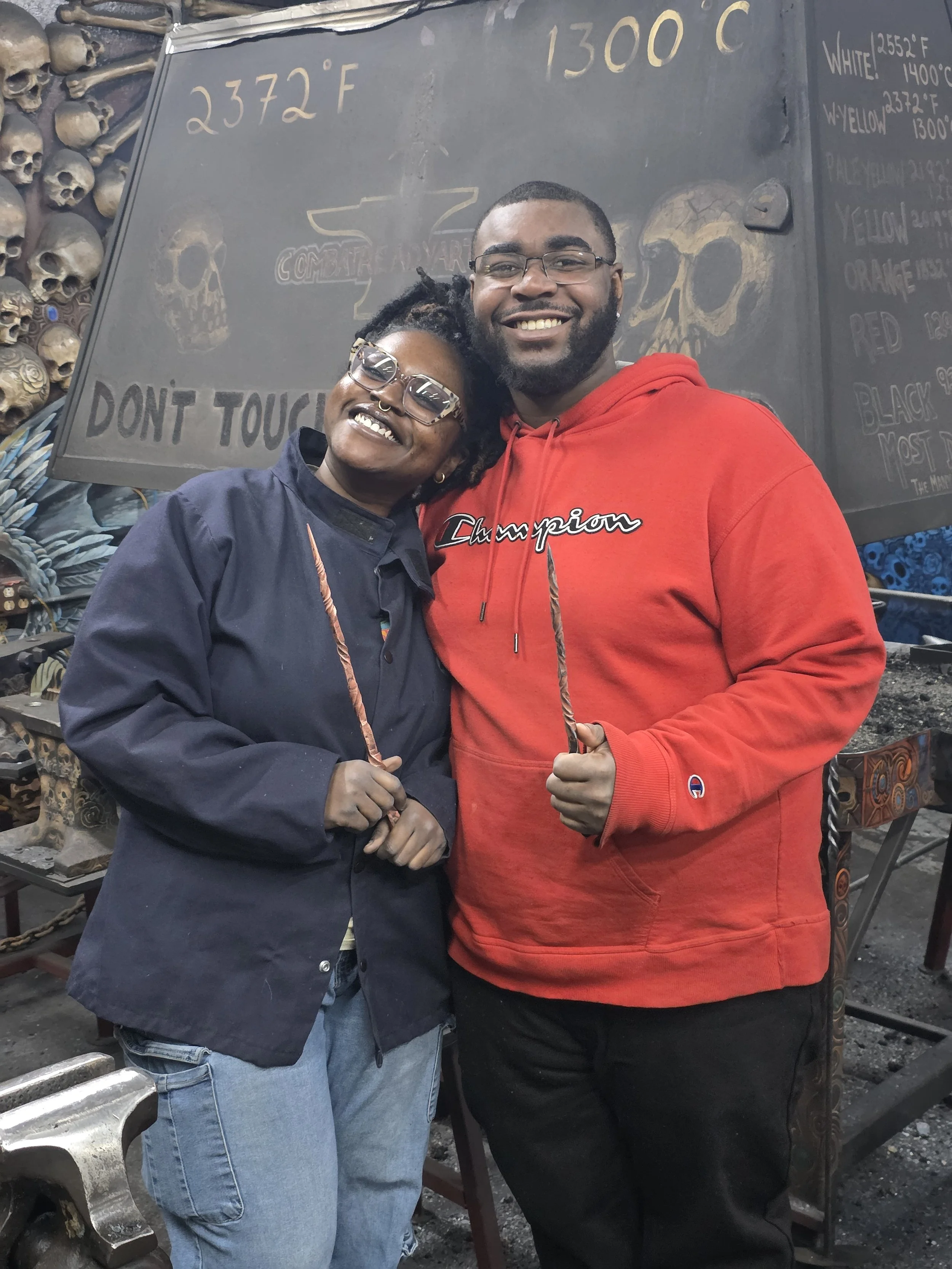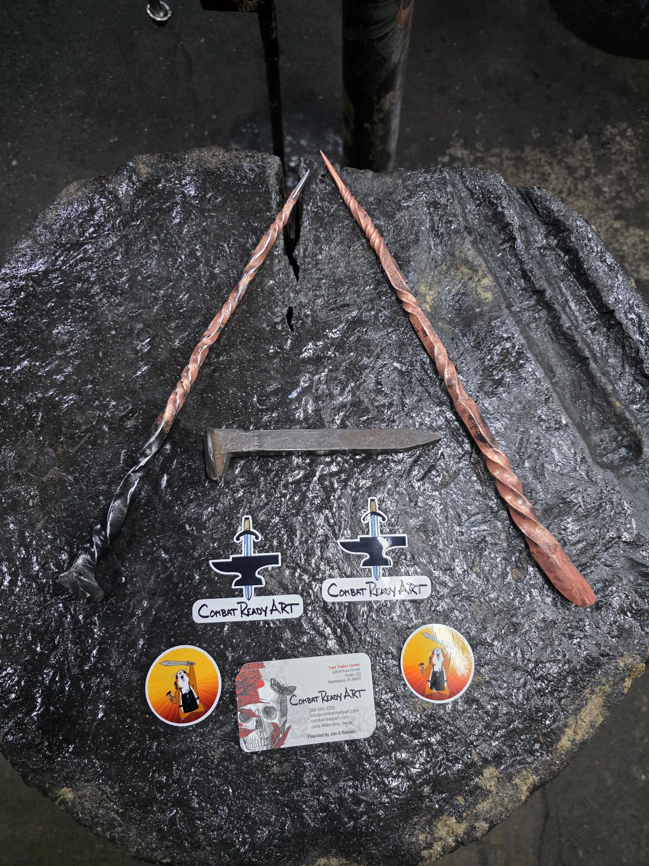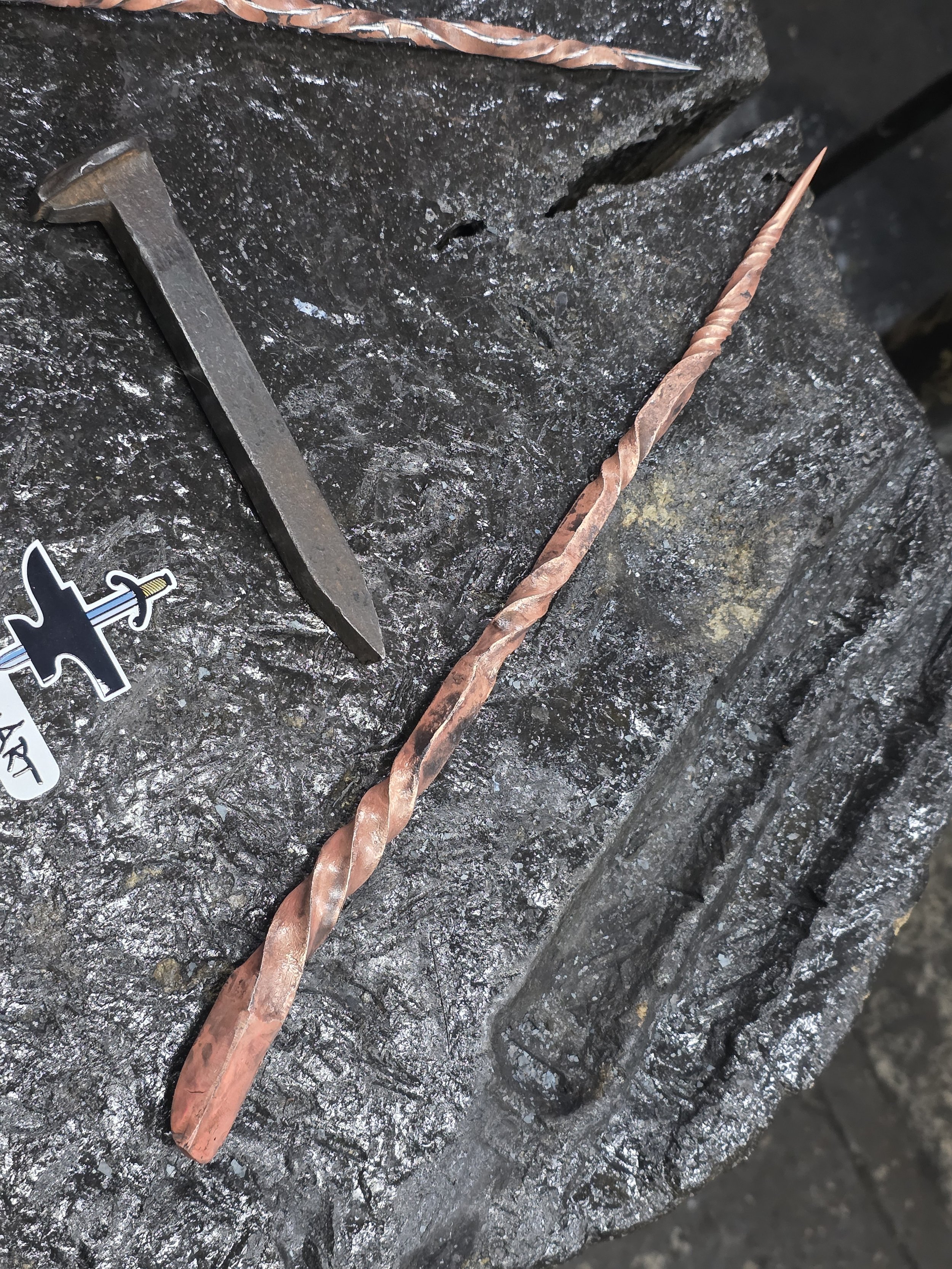 Jasmin and Gabe were so much fun in the forge tonight! Jasmin surprised Gabe for his birthday with making Magic Wands from railroad spikes.