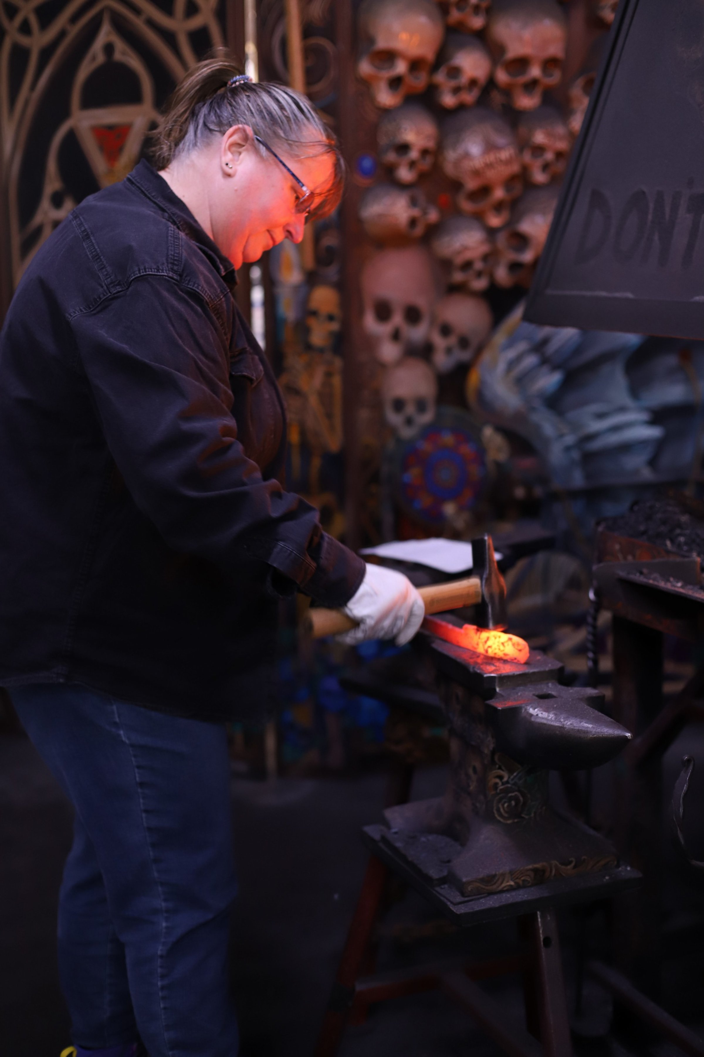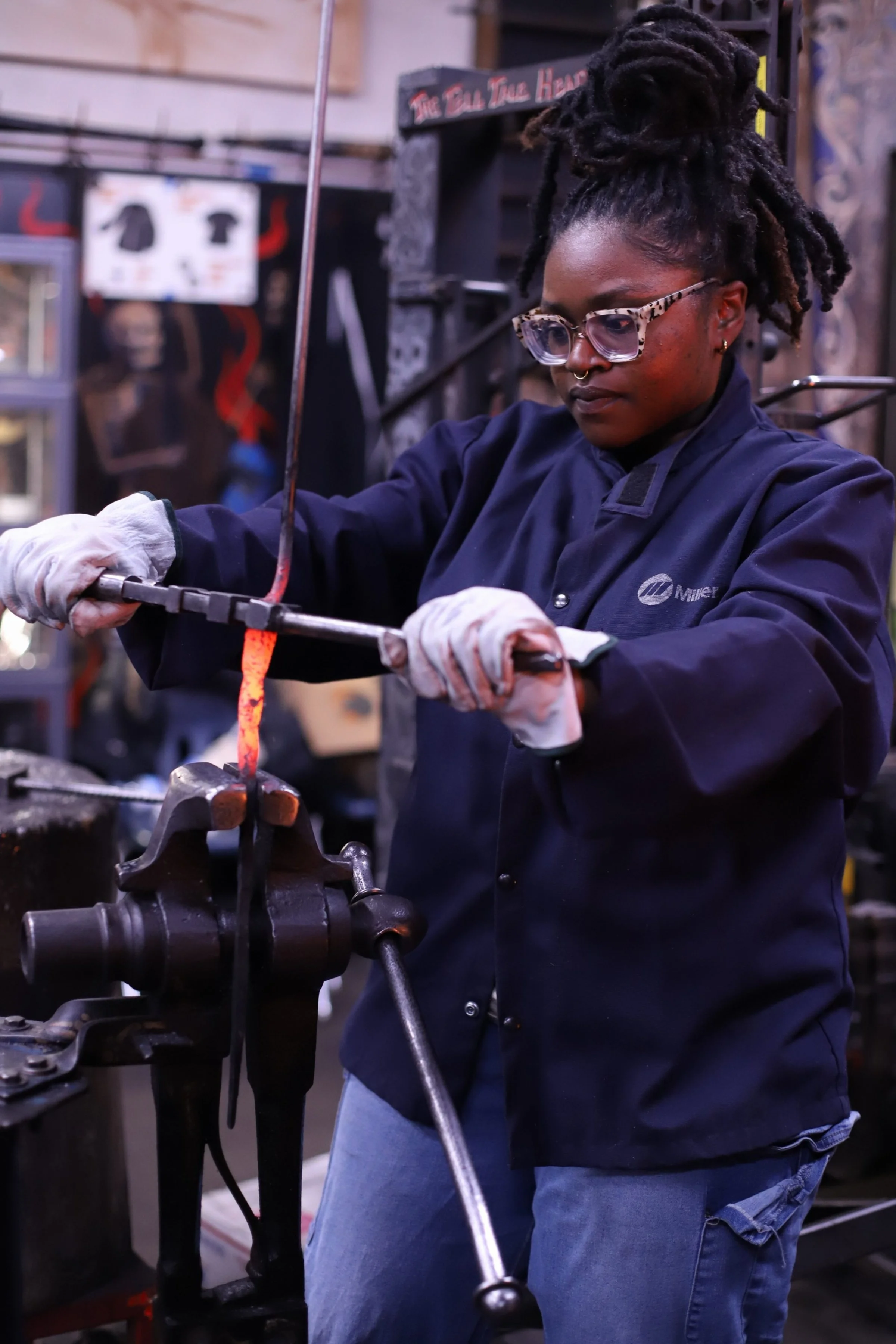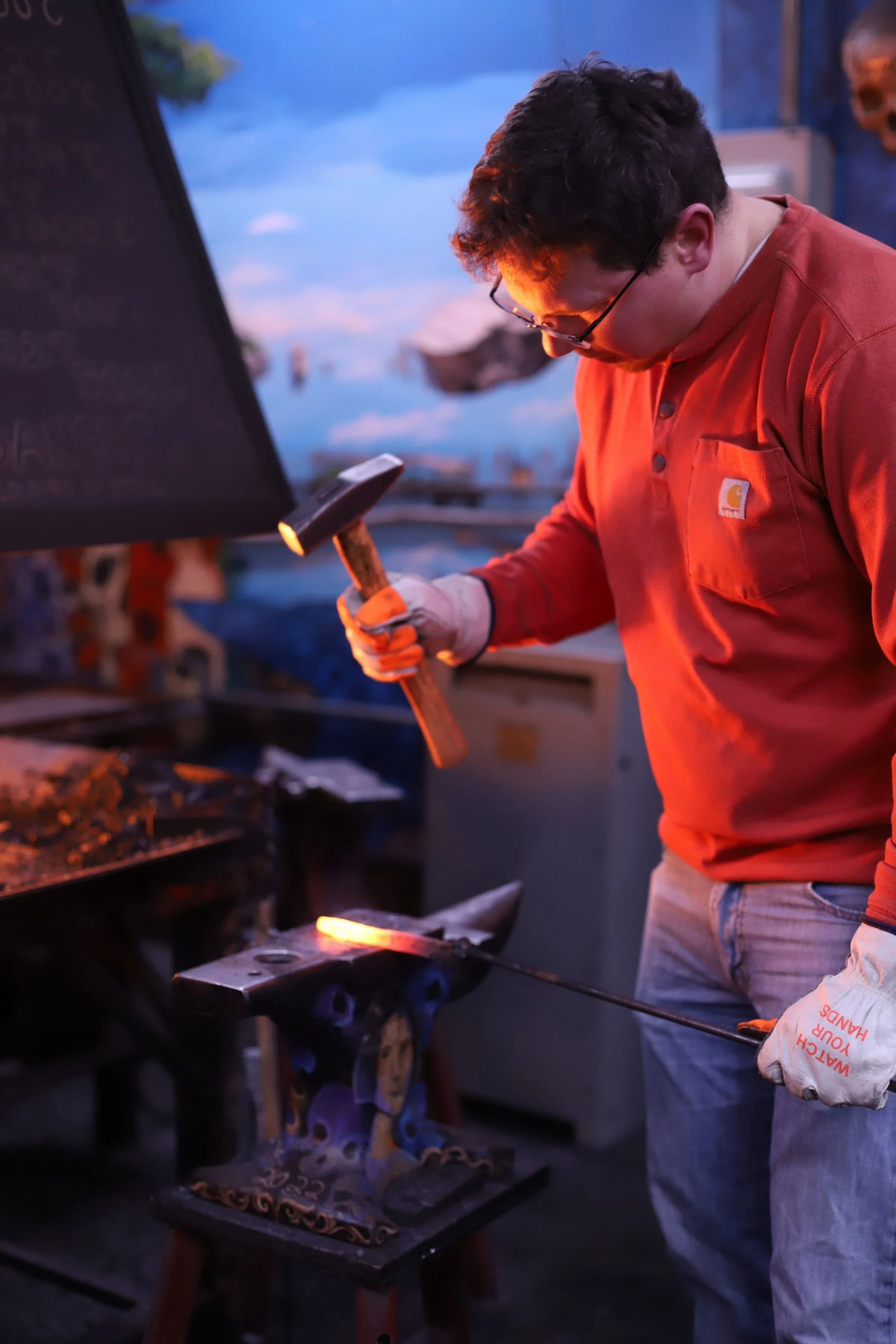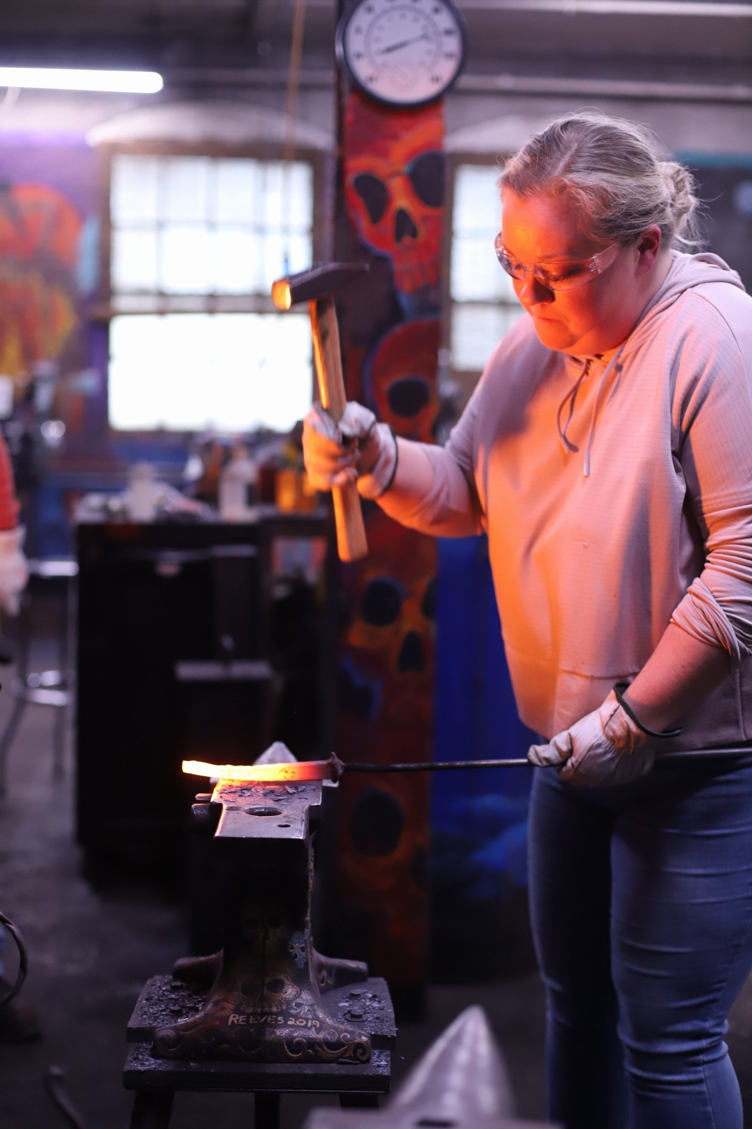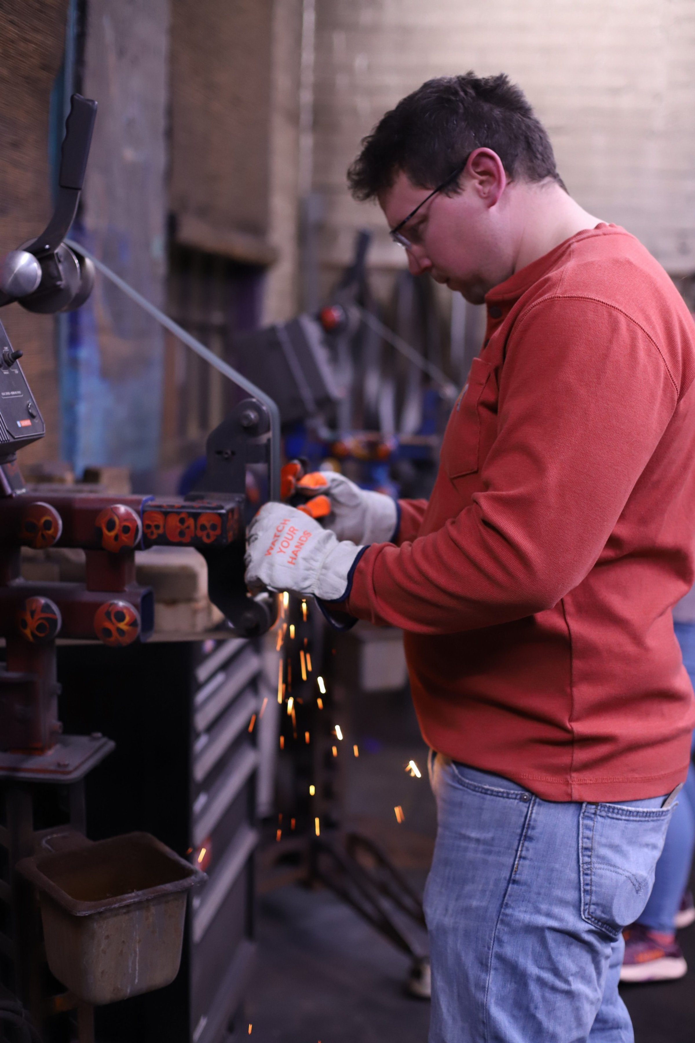 Jasmin and Gabe were so much fun in the forge tonight! Jasmin surprised Gabe for his birthday with making Magic Wands from railroad spikes.