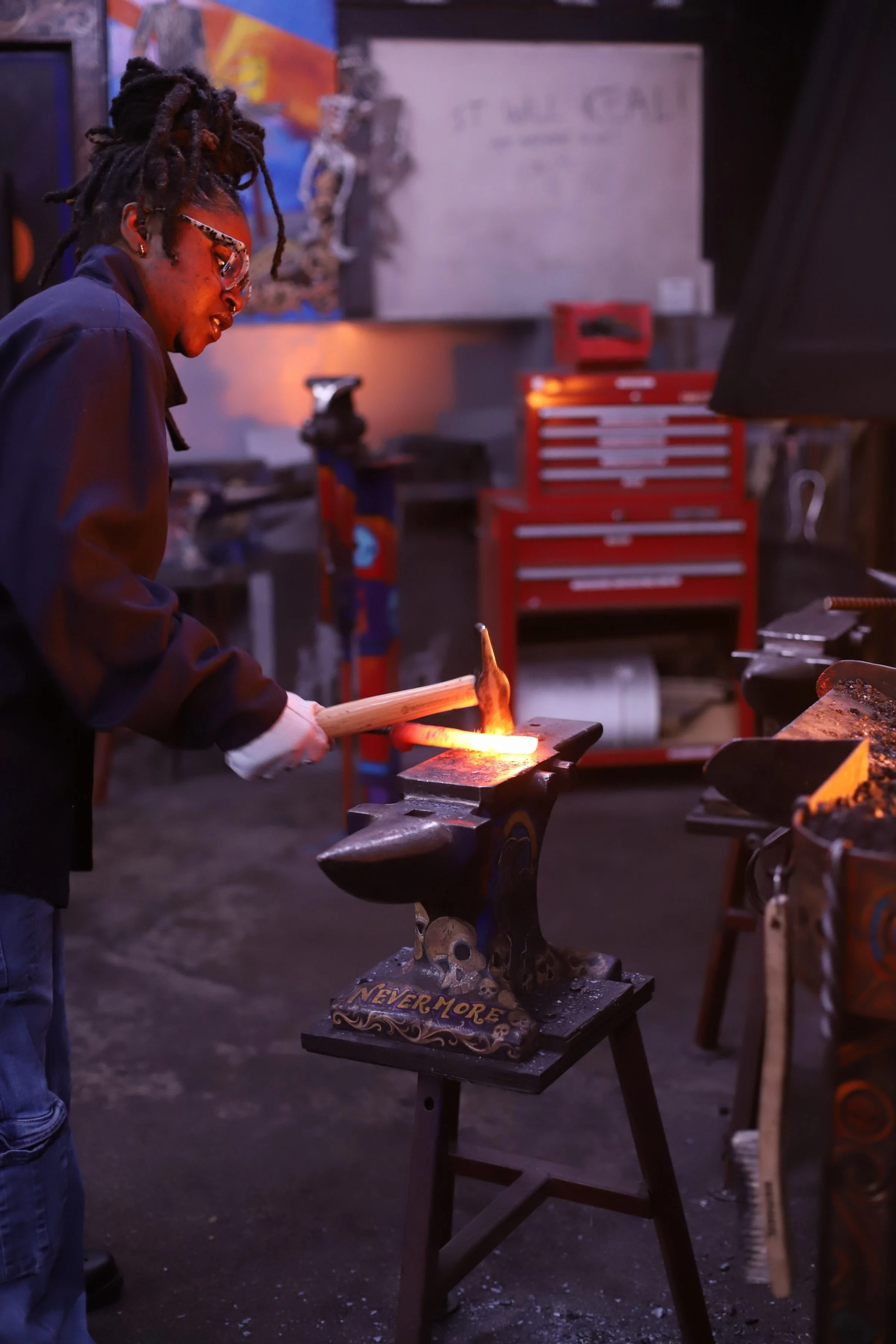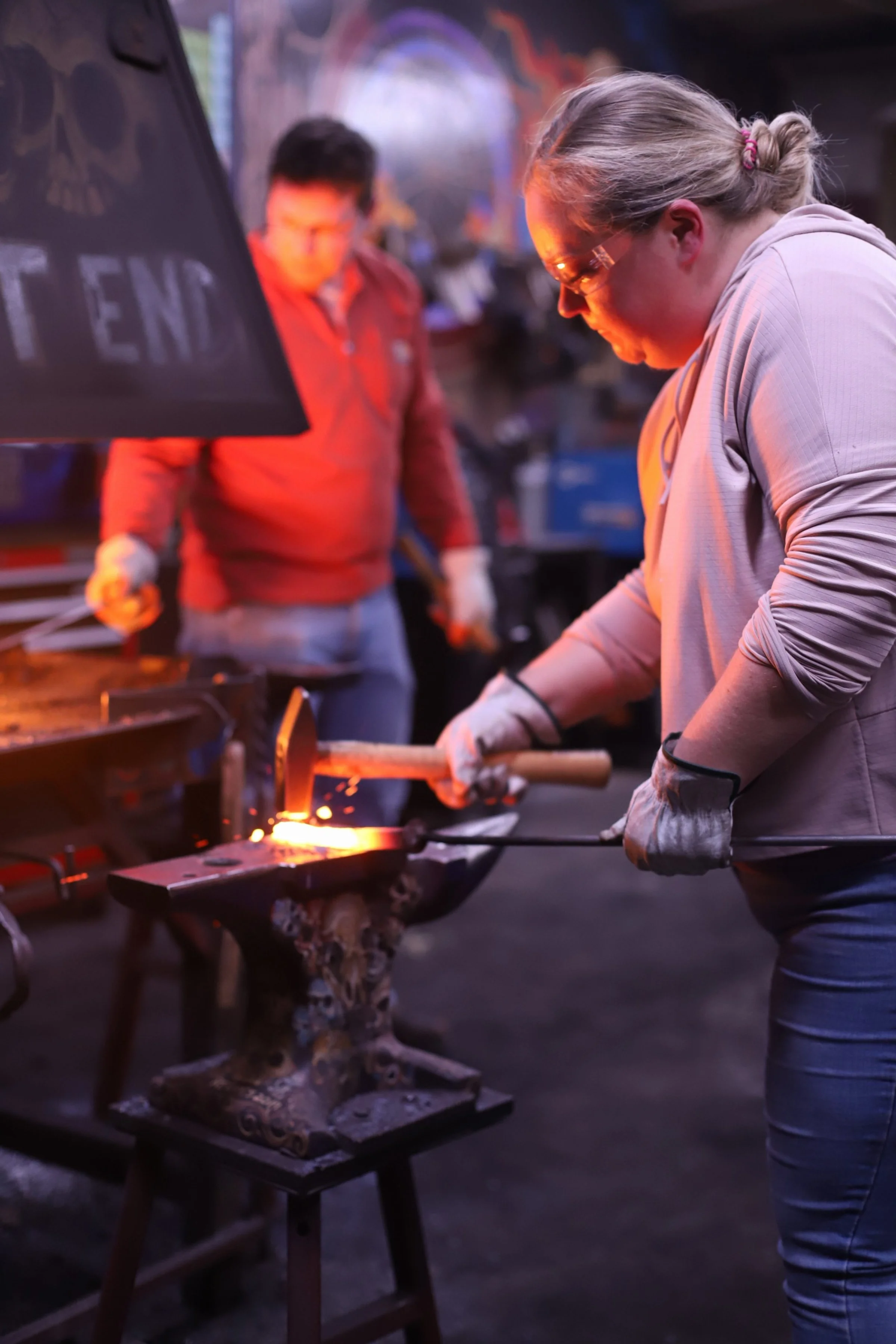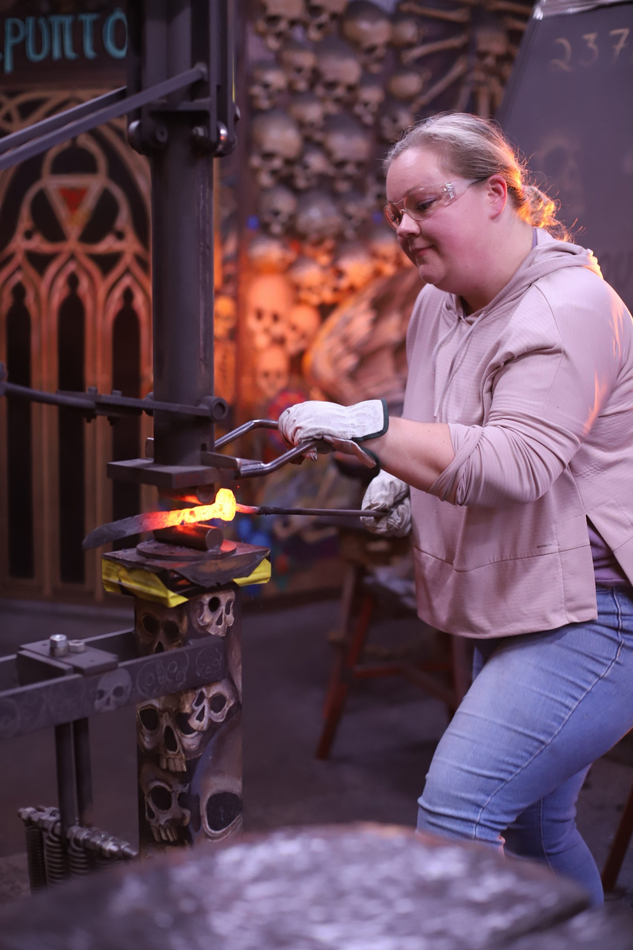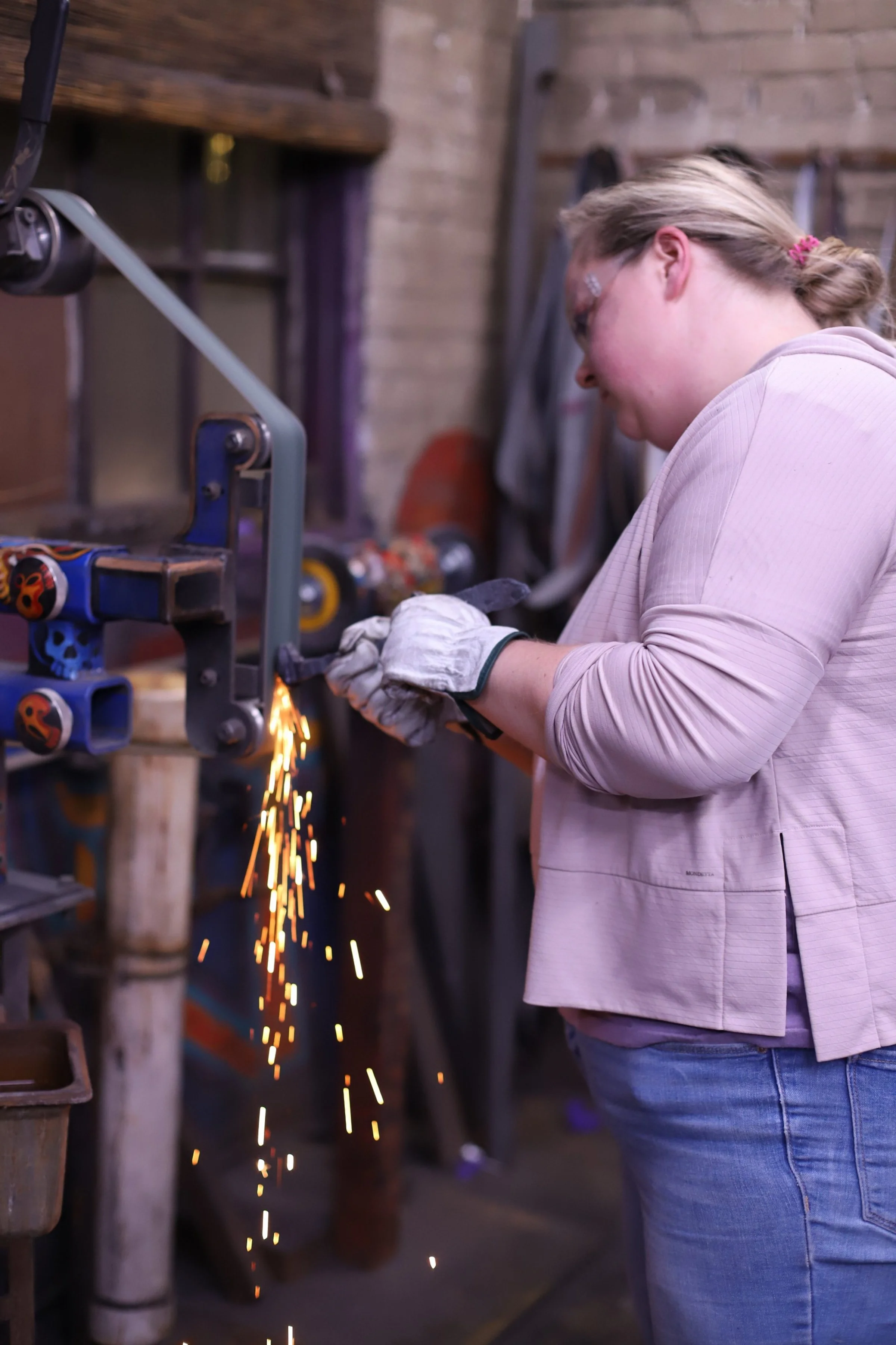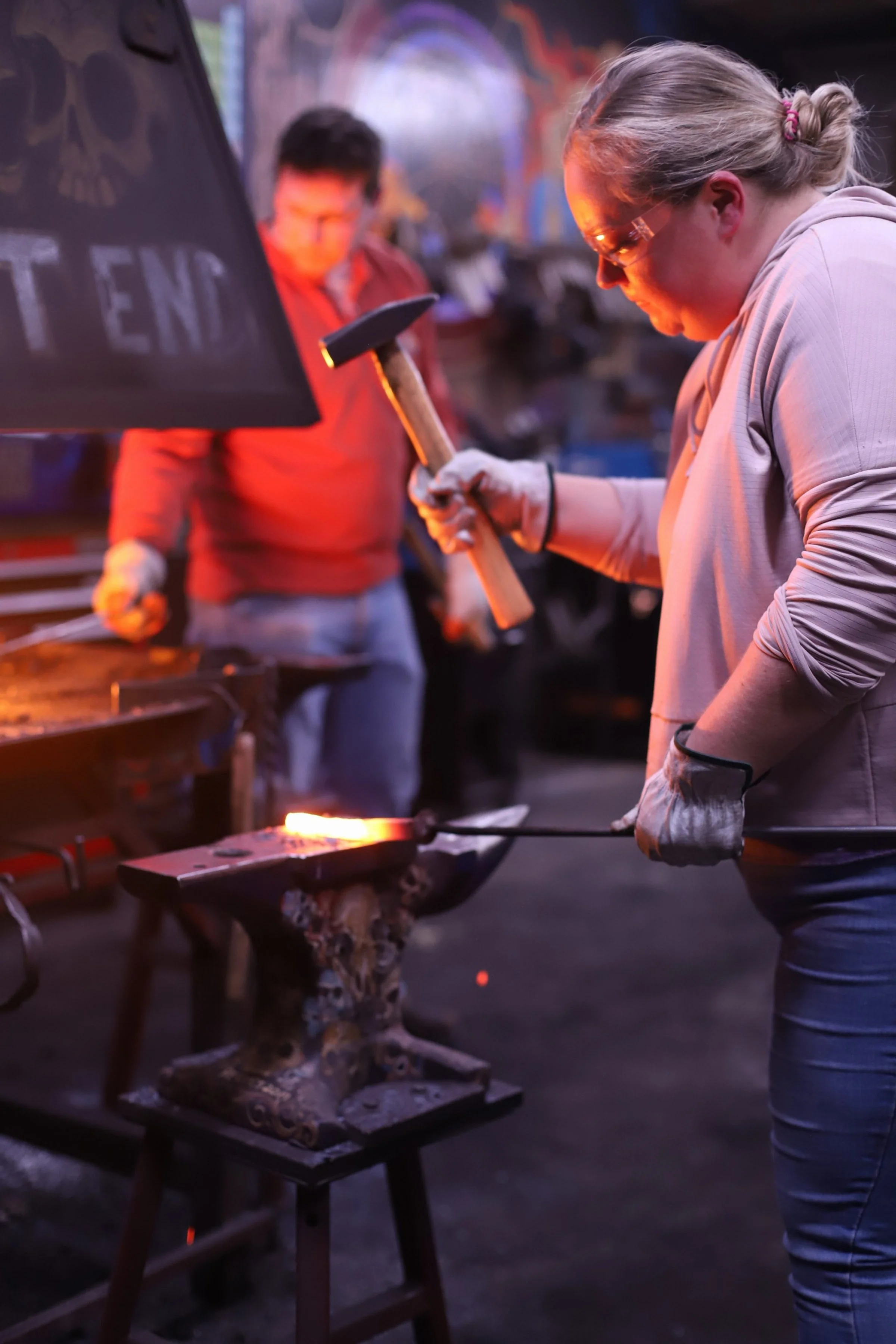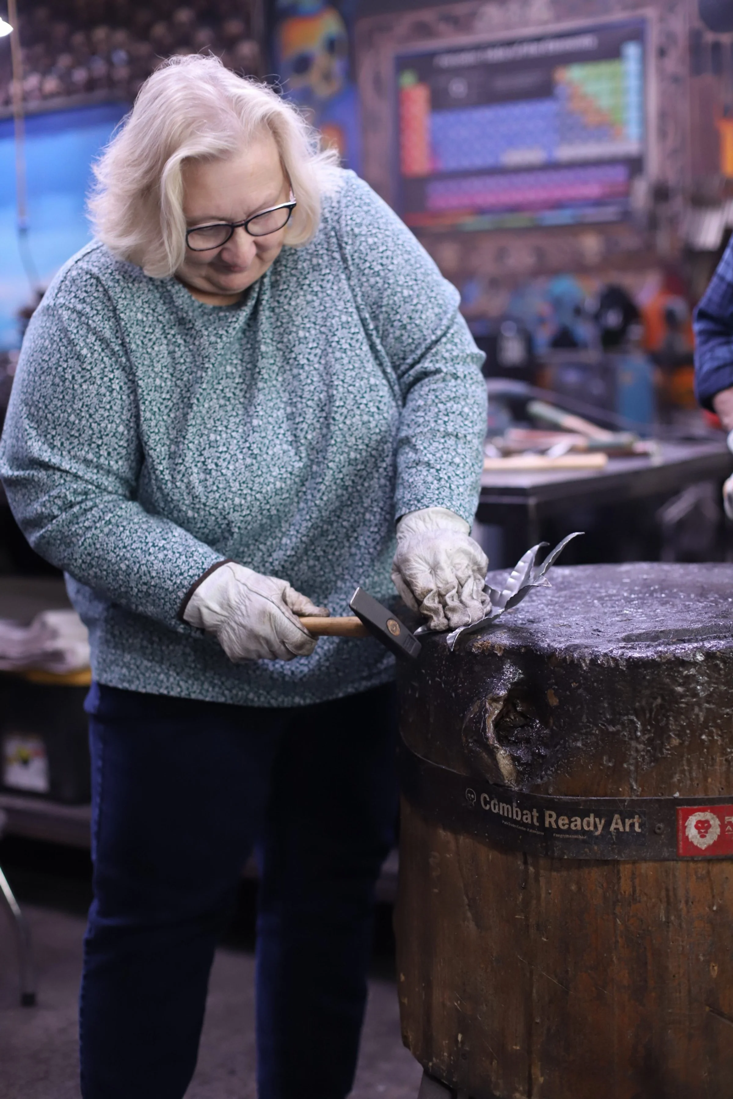 Jasmin and Gabe were so much fun in the forge tonight! Jasmin surprised Gabe for his birthday with making Magic Wands from railroad spikes.