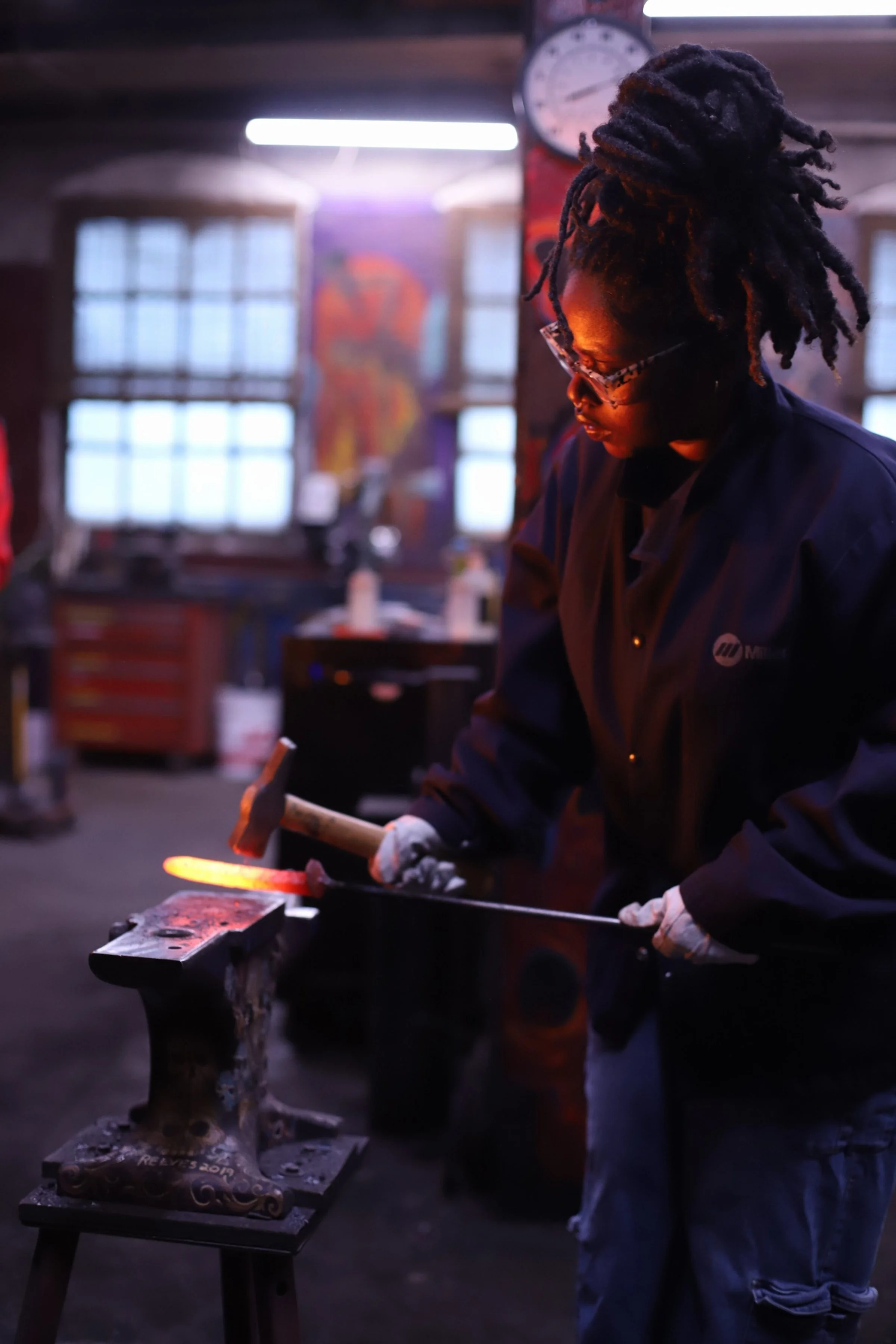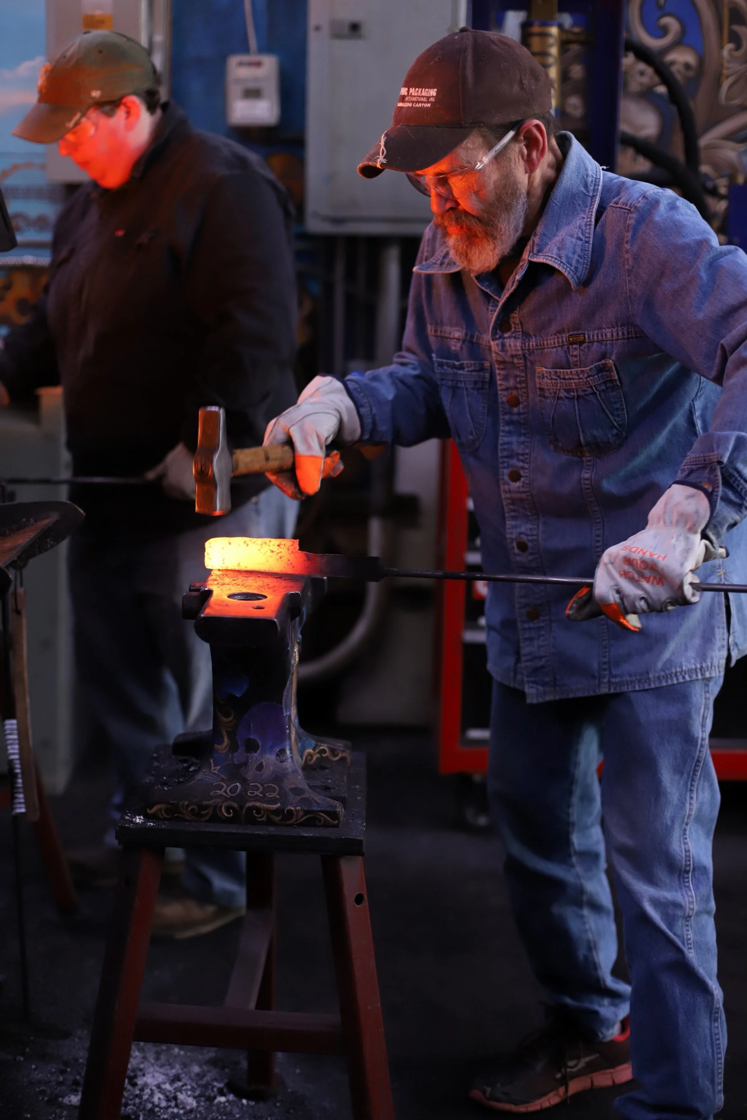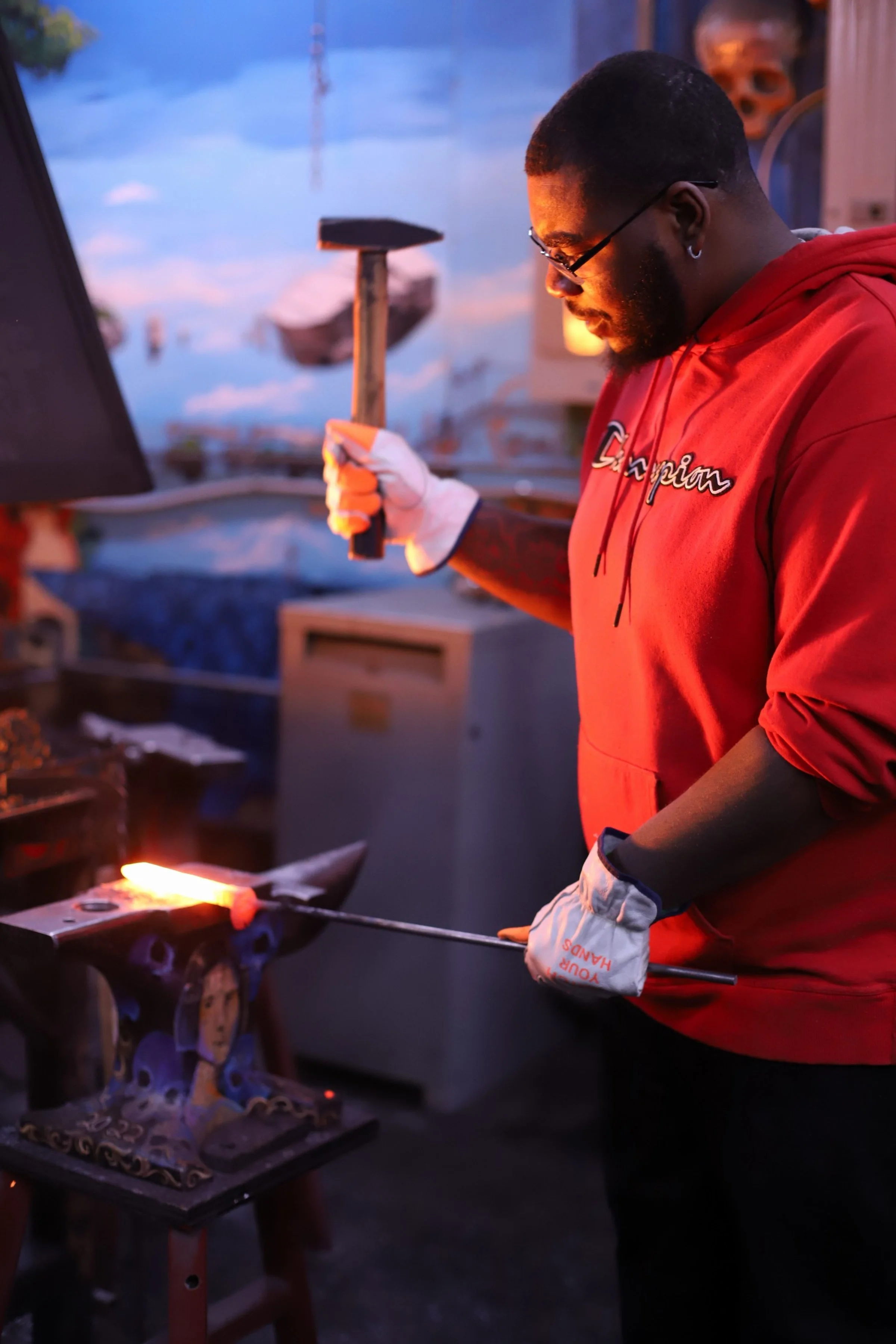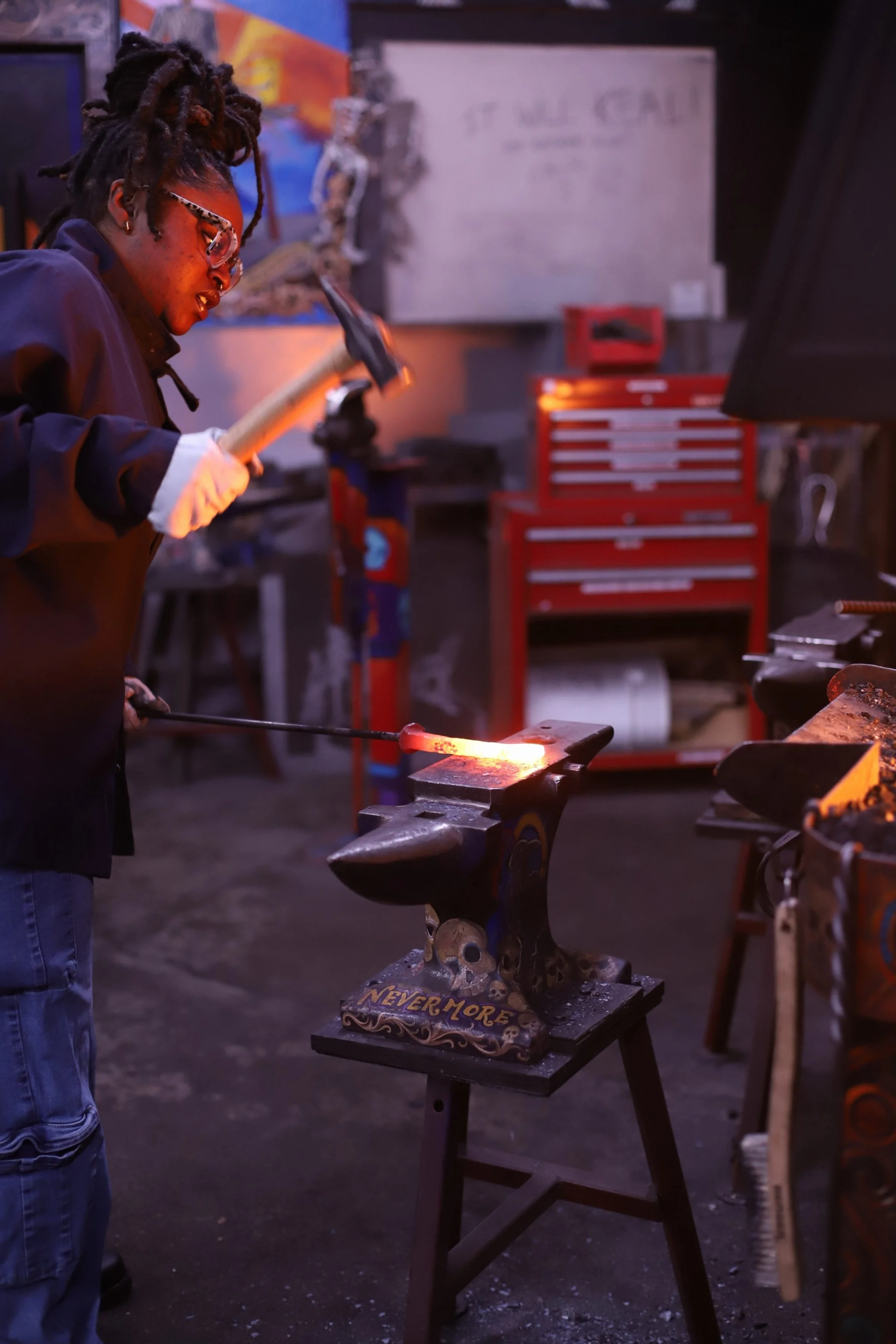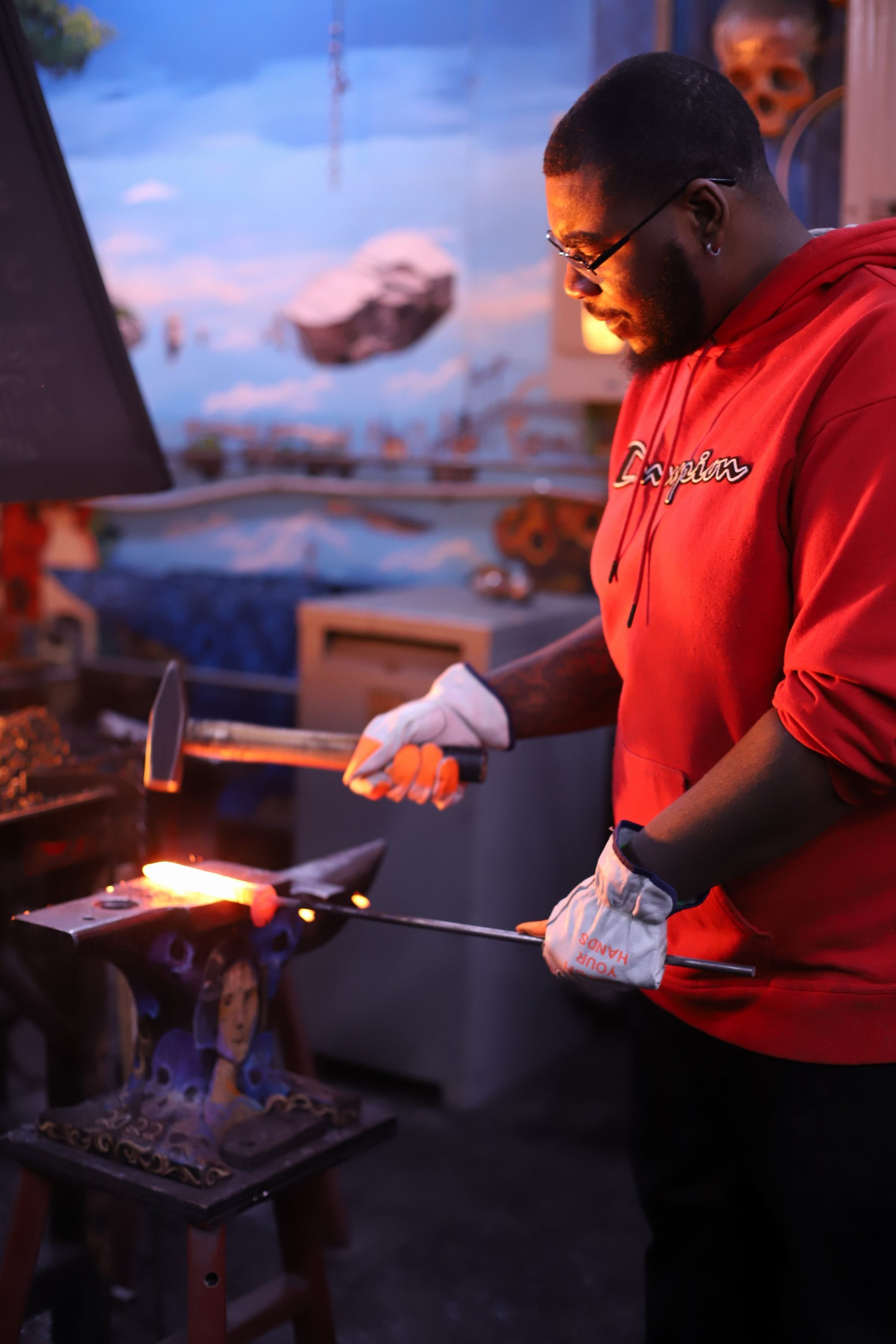 Jasmin and Gabe were so much fun in the forge tonight! Jasmin surprised Gabe for his birthday with making Magic Wands from railroad spikes.