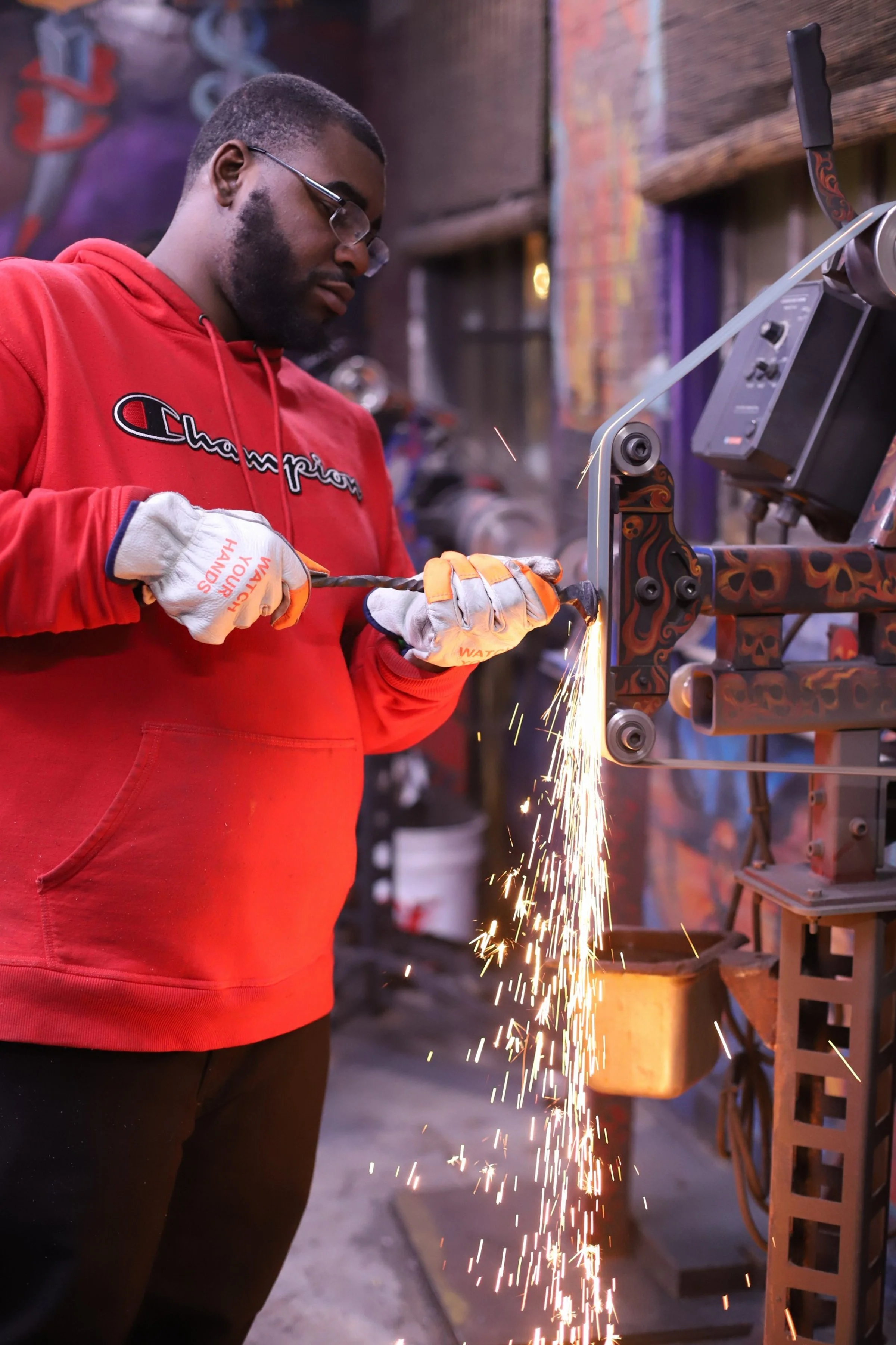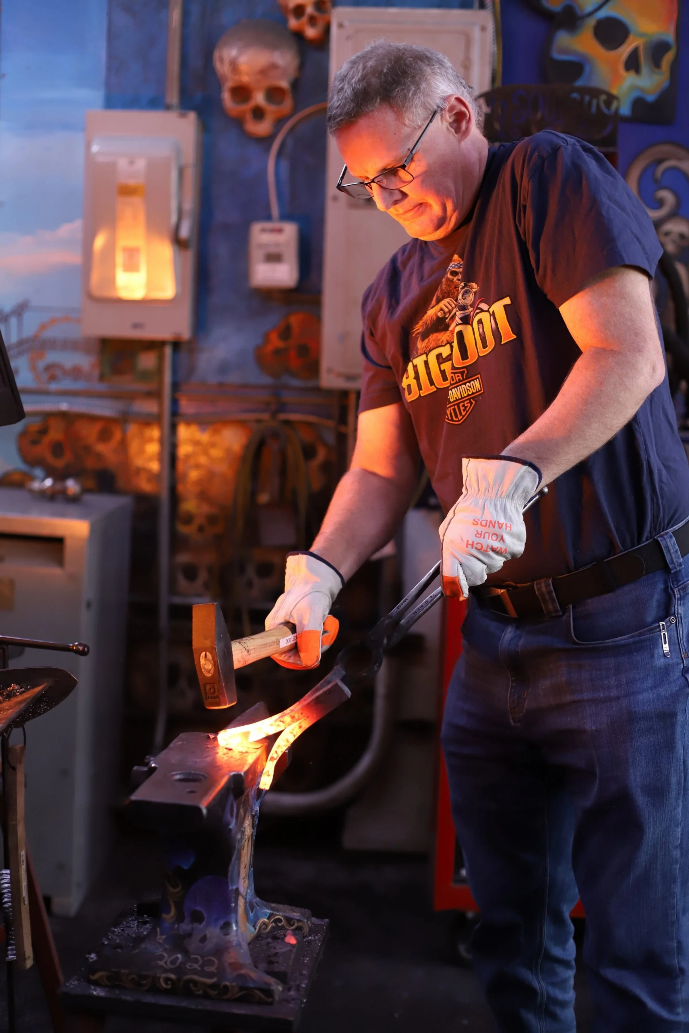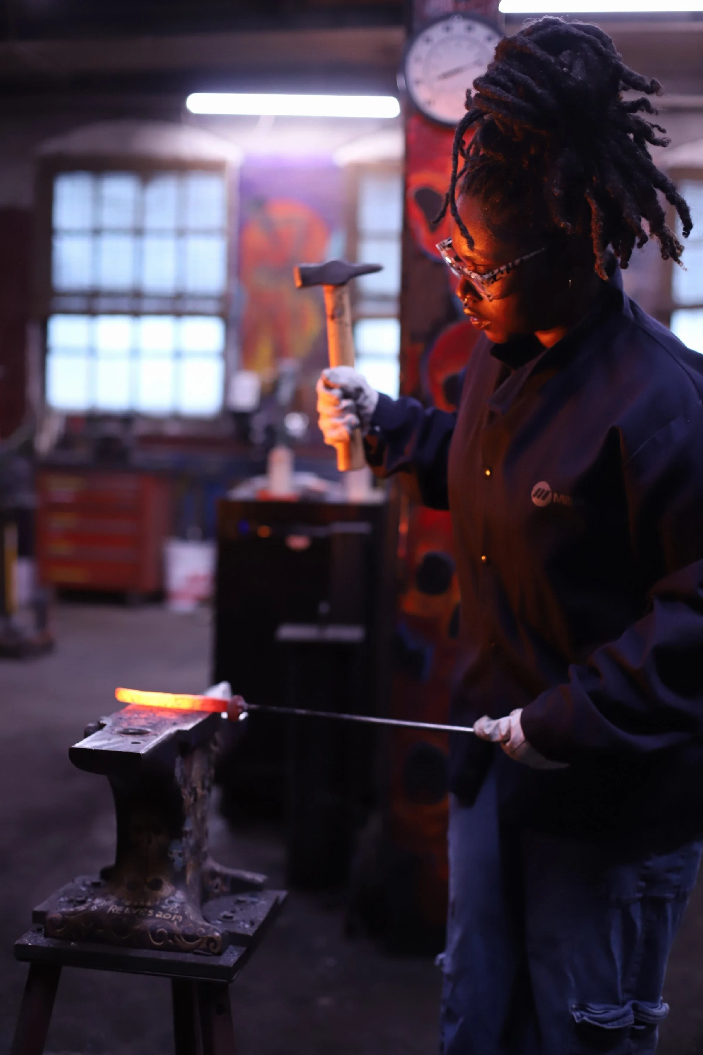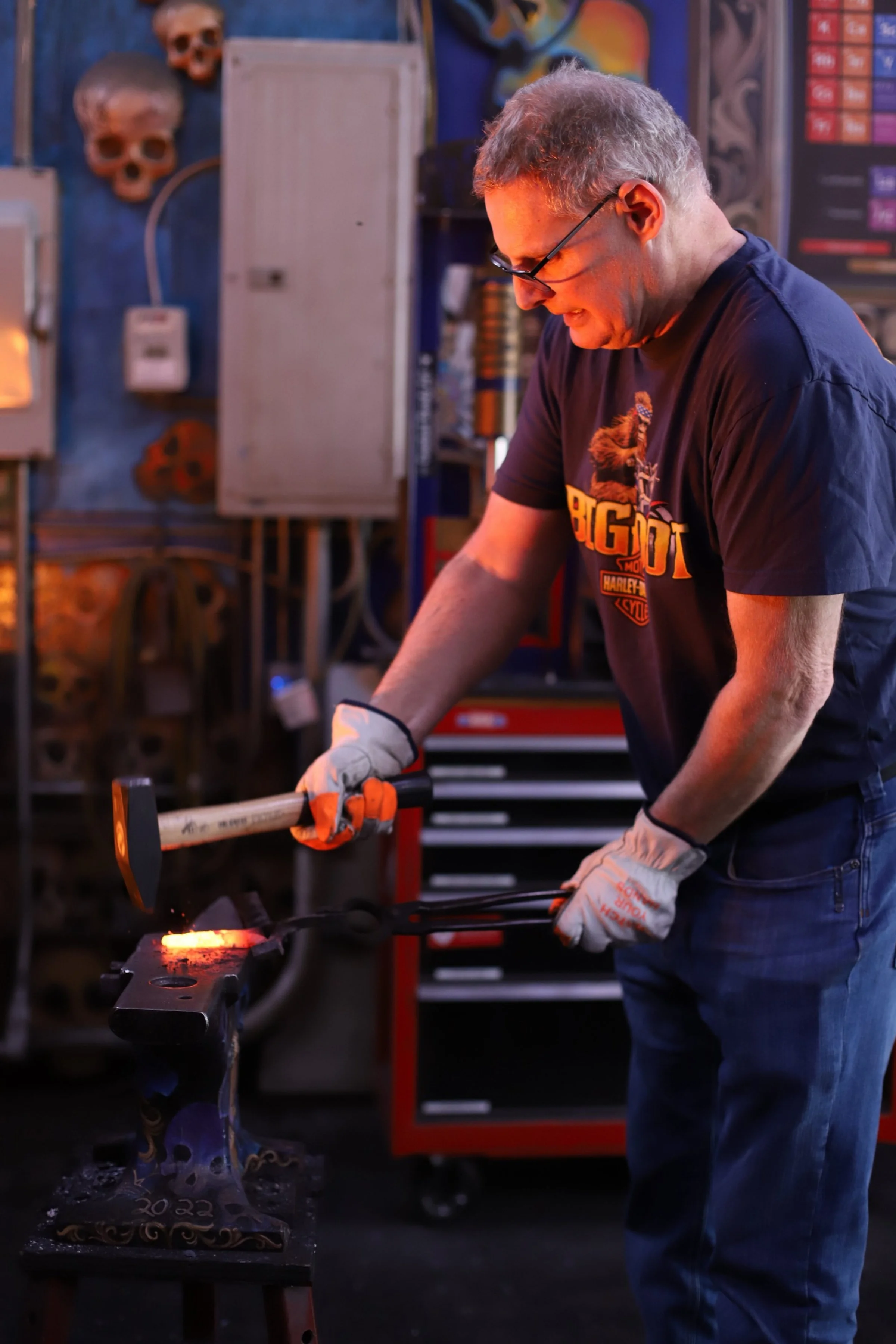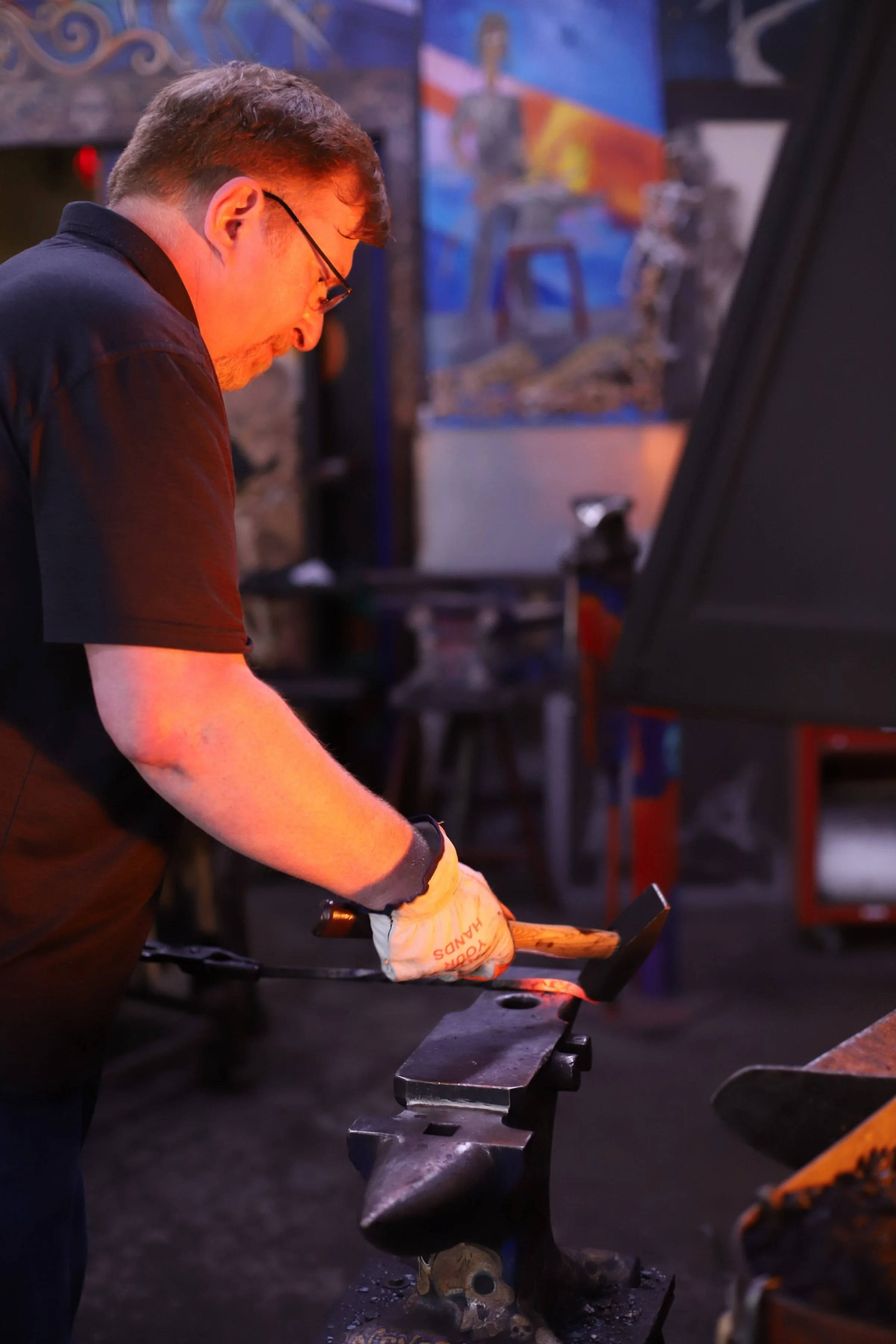 Jasmin and Gabe were so much fun in the forge tonight! Jasmin surprised Gabe for his birthday with making Magic Wands from railroad spikes.