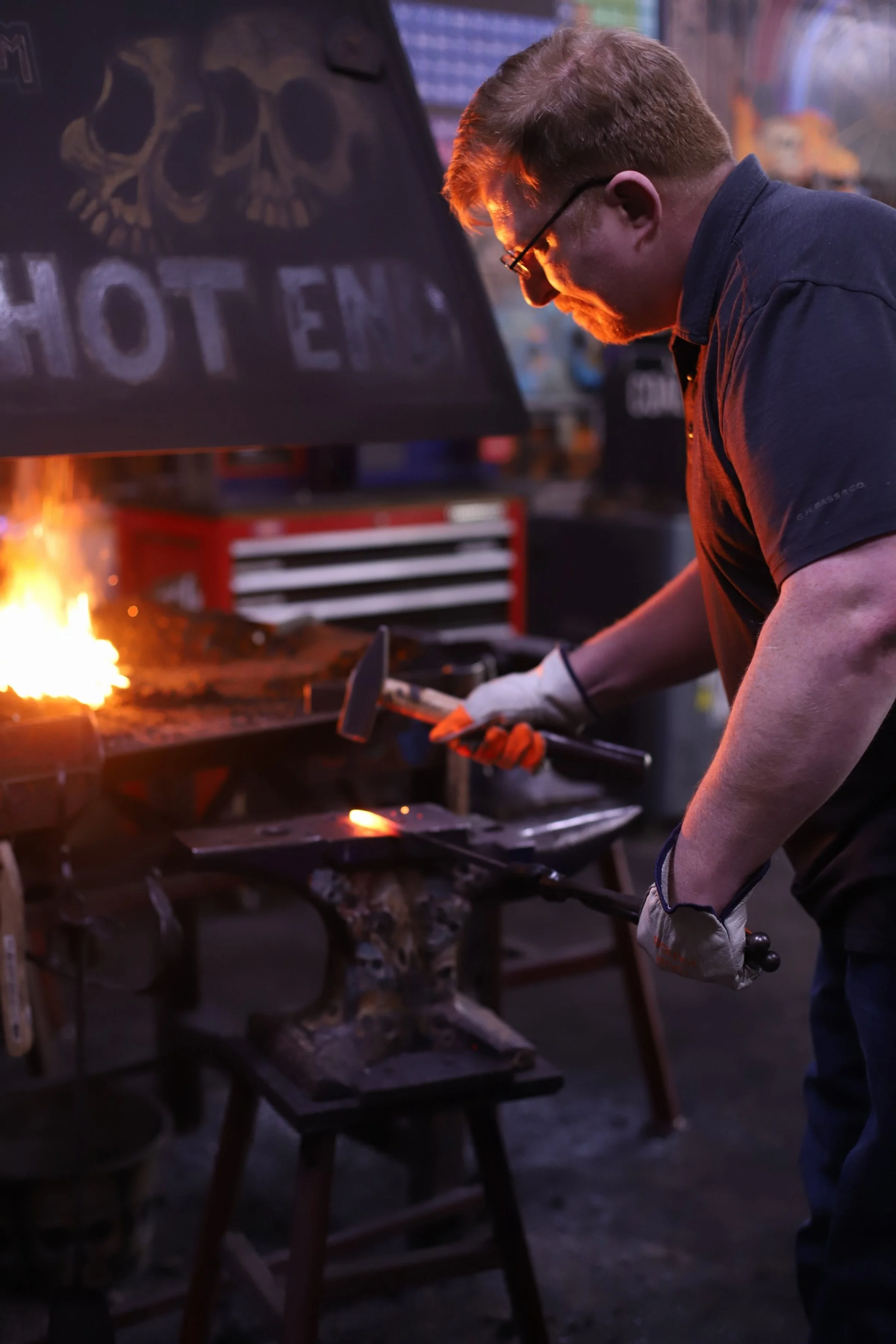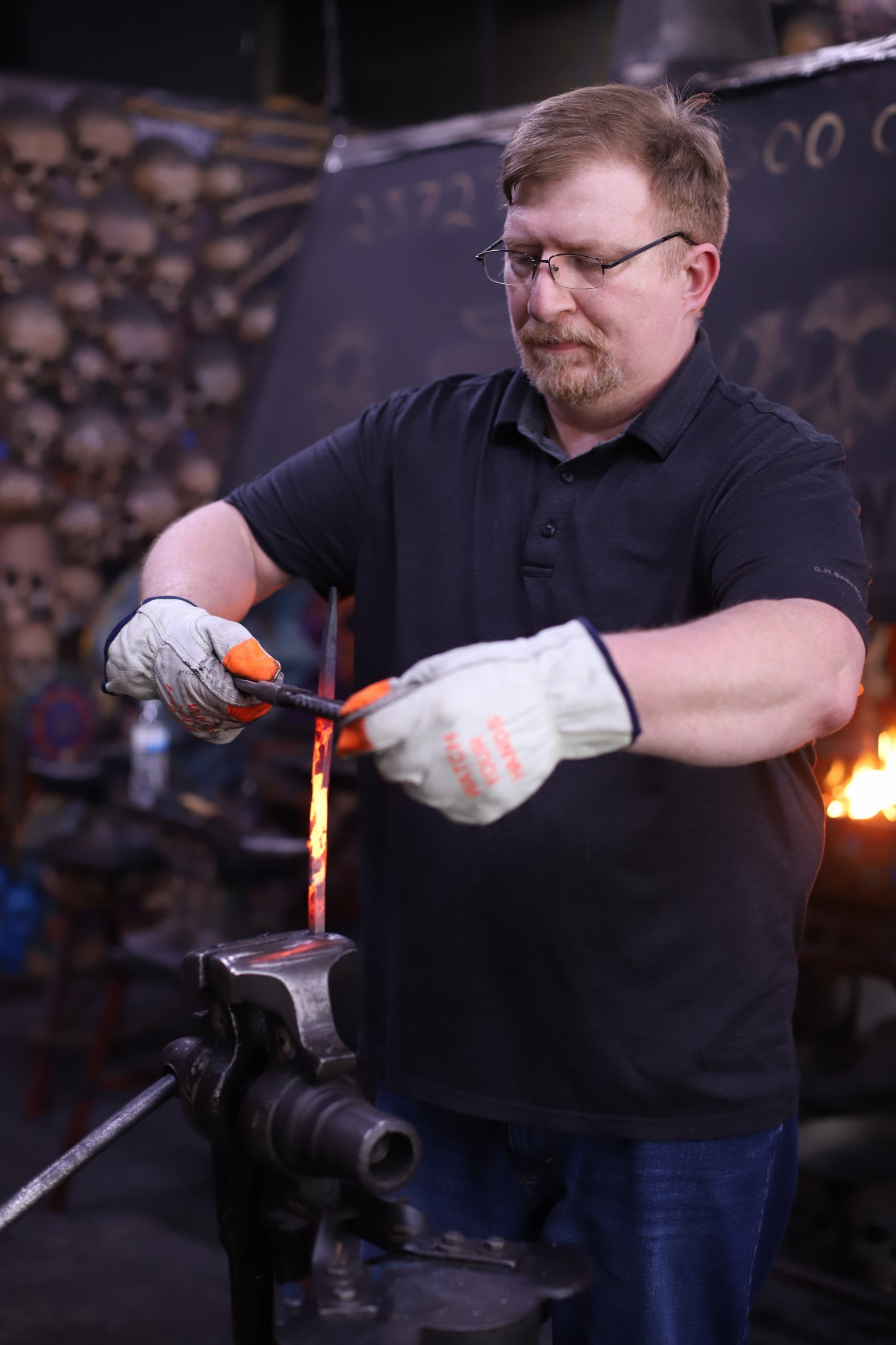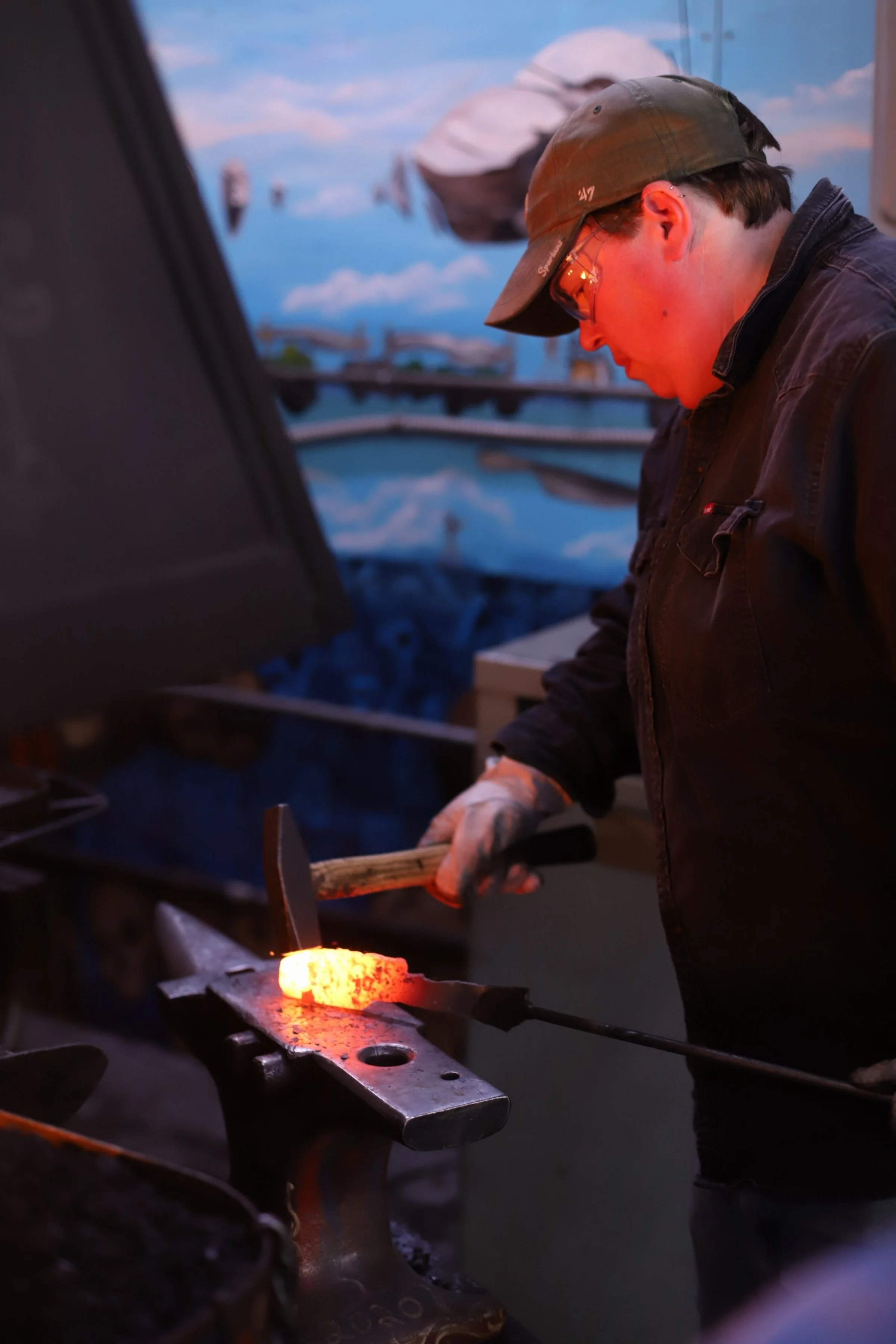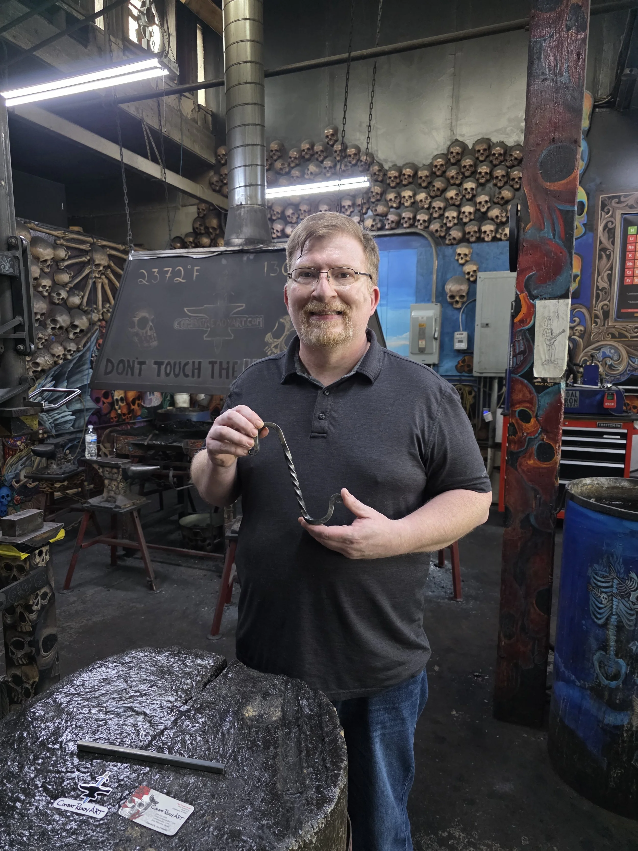 Derick did great in his first blacksmithing class today! He learned lots of basic skills by making an "S" hook.