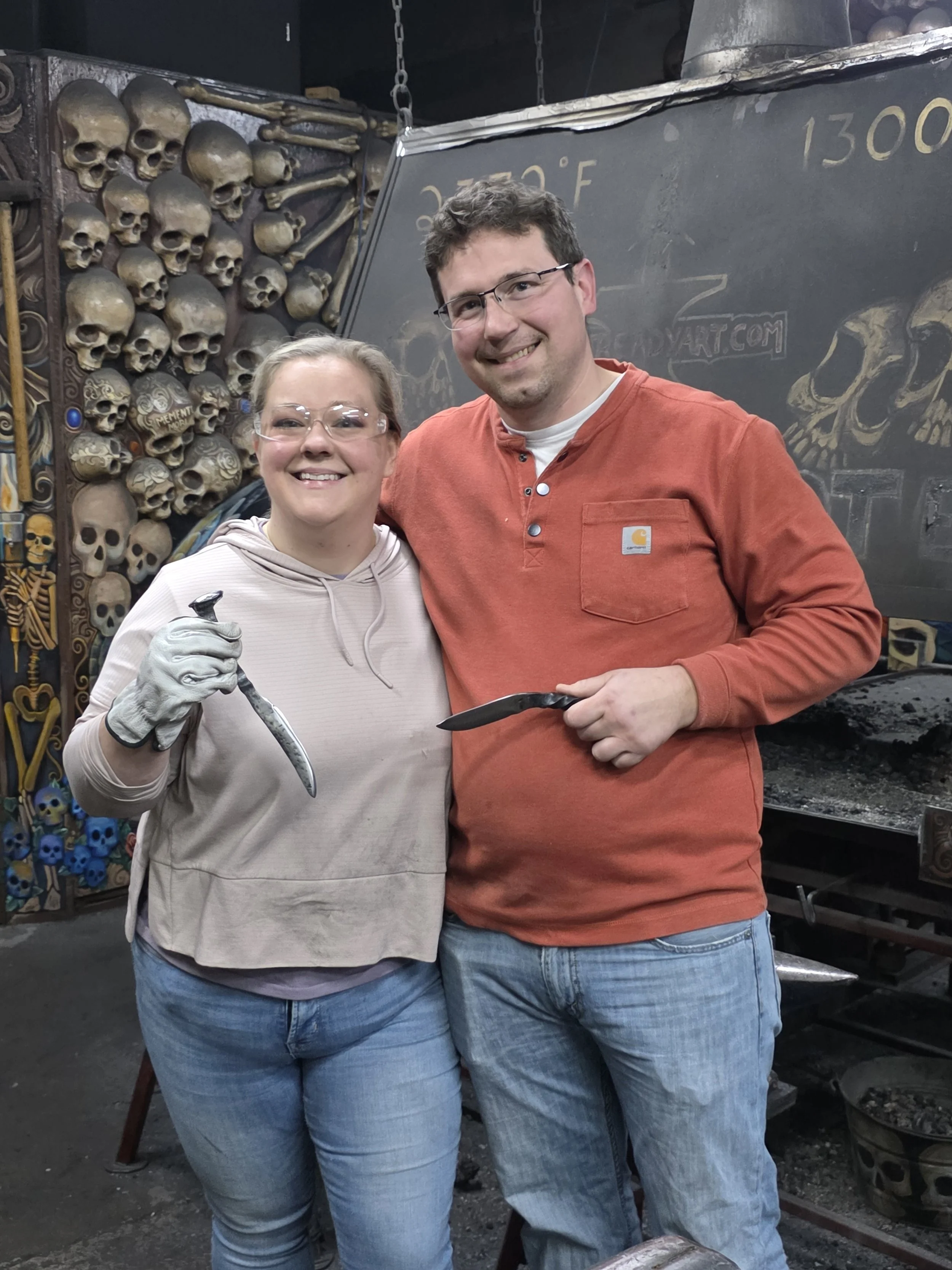 Brittany and Andy came to the forge tonight to make their first knives! They did a great job with their Railroad Spike Knives.