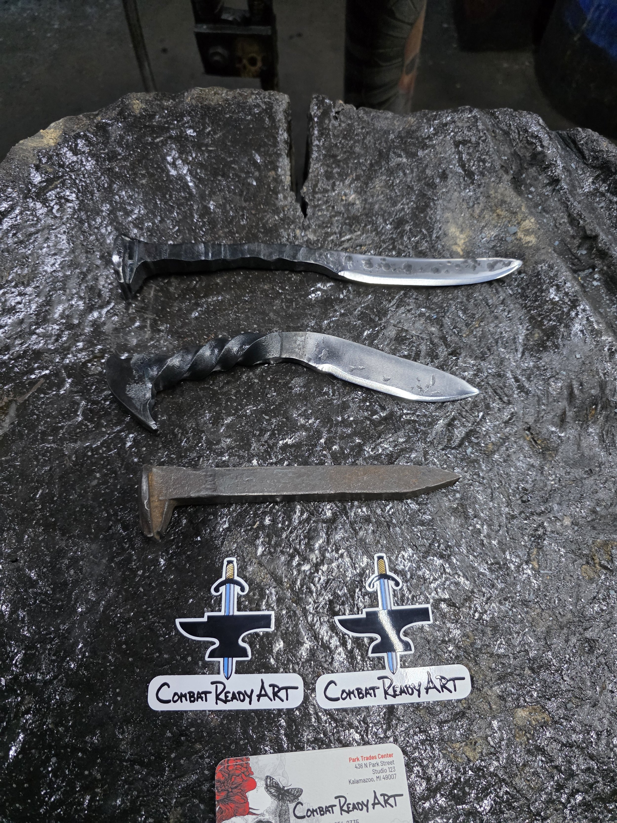 Perfect day to be around the fire! Lucy and Kristi were back today, and brought Kristi's parents! They all started Billet Knives, and will finish up tomorrow.