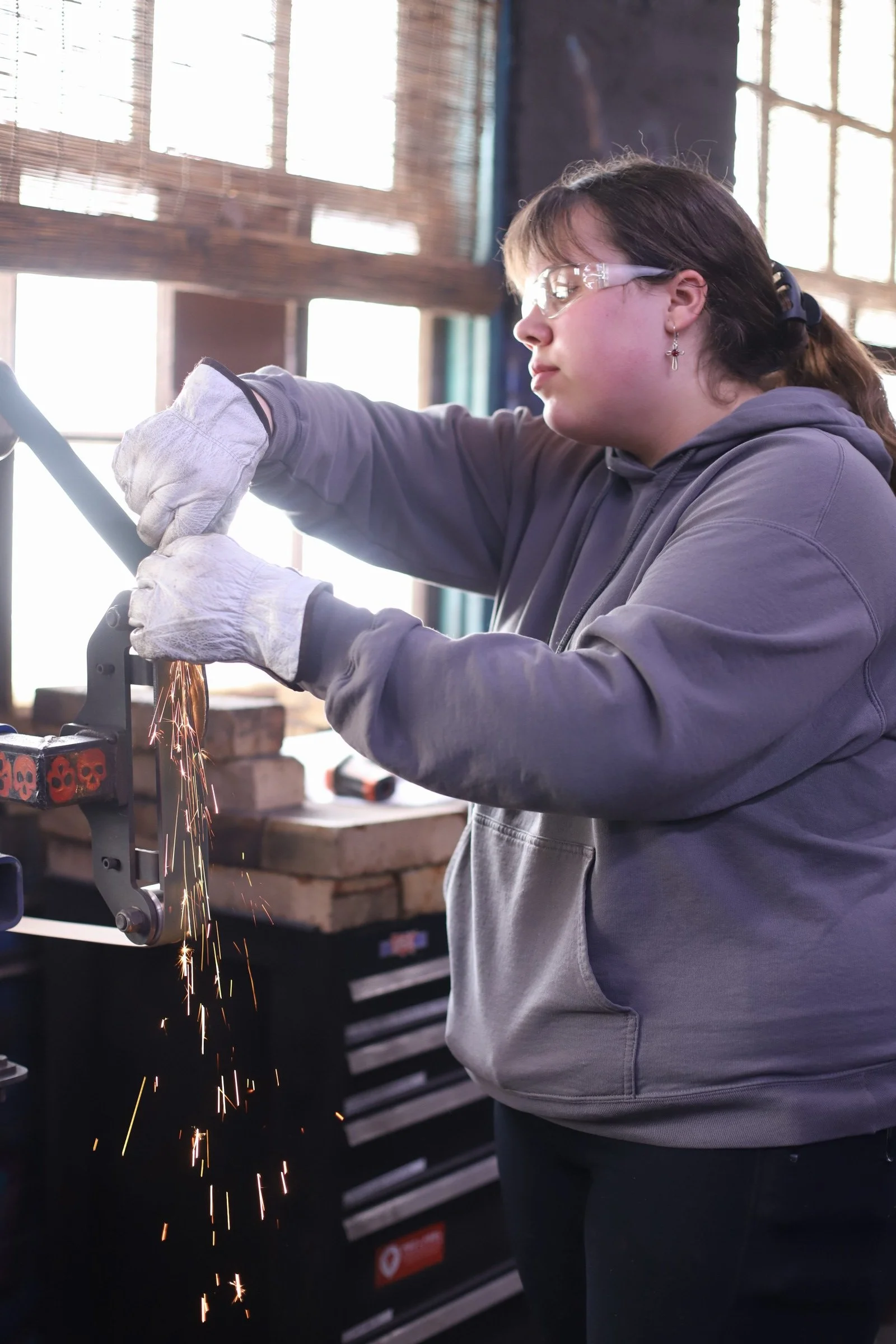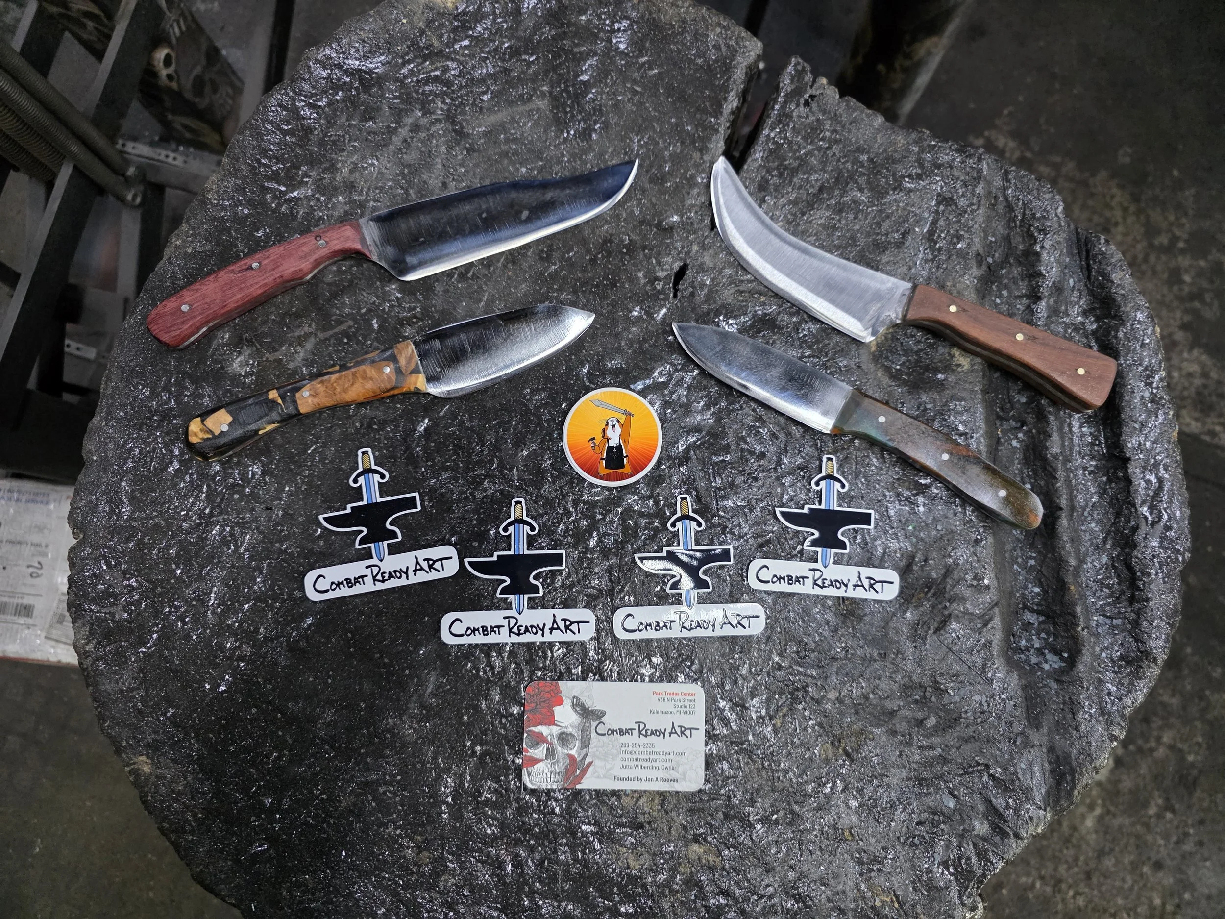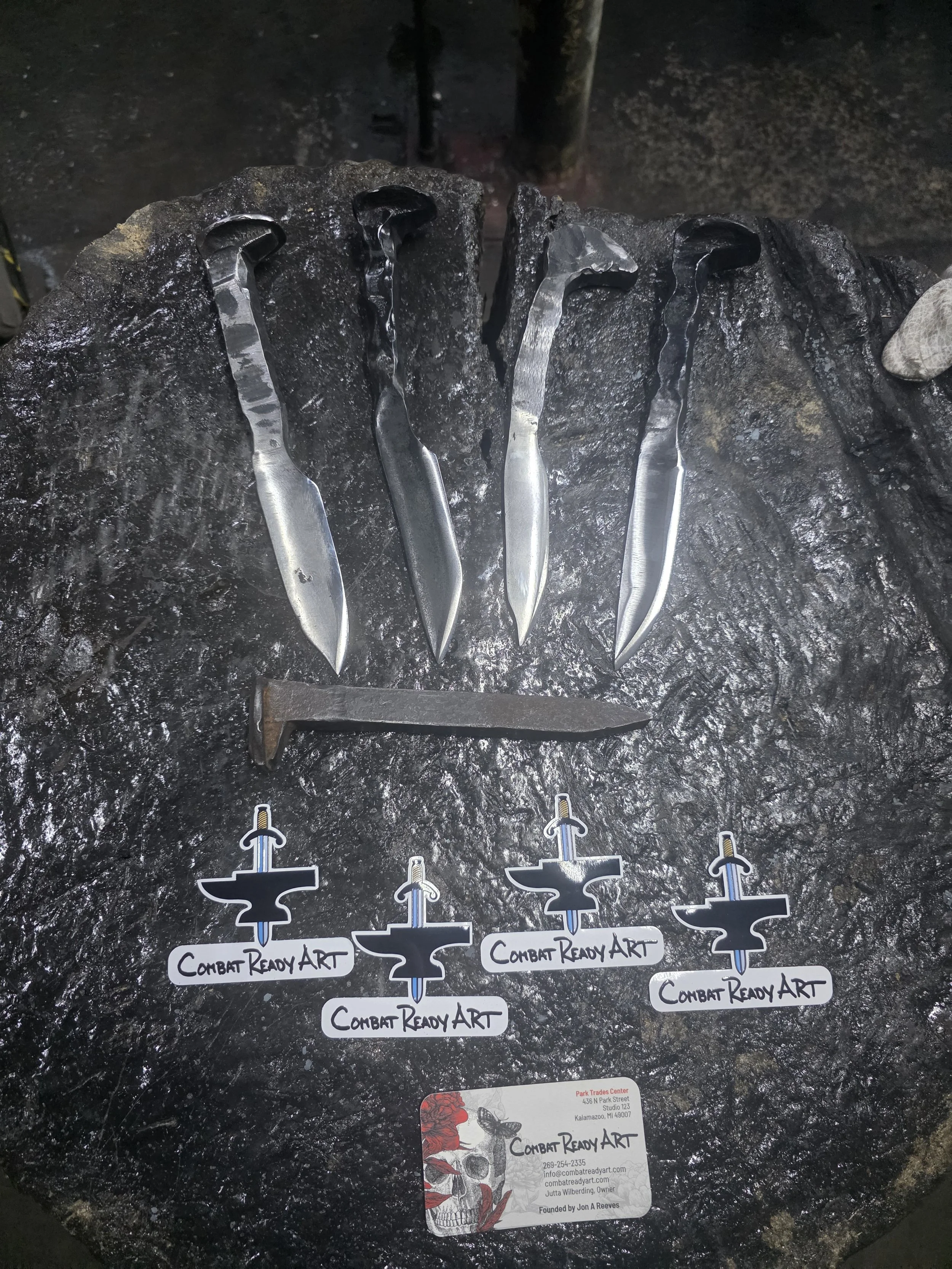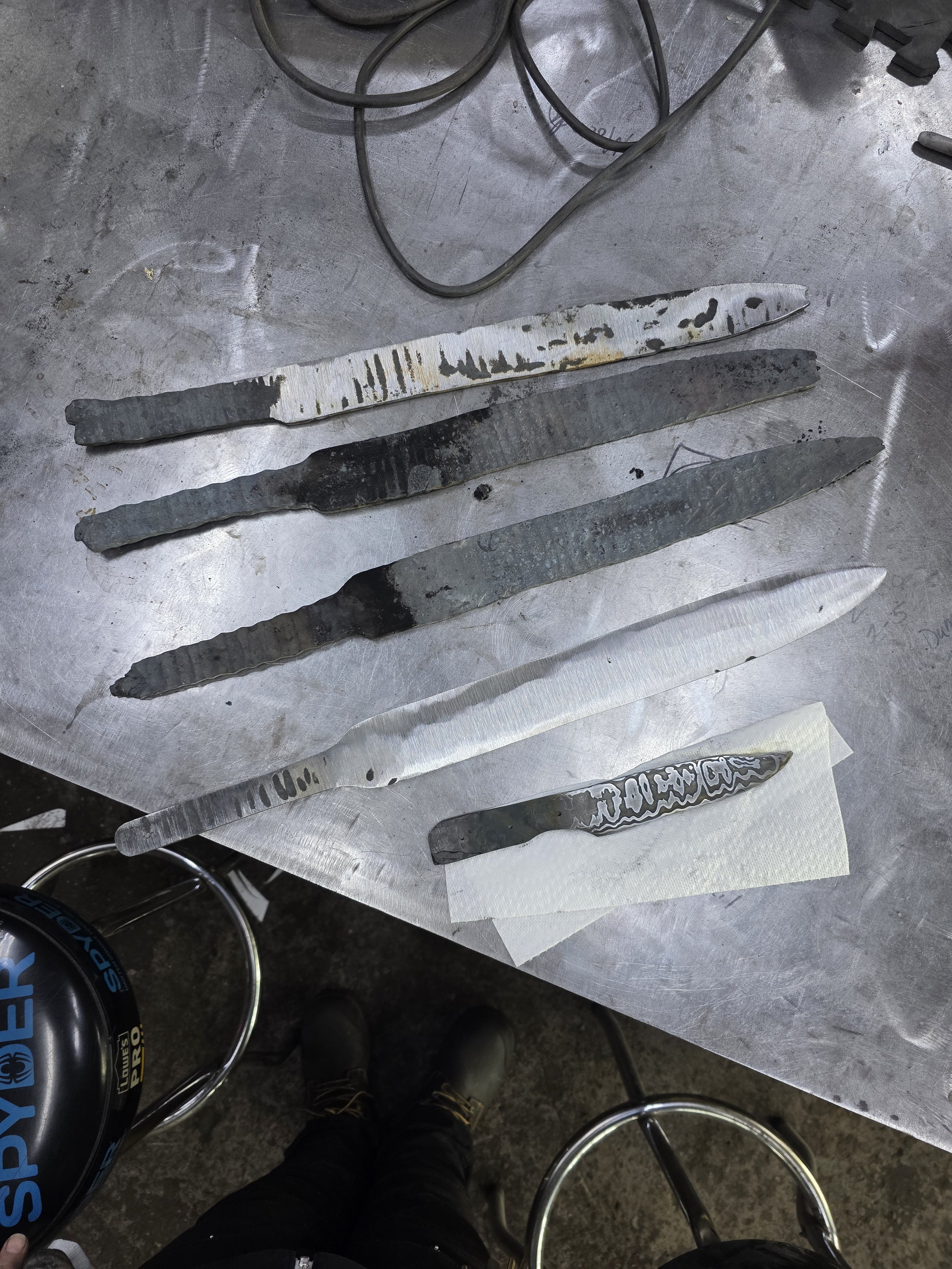 Lucy and Kristi and Kristi's parents, Roy and Marge, were back today to finish their Billet Knives! Roy made a skinning knife, while Lucy and Kristi both made EDCs. Marge went a little more dramatic with a bowie-ish style blade. Really nice work by all 4!