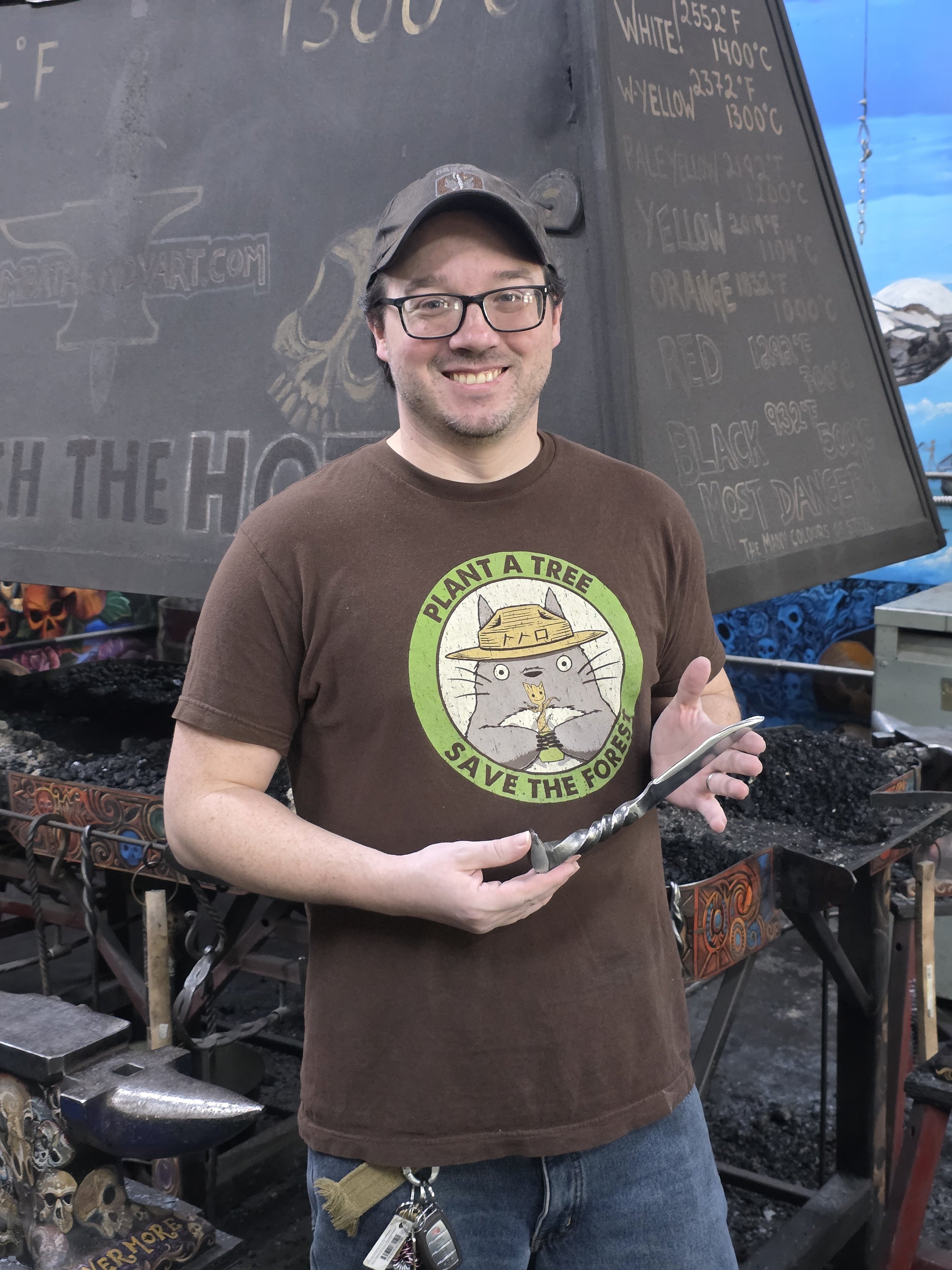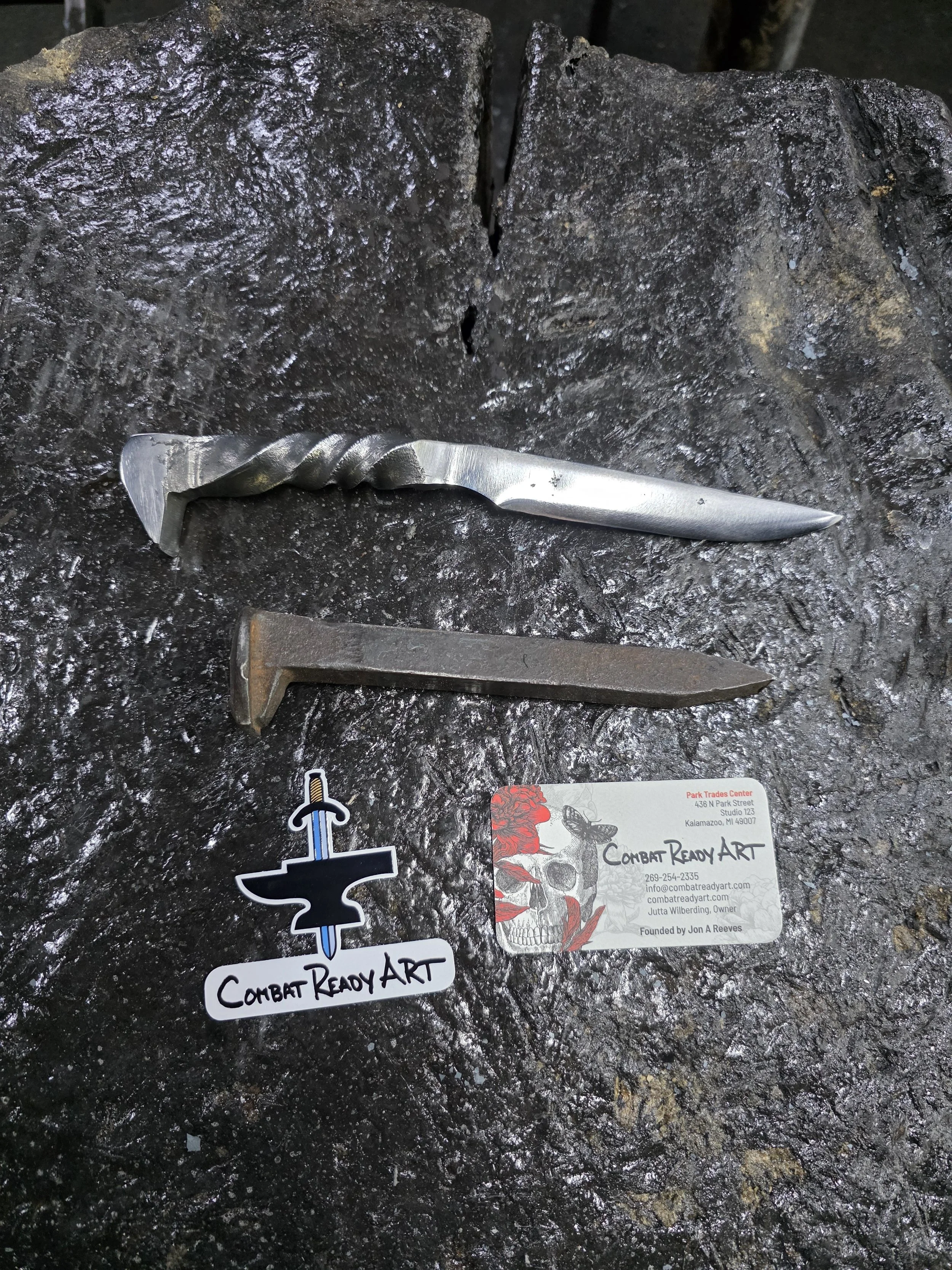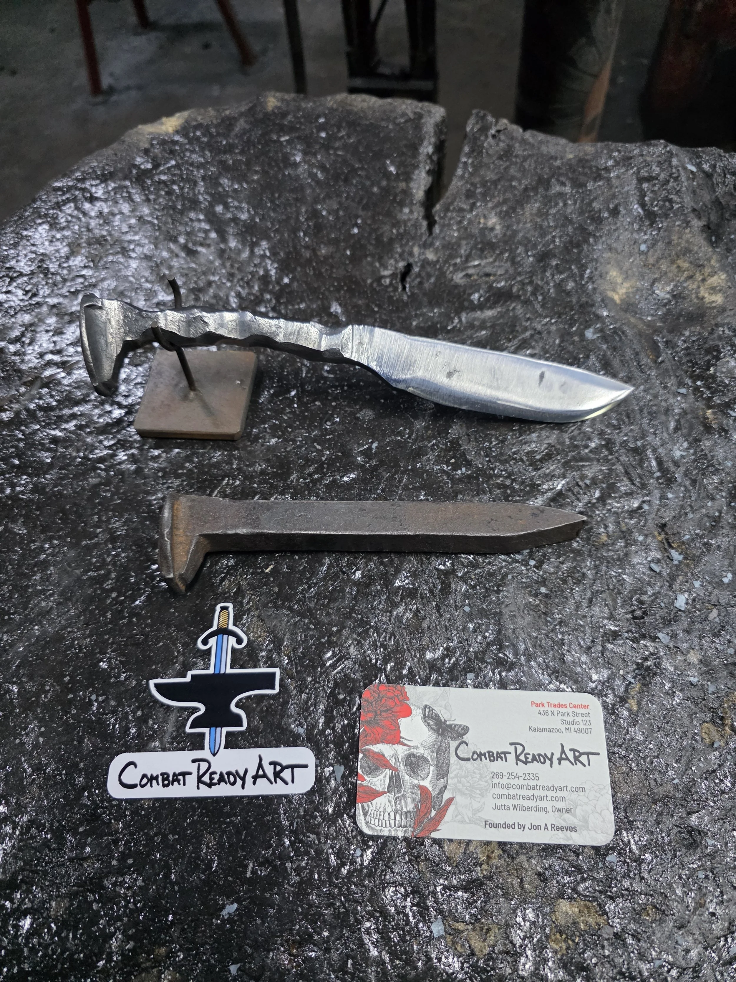 Mark was given a class as a gift from his wife. He forged a great Railroad Spike Knife tonight!