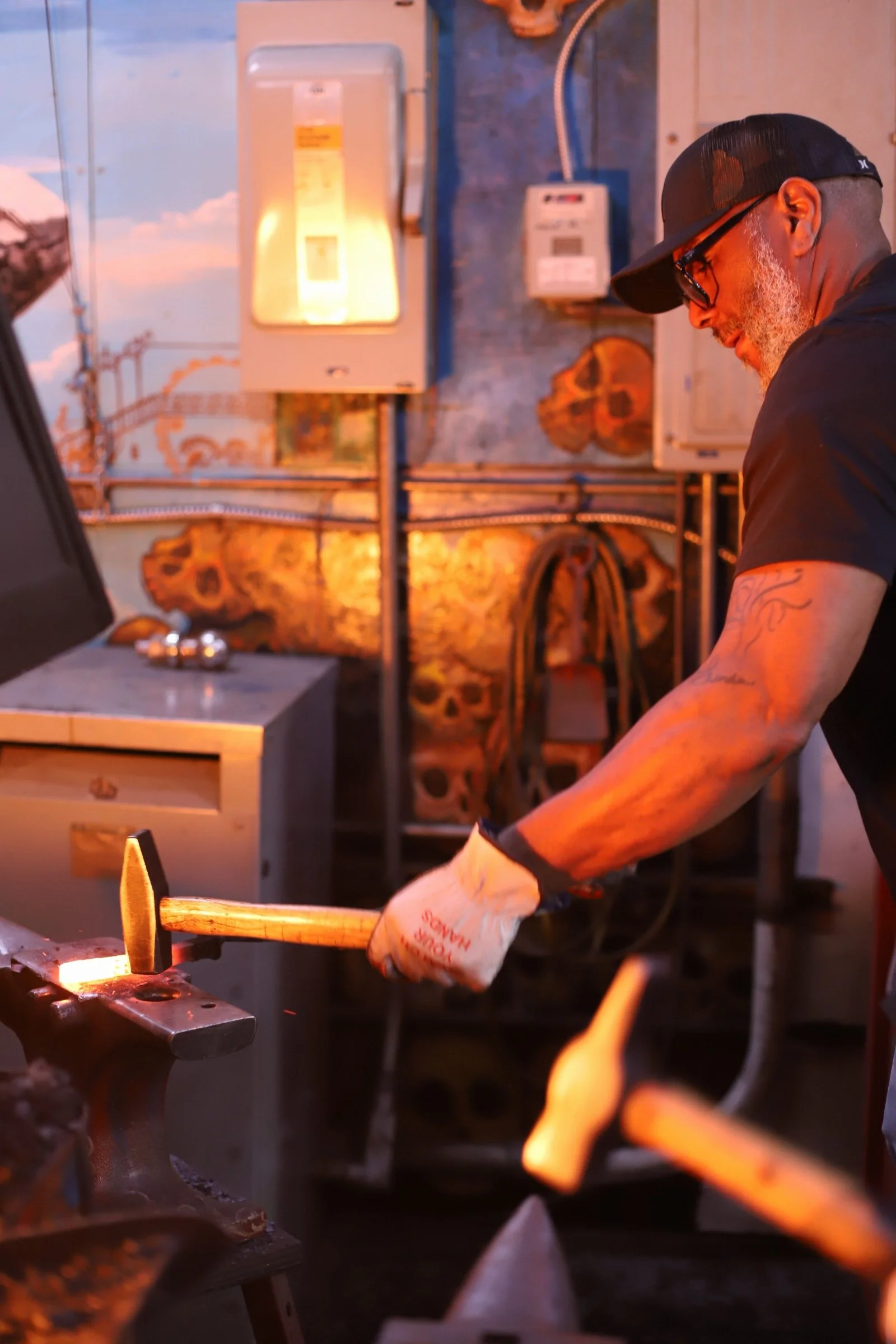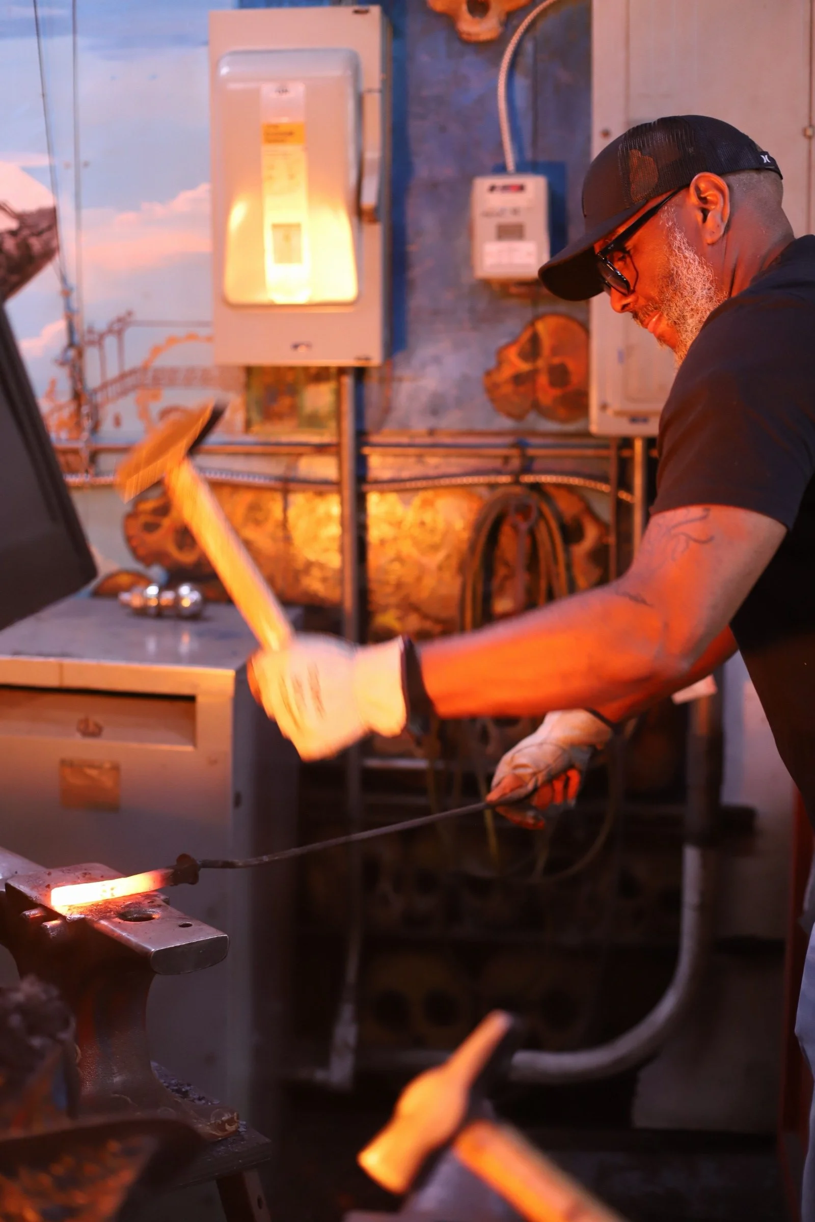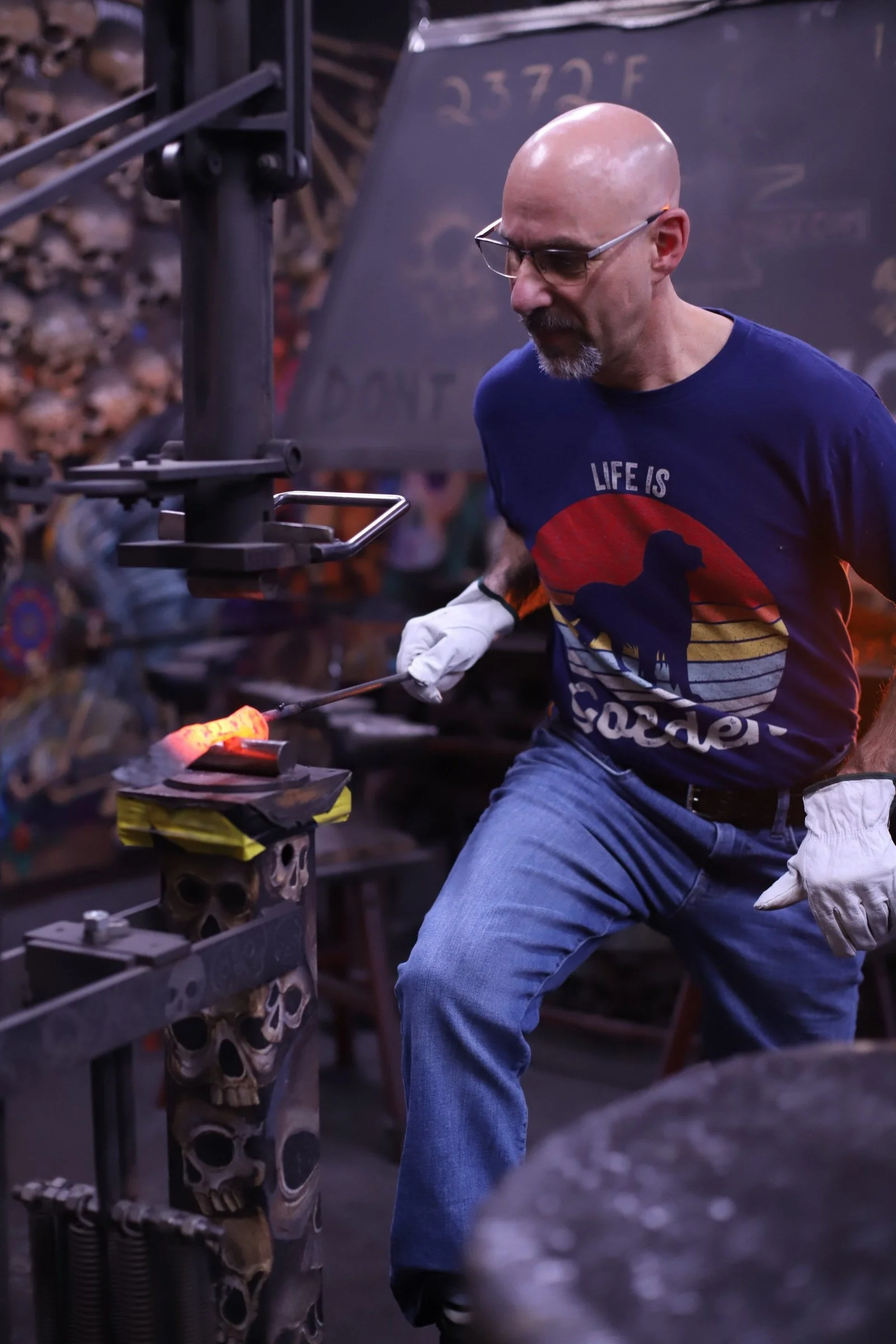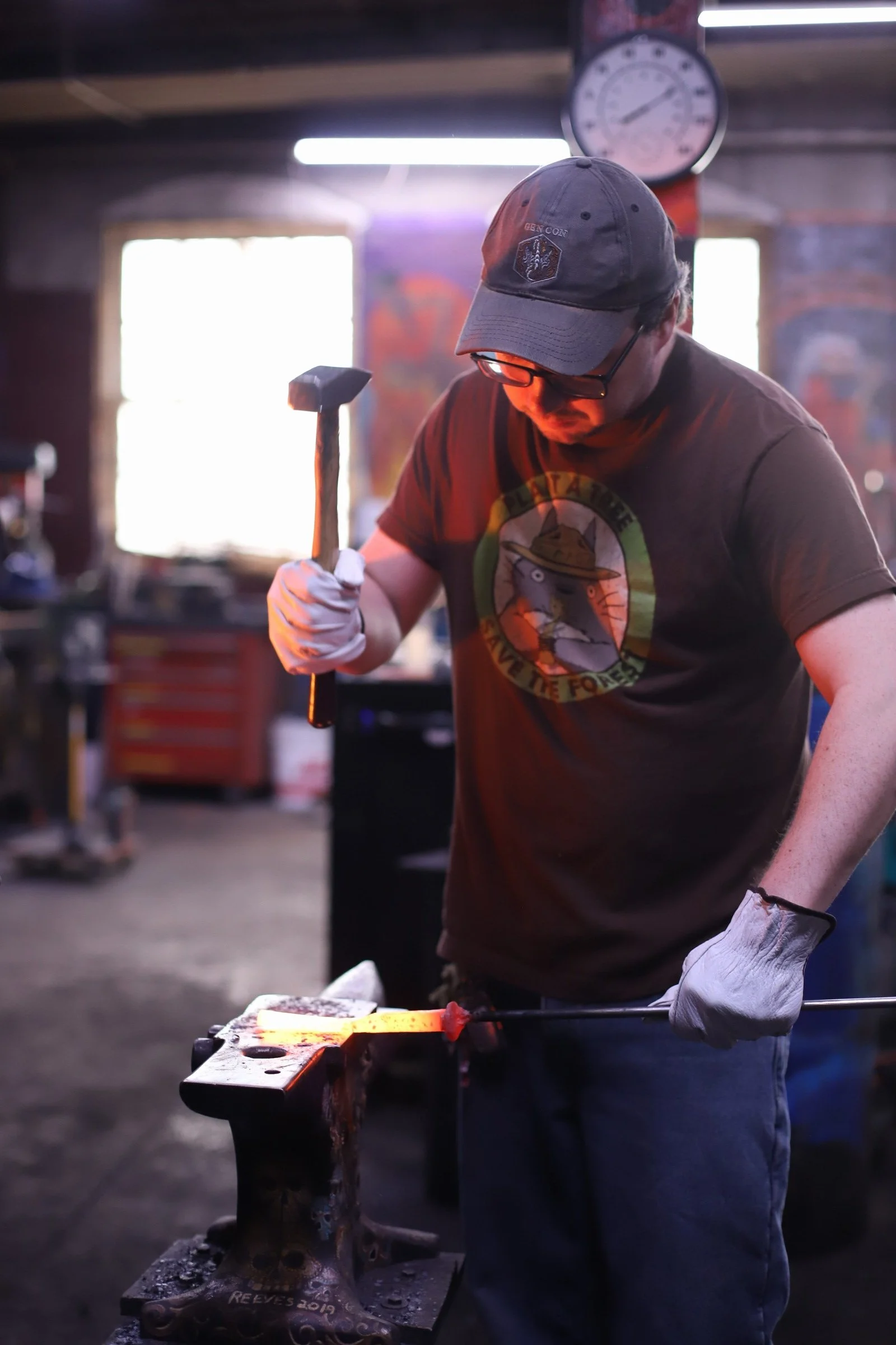 Mark was given a class as a gift from his wife. He forged a great Railroad Spike Knife tonight!