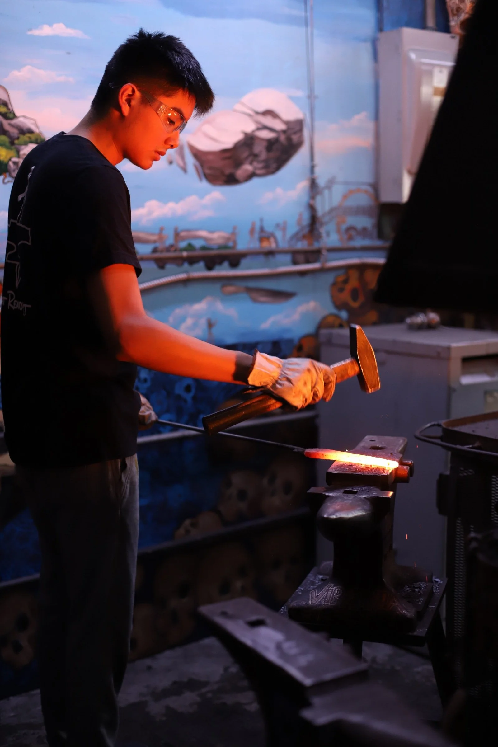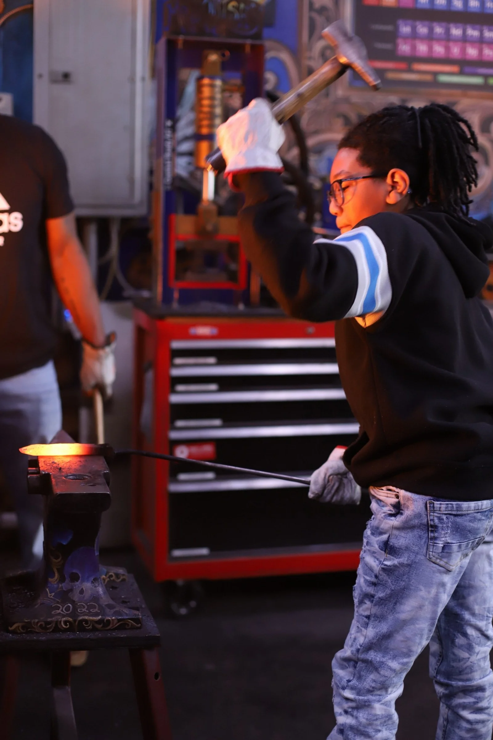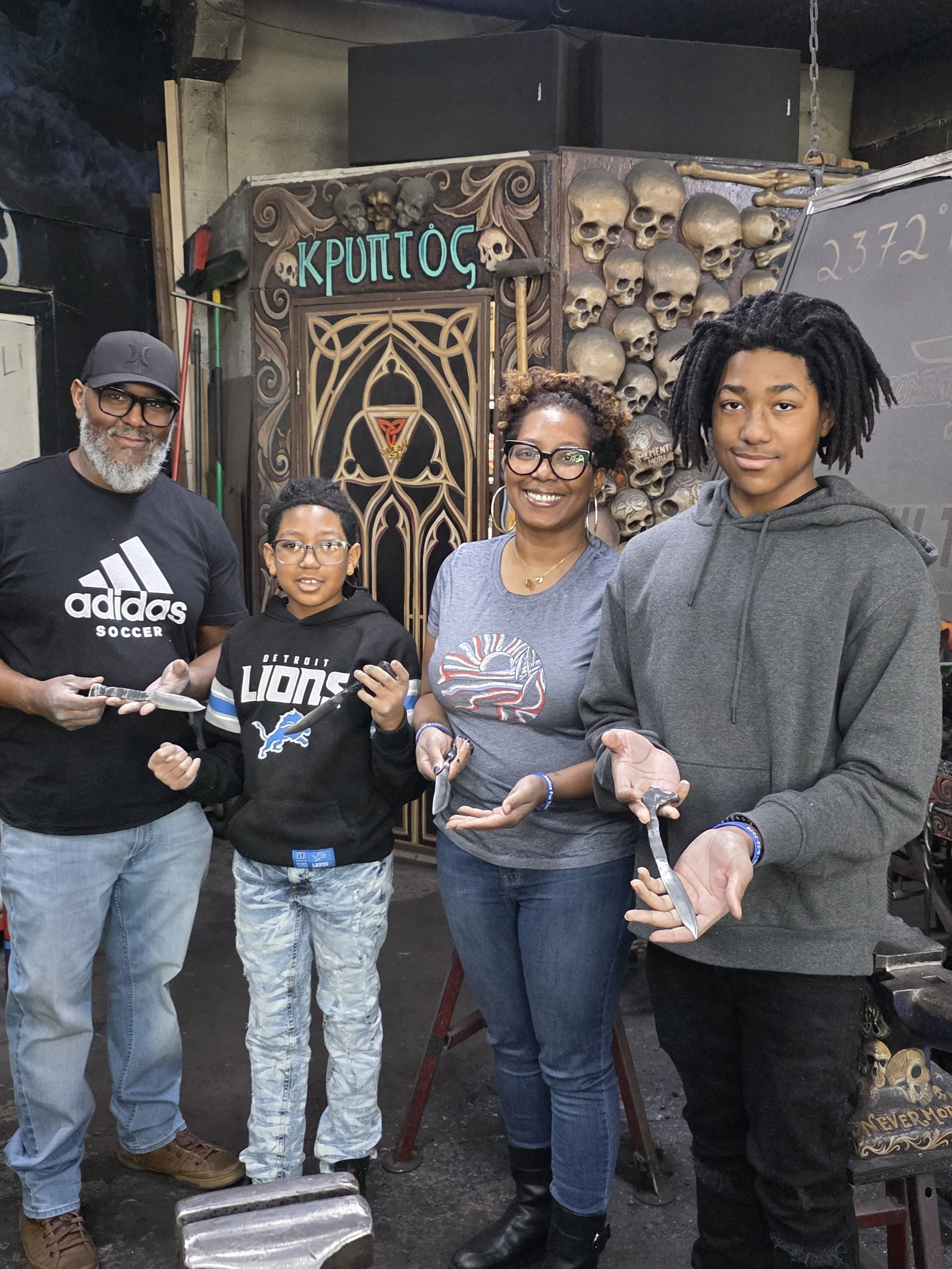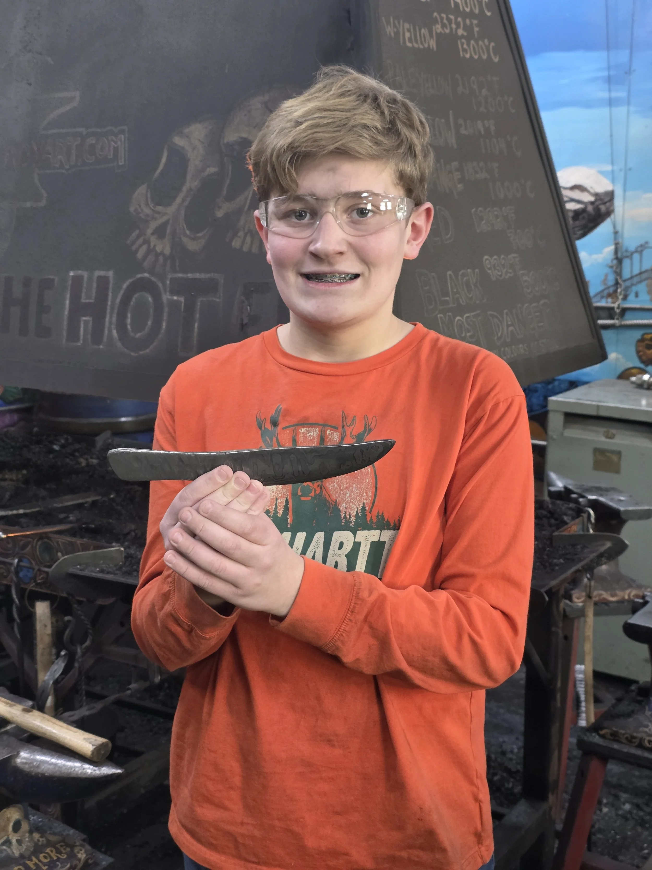 Family fun in the forge this morning! They all did a fantastic job making their first knives!