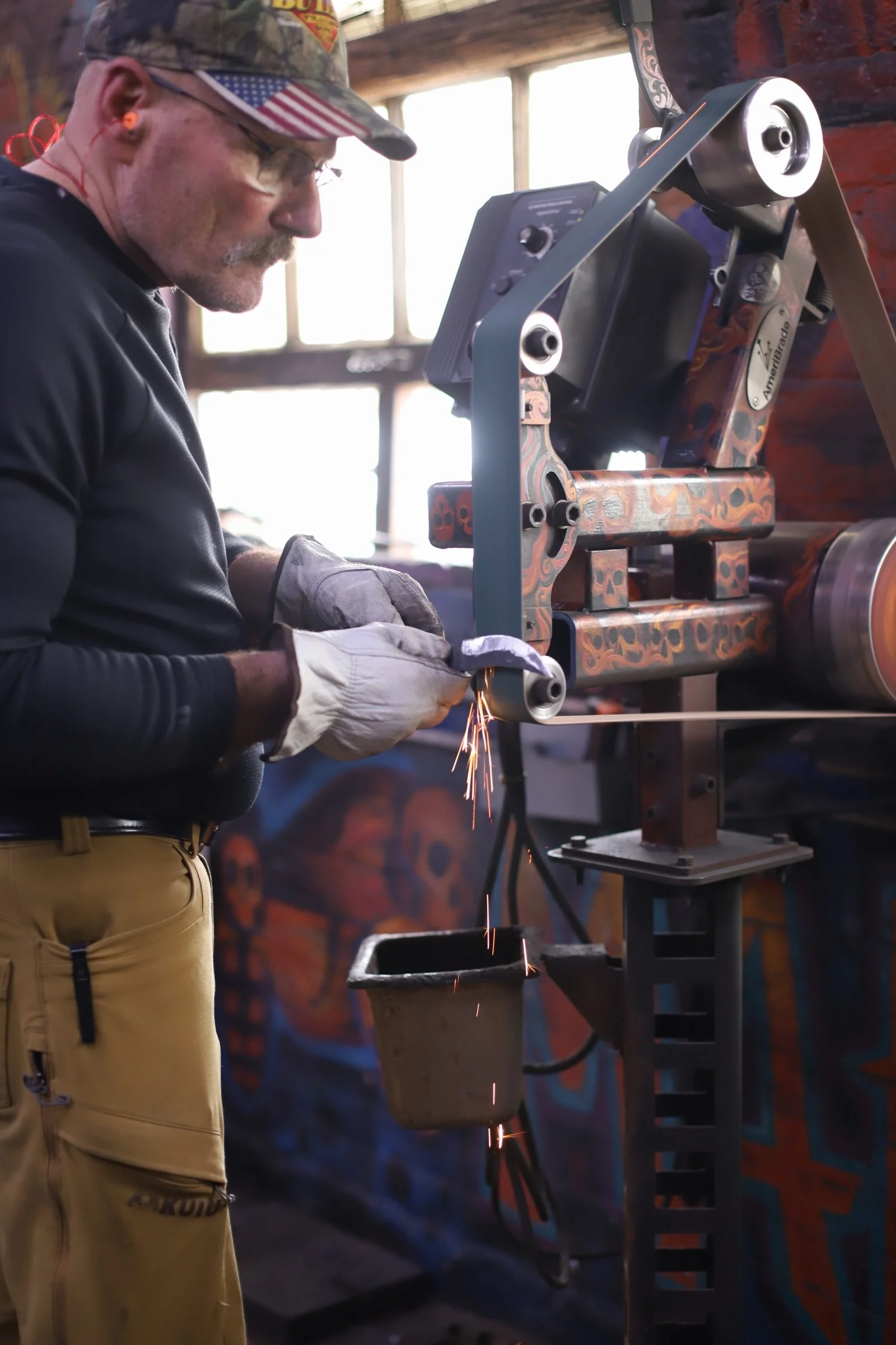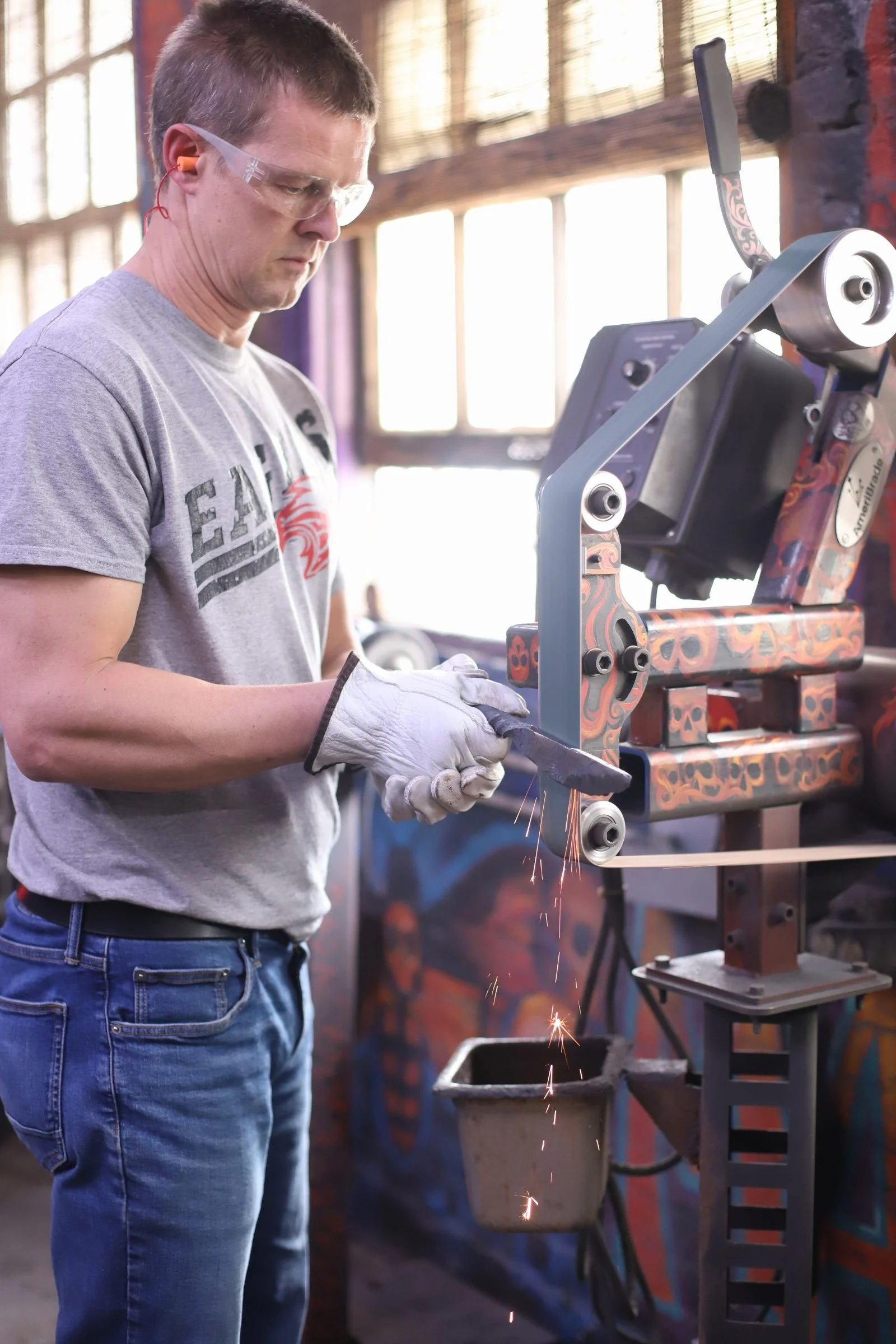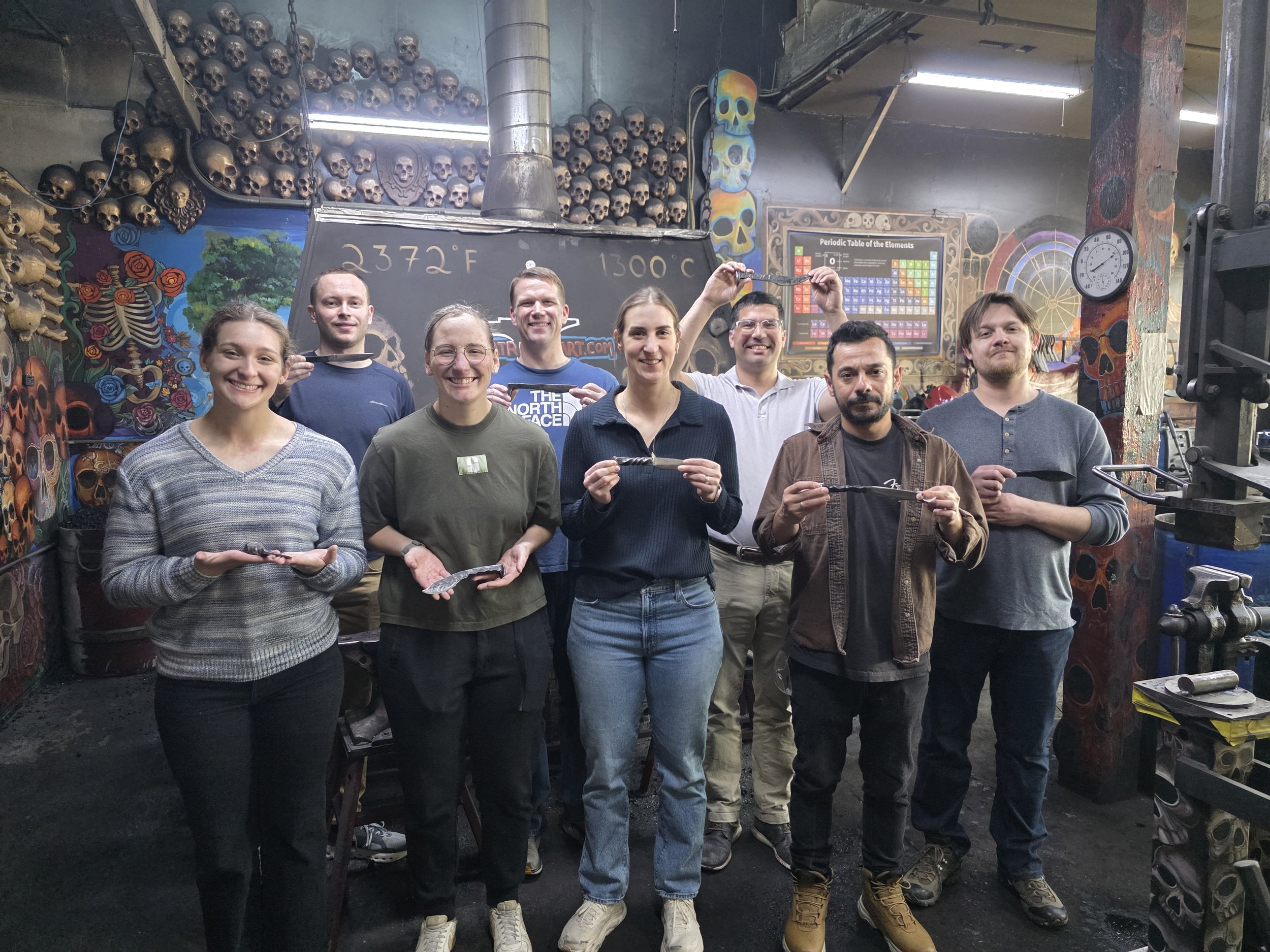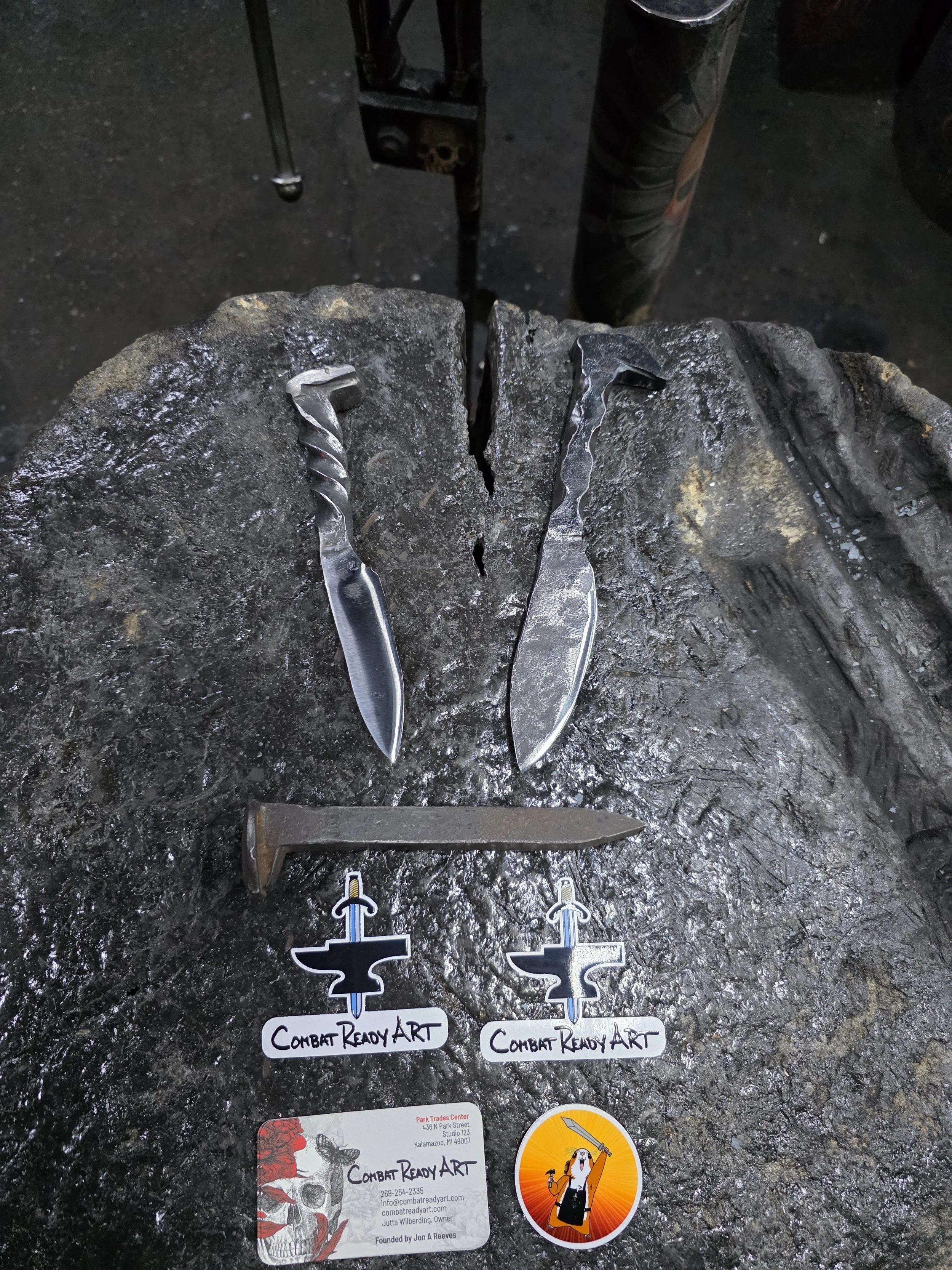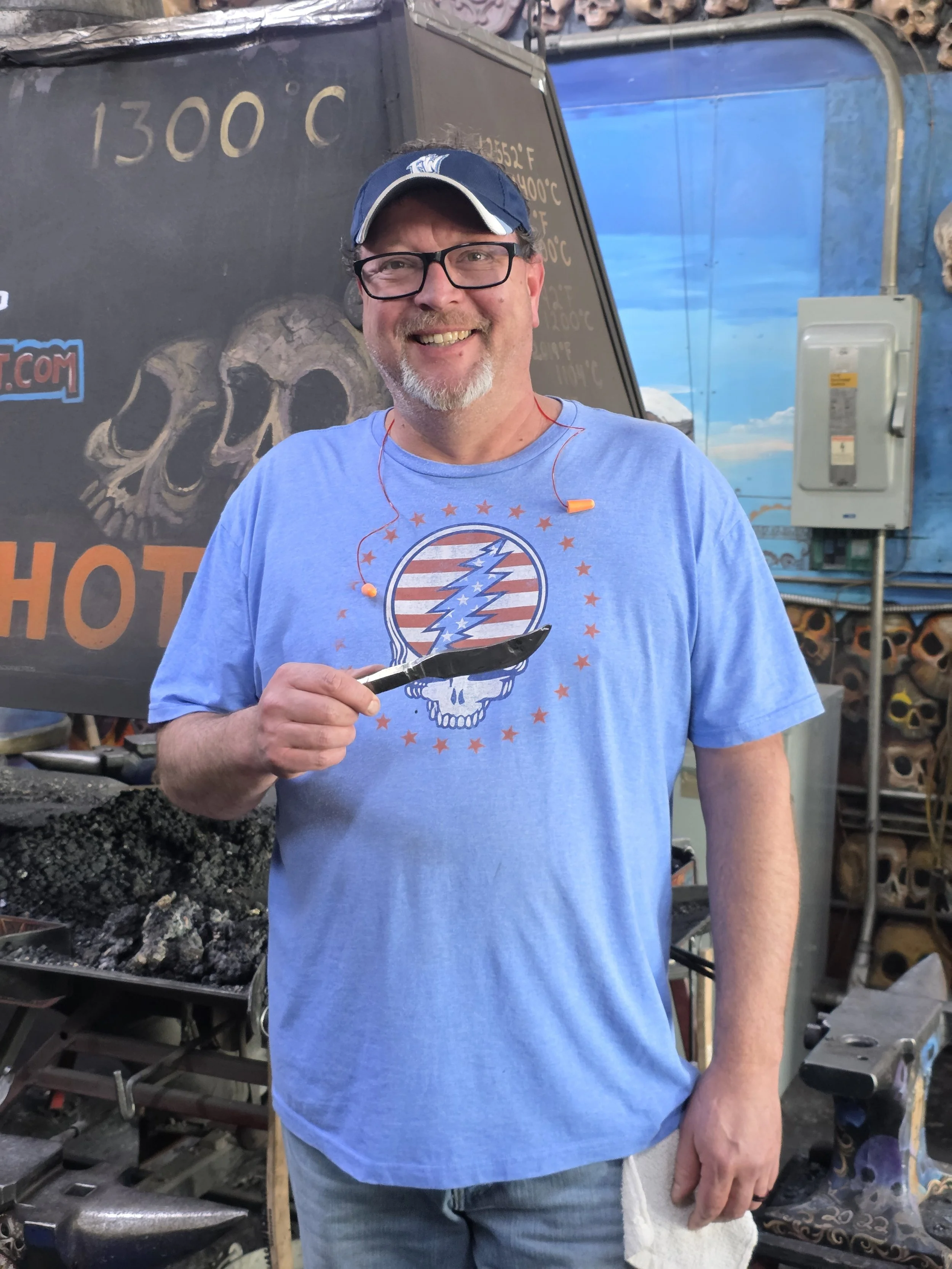 Birthday Knifemaking! Wendy brought her husband Dan to the first as a birthday gift. He works on the railroad side of a steel mill, so of course he made to make a Railroad Spike Knife! Great job and happy birthday!