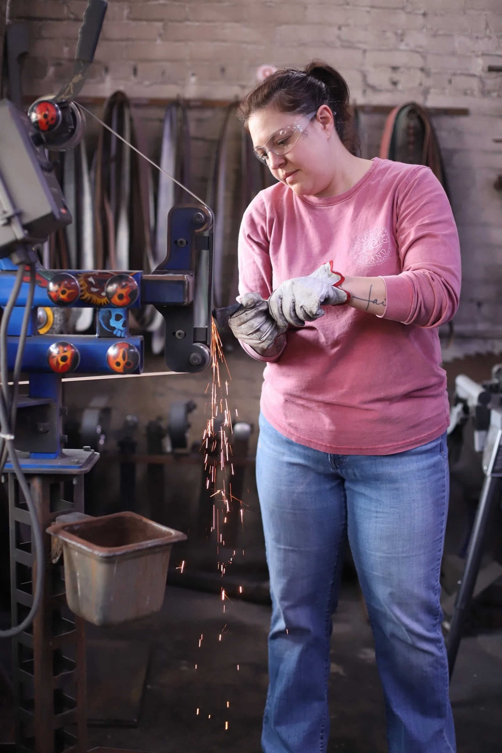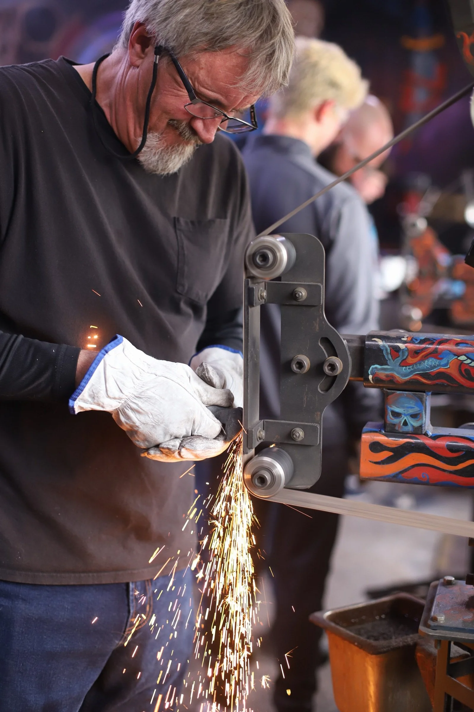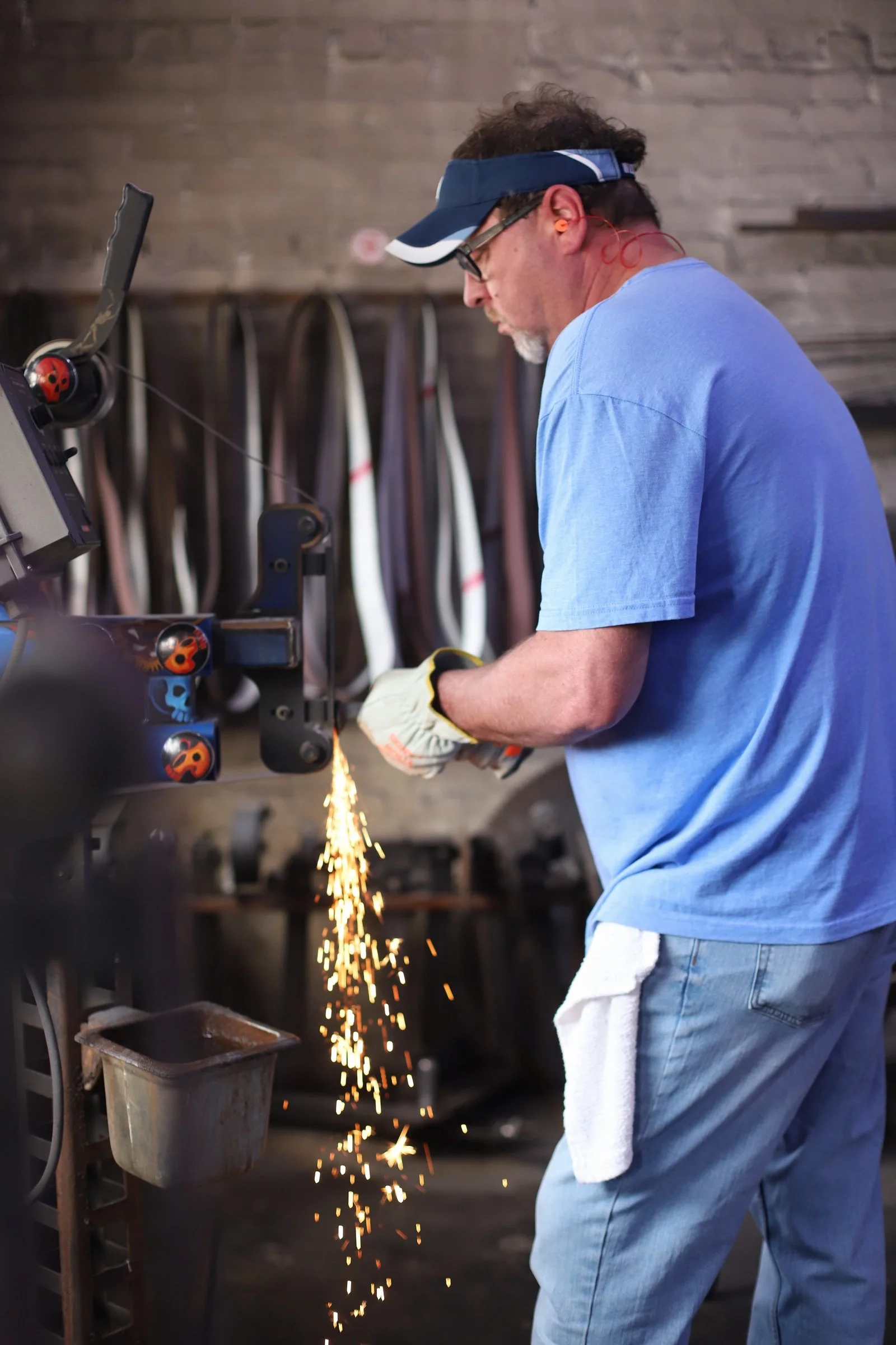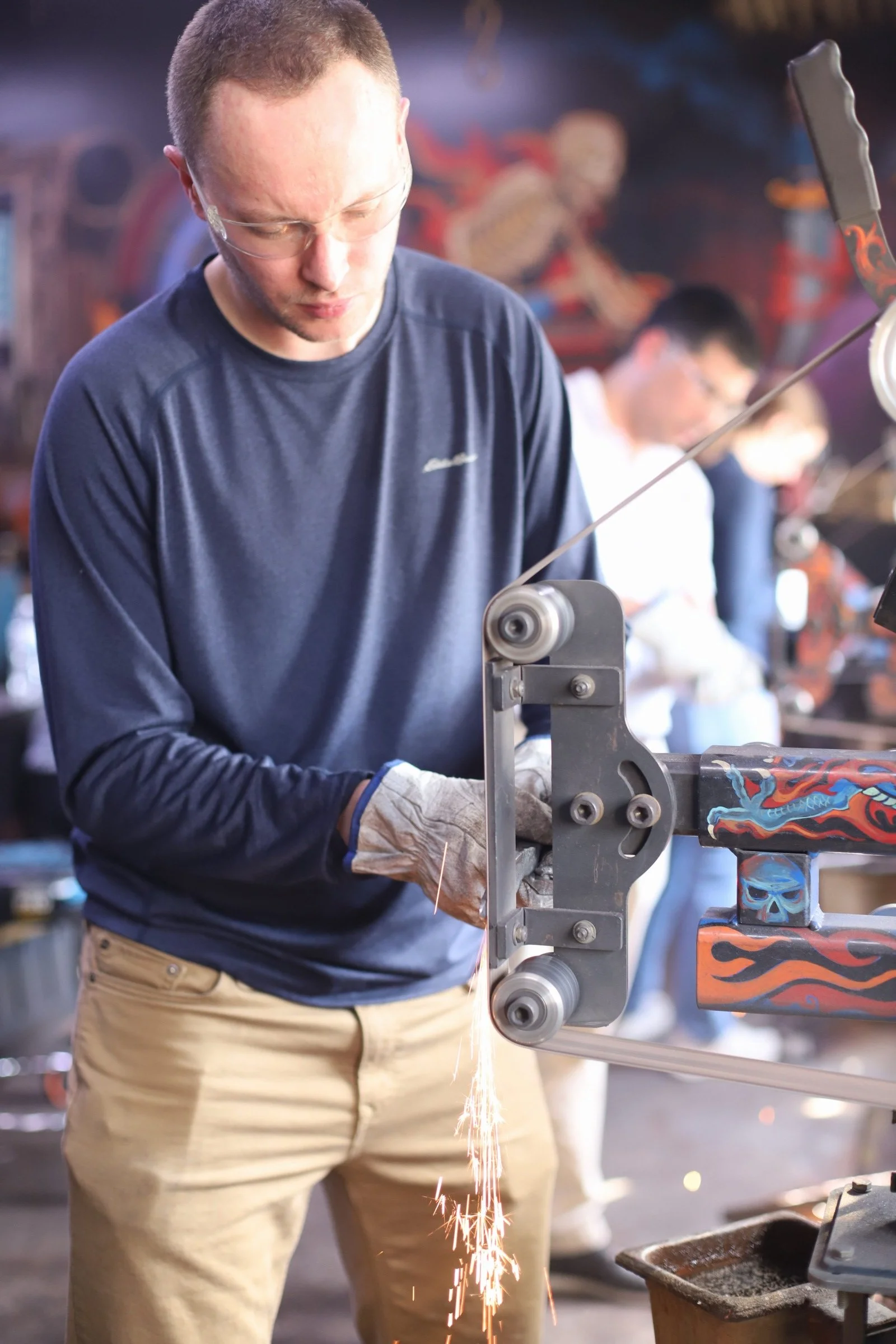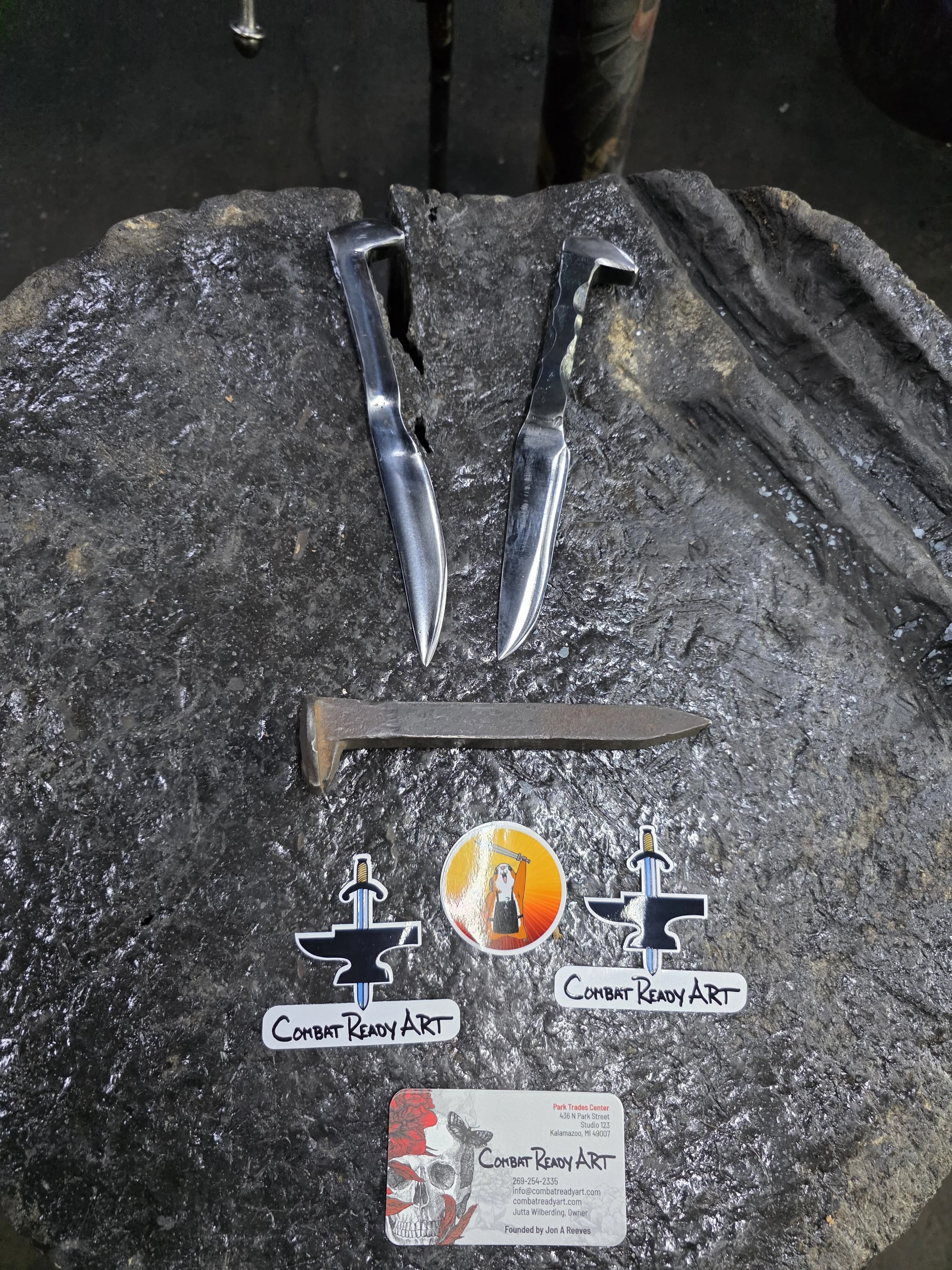 Birthday Knifemaking! Wendy brought her husband Dan to the first as a birthday gift. He works on the railroad side of a steel mill, so of course he made to make a Railroad Spike Knife! Great job and happy birthday!