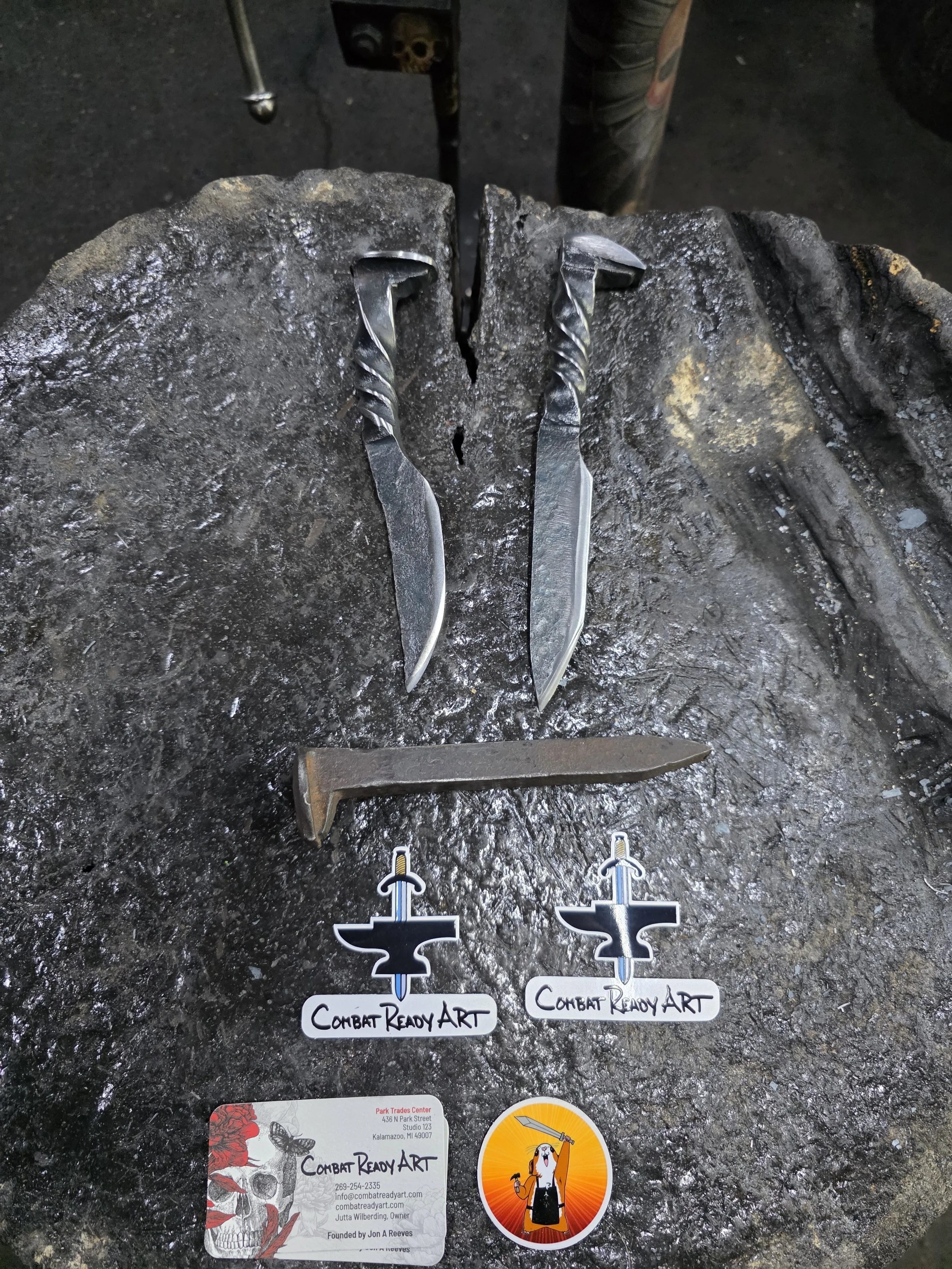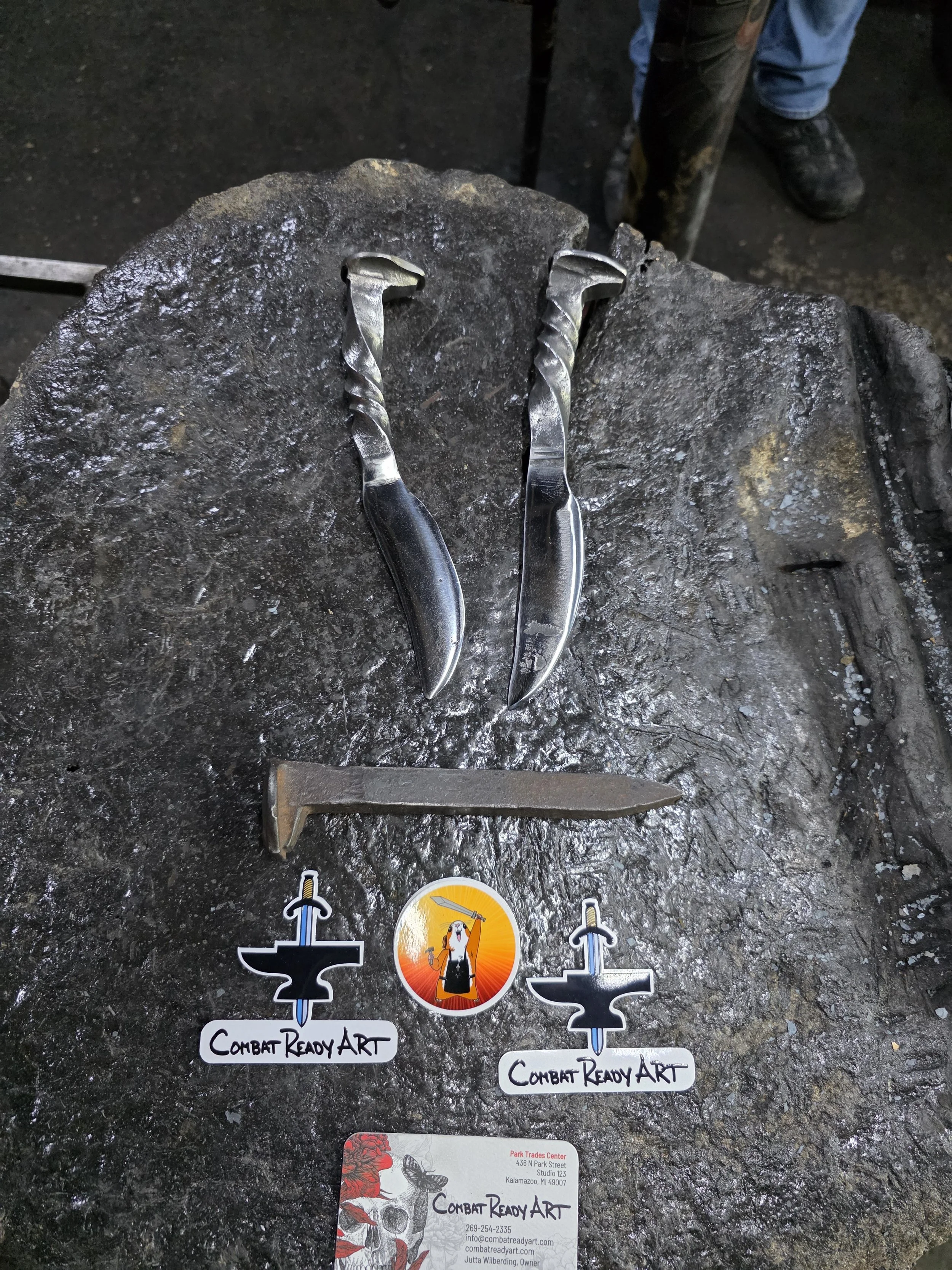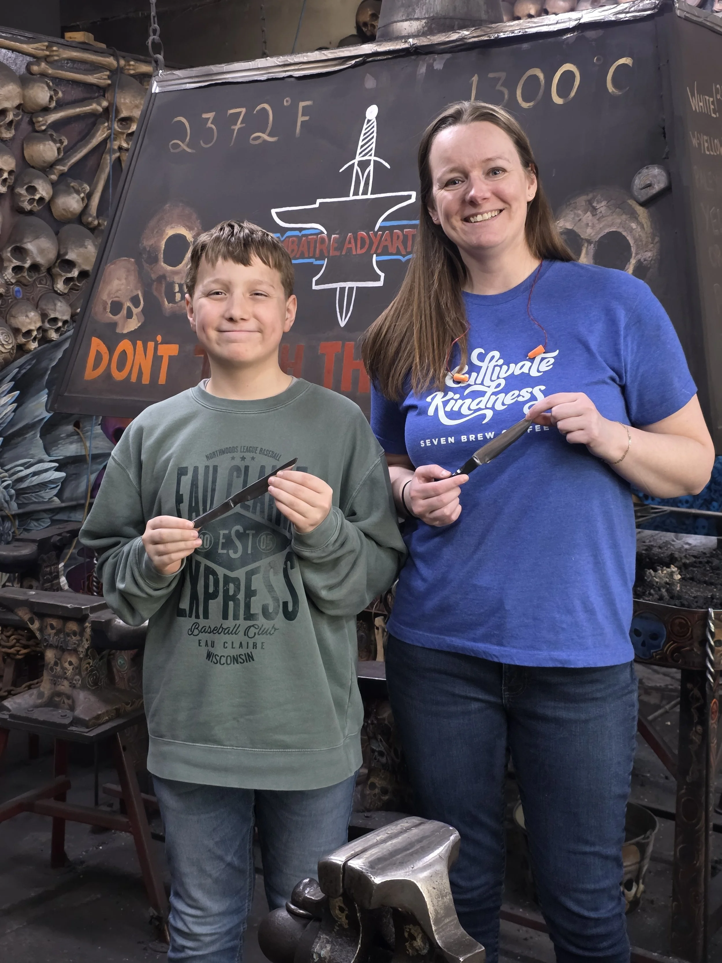 Rachel and her son came from Northern Wisconsin (before the blizzard struck) to make Railroad Spike Knives for Spring Break! This might become a tradition!