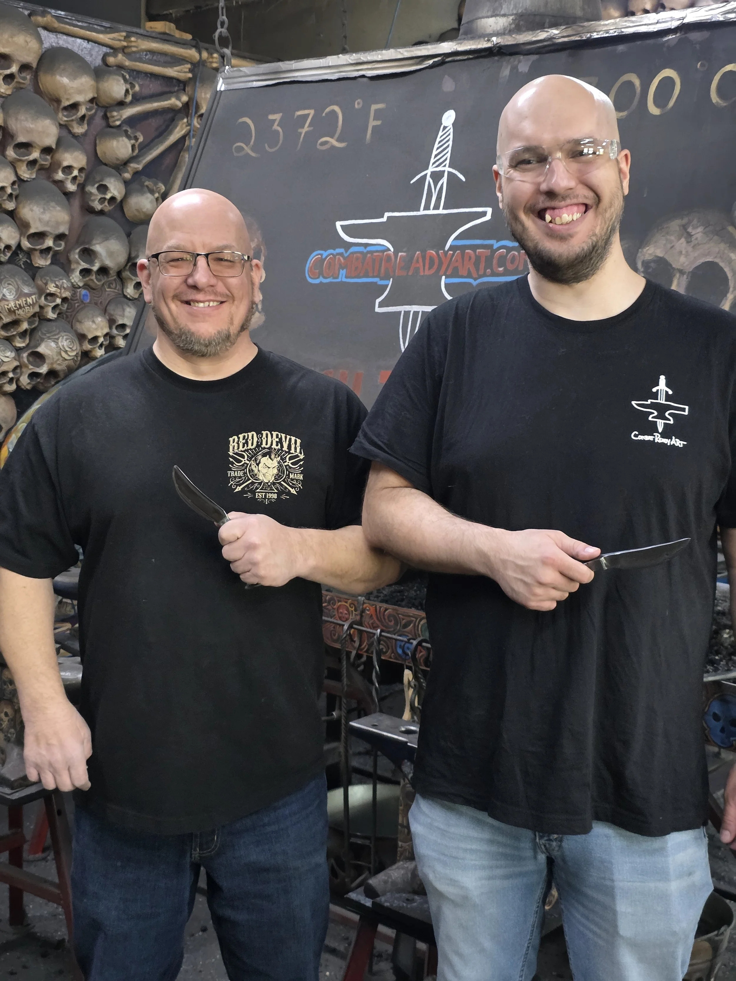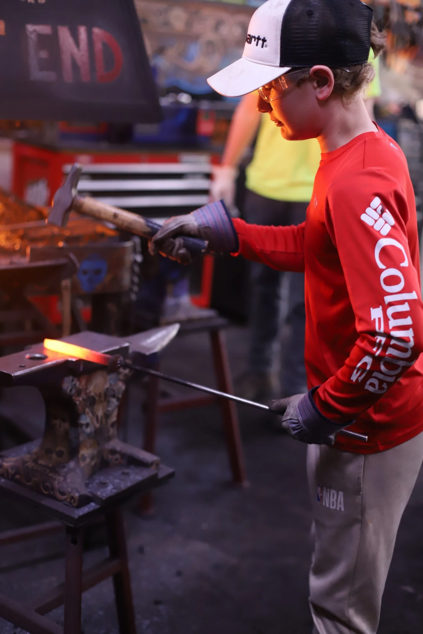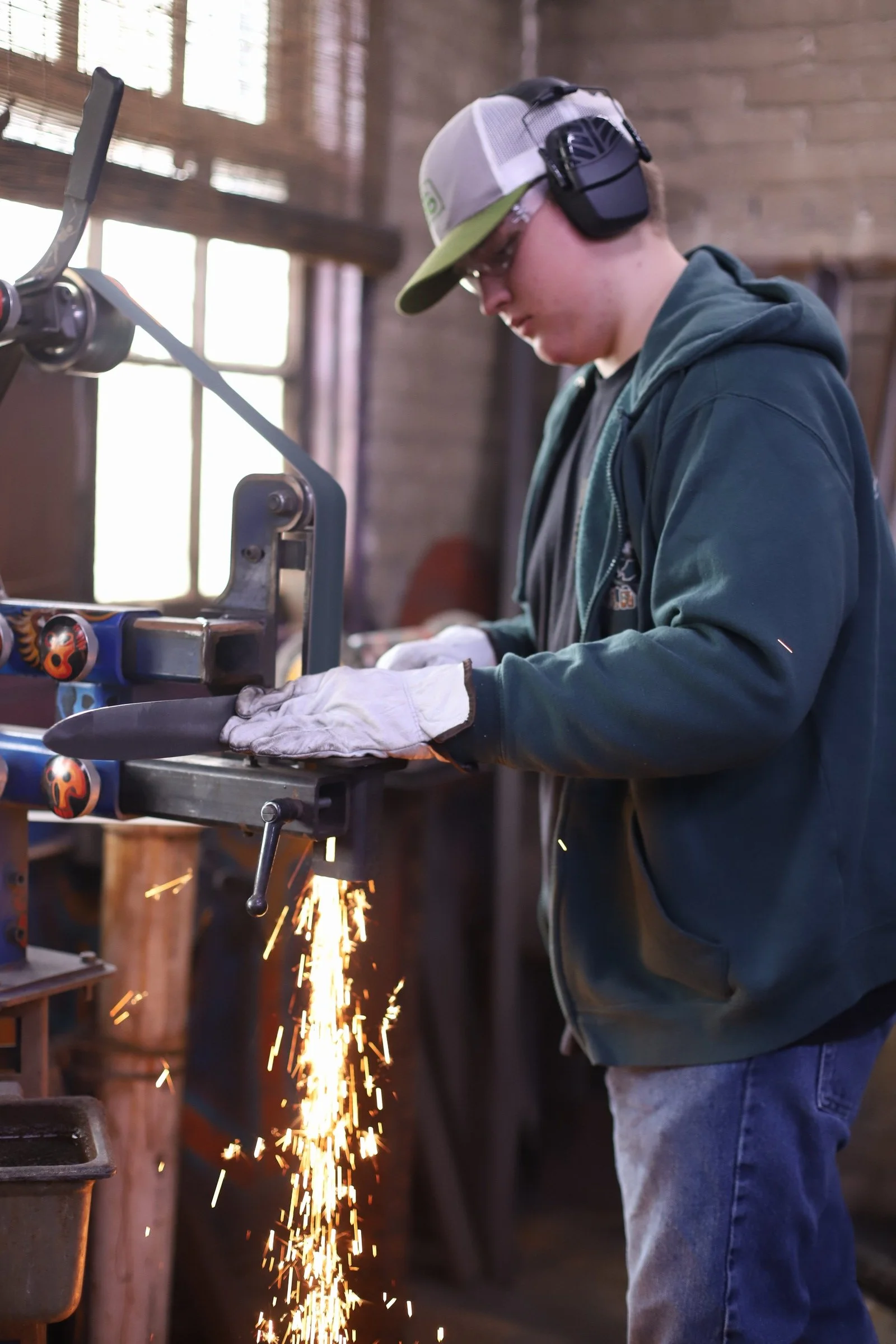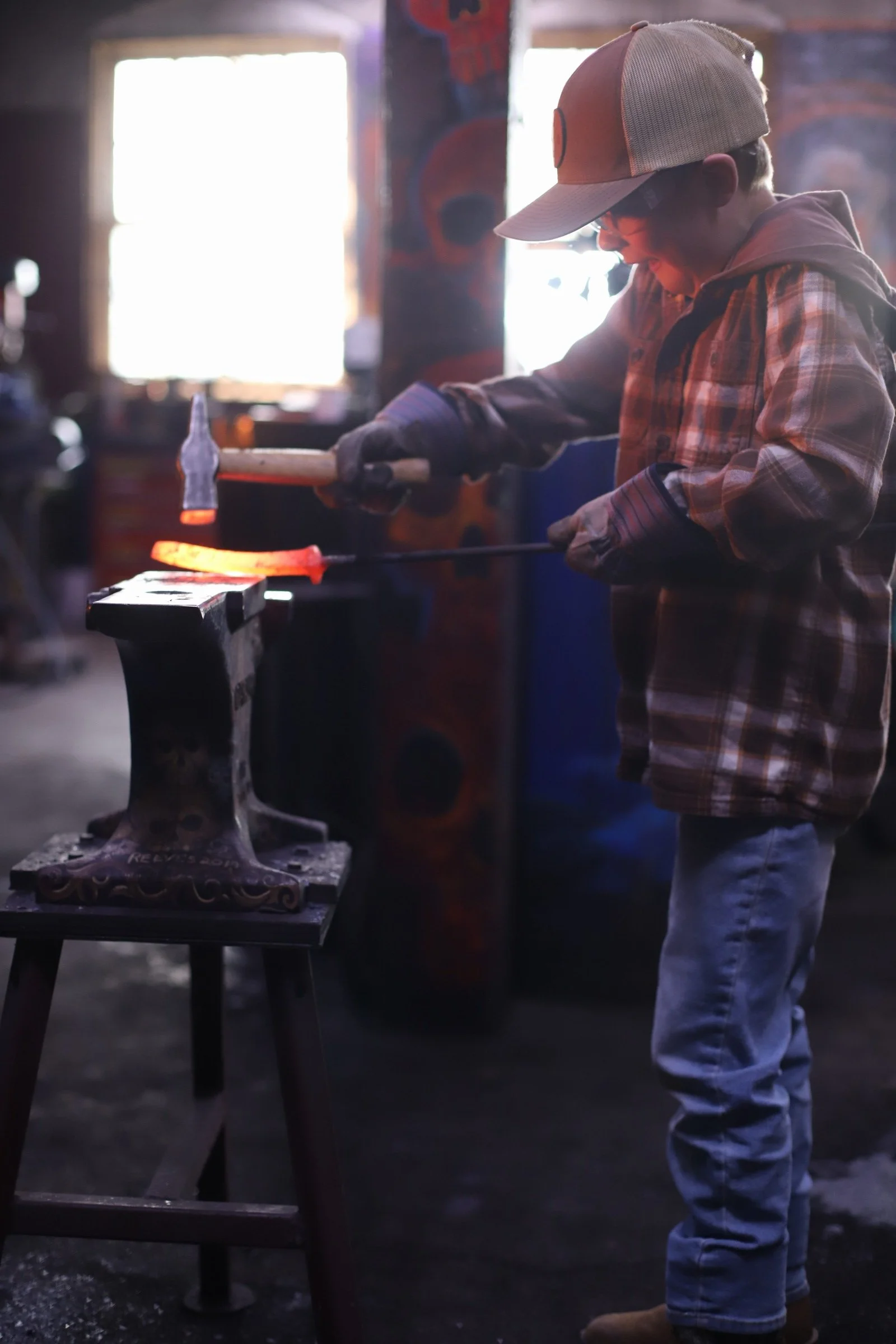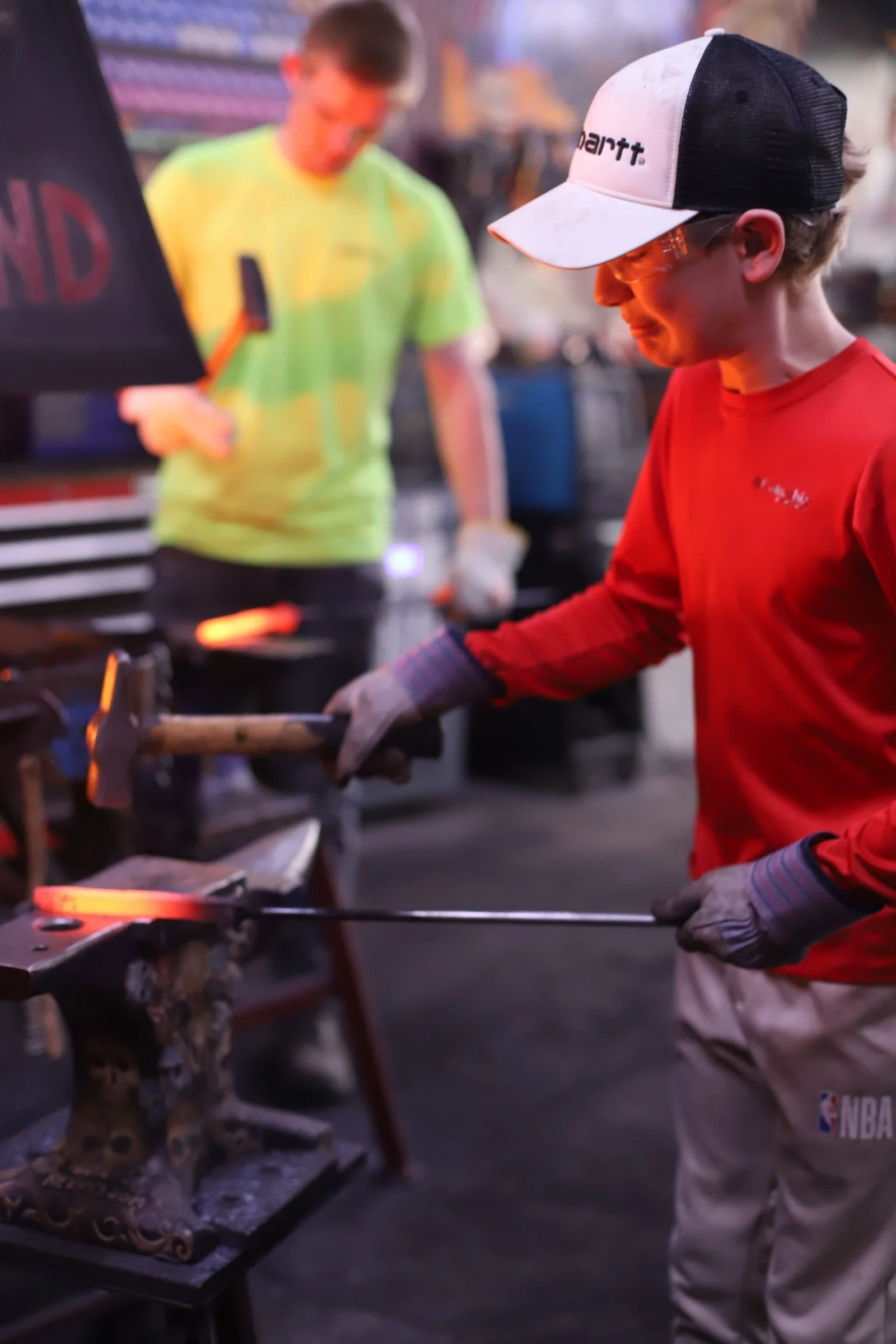 Very fun class this morning with these three making Railroad Spike Knives! This was Aiden's second time in the forge, so he made a dagger. Nice job by all 3!