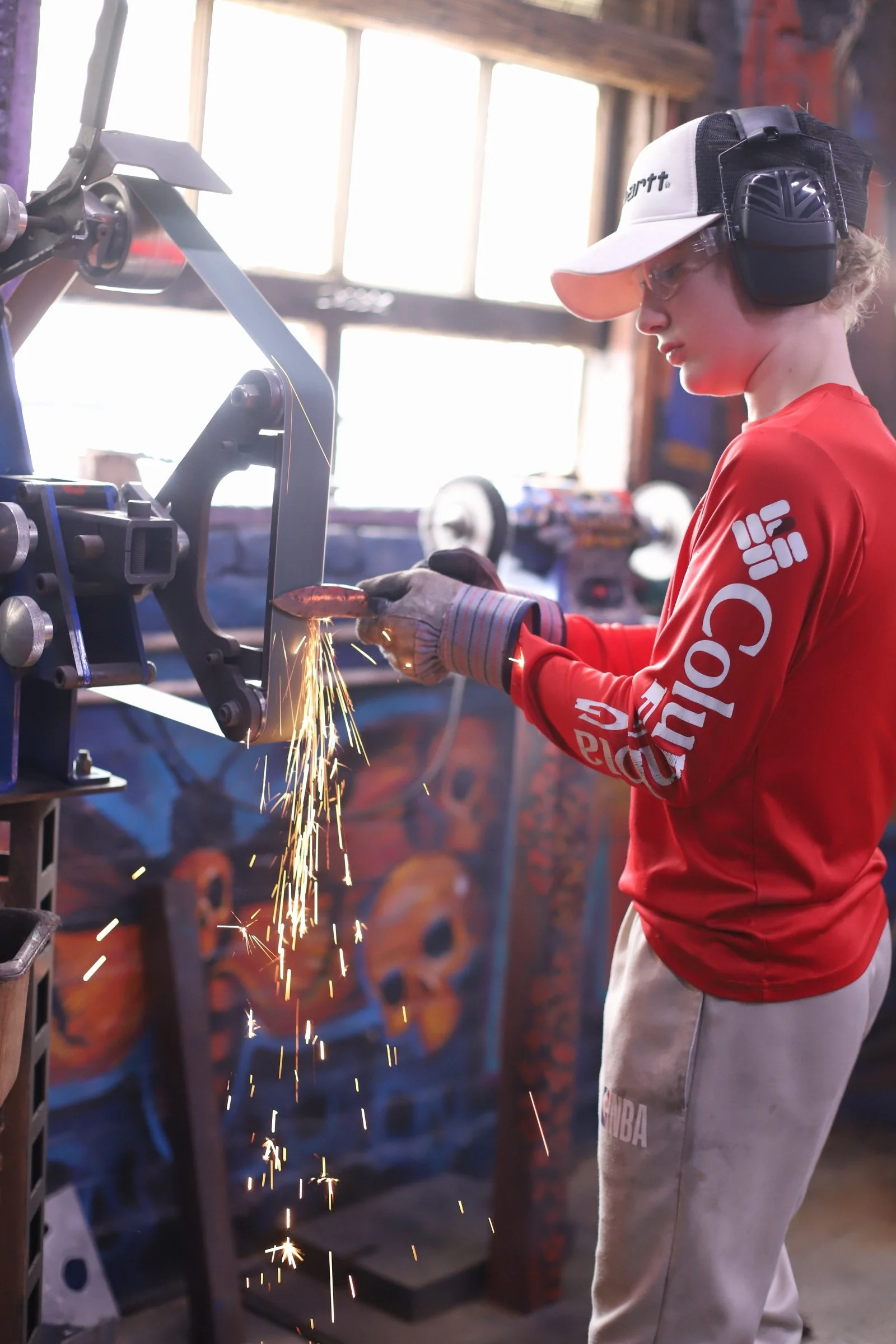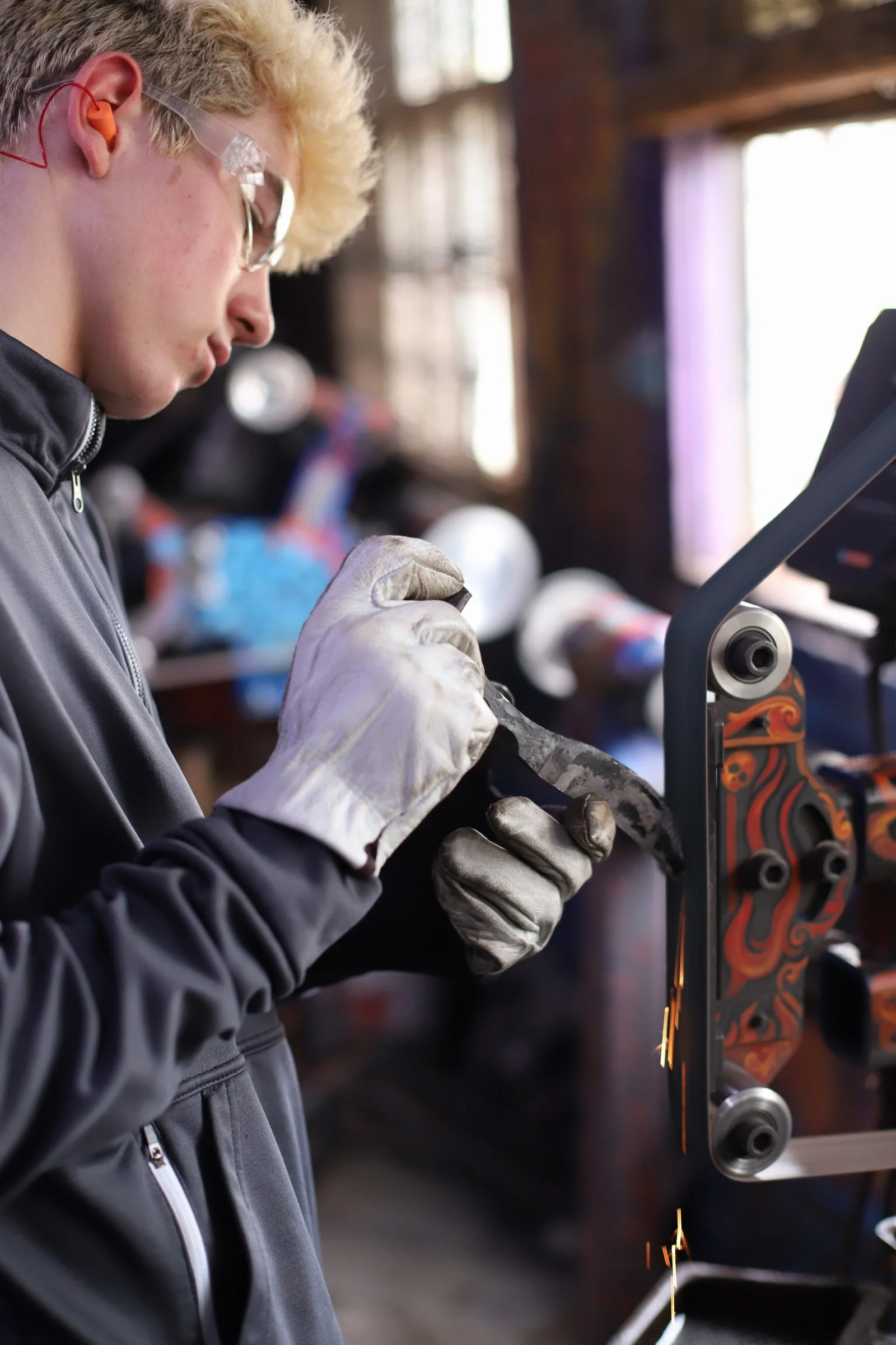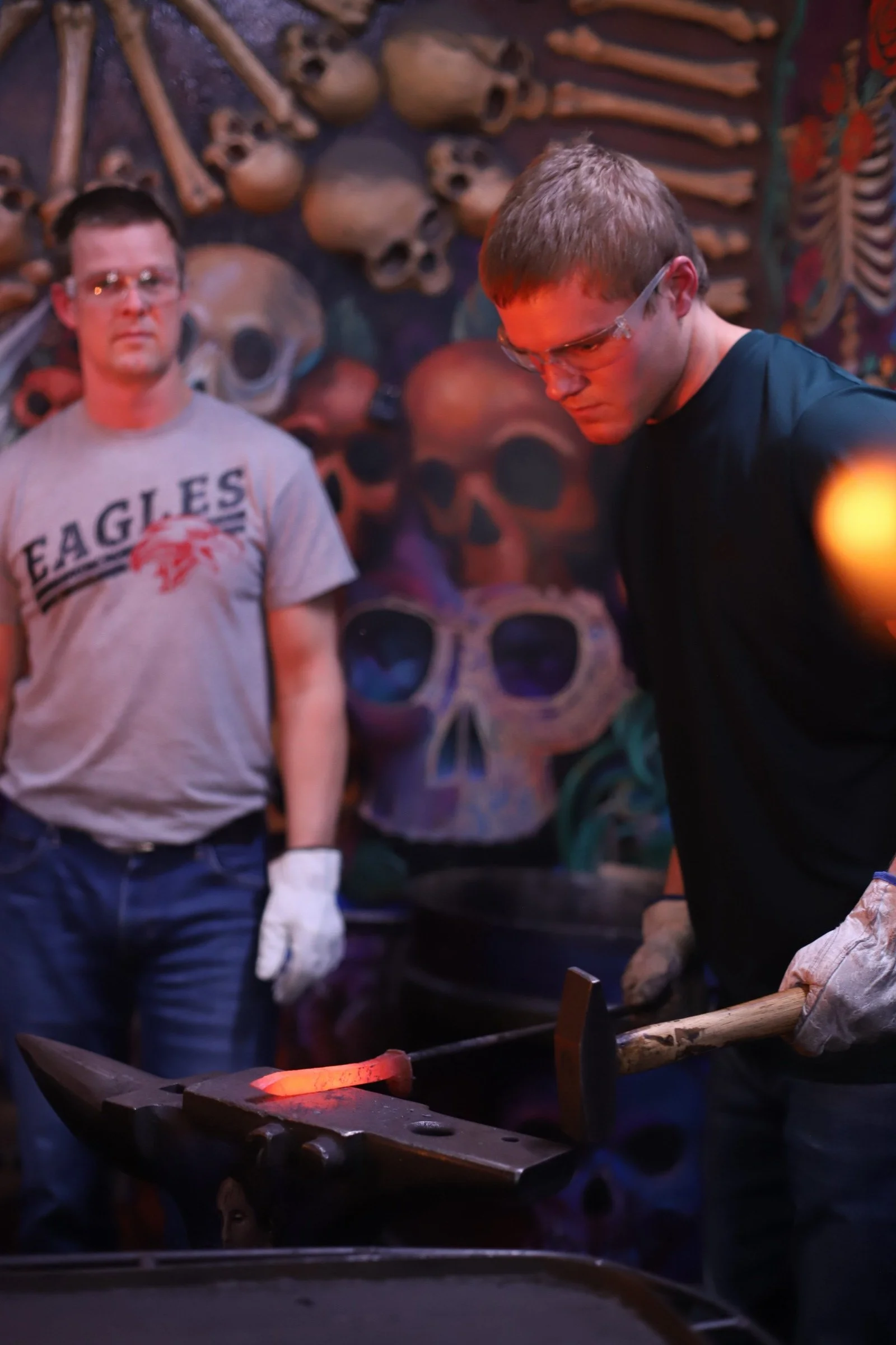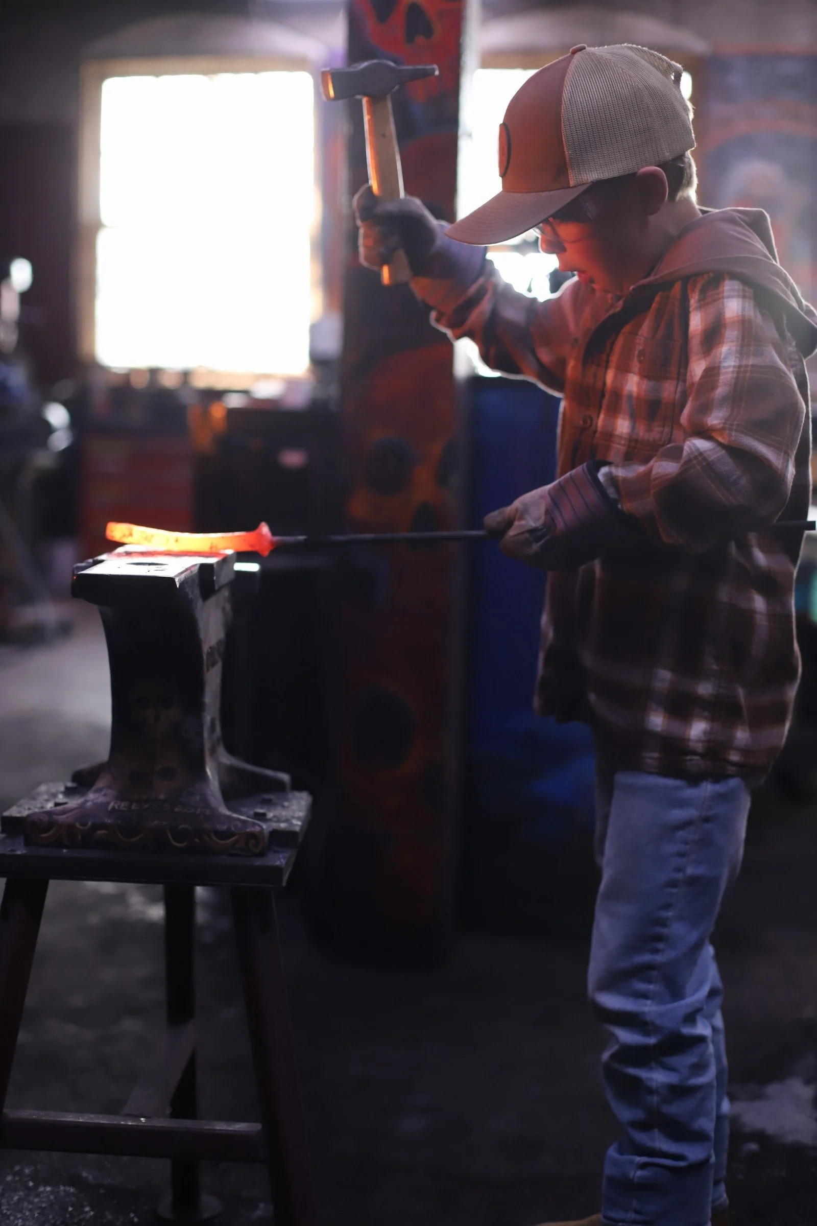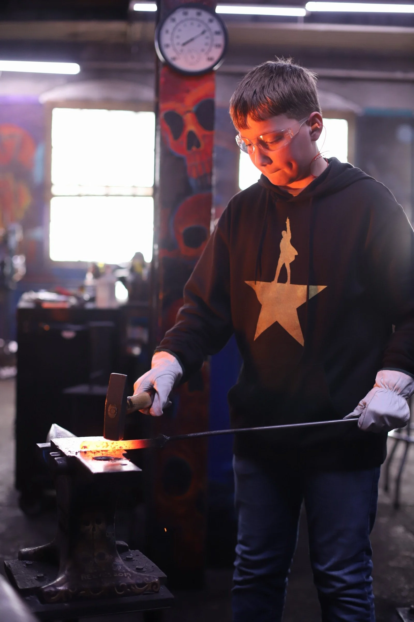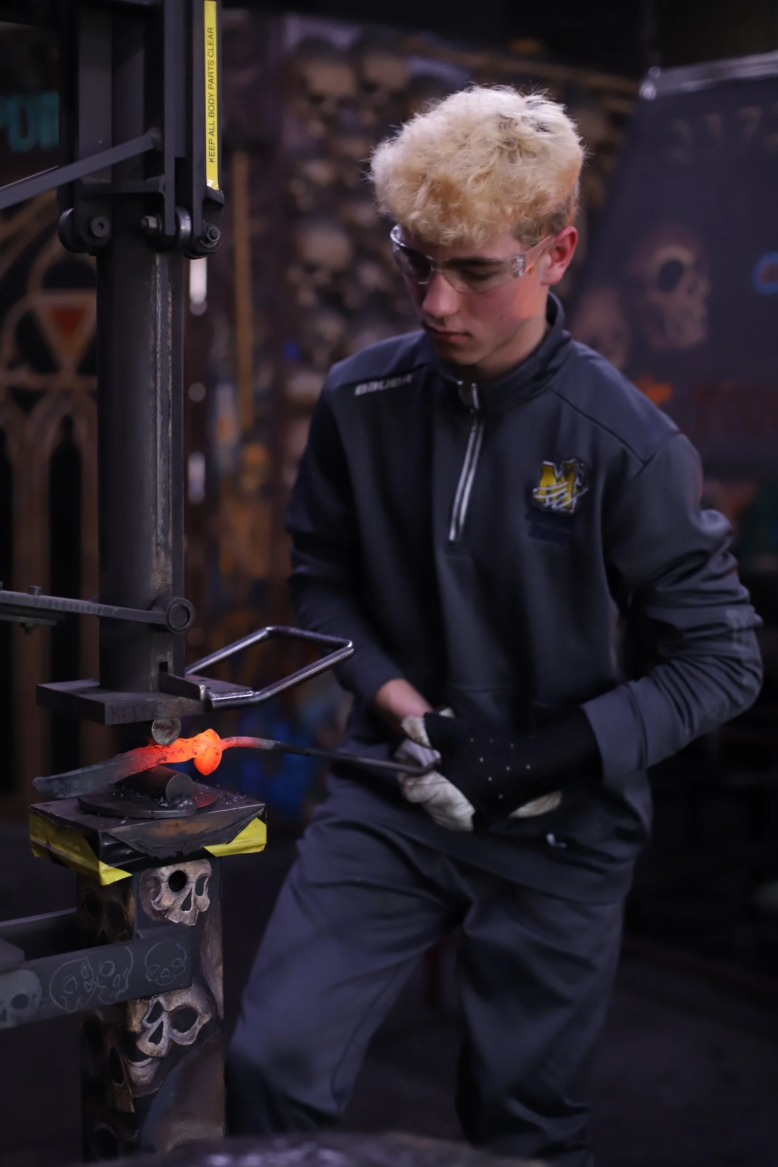 Very fun class this morning with these three making Railroad Spike Knives! This was Aiden's second time in the forge, so he made a dagger. Nice job by all 3!