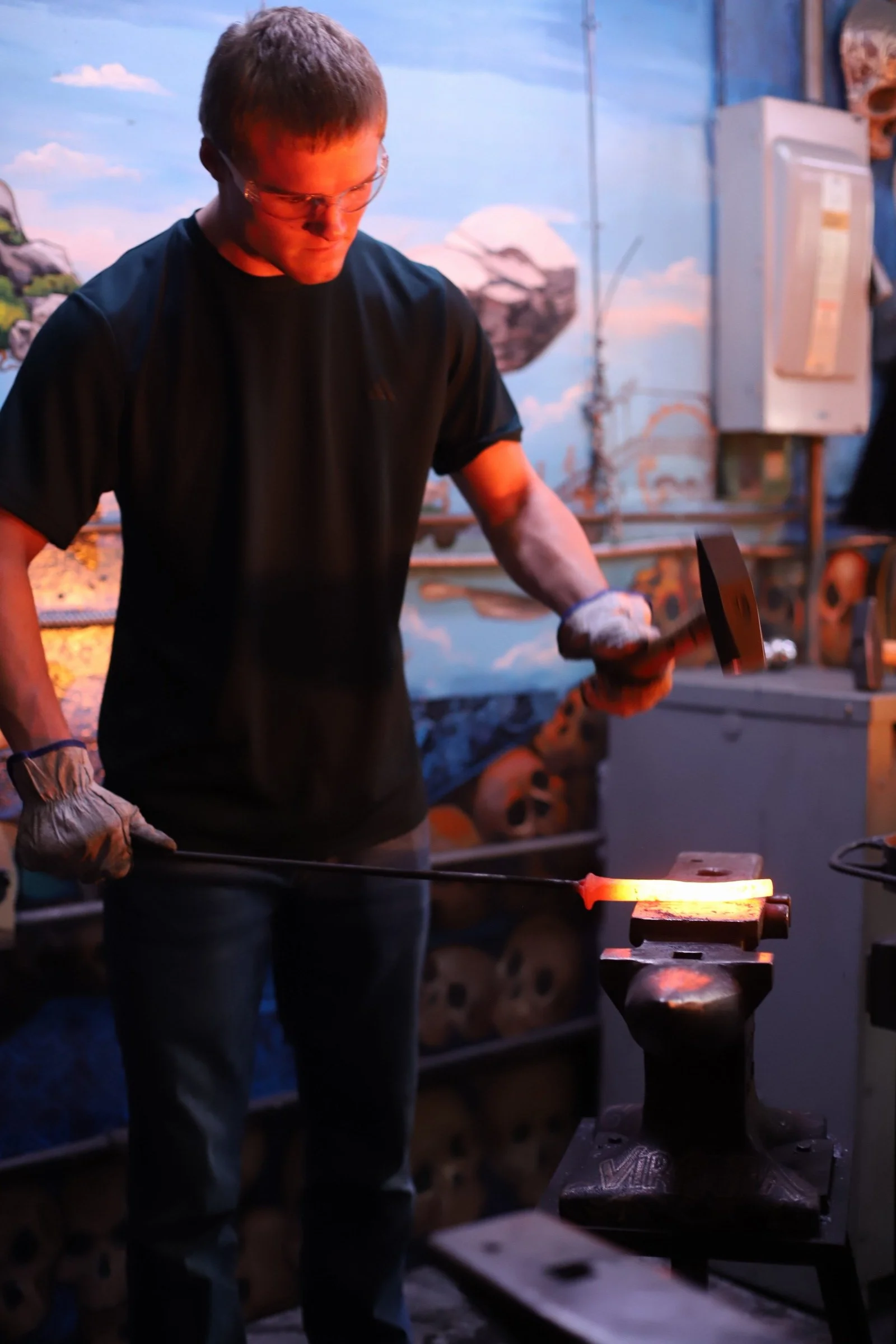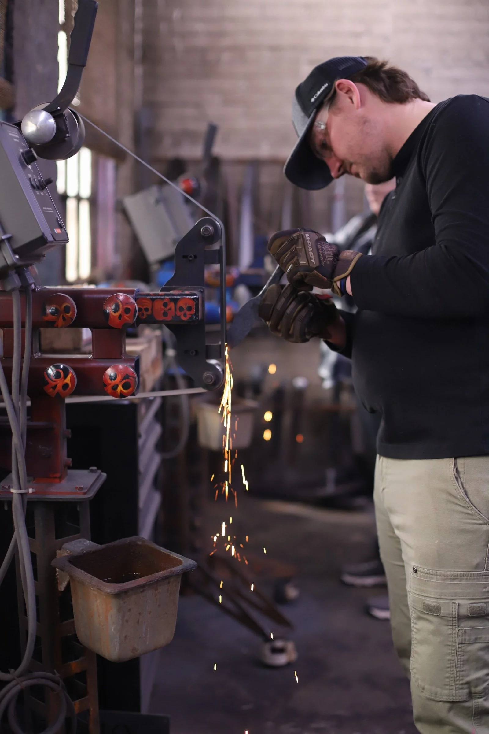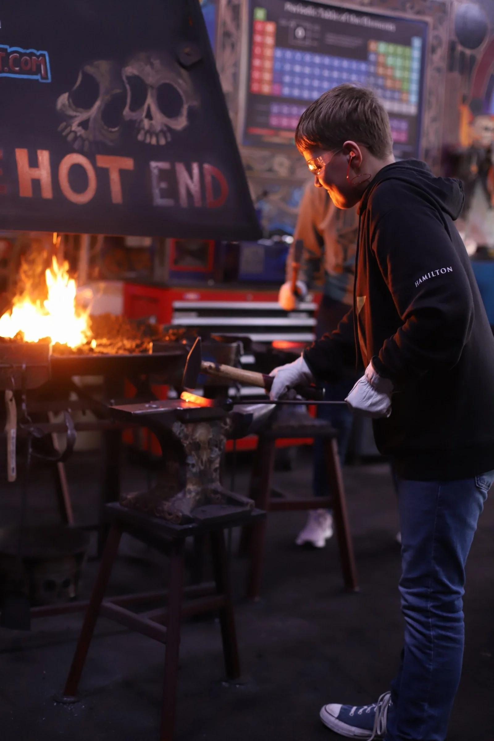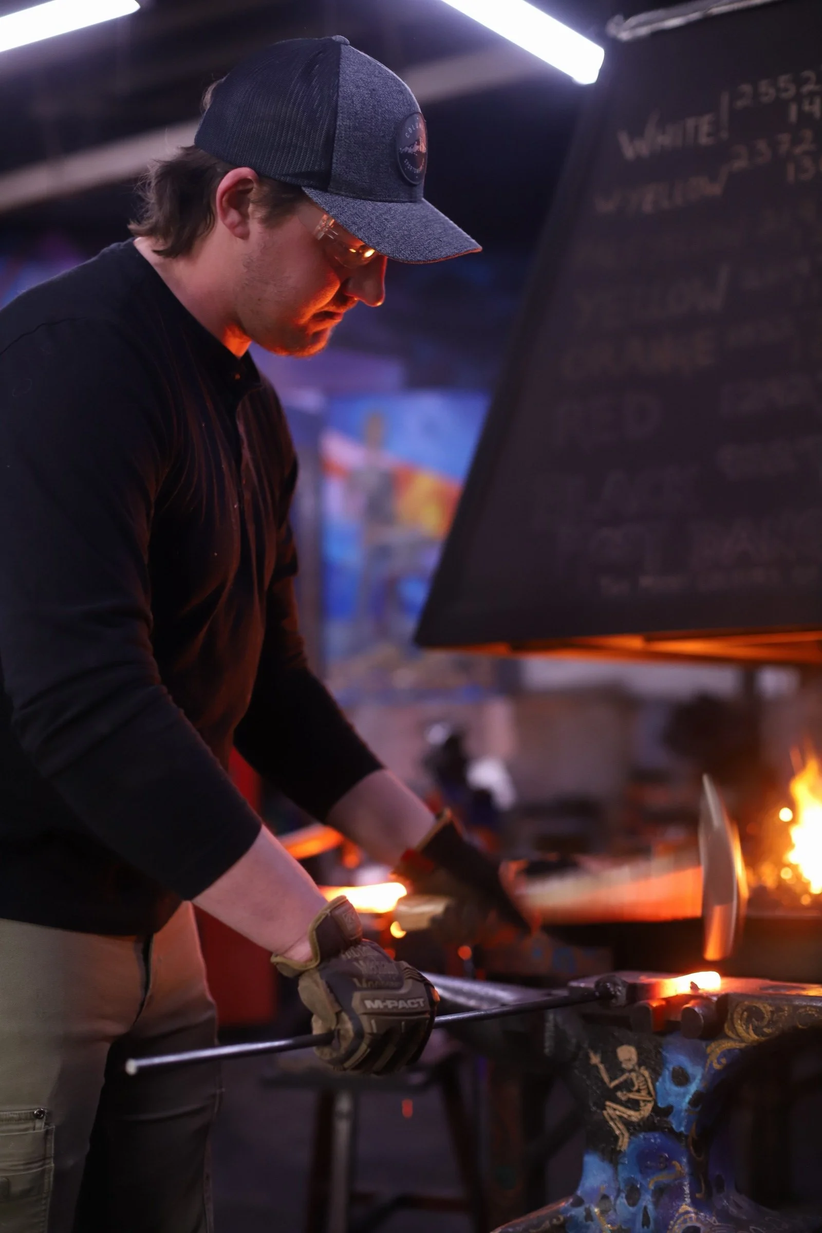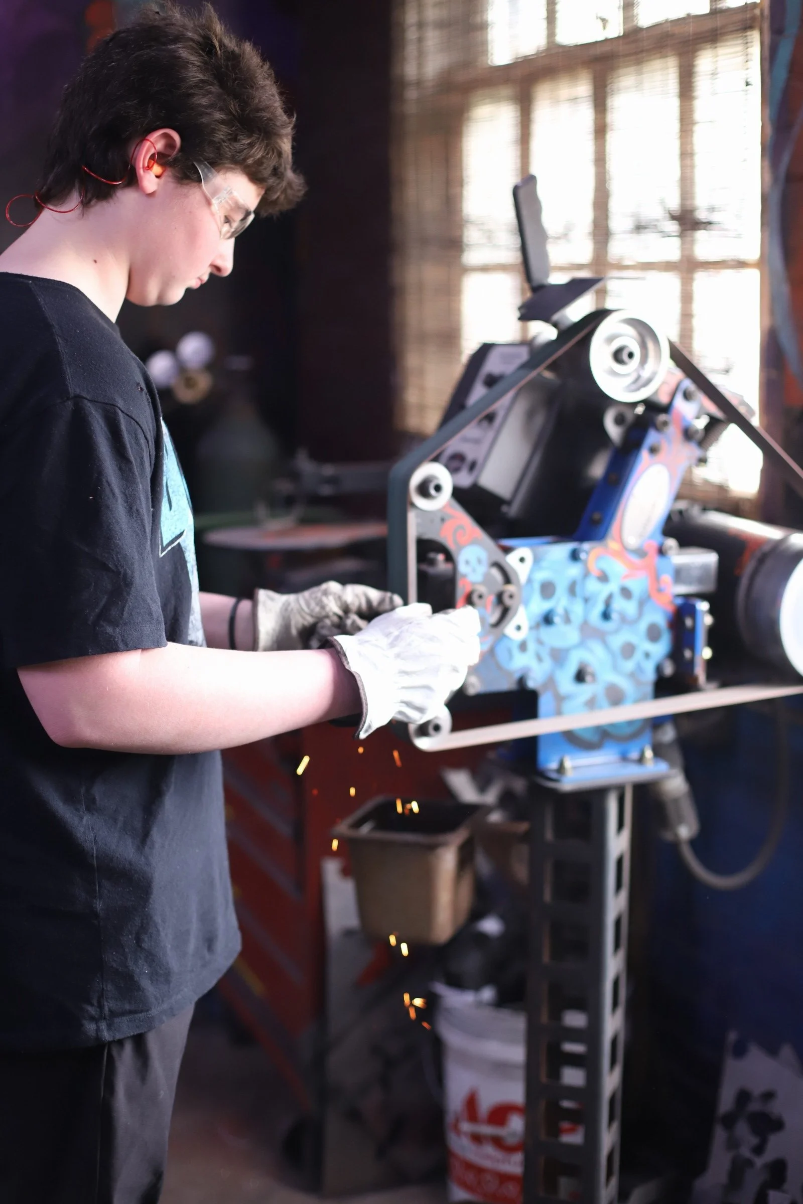 Very fun class this morning with these three making Railroad Spike Knives! This was Aiden's second time in the forge, so he made a dagger. Nice job by all 3!
