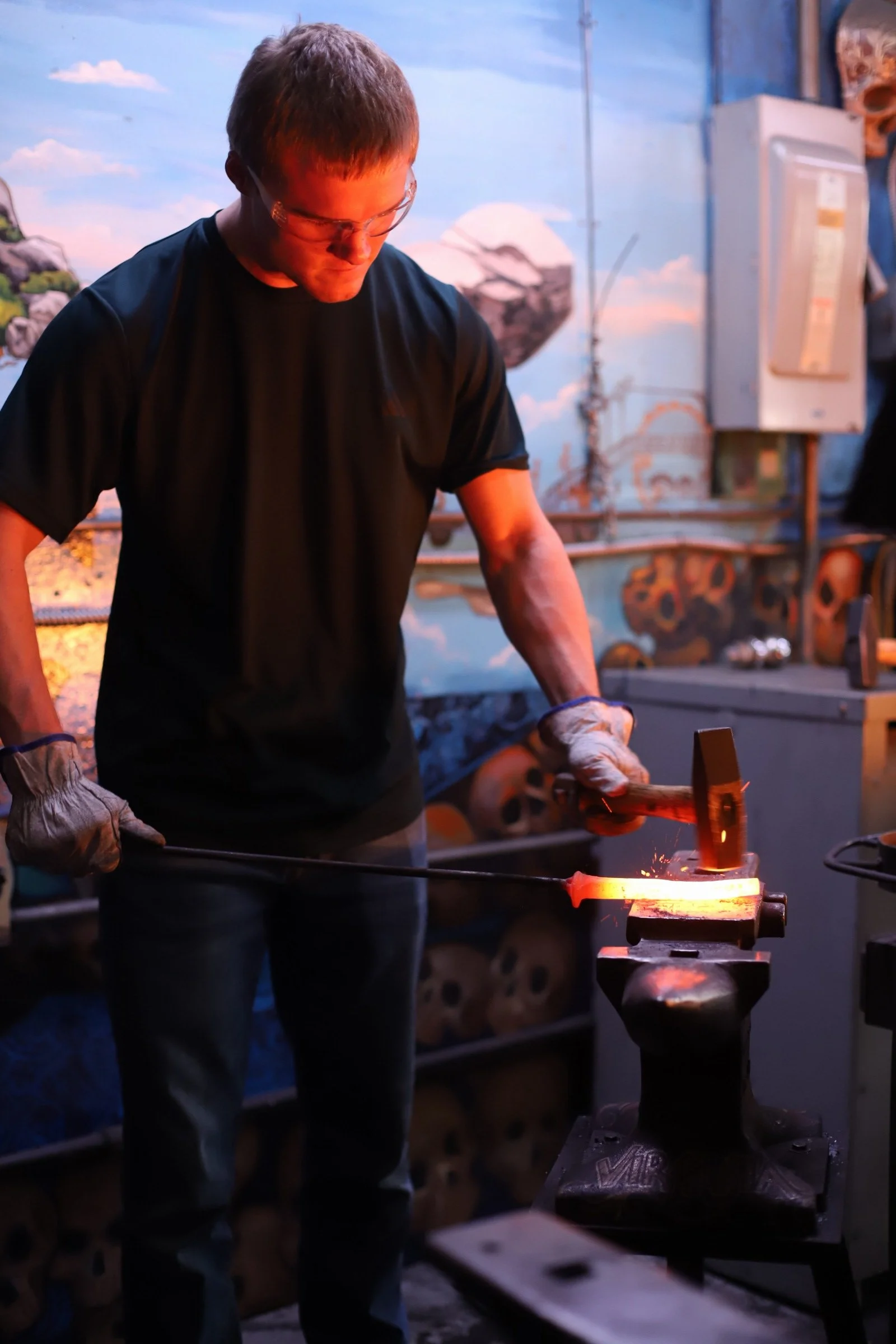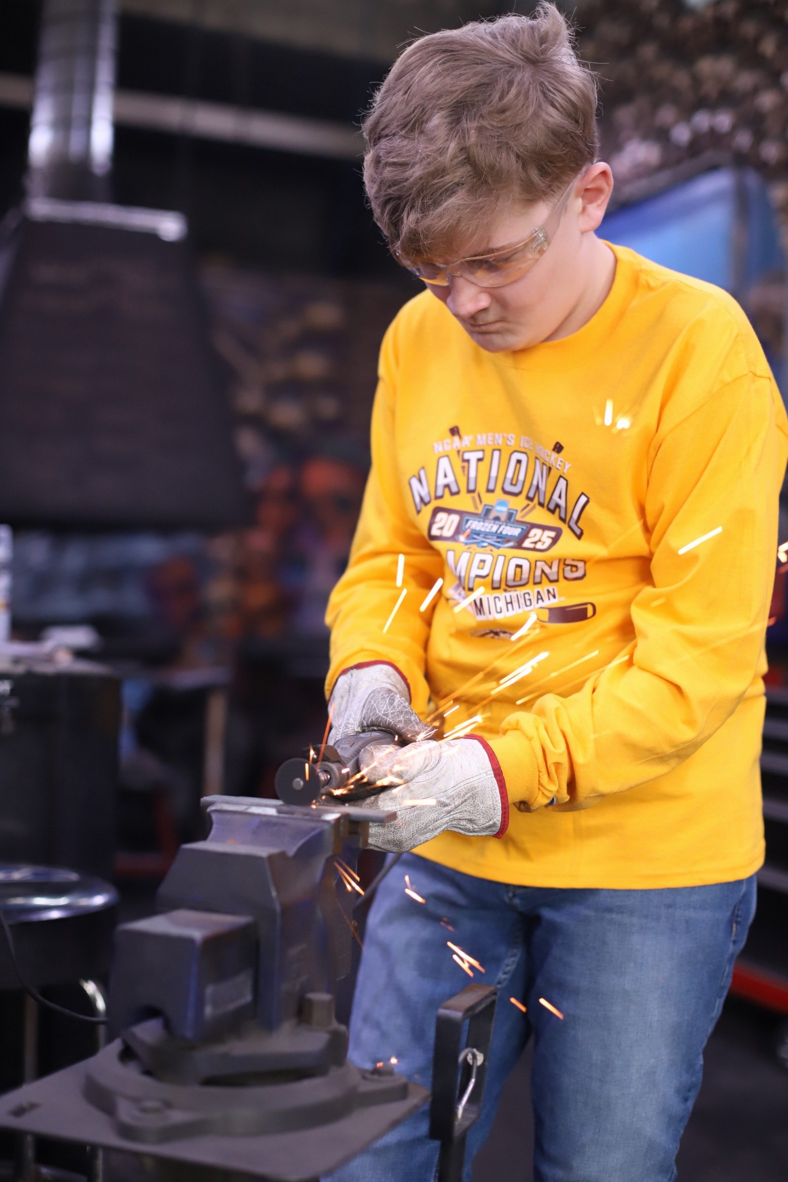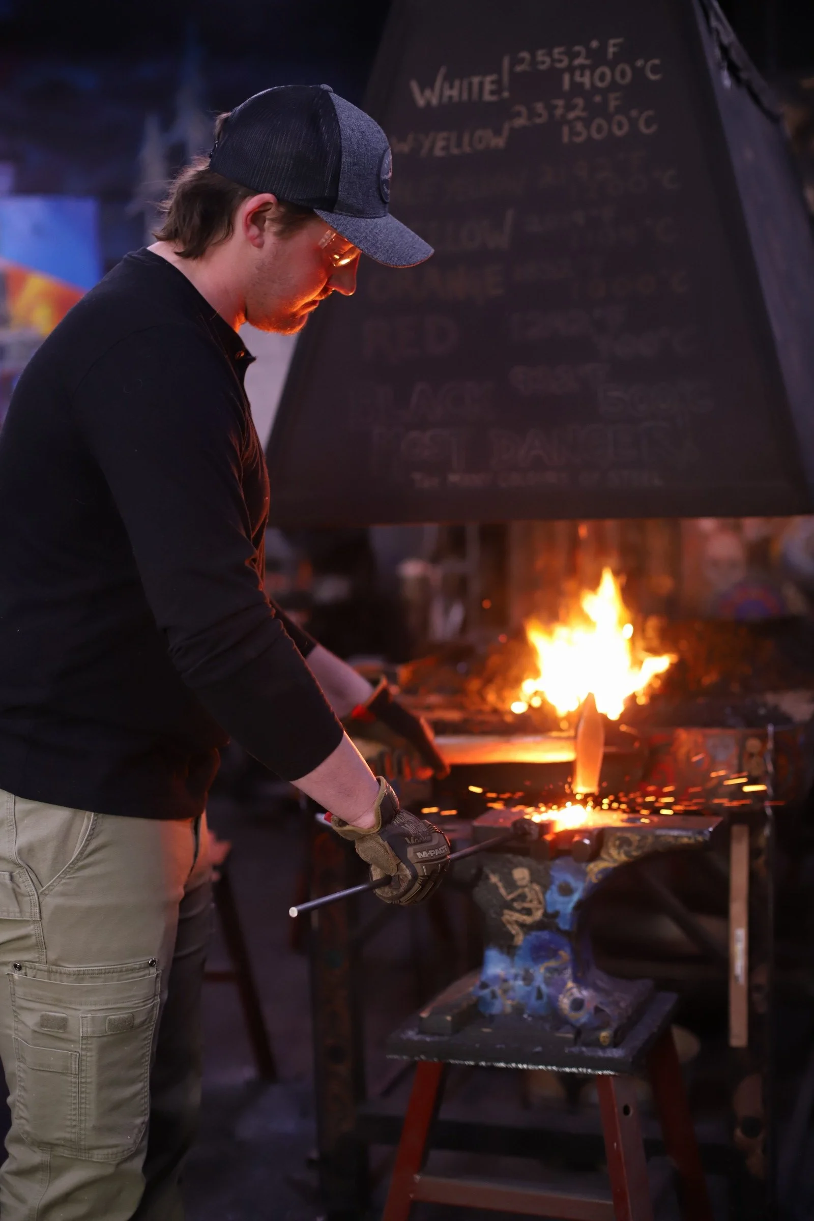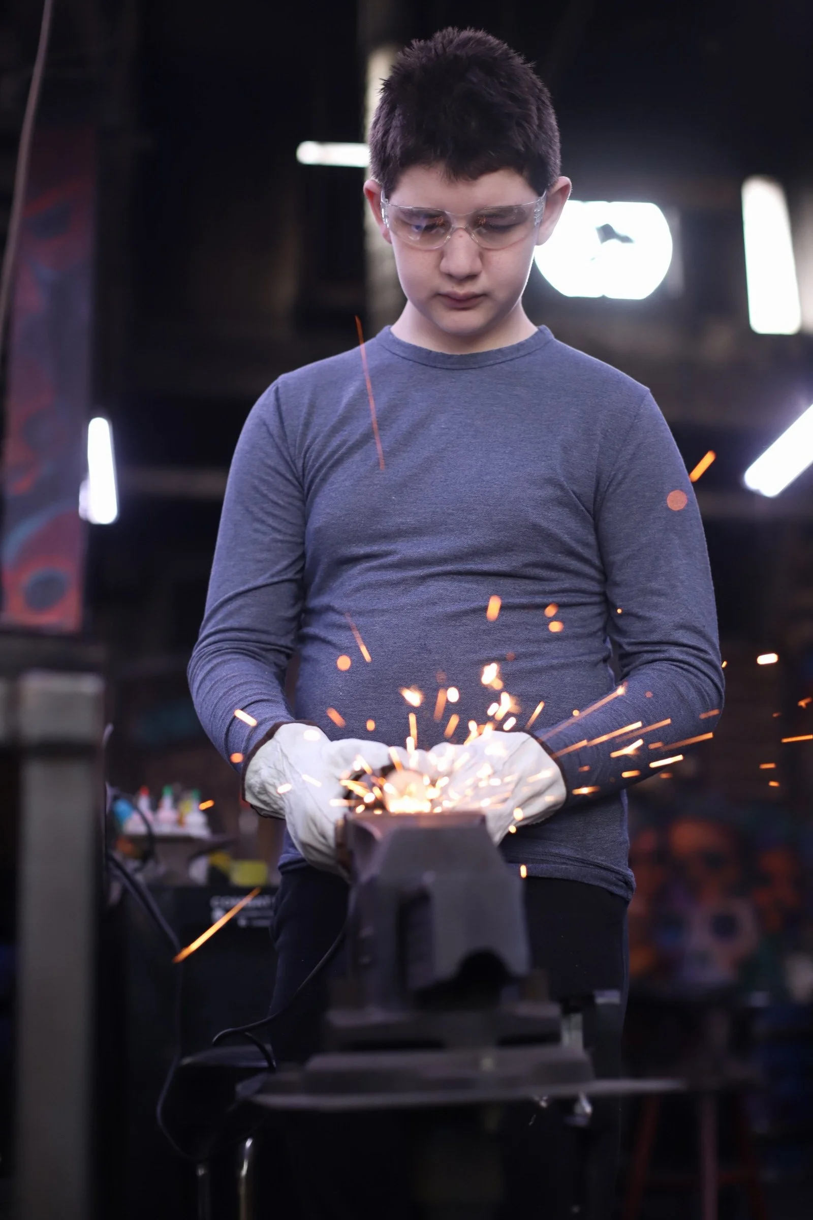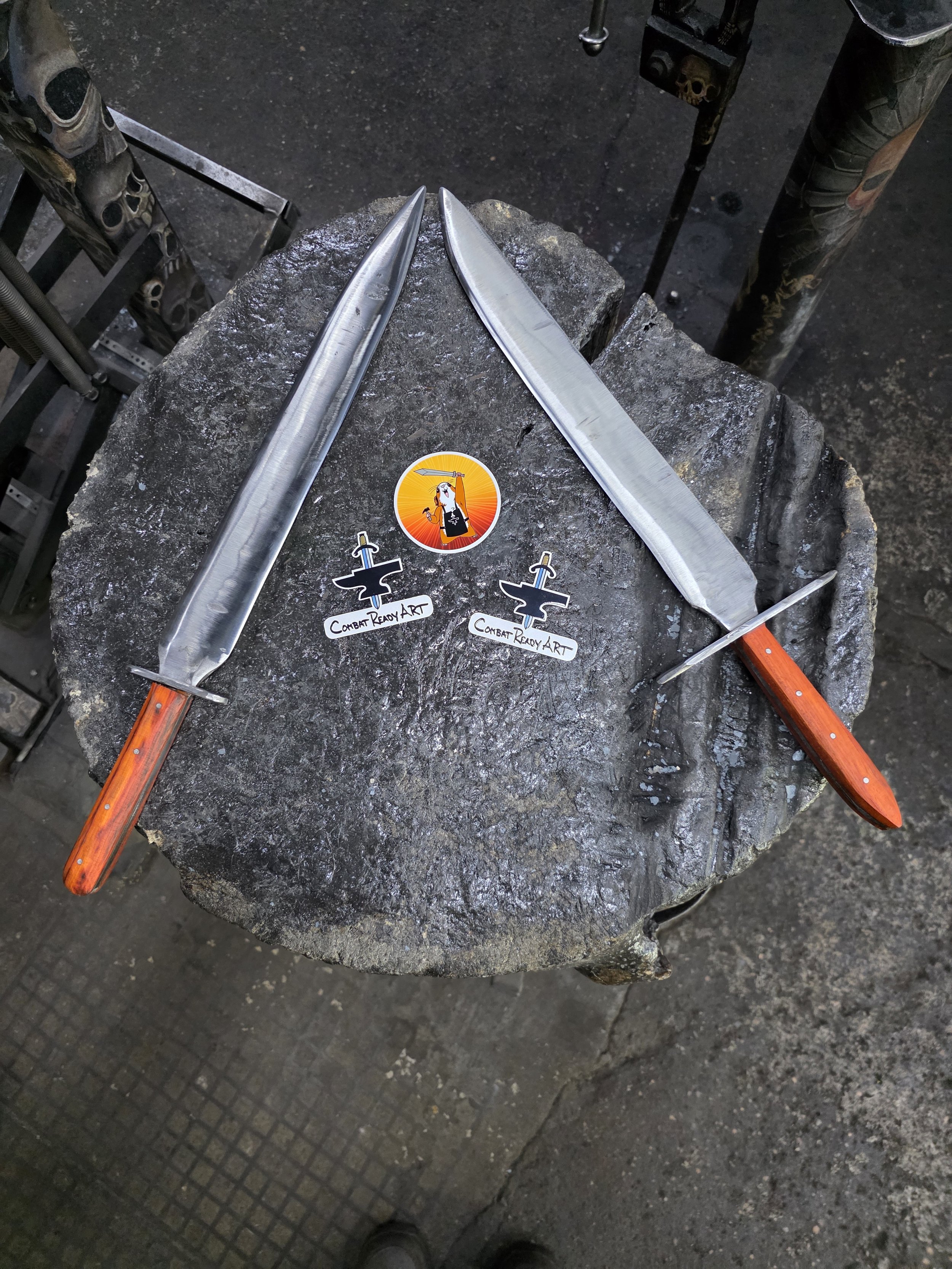 Very fun class this morning with these three making Railroad Spike Knives! This was Aiden's second time in the forge, so he made a dagger. Nice job by all 3!