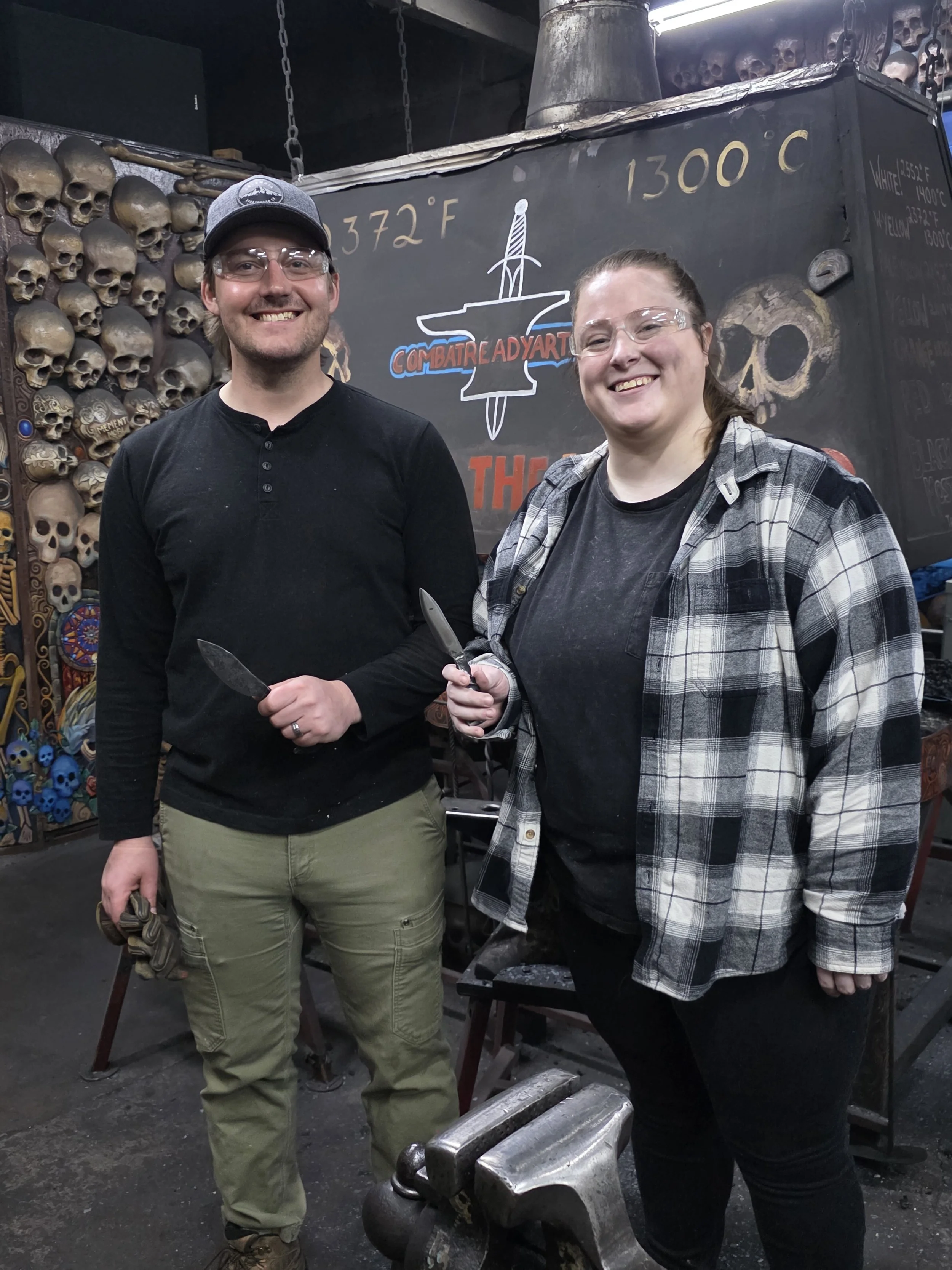 Birthday Knifemaking! Jennafer was back today and brought Matt to make Railroad Spike Knives for his birthday! They made great rustic style knives.