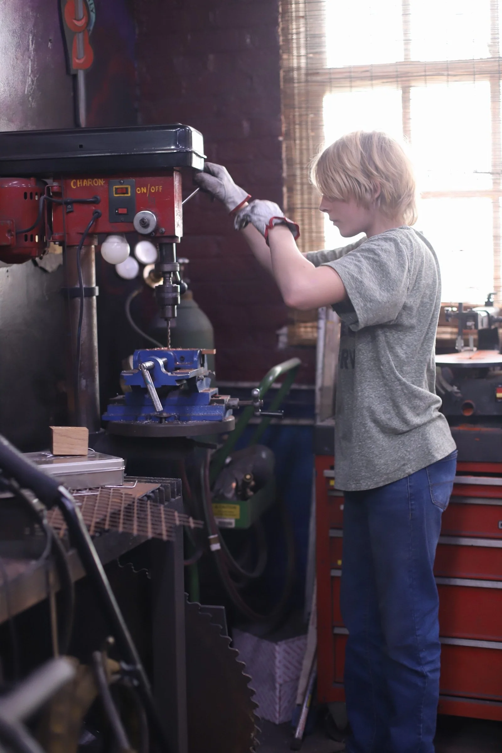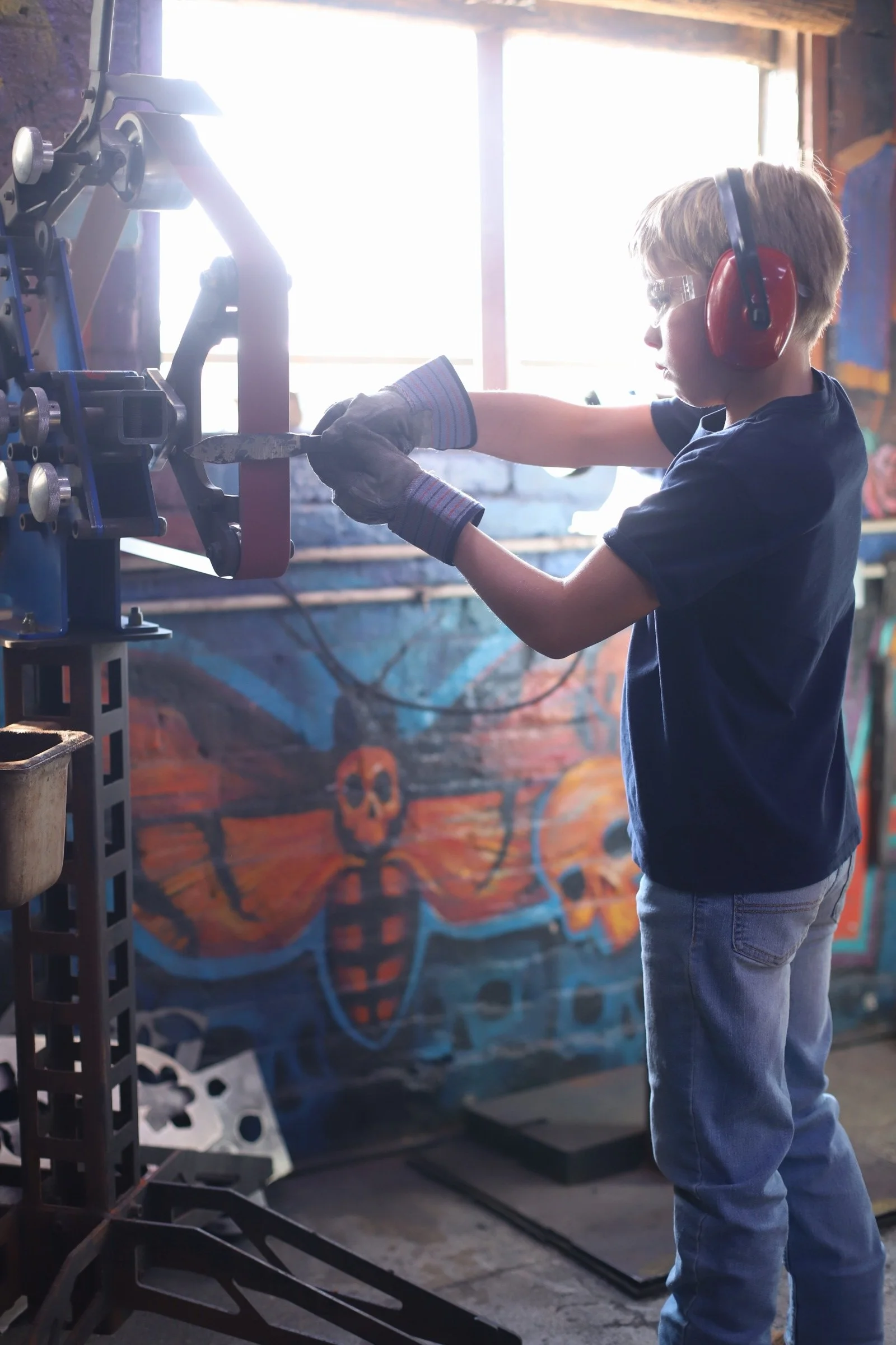 Amazing morning with the 11-13 yr old Level 2 homeschoolers! Everyone was at different spots in the process. Two of them were able to finish their short swords. Both are about 22 inches in total length, with steel guards. They're beautiful swords! The other two are almost done. One is doing a copper guard, while the other is doing brass. They will both finish next time.