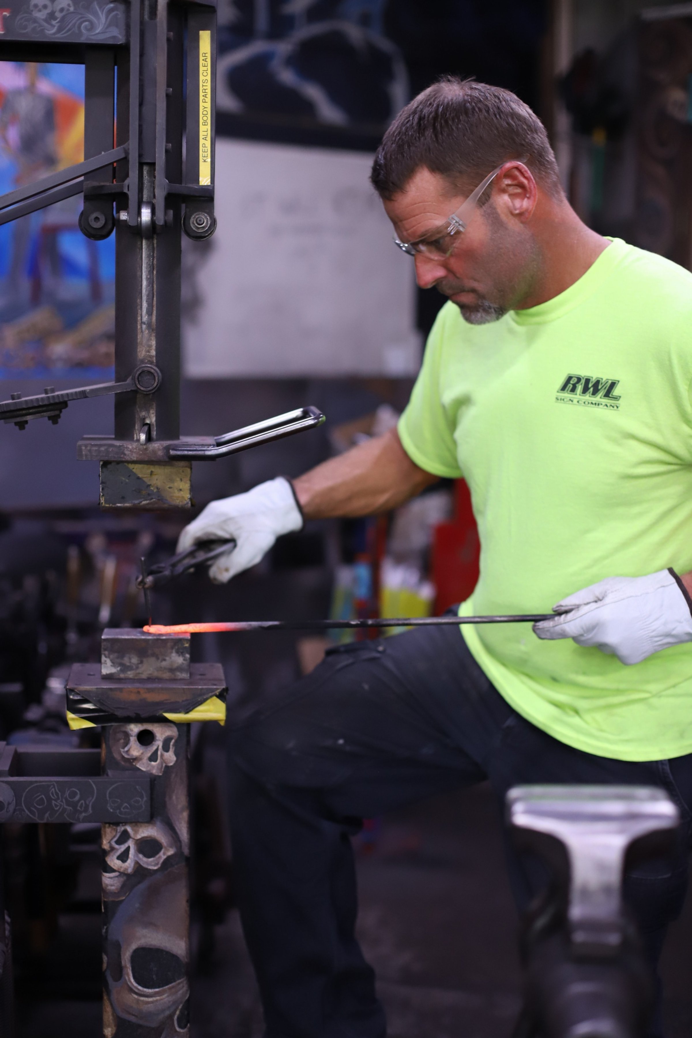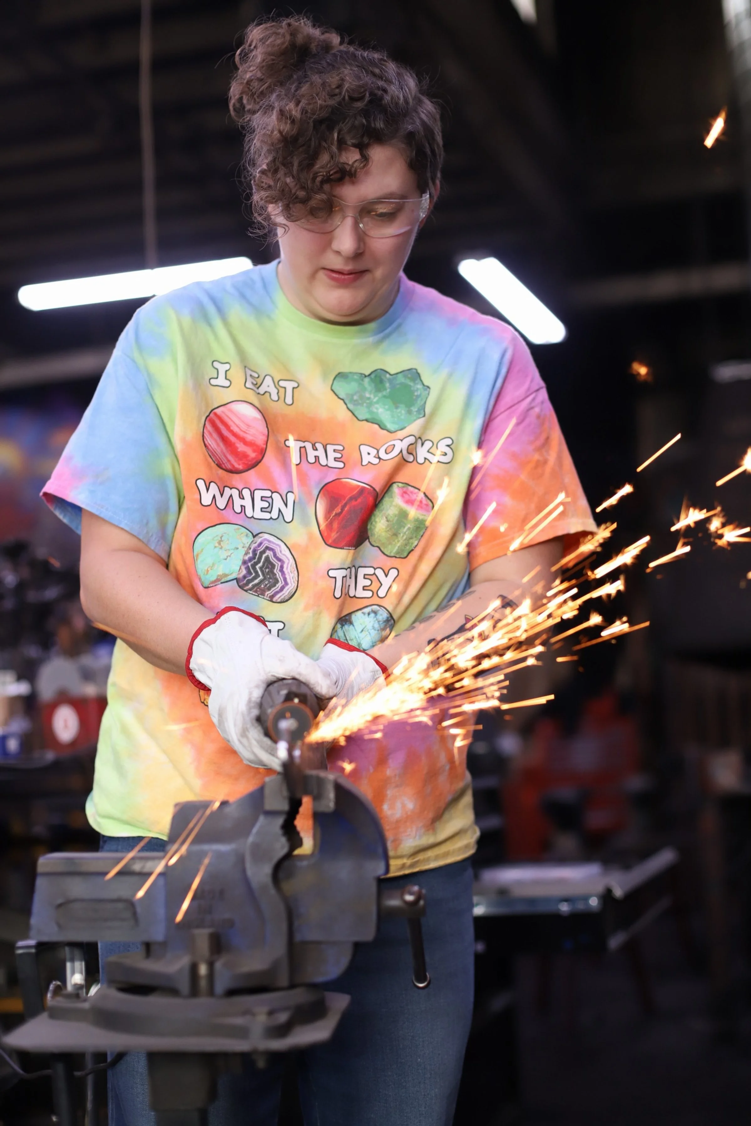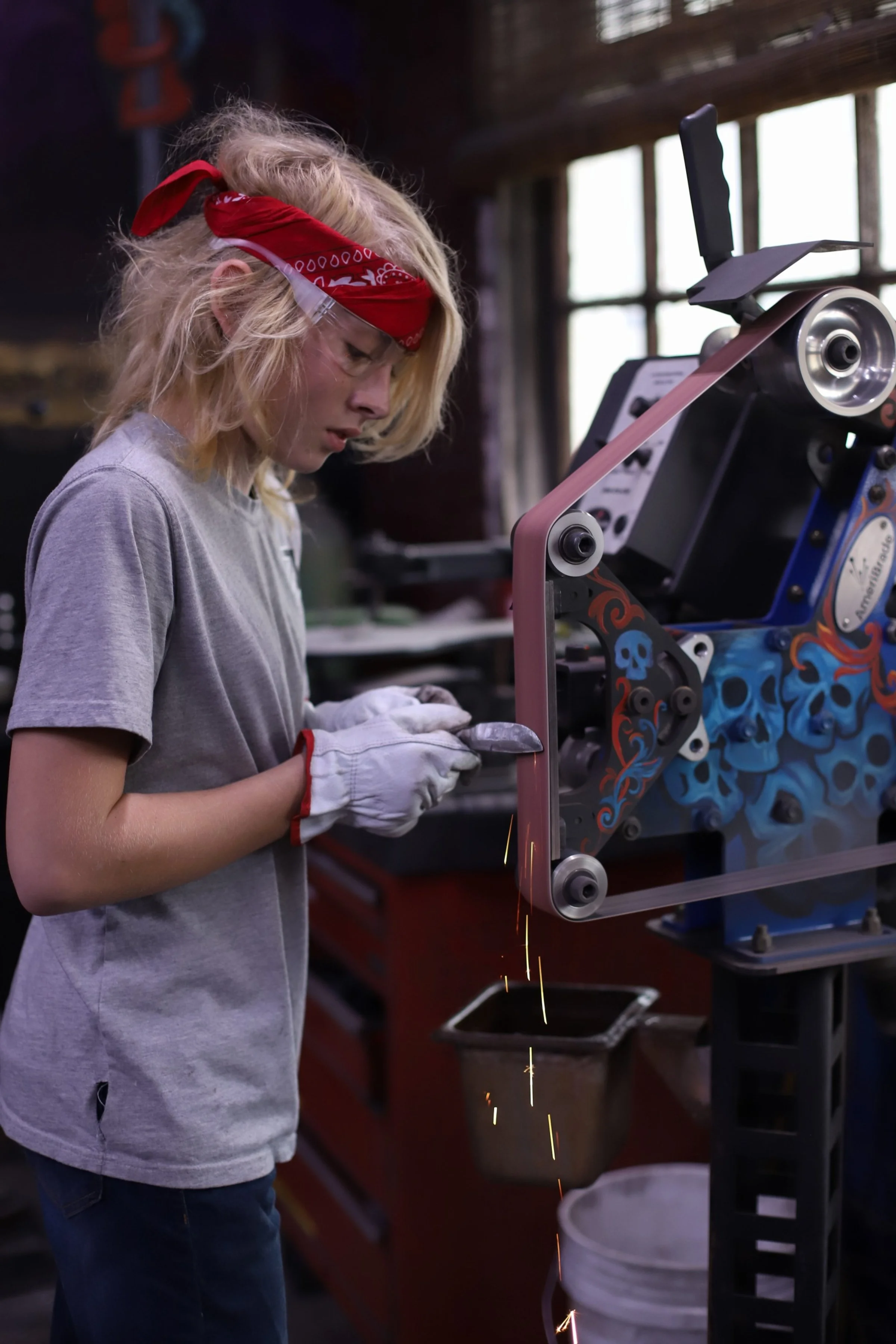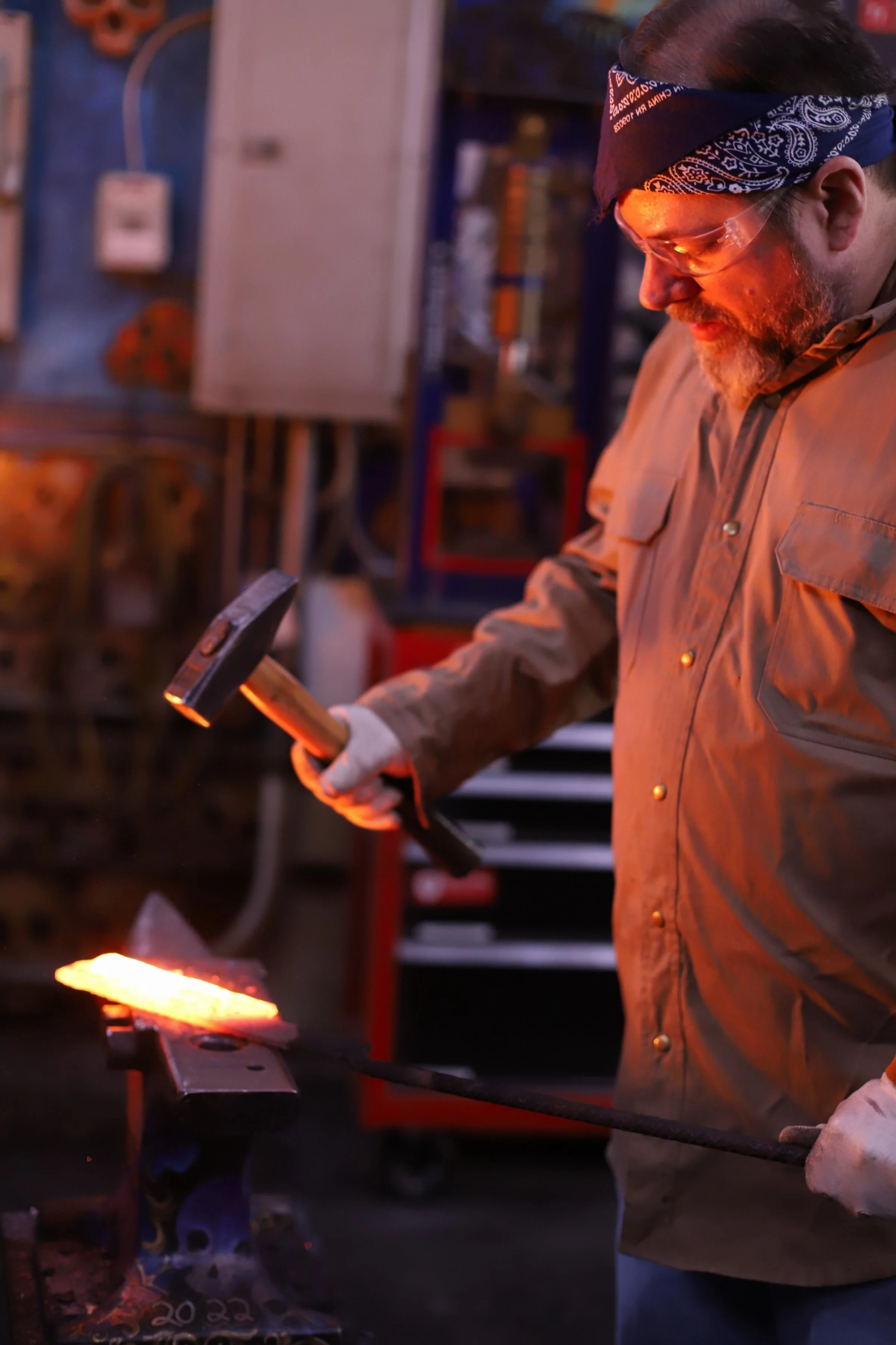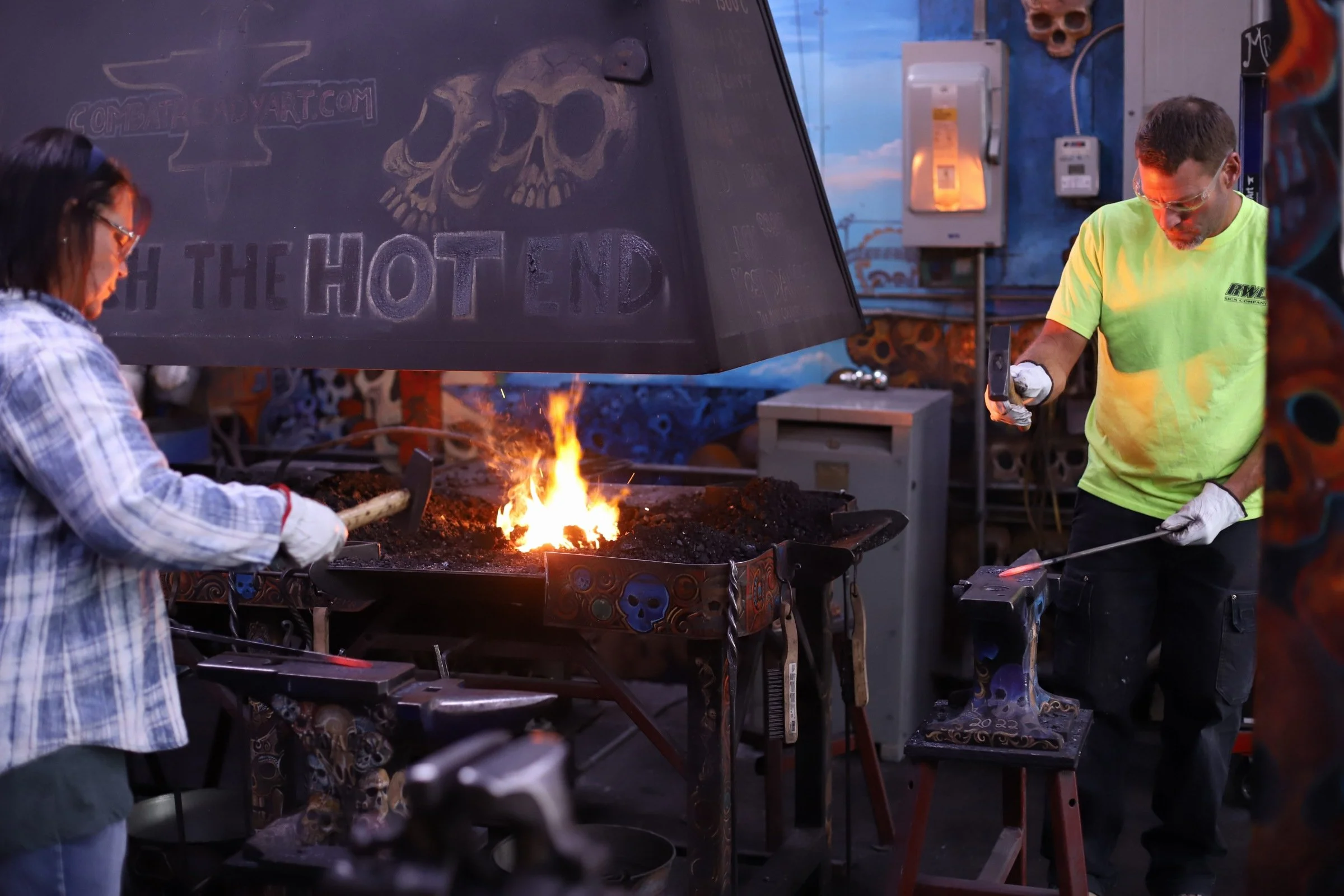 Kevin and Marrissa made absolutely beautiful knives today! Mar did a super shiny, and sharp Railroad Spike Knife. And Kevin, who has been here before, made a fantastic cleaver!