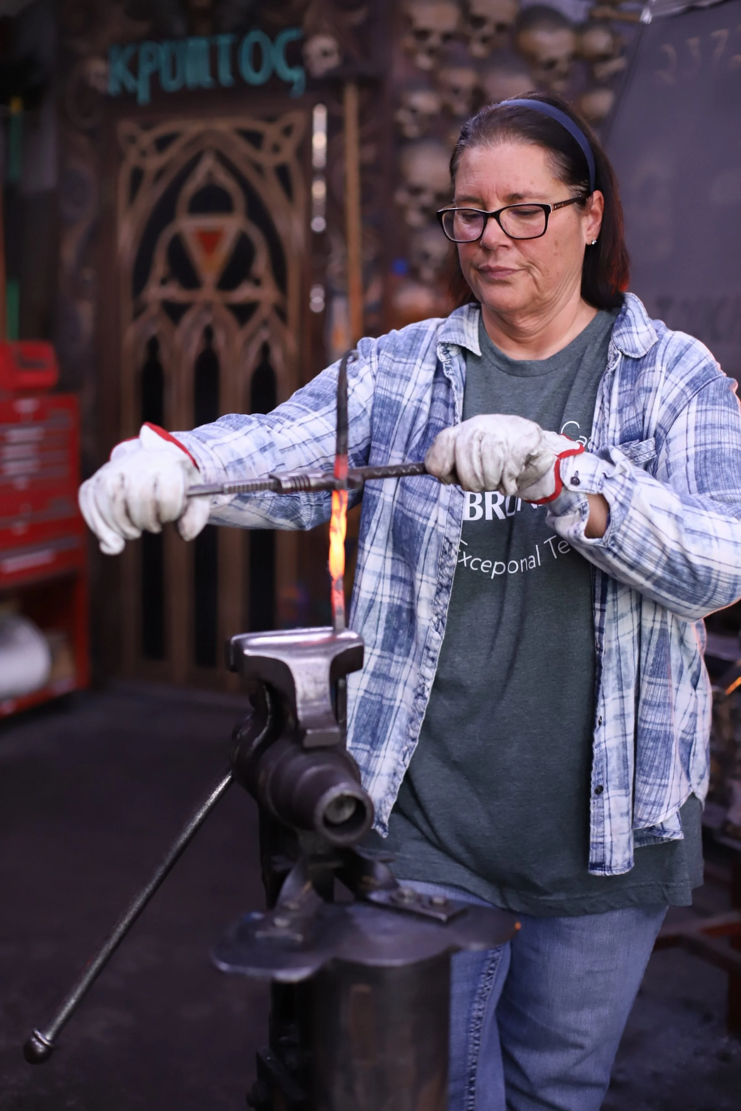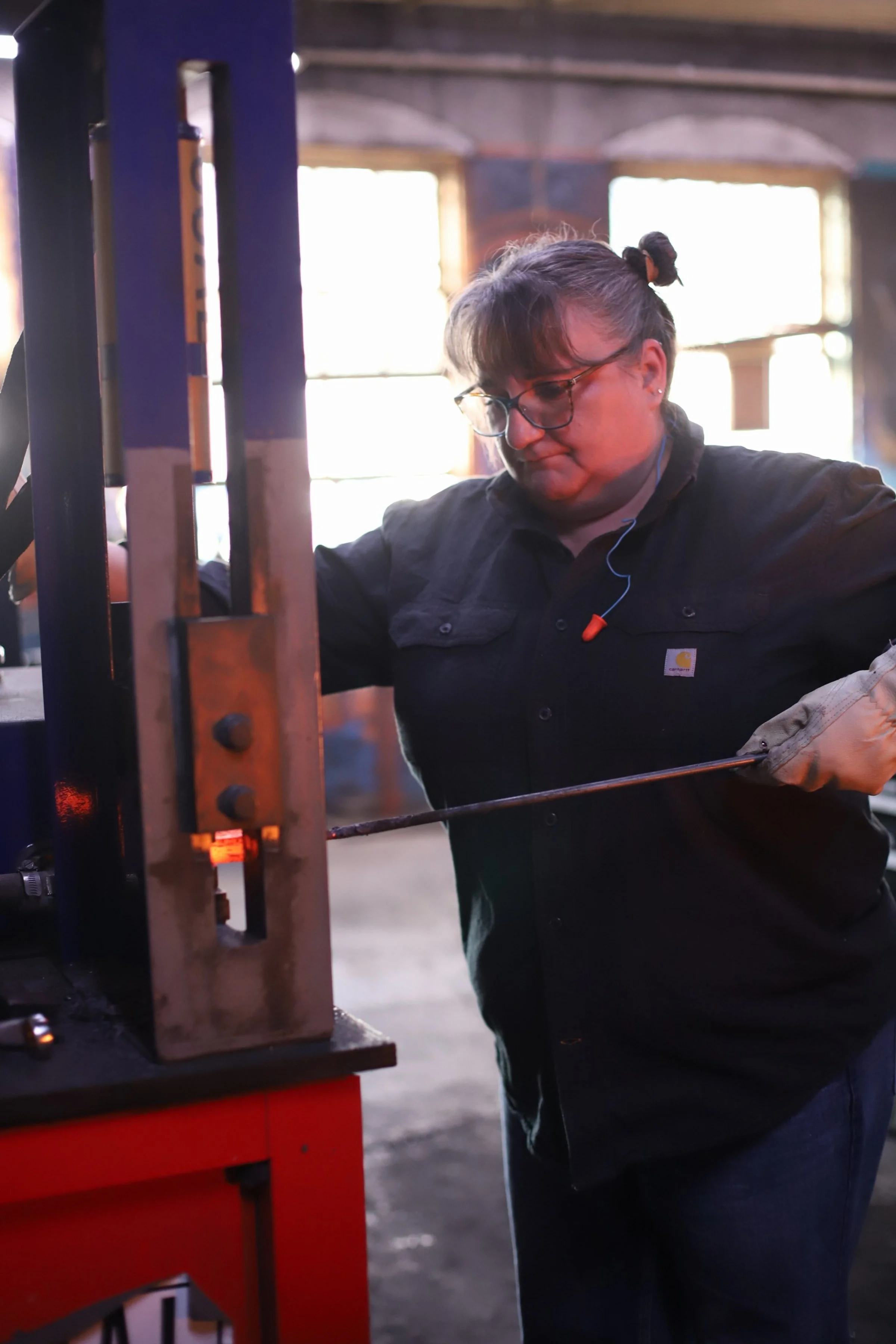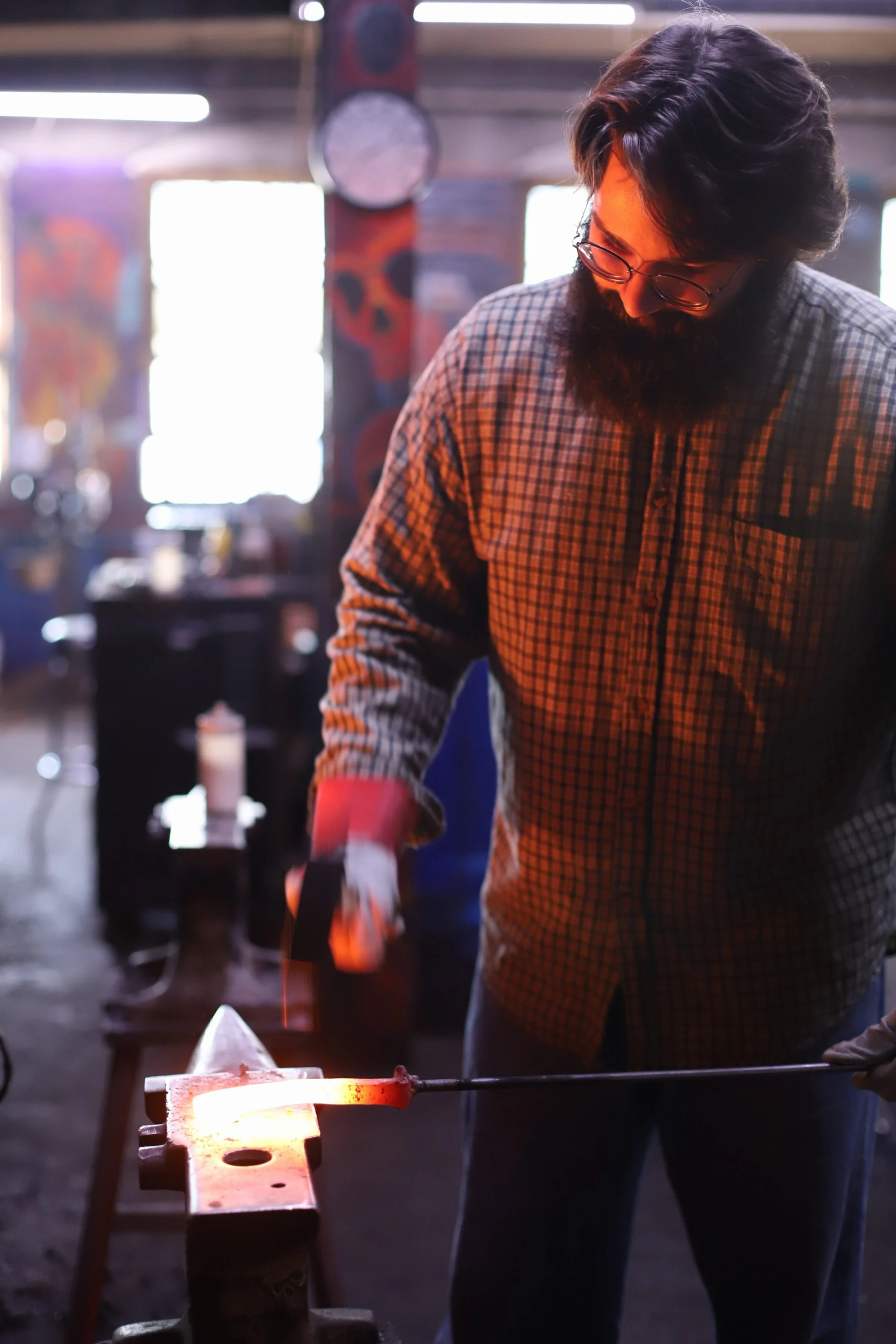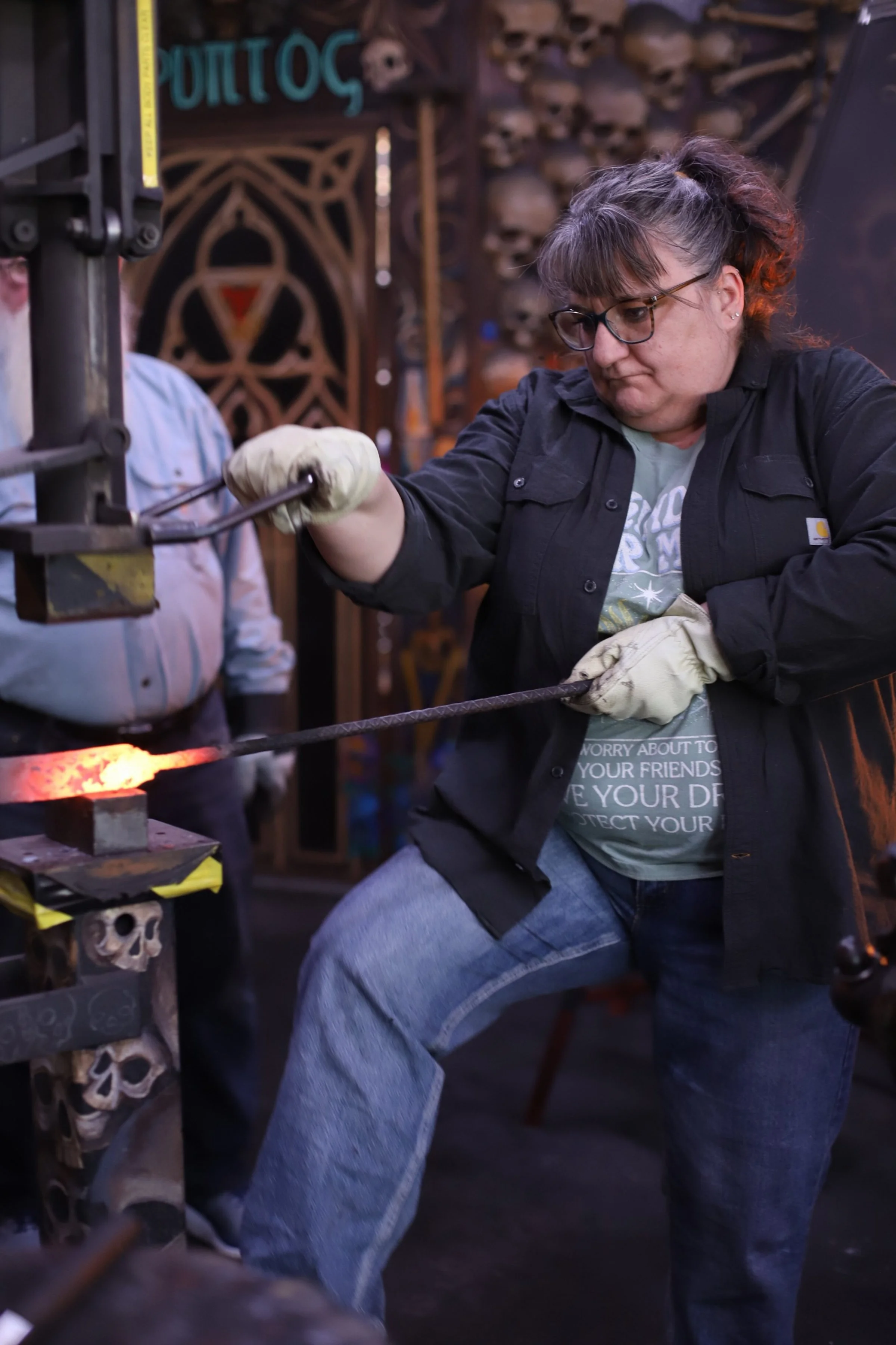 Marci and Anthony were in the forge for the first time this morning to learn the basic skills of blacksmithing. Yes, there are many knife plans, but it's always best to learn the basics first! Marci made an "S" hook and Anthony made a steel snake. Great job you both!