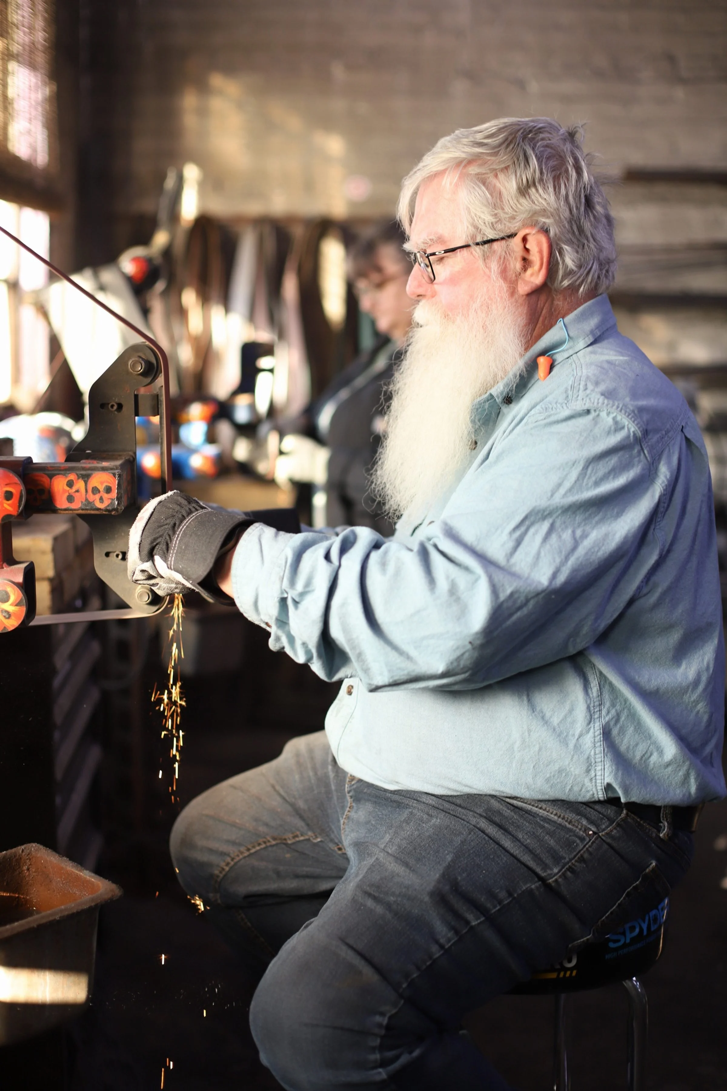 Dan was back today, but since he is making gifts, I'm only going to show a photo of him on the grinder.