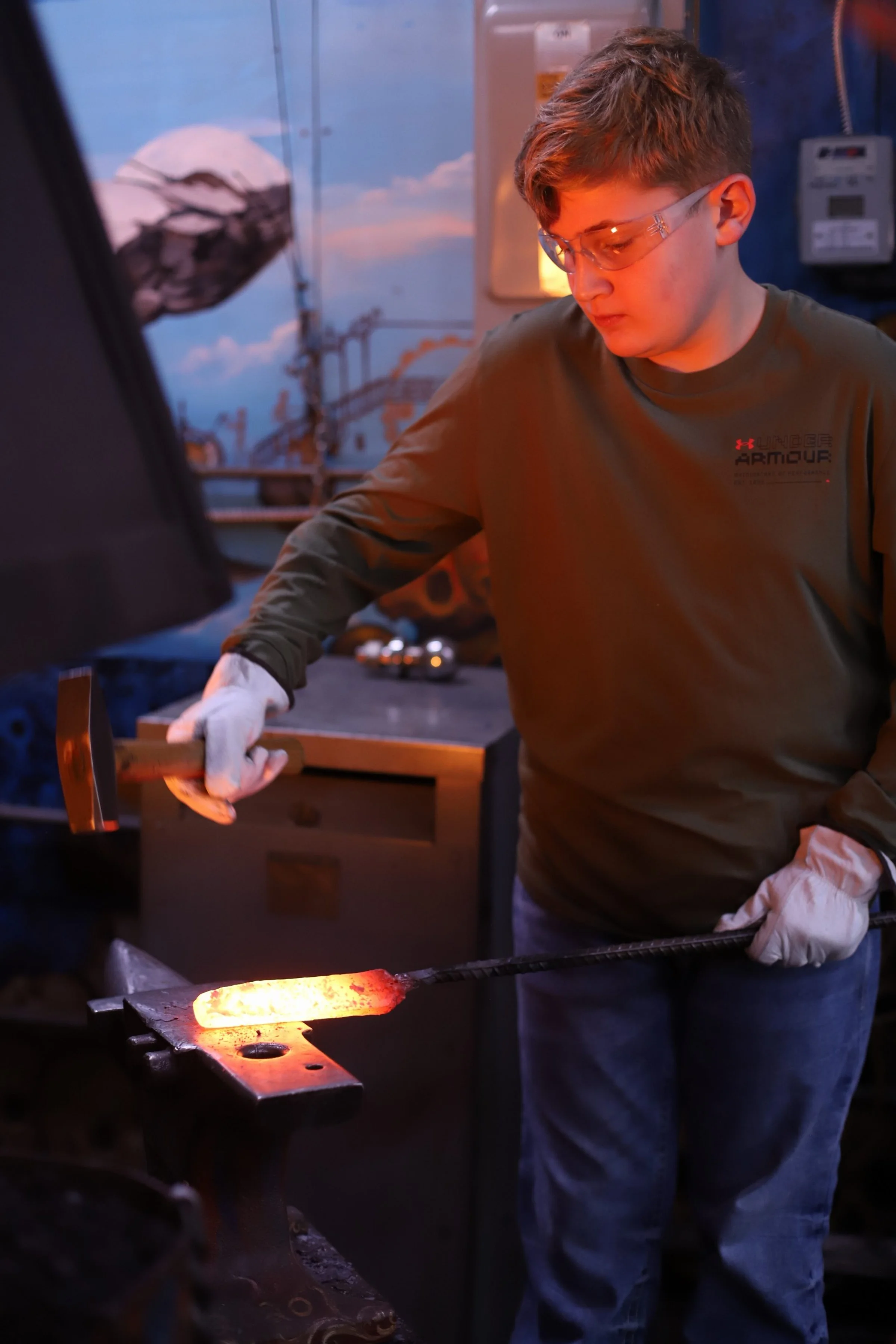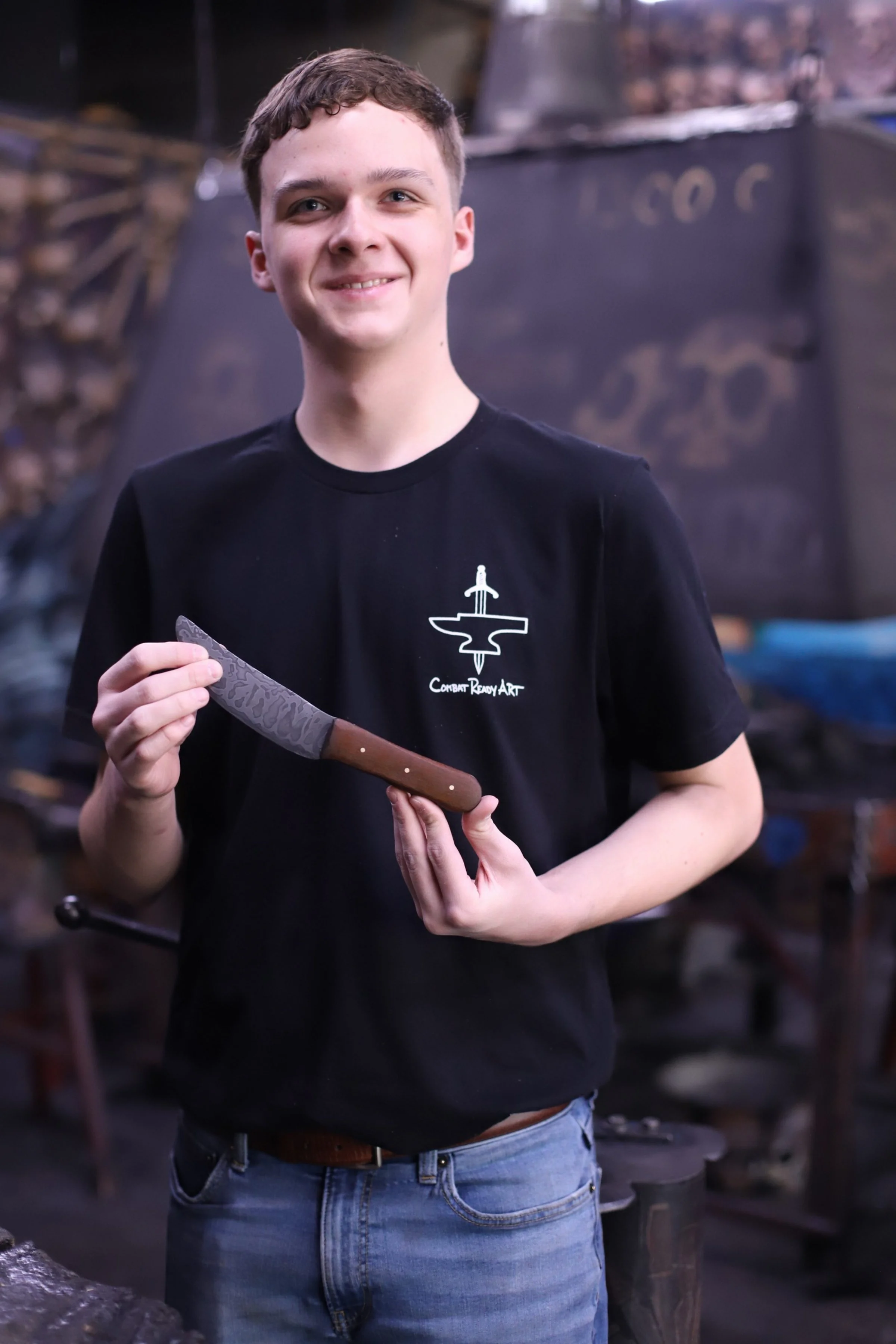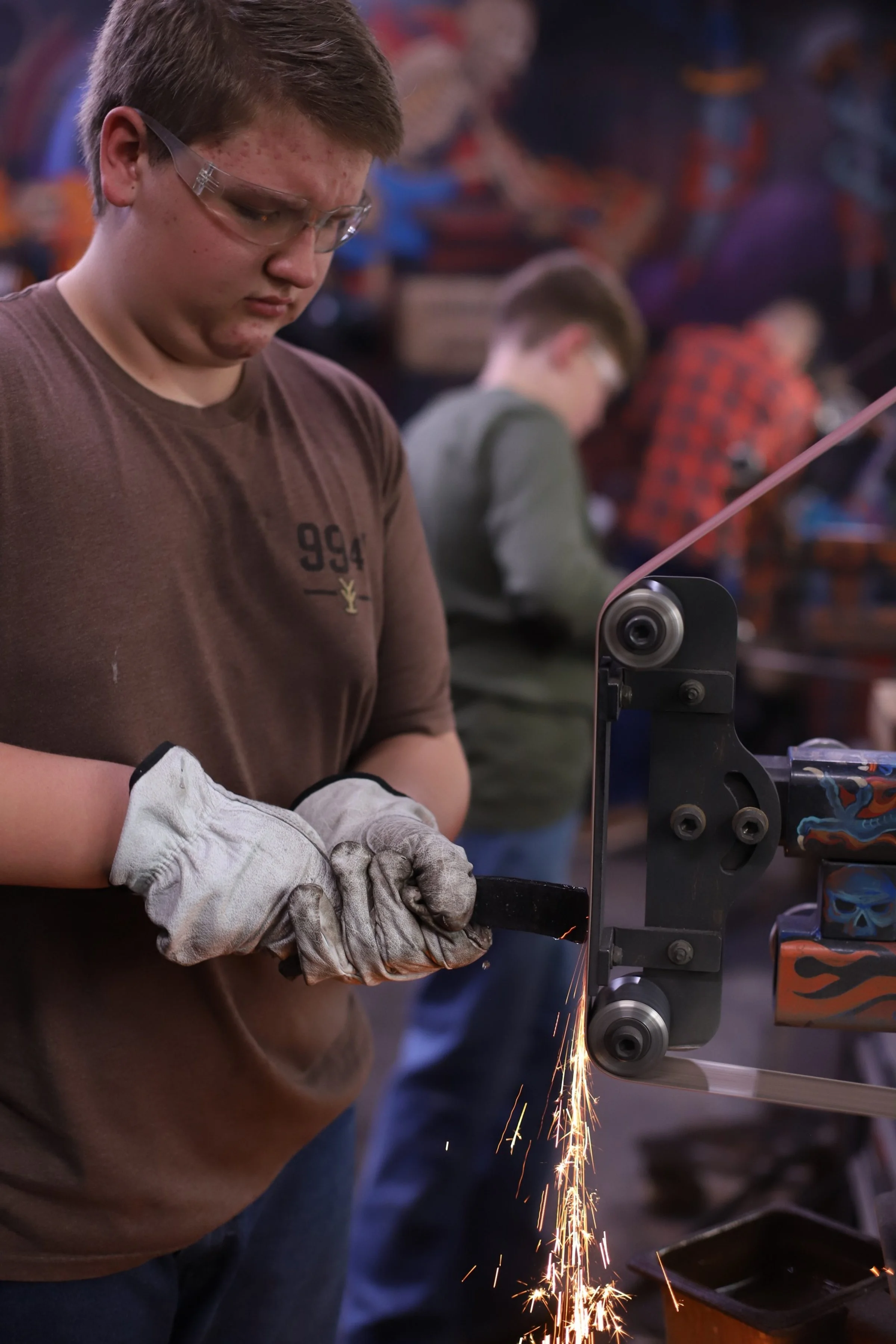 Busy morning with Level 2 Homeschoolers! In Level 2 and 3, they do more complicated projects that stretch over multiple classes. So not everyone is on the same timeline. Today Landon and Lucas finished their first Damascus knives! Elijah and Judah are not far behind, just needing to finish their handles. All 4 did a great job with the whole process of making the Damascus steel!