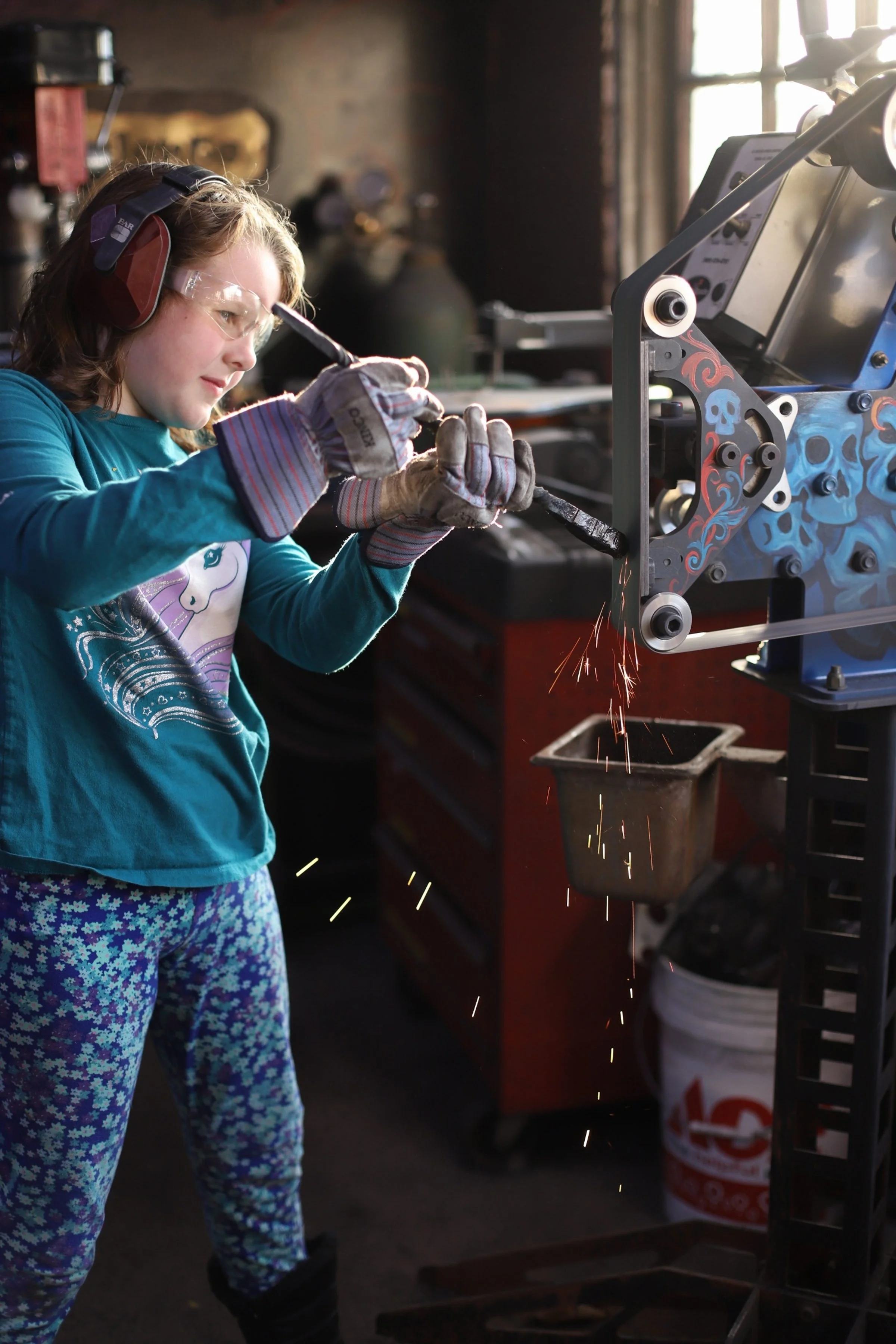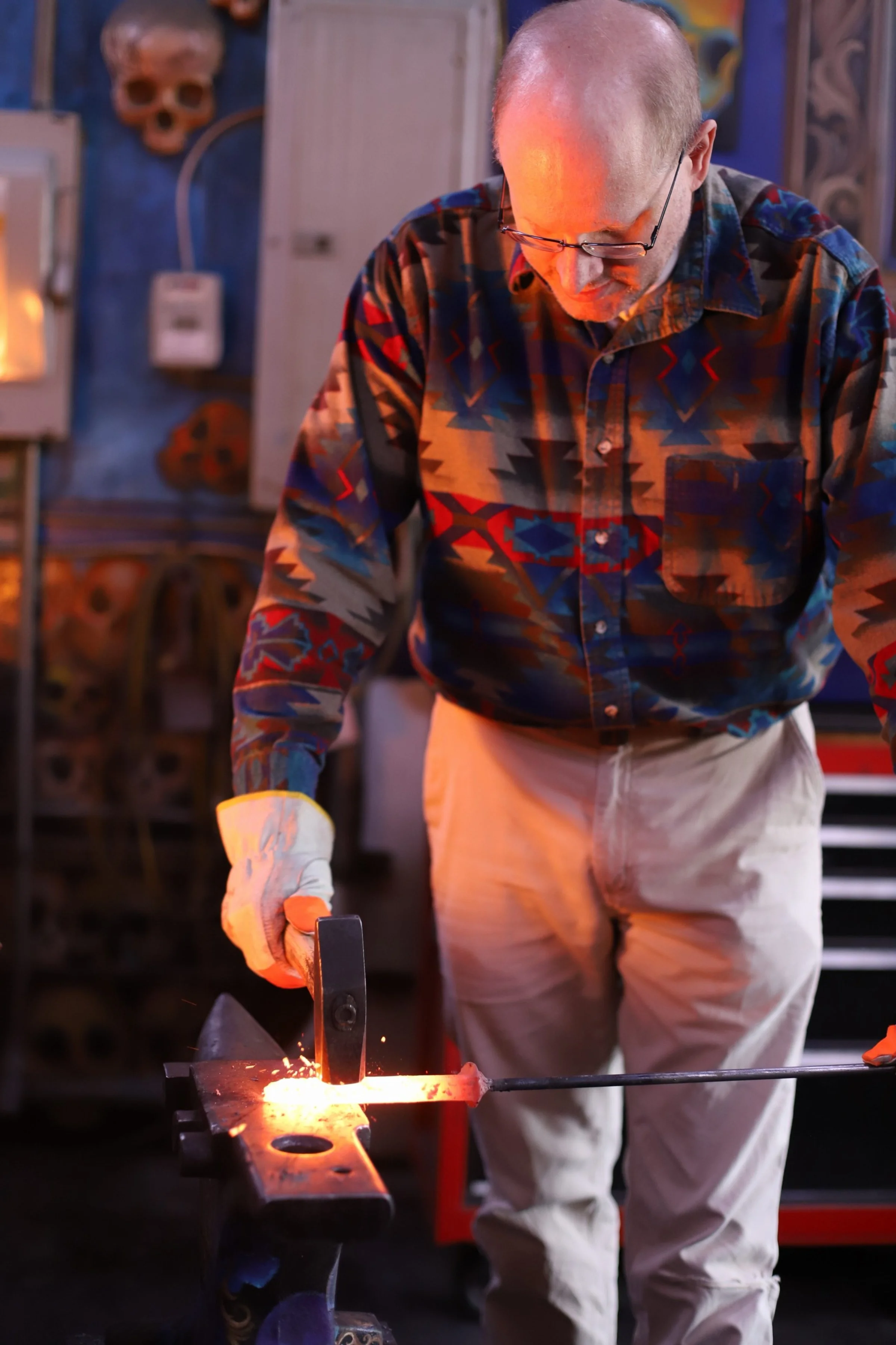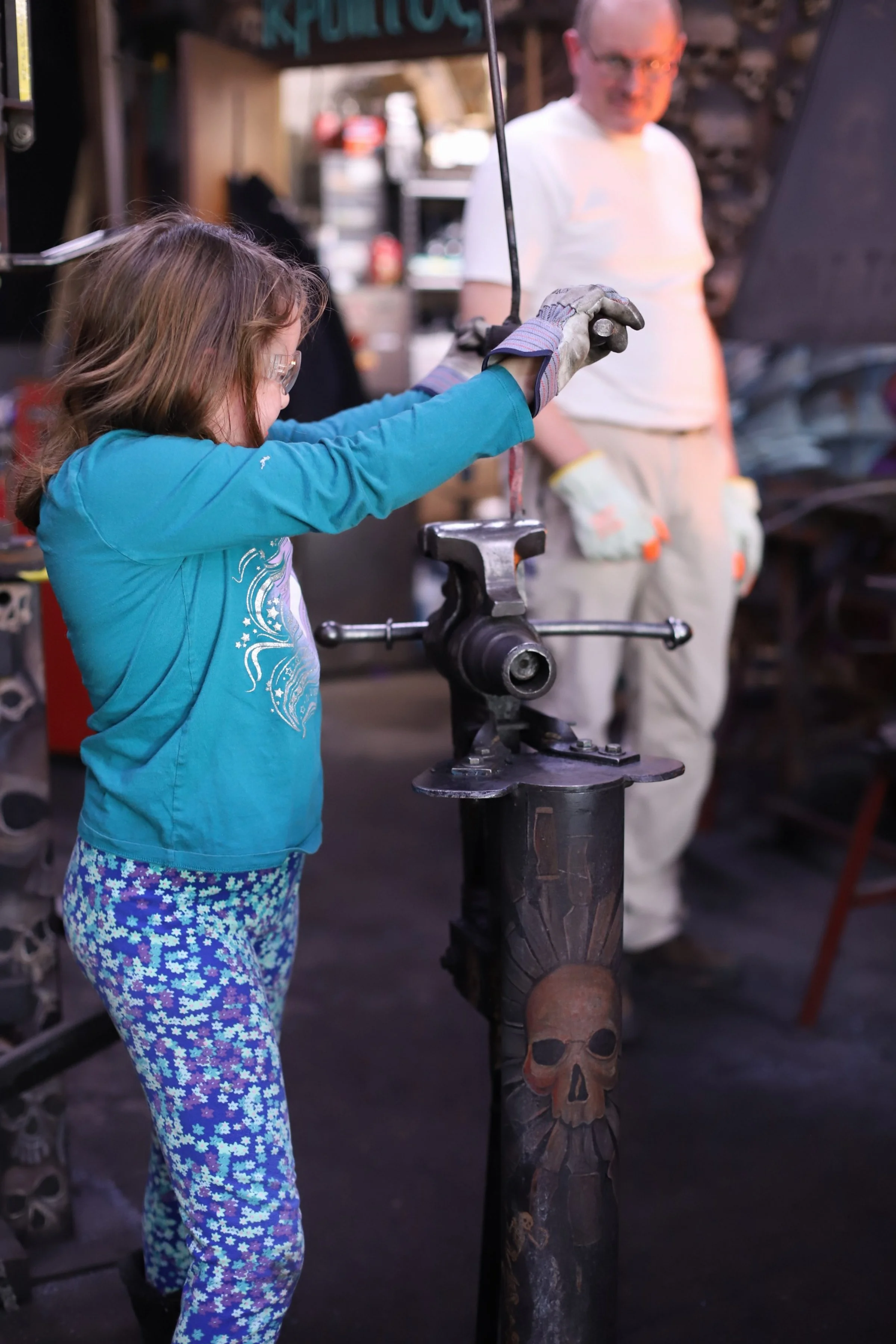 Fantastic class today with CeCe and her father! They have been coming to Art Hops for years just to watch what's being made in the forge. CeCe is finally over 9 years old, so her Christmas she got to take her first class, a Magic Wand! She came very prepared with her drawing. I'd say she got it pretty spot on! Her father made his first knife, a Railroad Spike Knife. He did a great job!