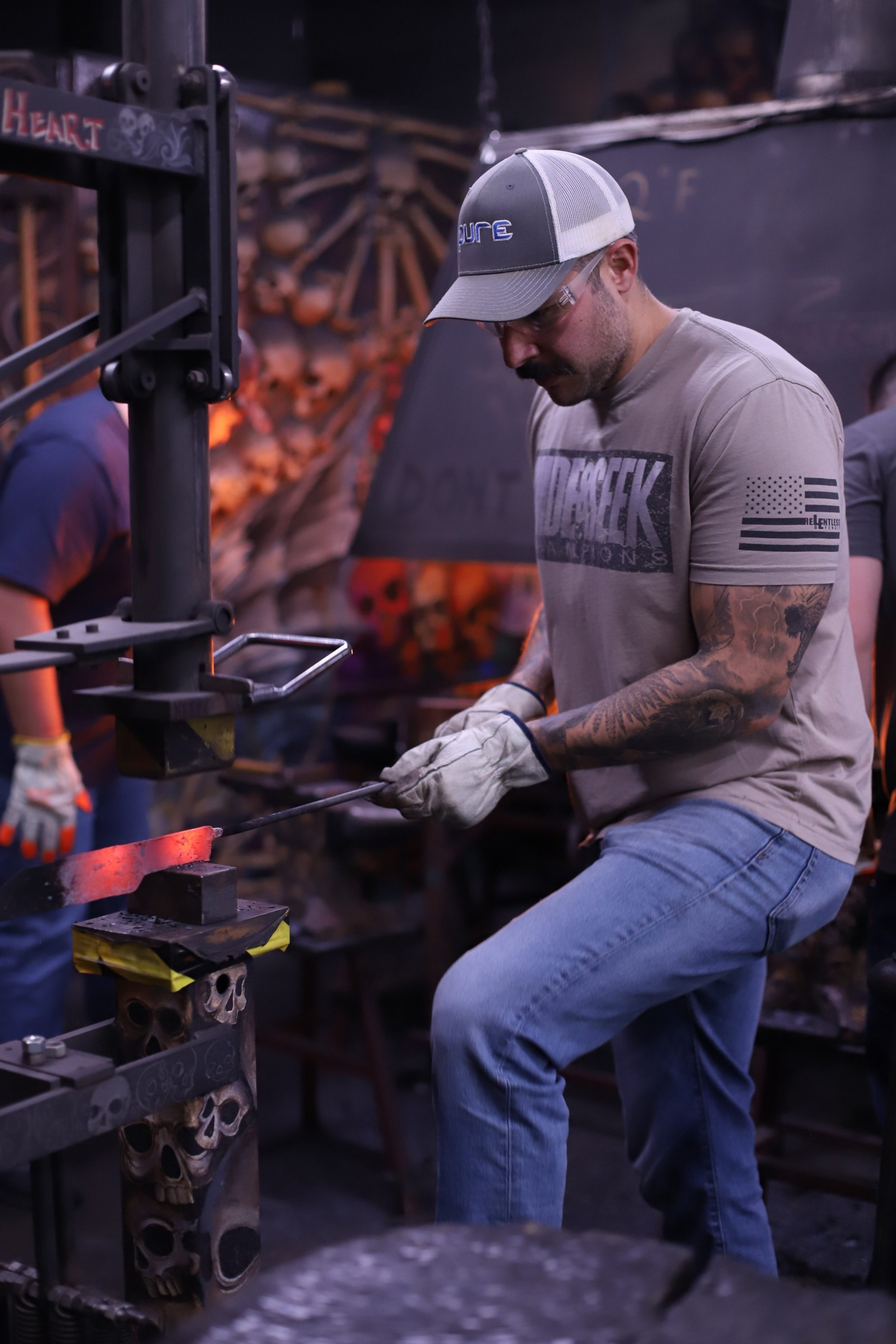 Great morning with these 3 brothers from the Chicago and Traverse City areas, who started their first Billet Knives! They did an exceptional job! We got them hammered, ground, and heat treated. They'll add the handles tomorrow.