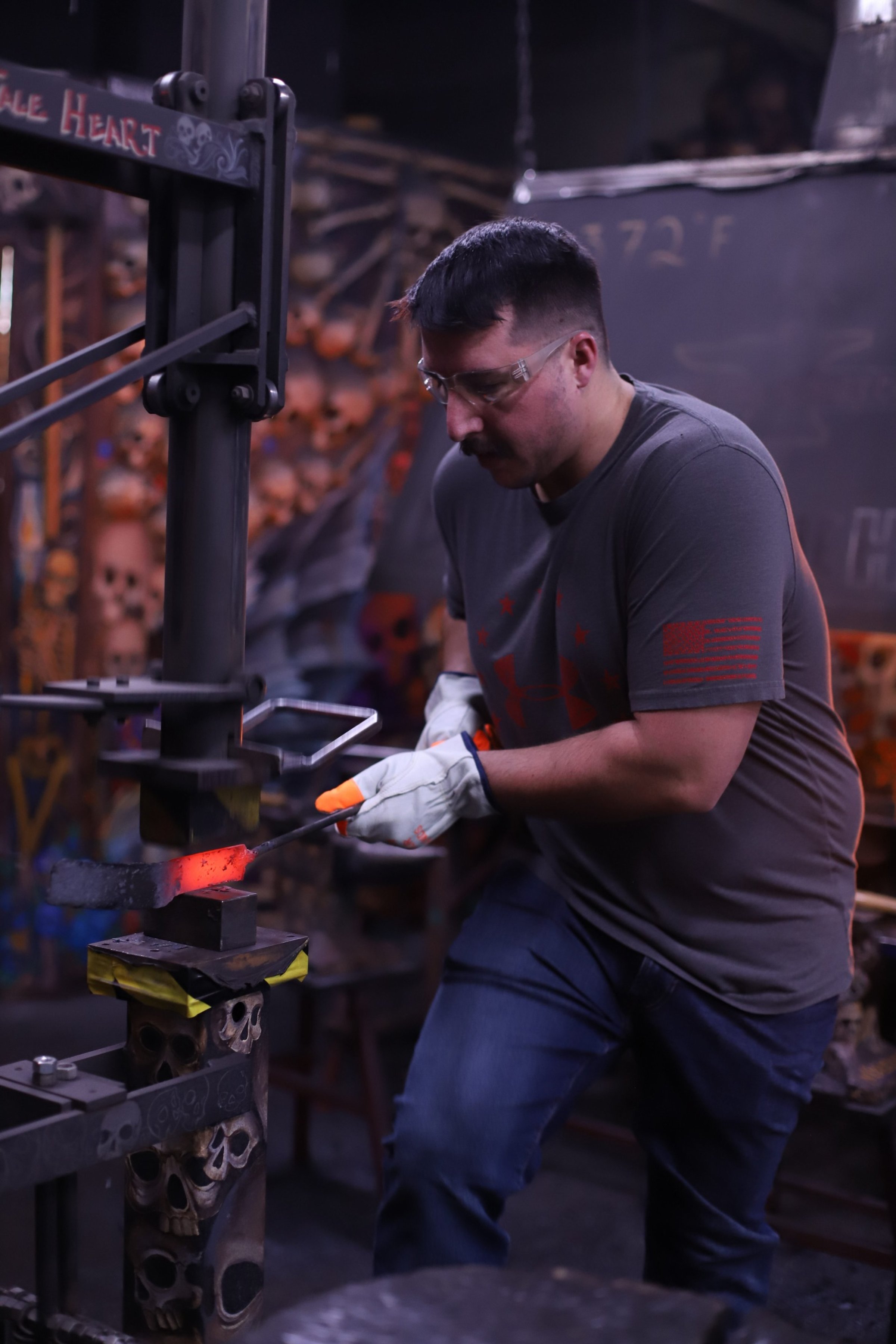 Chris and his son came to the forge for the first time this afternoon. They both made fantastic Railroad Spike Knives!