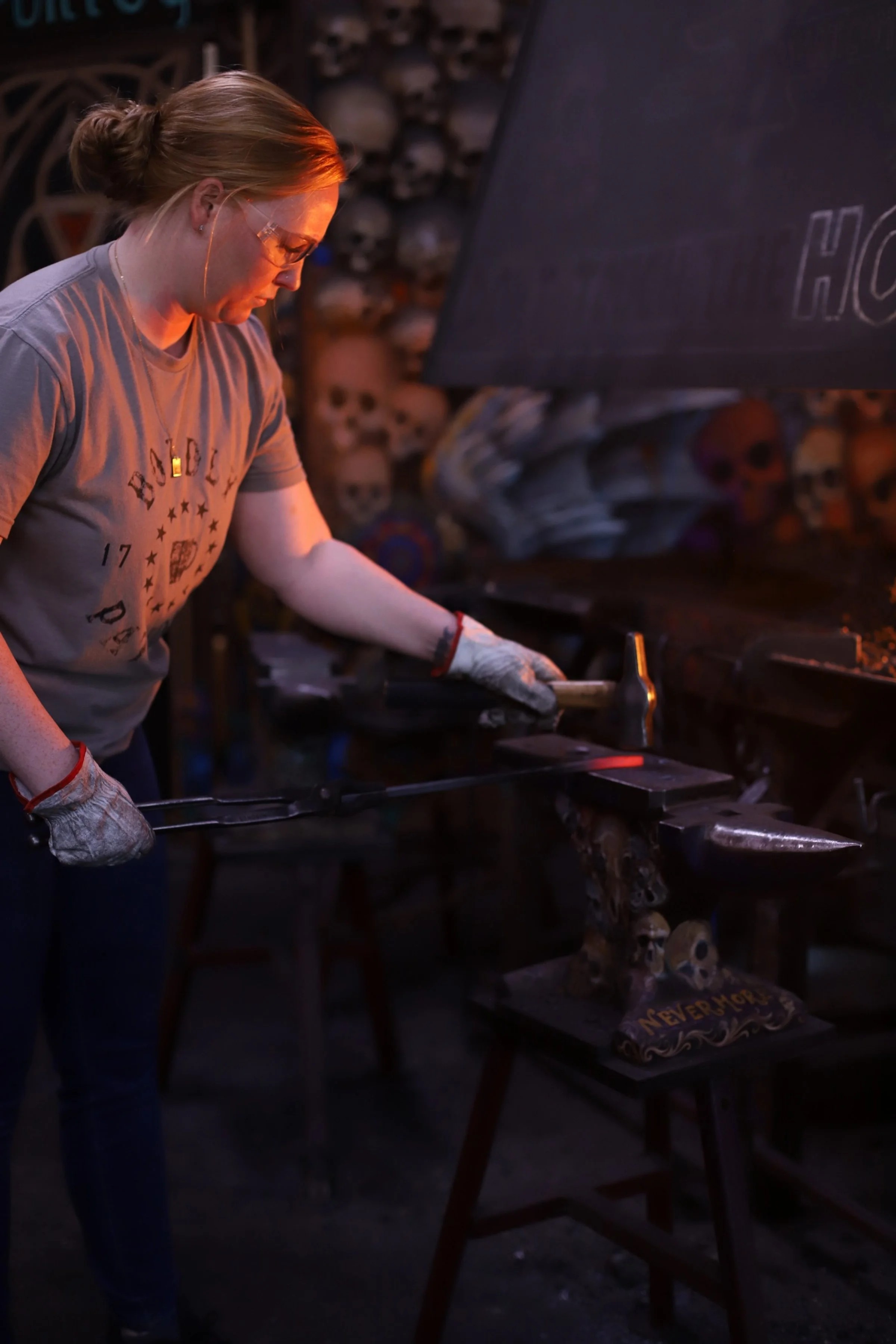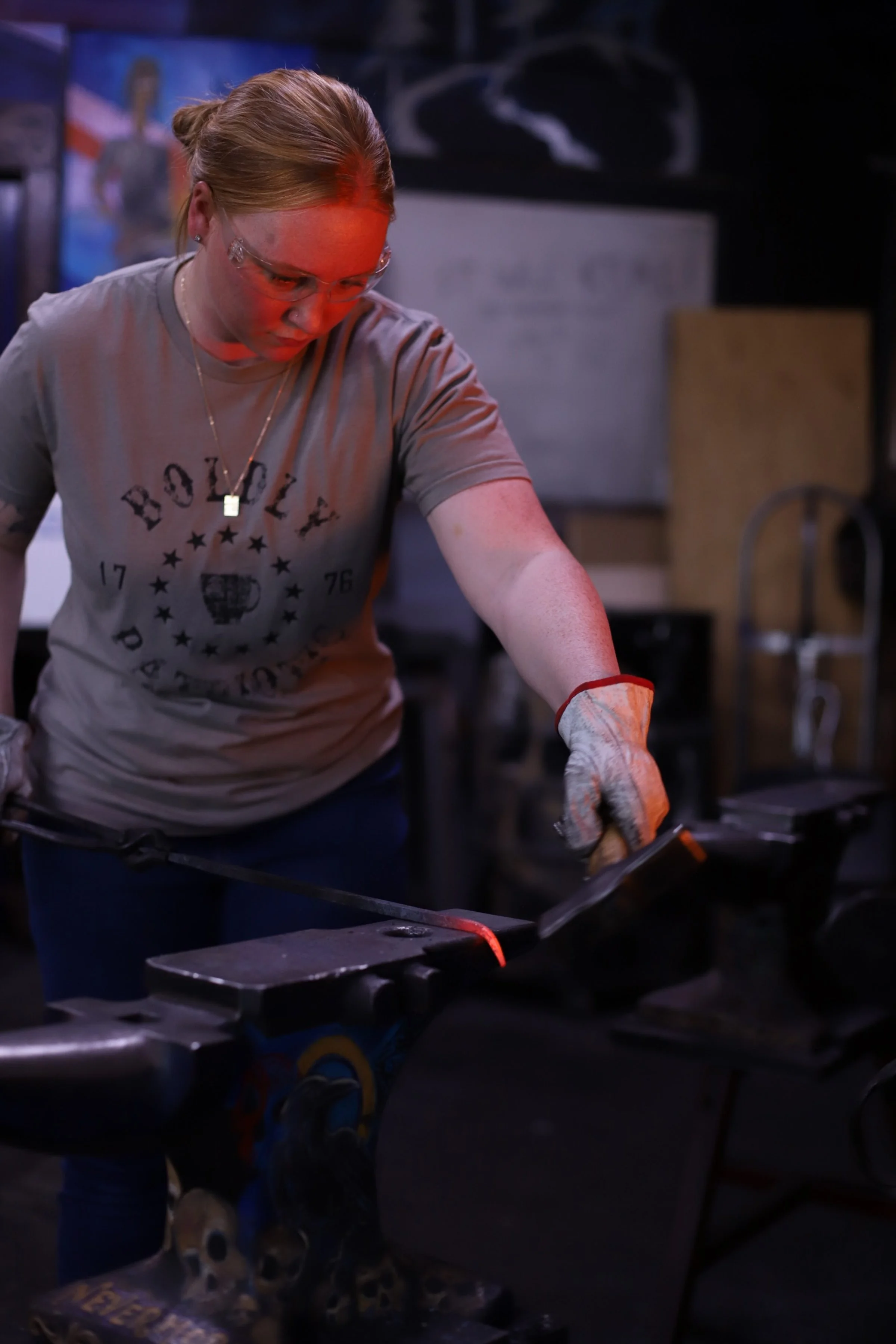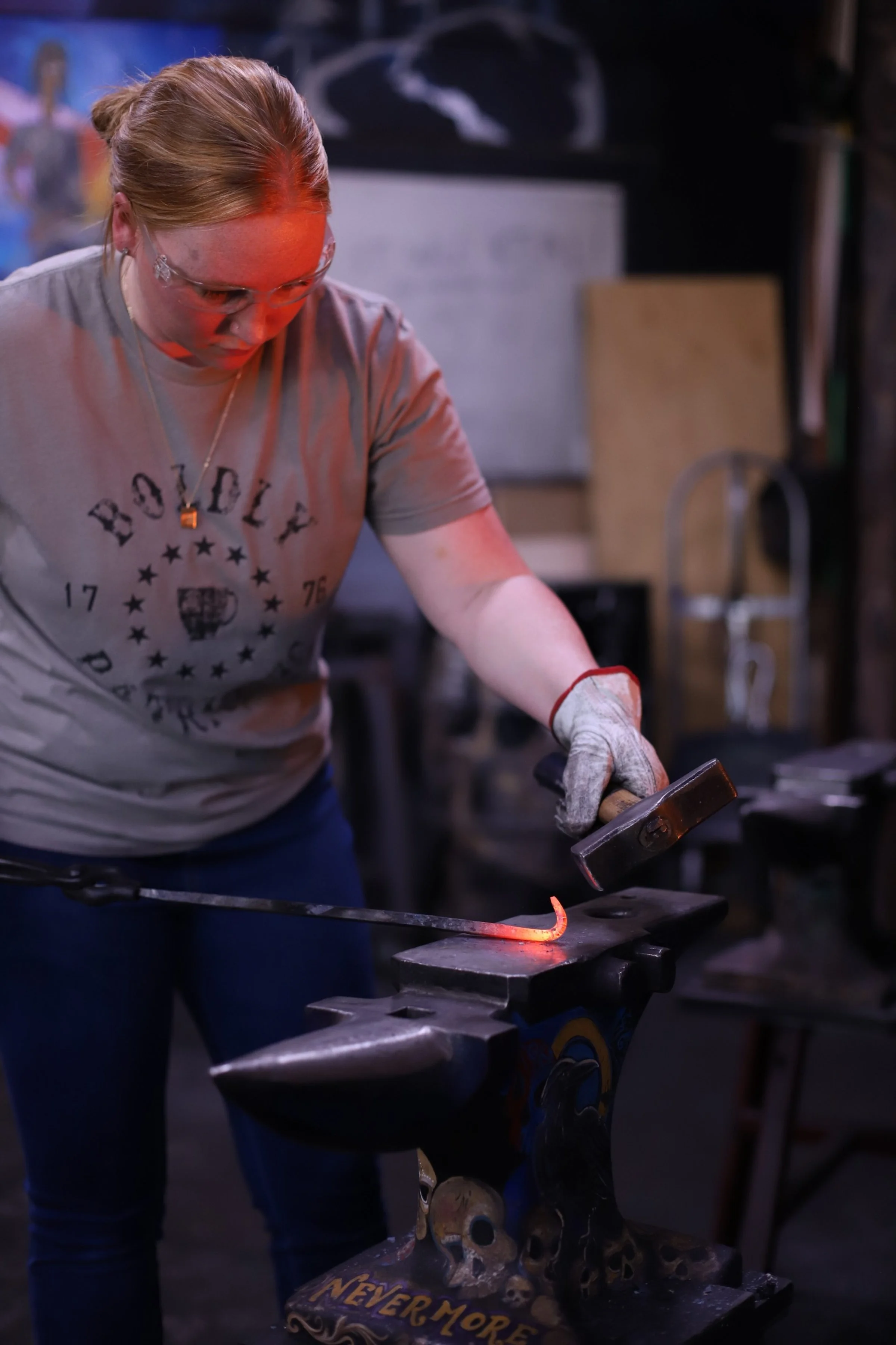 Yay! The whole family has now been in the forge! Scott and Harlie were back to work on their knives. And now the last member of the family finally came. Sam did a great job learning the basics by making an "S" hook. Then she made 2 Candy Canes!