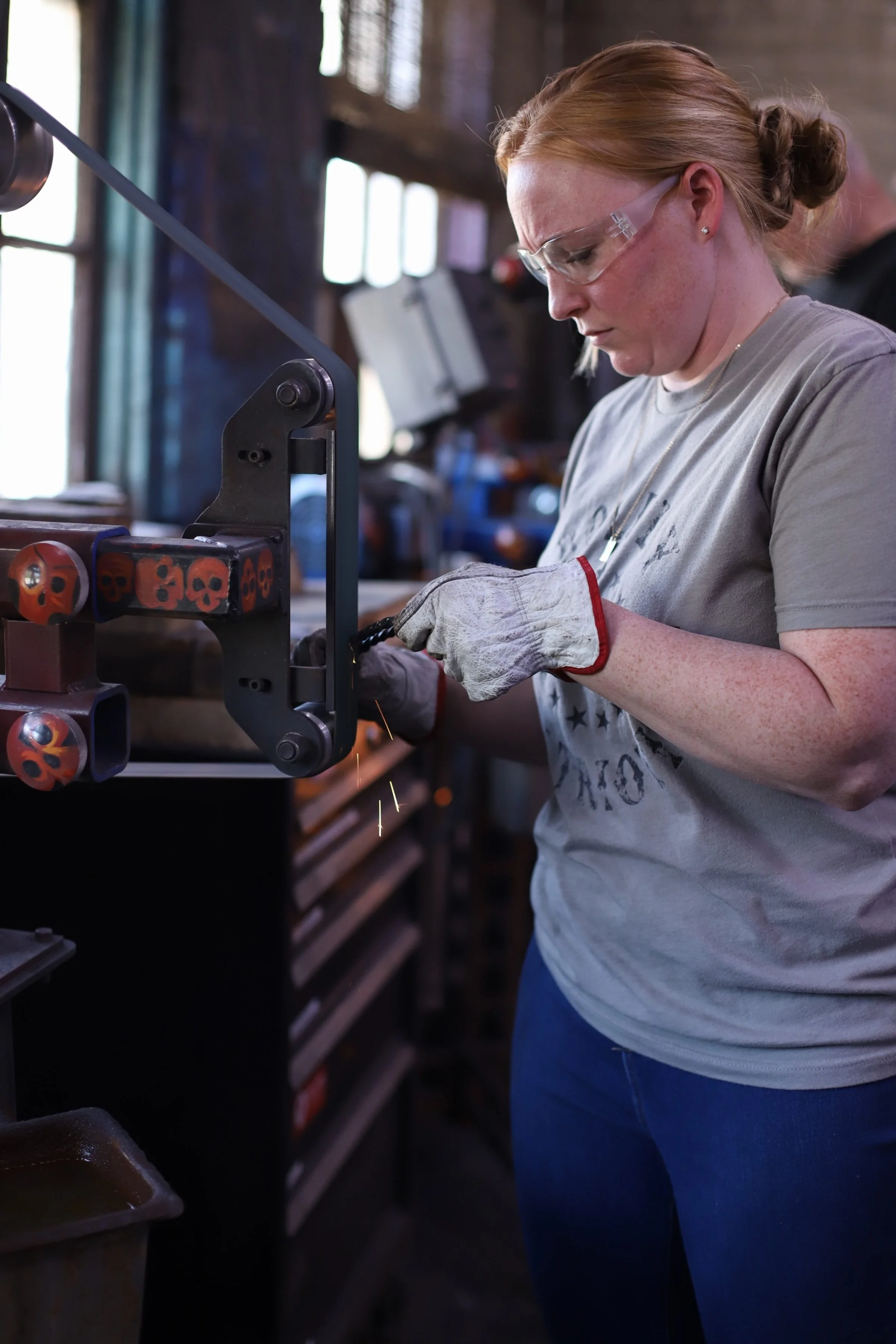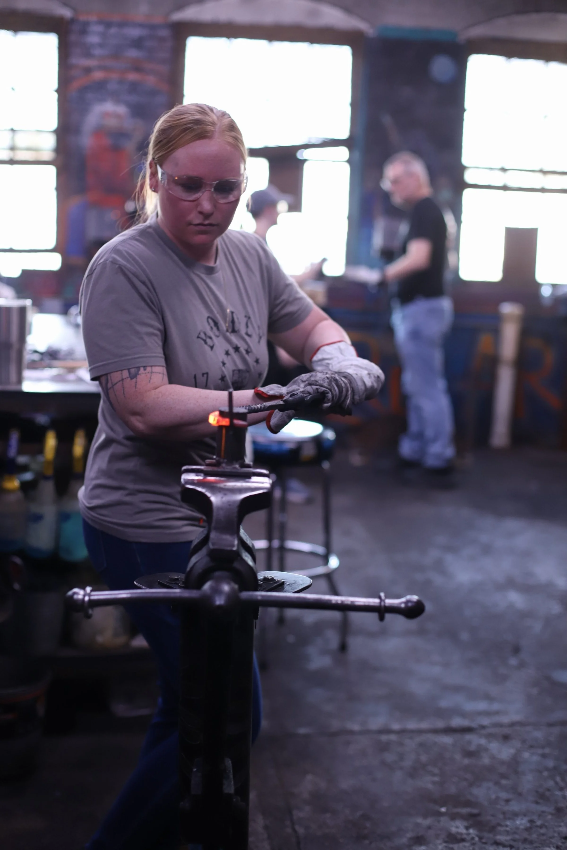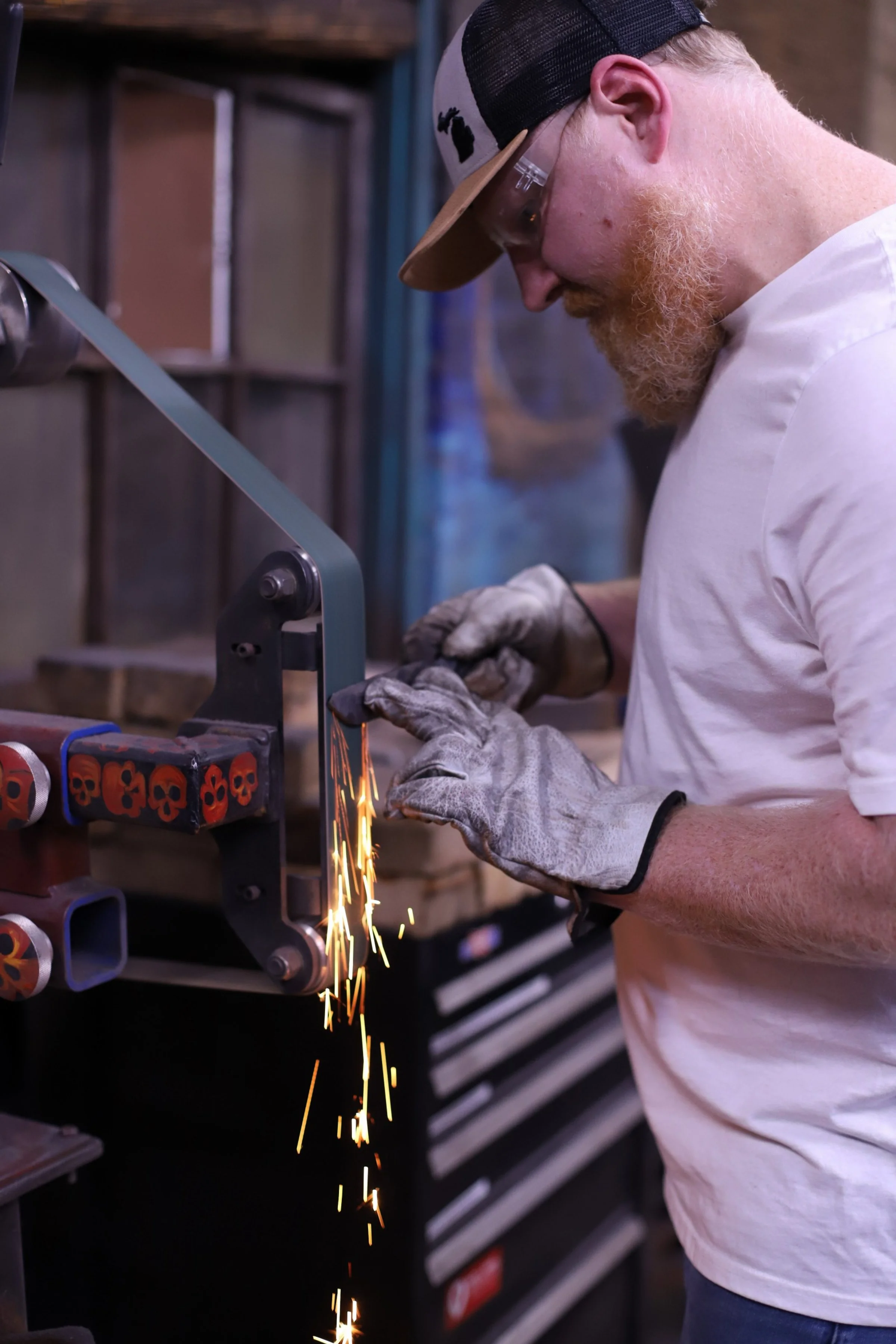 Birthday Knifemaking! Rachel brought her husband, Jeff, in this morning to make Railroad Spike Knives for his birthday! Super shiny knives!
