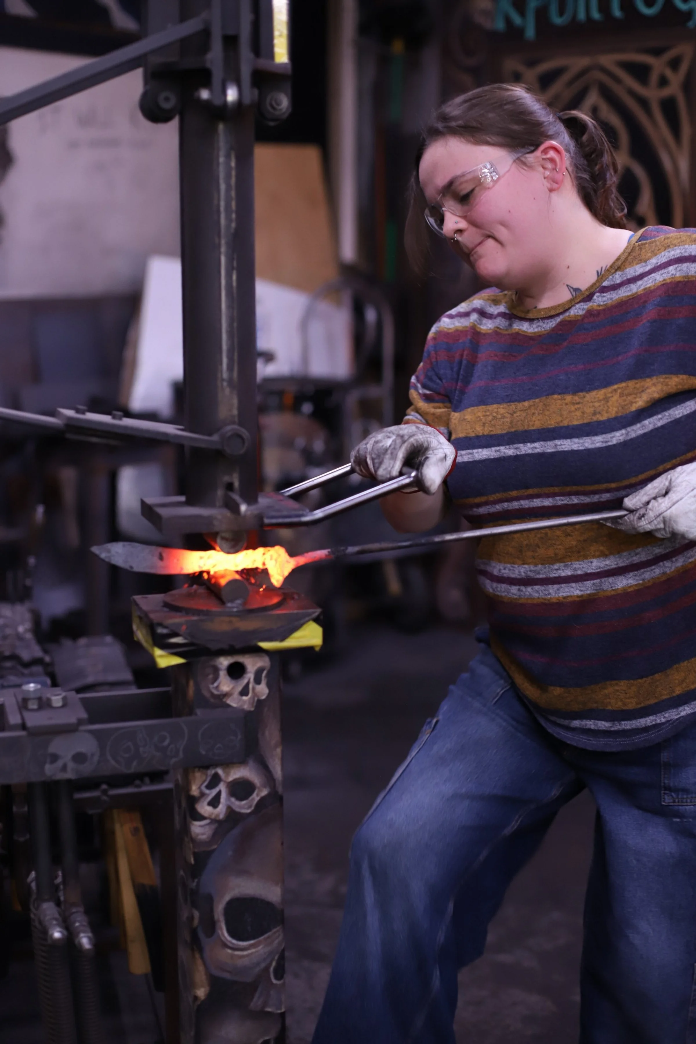 Birthday Knifemaking! Kelsey brought Brayden in today for his birthday. They both made beautiful Railroad Spike Knives!